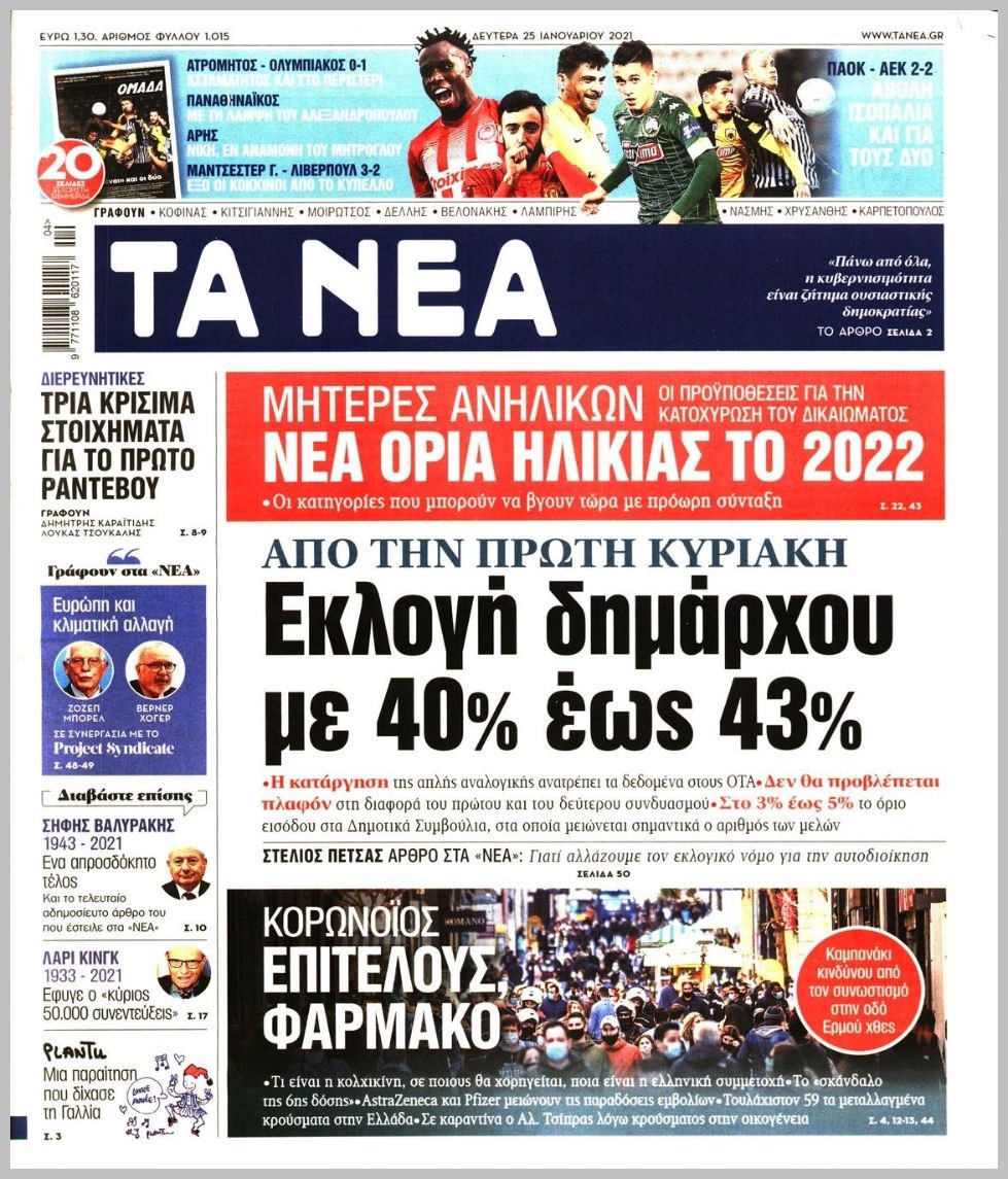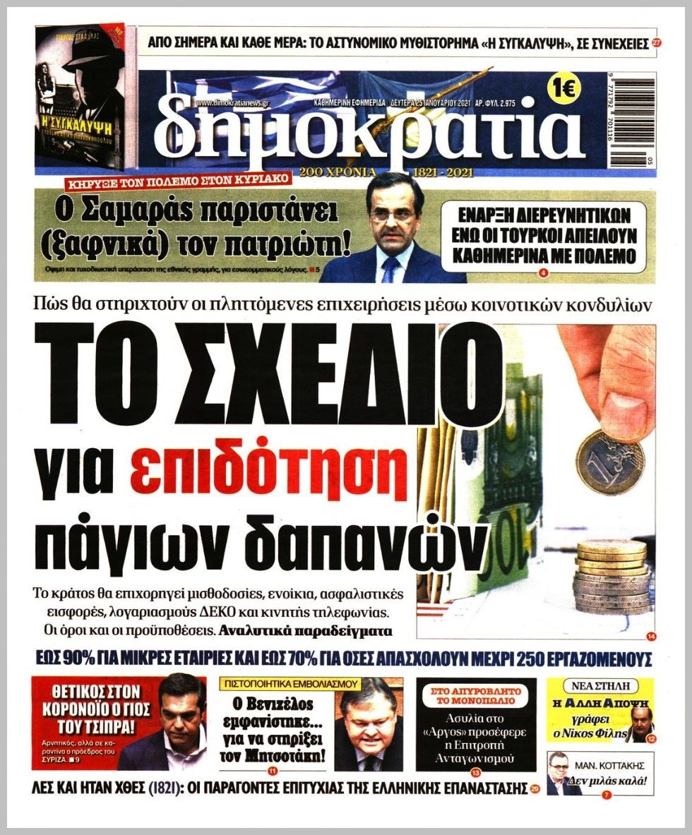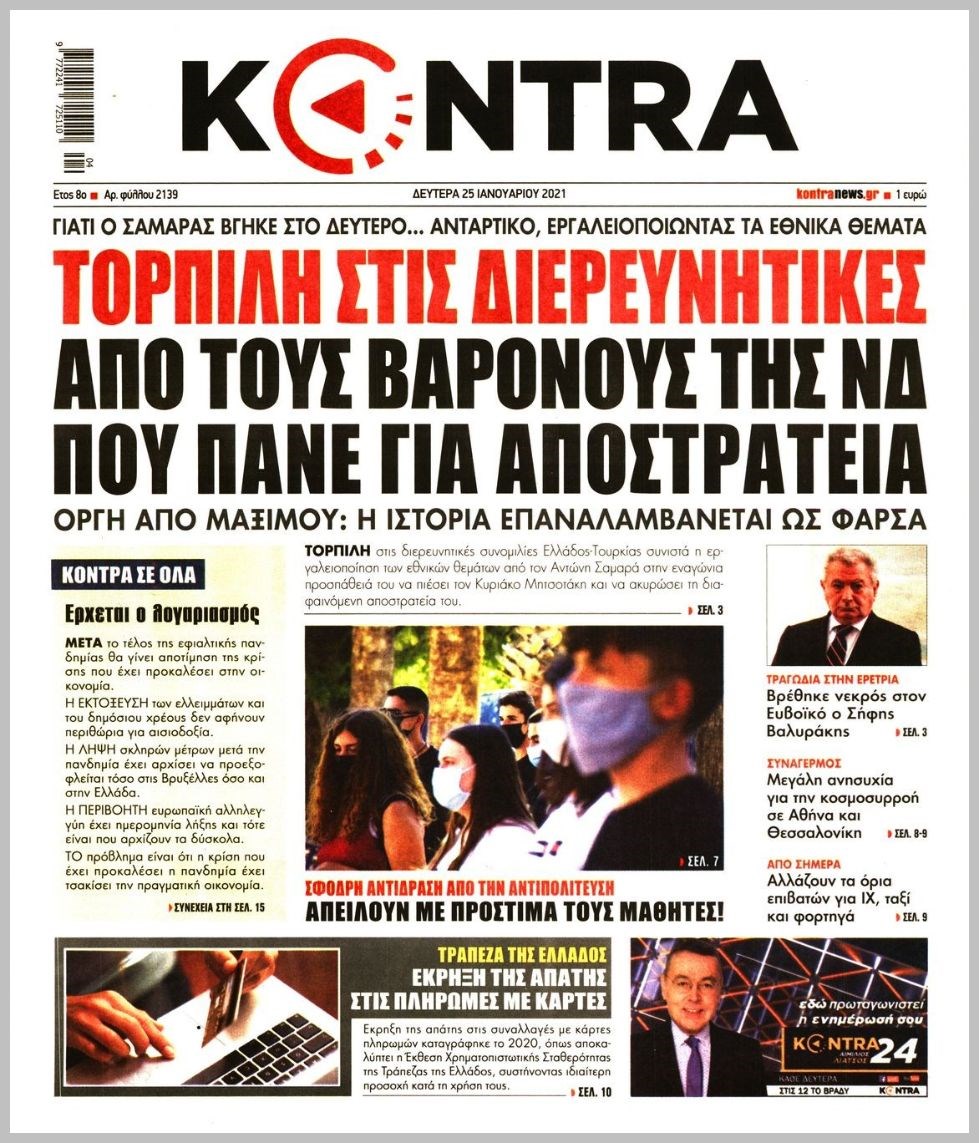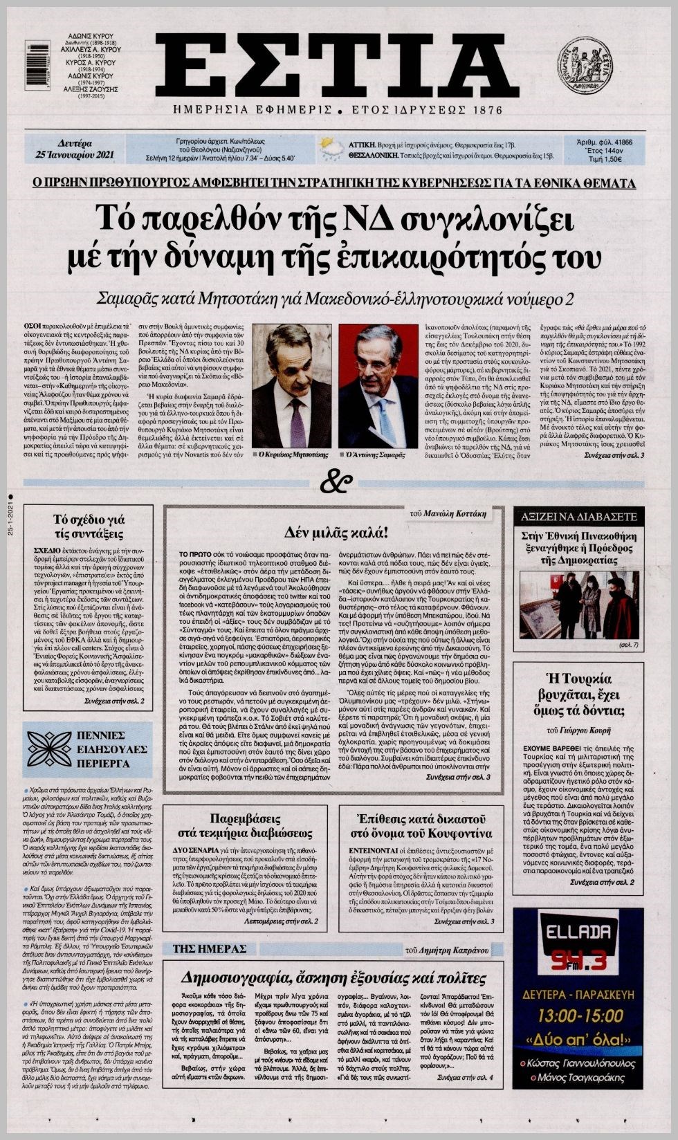 Οι πολιτικές εφημερίδες 25/1/2021 Διονύσης Νίκκας 06:14, Δευτέρα 25 Ιανουαρίου 2021 Media Διαβάστε τα πρωτοσέλιδα των πολιτικών εφημερίδων… ΕΦΗΜΕΡΙΔΕΣ ΠΟΛΙΤΙΚΕΣ ΕΦΗΜΕΡΙΔΕΣ ΠΡΩΤΟΣΕΛΙΔΑ Μοιράσου το: σχολίασε κι εσύ (0 σχόλια) Ακολουθήστε το enikos.gr στο Google News και μάθετε πρώτοι όλες τις ειδήσεις Δείτε όλες τις τελευταίες ειδήσεις από την Ελλάδα και τον Κόσμο στο enikos.gr Ειδήσεις Ροή Ειδήσεων 22 λεπτά πριν Τραμπ: Δεν αποκλείει την πιθανότητα ενός πολέμου στη Βενεζουέλα – «Ο Μαδούρο ξέρει καλύτερα από τον καθένα τι ακριβώς θέλω» 16 λεπτά πριν Ουκρανία: Η άνευ προηγουμένου επίθεση σε ρωσικό τάνκερ στη Μεσόγειο και το μήνυμα προς στον Πούτιν – Το «μακρύ χέρι» του Κιέβου 3 ώρες πριν Εμπλοκή και αερομαχίες με οπλισμένα τουρκικά F-16 στο Αιγαίο 3 ώρες πριν Πούτιν: «Ναι, είμαι ερωτευμένος» – Βίντεο από τη σπάνια προσωπική παραδοχή του 1 ώρα πριν Ανδρέας Λυκουρέντζος: Υπέβαλε την παραίτησή του ο πρόεδρος του ΕΛΓΑ, αλλά δεν έγινε δεκτή – Όλο το παρασκήνιο 2 ώρες πριν Αριθμολογία: Οι άνθρωποι που έχουν γεννηθεί αυτές τις 4 ημερομηνίες, συχνά παρεξηγούνται – «Η καλοσύνη τους κρύβει τεράστια δύναμη» 4 ώρες πριν Μήπως έχετε χάσει τον εαυτό σας στη σχέση σας; 7 «αθόρυβες» υποχωρήσεις που μάλλον κάνατε, χωρίς να το συνειδητοποιήσετε 3 ώρες πριν Ξεχάστε το καθάρισμα το Σαββατοκύριακο: Ο «κανόνας των 20 λεπτών» που θα σας λύσει τα χέρια 31 λεπτά πριν Ύπνος: Μια κρυφή κατάσταση του εγκεφάλου πριν από τον ύπνο μπορεί να είναι το “κλειδί” για υψηλή ευφυΐα και δημιουργικότητα 5 λεπτά πριν Χάρι και Μέγκαν: Η σπάνια οικογενειακή φωτογραφία με τον Άρτσι και τη Λίλιμπετ – Τι σχεδιάζουν για τα Χριστούγεννα 12 λεπτά πριν Βασίλης Καρράς: «Είναι πάντα δίπλα μου, δεν έφυγε…», λέει ο αδελφός του 16 λεπτά πριν Ουκρανία: Η άνευ προηγουμένου επίθεση σε ρωσικό τάνκερ στη Μεσόγειο και το μήνυμα προς στον Πούτιν – Το «μακρύ χέρι» του Κιέβου 22 λεπτά πριν Τραμπ: Δεν αποκλείει την πιθανότητα ενός πολέμου στη Βενεζουέλα – «Ο Μαδούρο ξέρει καλύτερα από τον καθένα τι ακριβώς θέλω» 24 λεπτά πριν Κηφισιά: Με πολλές απουσίες κόντρα στον Ολυμπιακό – «Last dance» για τον Τεττέη ENIKOS NETWORK Το ΕΚΑΒ τιμήθηκε από την Ακαδημία Αθηνών για τα 40 χρόνια προσφοράς του Έχετε πραγματικά μεγάλη καρδιά; 10 χαρακτηριστικά όσων έχουν καλοσύνη ΑΑΔΕ: Νέες αναβαθμίσεις στο Ψηφιακό Πελατολόγιο και την εφαρμογή myDATAapp – Τι πρέπει να γνωρίζετε Όμιλος ΔΕΗ: Νέα ορόσημα και ενισχυμένη διαφάνεια στην ετήσια Έκθεση Βιώσιμης Ανάπτυξης Χαρτογραφώντας το «σημείο χωρίς επιστροφή»: Για πρώτη φορά αποκαλύπτεται με λεπτομέρεια το ακανθώδες όριο της ατμόσφαιρας τ... Η Google καταργεί τη λειτουργία «dark web report» – Πώς θα μπορούν οι χρήστες να διαγράφουν τα δεδομένα τους περισσότερα 20:37 , Παρασκευή 19 Δεκεμβρίου 2025 Don’t Forget The Lyrics: Η Έλλη Κοκκίνου υποδέχεται 4 παίκτες που θα κάνουν τα πάντα για να μη χάσουν ούτε… μισή λέξη από τους στίχους Το «Don’t Forget The Lyrics» επιστρέφει απόψε, Παρασκευή 19 Δεκεμβρίου, στις 21:00 με νέο επει... 19:31 , Παρασκευή 19 Δεκεμβρίου 2025 GNTM: Απόψε ο μεγάλος τελικός για τους 4 φιναλίστ Έπειτα από μήνες γεμάτους μόδα, δημιουργία και έντονες αναμετρήσεις, το GNTM 2025 κορυφώνεται,... 18:11 , Παρασκευή 19 Δεκεμβρίου 2025 Το σόι σου: Ο Άρης έρχεται στην Ελλάδα για τις γιορτές των Χριστουγέννων – Τι θα δούμε στο αποψινό εορταστικό επεισόδιο Ένα απολαυστικό, εορταστικό επεισόδιο της σειράς “Το σόι σου”, γεμάτο ευτράπελα αλ... 15:15 , Παρασκευή 19 Δεκεμβρίου 2025 Την Κυριακ