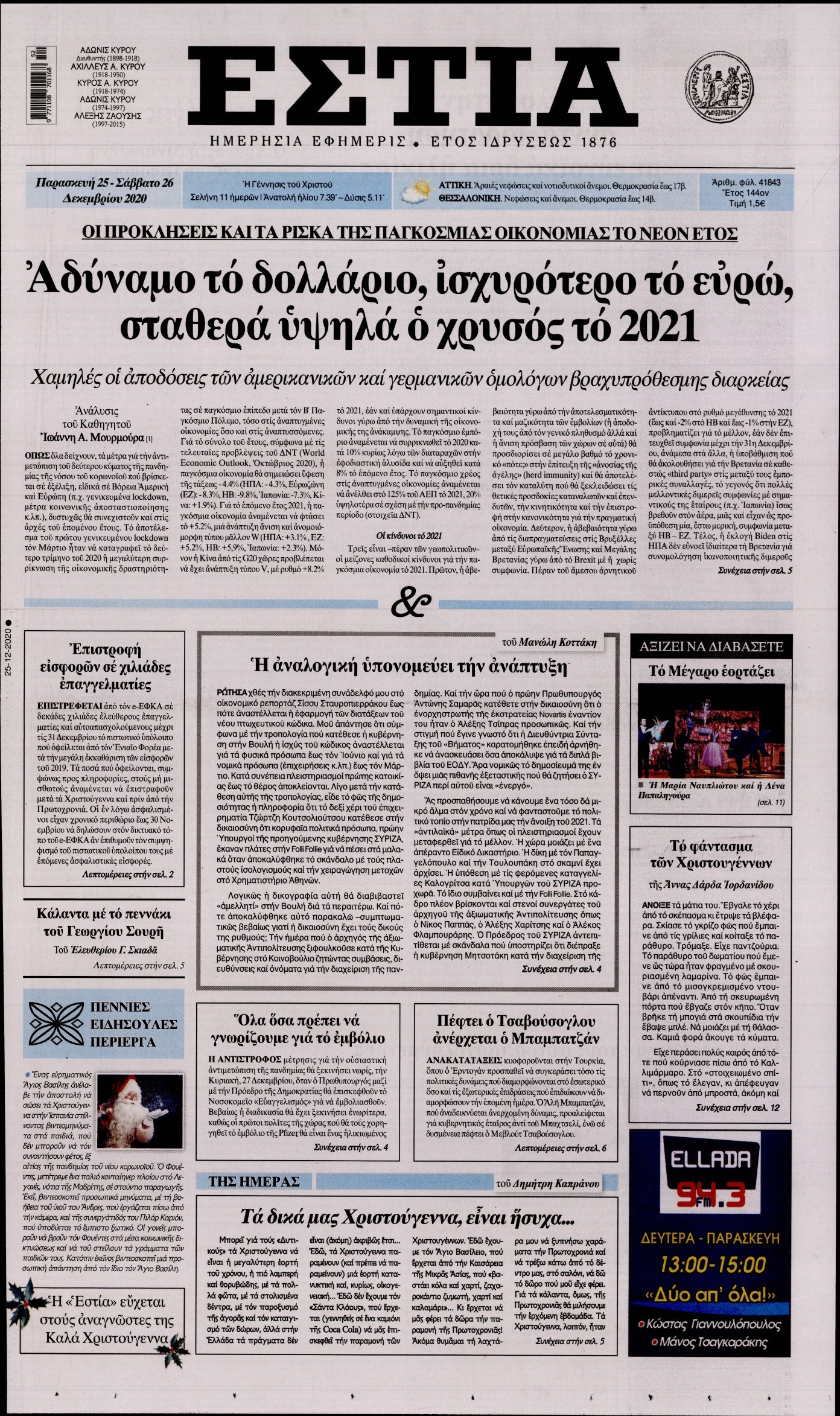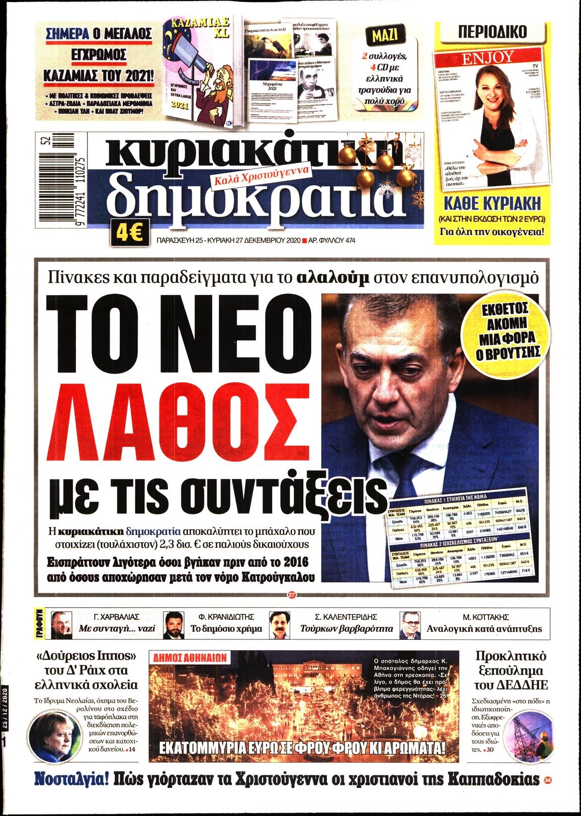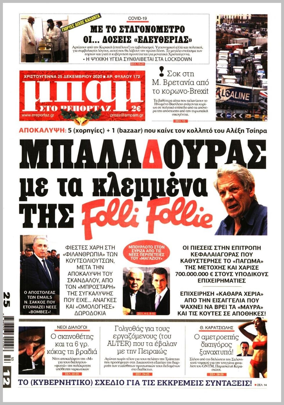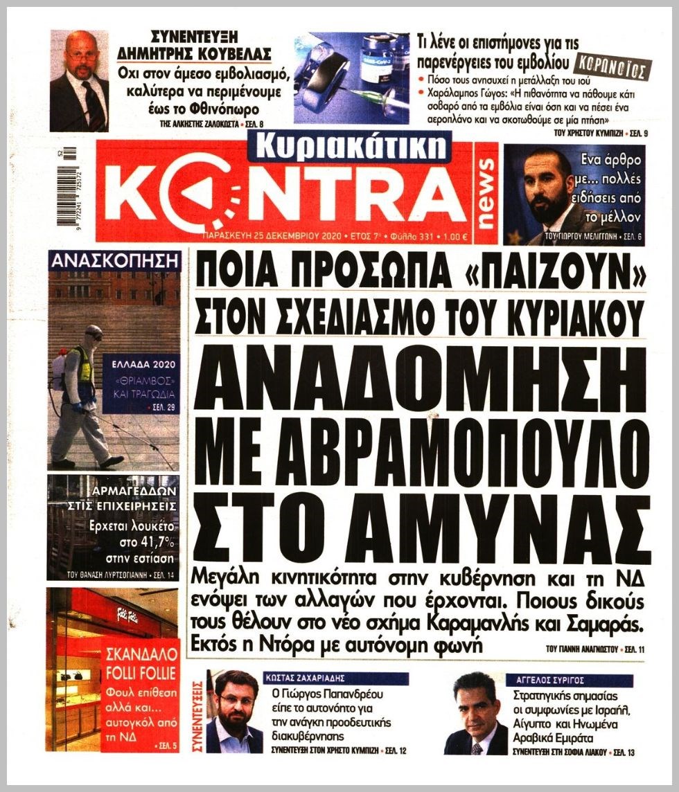 Οι πολιτικές εφημερίδες 25/12/2020 Διονύσης Νίκκας 07:19, Παρασκευή 25 Δεκεμβρίου 2020 Media Διαβάστε τα πρωτοσέλιδα των πολιτικών εφημερίδων… ΕΦΗΜΕΡΙΔΕΣ ΠΟΛΙΤΙΚΕΣ ΕΦΗΜΕΡΙΔΕΣ ΠΡΩΤΟΣΕΛΙΔΑ Μοιράσου το: σχολίασε κι εσύ (0 σχόλια) Ακολουθήστε το enikos.gr στο Google News και μάθετε πρώτοι όλες τις ειδήσεις Δείτε όλες τις τελευταίες ειδήσεις από την Ελλάδα και τον Κόσμο στο enikos.gr Ειδήσεις Ροή Ειδήσεων 4 ώρες πριν Χριστούγεννα στα μπλόκα: Επιμένουν στις κινητοποιήσεις τους οι αγρότες – Ανοίγουν τα διόδια το Σαββατοκύριακο 4 ώρες πριν Ουκρανία: Η άνευ προηγουμένου επίθεση σε ρωσικό τάνκερ στη Μεσόγειο και το μήνυμα προς στον Πούτιν – Το «μακρύ χέρι» του Κιέβου 3 ώρες πριν Πούτιν: Τα μηνύματα σε Ευρώπη και ΝΑΤΟ από το μαραθώνιο «σόου» του – Η απαίτηση για «σεβασμό» και η ειρήνη «με τους όρους» της Μόσχας 4 ώρες πριν Τραμπ: Δεν αποκλείει την πιθανότητα ενός πολέμου στη Βενεζουέλα – «Ο Μαδούρο ξέρει καλύτερα από τον καθένα τι ακριβώς θέλω» 5 ώρες πριν Συνεχίζει να προκαλεί ο Μίτσκοσκι: «Για μένα το όνομα Μακεδονία είναι ιερό» 3 ώρες πριν Ανακαλύφθηκαν αρχαία χρυσά νομίσματα 2.200 ετών που απεικονίζουν τον θεό Απόλλωνα – Η άγνωστη σύνδεση με τον Φίλιππο Β΄ της Μακεδονίας 4 ώρες πριν Ύπνος: Μια κρυφή κατάσταση του εγκεφάλου πριν από τον ύπνο μπορεί να είναι το “κλειδί” για υψηλή ευφυΐα και δημιουργικότητα 5 ώρες πριν Αριθμολογία: Οι άνθρωποι που έχουν γεννηθεί αυτές τις 4 ημερομηνίες, συχνά παρεξηγούνται – «Η καλοσύνη τους κρύβει τεράστια δύναμη» 6 ώρες πριν Ξεχάστε το καθάρισμα το Σαββατοκύριακο: Ο «κανόνας των 20 λεπτών» που θα σας λύσει τα χέρια 16 λεπτά πριν Εξάρχεια: Ένταση με μολότοφ, χημικά και κρότου λάμψης 32 λεπτά πριν ΗΠΑ: Τραγωδία στην Αλαμπάμα – Σκότωσε την δημοσιογράφο σύζυγό του και αυτοκτόνησε μπροστά στον 3χρονο γιο τους 46 λεπτά πριν Πρόταση γάμου στο ΣΕΦ κατά την διάρκεια του αγώνα Ολυμπιακός-Βιλερμπάν – Δείτε βίντεο 1 ώρα πριν Euroleague: Επέστρεψε στις νίκες ο Ολυμπιακός, πήρε την ματσάρα της χρονιάς η Μπάρτσα – Τα αποτελέσματα και η βαθμολογία 1 ώρα πριν Συρία: Μαζικά πλήγματα των ΗΠΑ σε θέσεις του Ισλαμικού Κράτους – Χέγκσεθ: «Δεν είναι αρχή πολέμου, είναι μια δήλωση εκδίκησης» για το θάνατο των στρατιωτών μας ENIKOS NETWORK Το ΕΚΑΒ τιμήθηκε από την Ακαδημία Αθηνών για τα 40 χρόνια προσφοράς του Έχετε πραγματικά μεγάλη καρδιά; 10 χαρακτηριστικά όσων έχουν καλοσύνη Αναστολή μέτρων αναγκαστικής εκτέλεσης για κτηνοτρόφους που πλήττονται από την ευλογιά των αιγοπροβάτων Πλήρης επάρκεια προϊόντων στις λαϊκές της Αττικής, παρά τις αγροτικές κινητοποιήσεις – Τι απαντούν οι πωλητές Χαρτογραφώντας το «σημείο χωρίς επιστροφή»: Για πρώτη φορά αποκαλύπτεται με λεπτομέρεια το ακανθώδες όριο της ατμόσφαιρας τ... Η Google καταργεί τη λειτουργία «dark web report» – Πώς θα μπορούν οι χρήστες να διαγράφουν τα δεδομένα τους περισσότερα 22:42 , Παρασκευή 19 Δεκεμβρίου 2025 Γιώργος Γιαννόπουλος για “Το σόι σου”: “Είναι ευτυχία και ευλογία αυτή η σειρά” «Είναι ευτυχία και ευλογία η συγκυρία αυτής της σειράς», θα πει ο Γιώργος Γιαννόπουλος -ο αγαπ... 20:37 , Παρασκευή 19 Δεκεμβρίου 2025 Don’t Forget The Lyrics: Η Έλλη Κοκκίνου υποδέχεται 4 παίκτες που θα κάνουν τα πάντα για να μη χάσουν ούτε… μισή λέξη από τους στίχους Το «Don’t Forget The Lyrics» επιστρέφει απόψε, Παρασκευή 19 Δεκεμβρίου, στις 21:00 με νέο επει... 19:31 , Παρασκευή 19 Δεκεμβρίου 2025 GNTM: Απόψε ο μεγάλος τελικός για τους 4 φιναλίστ Έπειτα από μήνες γεμάτους μόδα, δη