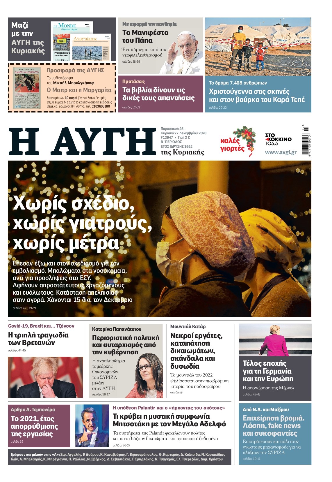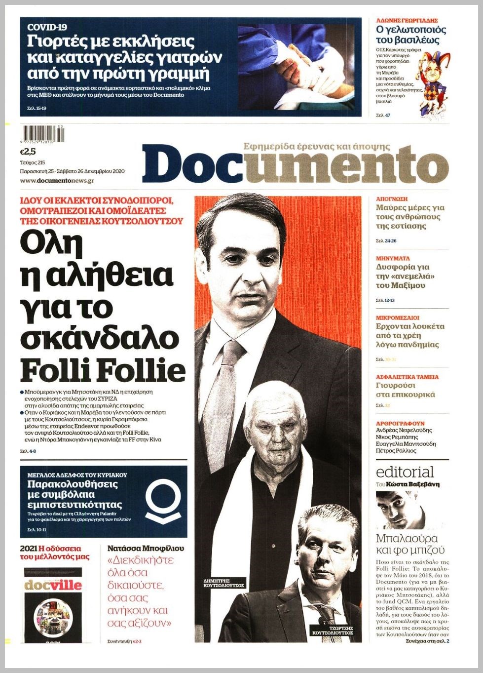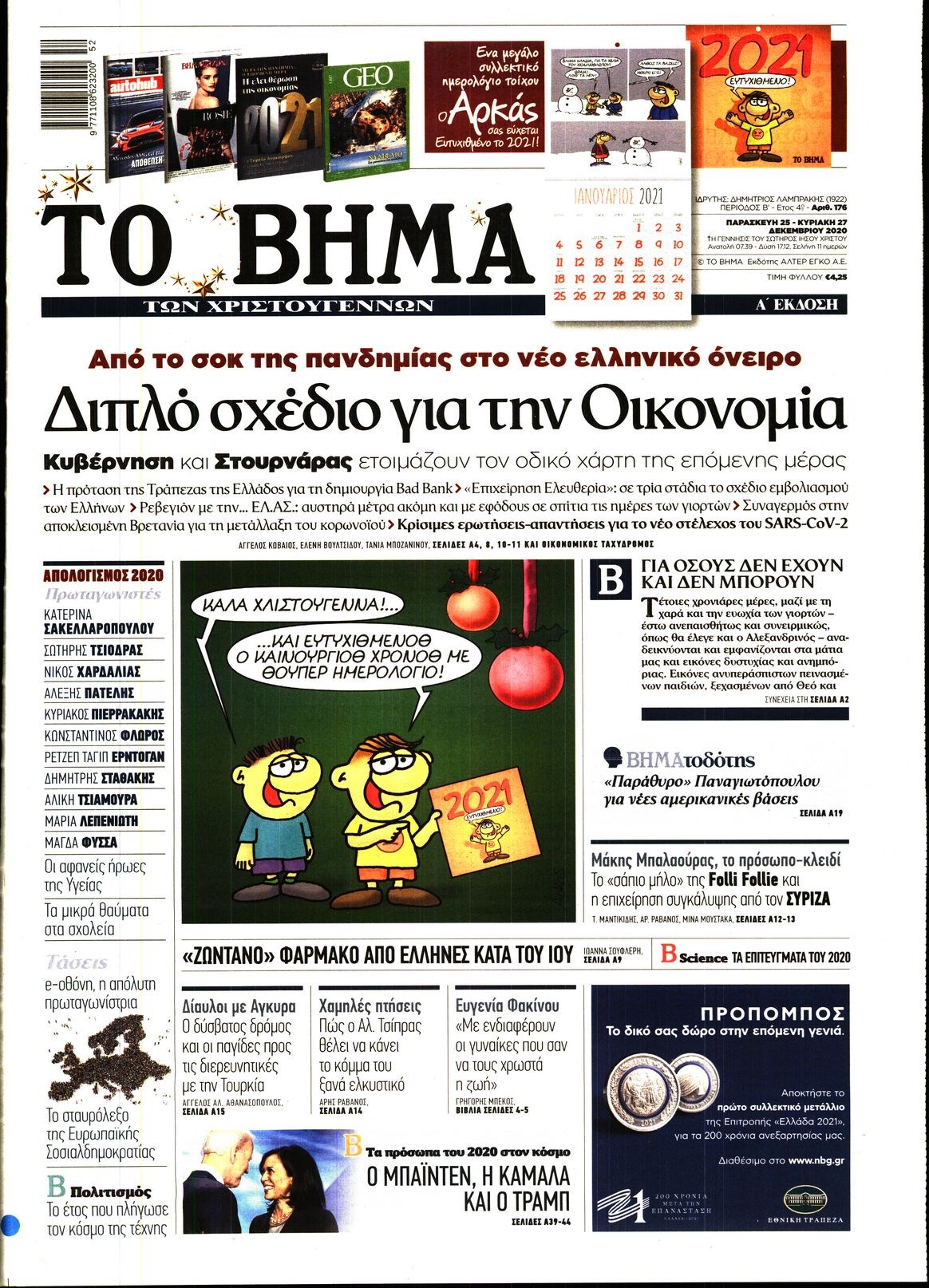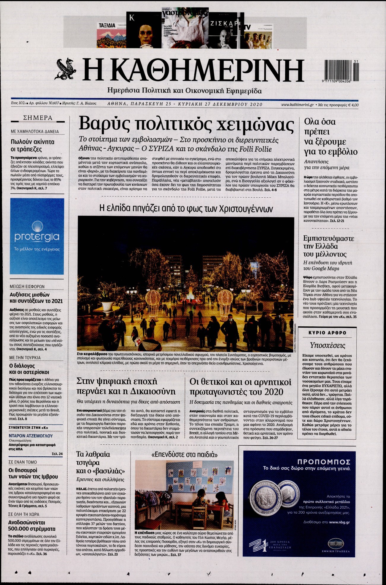 Οι πολιτικές εφημερίδες 25/12/2020 Διονύσης Νίκκας 07:19, Παρασκευή 25 Δεκεμβρίου 2020 Media Διαβάστε τα πρωτοσέλιδα των πολιτικών εφημερίδων… ΕΦΗΜΕΡΙΔΕΣ ΠΟΛΙΤΙΚΕΣ ΕΦΗΜΕΡΙΔΕΣ ΠΡΩΤΟΣΕΛΙΔΑ Μοιράσου το: σχολίασε κι εσύ (0 σχόλια) Ακολουθήστε το enikos.gr στο Google News και μάθετε πρώτοι όλες τις ειδήσεις Δείτε όλες τις τελευταίες ειδήσεις από την Ελλάδα και τον Κόσμο στο enikos.gr Ειδήσεις Ροή Ειδήσεων 4 ώρες πριν Χριστούγεννα στα μπλόκα: Επιμένουν στις κινητοποιήσεις τους οι αγρότες – Ανοίγουν τα διόδια το Σαββατοκύριακο 4 ώρες πριν Ουκρανία: Η άνευ προηγουμένου επίθεση σε ρωσικό τάνκερ στη Μεσόγειο και το μήνυμα προς στον Πούτιν – Το «μακρύ χέρι» του Κιέβου 3 ώρες πριν Πούτιν: Τα μηνύματα σε Ευρώπη και ΝΑΤΟ από το μαραθώνιο «σόου» του – Η απαίτηση για «σεβασμό» και η ειρήνη «με τους όρους» της Μόσχας 4 ώρες πριν Τραμπ: Δεν αποκλείει την πιθανότητα ενός πολέμου στη Βενεζουέλα – «Ο Μαδούρο ξέρει καλύτερα από τον καθένα τι ακριβώς θέλω» 5 ώρες πριν Συνεχίζει να προκαλεί ο Μίτσκοσκι: «Για μένα το όνομα Μακεδονία είναι ιερό» 3 ώρες πριν Ανακαλύφθηκαν αρχαία χρυσά νομίσματα 2.200 ετών που απεικονίζουν τον θεό Απόλλωνα – Η άγνωστη σύνδεση με τον Φίλιππο Β΄ της Μακεδονίας 4 ώρες πριν Ύπνος: Μια κρυφή κατάσταση του εγκεφάλου πριν από τον ύπνο μπορεί να είναι το “κλειδί” για υψηλή ευφυΐα και δημιουργικότητα 5 ώρες πριν Αριθμολογία: Οι άνθρωποι που έχουν γεννηθεί αυτές τις 4 ημερομηνίες, συχνά παρεξηγούνται – «Η καλοσύνη τους κρύβει τεράστια δύναμη» 6 ώρες πριν Ξεχάστε το καθάρισμα το Σαββατοκύριακο: Ο «κανόνας των 20 λεπτών» που θα σας λύσει τα χέρια 16 λεπτά πριν Εξάρχεια: Ένταση με μολότοφ, χημικά και κρότου λάμψης 32 λεπτά πριν ΗΠΑ: Τραγωδία στην Αλαμπάμα – Σκότωσε την δημοσιογράφο σύζυγό του και αυτοκτόνησε μπροστά στον 3χρονο γιο τους 46 λεπτά πριν Πρόταση γάμου στο ΣΕΦ κατά την διάρκεια του αγώνα Ολυμπιακός-Βιλερμπάν – Δείτε βίντεο 1 ώρα πριν Euroleague: Επέστρεψε στις νίκες ο Ολυμπιακός, πήρε την ματσάρα της χρονιάς η Μπάρτσα – Τα αποτελέσματα και η βαθμολογία 1 ώρα πριν Συρία: Μαζικά πλήγματα των ΗΠΑ σε θέσεις του Ισλαμικού Κράτους – Χέγκσεθ: «Δεν είναι αρχή πολέμου, είναι μια δήλωση εκδίκησης» για το θάνατο των στρατιωτών μας ENIKOS NETWORK Το ΕΚΑΒ τιμήθηκε από την Ακαδημία Αθηνών για τα 40 χρόνια προσφοράς του Έχετε πραγματικά μεγάλη καρδιά; 10 χαρακτηριστικά όσων έχουν καλοσύνη Αναστολή μέτρων αναγκαστικής εκτέλεσης για κτηνοτρόφους που πλήττονται από την ευλογιά των αιγοπροβάτων Πλήρης επάρκεια προϊόντων στις λαϊκές της Αττικής, παρά τις αγροτικές κινητοποιήσεις – Τι απαντούν οι πωλητές Χαρτογραφώντας το «σημείο χωρίς επιστροφή»: Για πρώτη φορά αποκαλύπτεται με λεπτομέρεια το ακανθώδες όριο της ατμόσφαιρας τ... Η Google καταργεί τη λειτουργία «dark web report» – Πώς θα μπορούν οι χρήστες να διαγράφουν τα δεδομένα τους περισσότερα 22:42 , Παρασκευή 19 Δεκεμβρίου 2025 Γιώργος Γιαννόπουλος για “Το σόι σου”: “Είναι ευτυχία και ευλογία αυτή η σειρά” «Είναι ευτυχία και ευλογία η συγκυρία αυτής της σειράς», θα πει ο Γιώργος Γιαννόπουλος -ο αγαπ... 20:37 , Παρασκευή 19 Δεκεμβρίου 2025 Don’t Forget The Lyrics: Η Έλλη Κοκκίνου υποδέχεται 4 παίκτες που θα κάνουν τα πάντα για να μη χάσουν ούτε… μισή λέξη από τους στίχους Το «Don’t Forget The Lyrics» επιστρέφει απόψε, Παρασκευή 19 Δεκεμβρίου, στις 21:00 με νέο επει... 19:31 , Παρασκευή 19 Δεκεμβρίου 2025 GNTM: Απόψε ο μεγάλος τελικός για τους 4 φιναλίστ Έπειτα από μήνες γεμάτους μόδα, δη