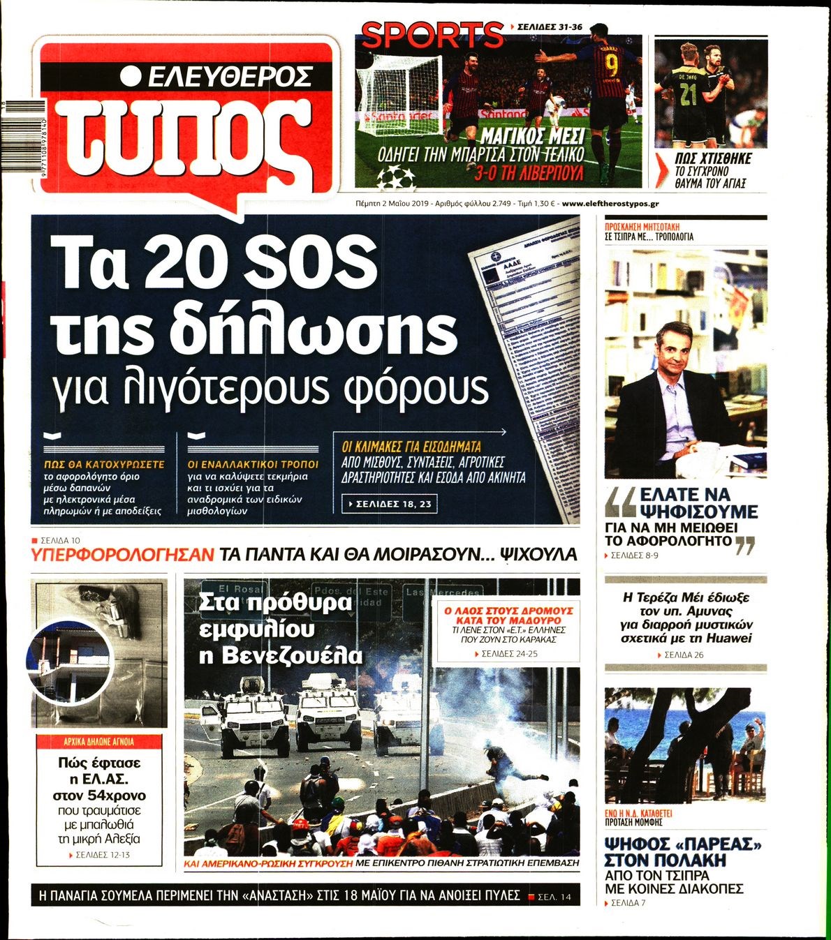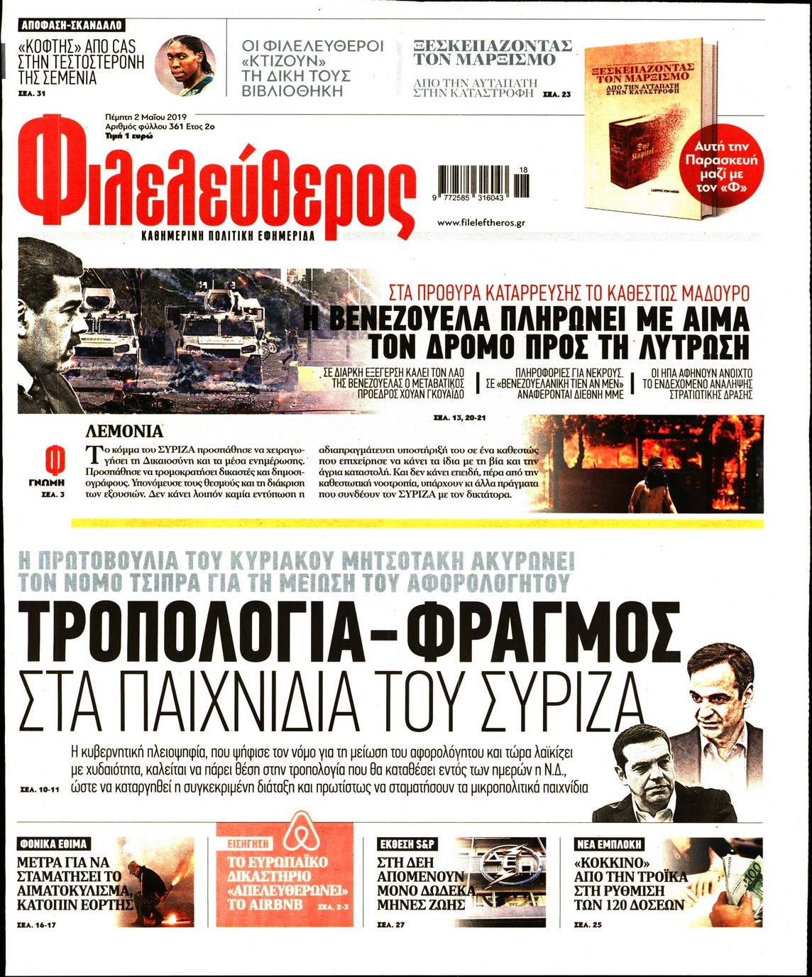 Οι πολιτικές εφημερίδες 2/5/19 Enikos Newsroom 06:48, Πέμπτη 02 Μαΐου 2019 Media Διαβάστε τα πρωτοσέλιδα των πολιτικών εφημερίδων: ΠΟΛΙΤΙΚΕΣ ΕΦΗΜΕΡΙΔΕΣ ΠΡΩΤΟΣΕΛΙΔΑ Μοιράσου το: σχολίασε κι εσύ (0 σχόλια) Ακολουθήστε το enikos.gr στο Google News και μάθετε πρώτοι όλες τις ειδήσεις Δείτε όλες τις τελευταίες ειδήσεις από την Ελλάδα και τον Κόσμο στο enikos.gr Ειδήσεις Ροή Ειδήσεων 2 ώρες πριν Υπόθεση Έπσταϊν: Το Υπουργείο Δικαιοσύνης δημοσιοποίησε μια σειρά από εξαιρετικά επεξεργασμένα αρχεία – «Λείπουν τα πιο σημαντικά έγγραφα», λένε οι Δημοκρατικοί 1 ώρα πριν Ο «χάρτης» με τις αυξήσεις και τις φοροελαφρύνσεις του 2026 – Ποιοι και πόσα κερδίζουν 11 ώρες πριν Χριστούγεννα στα μπλόκα: Επιμένουν στις κινητοποιήσεις τους οι αγρότες – Ανοίγουν τα διόδια το Σαββατοκύριακο 2 ώρες πριν ΟΝΕΧ – MEGATUGS: Ξεκίνησε η ναυπήγηση ρυμουλκών στην Ελλάδα – Προθάλαμος πολεμικών πλοίων – Δείτε φωτογραφίες και βίντεο 2 ώρες πριν Καιρός: Αλλαγή σκηνικού σήμερα με βροχές και πτώση της θερμοκρασίας – Οι προβλέψεις των μετεωρολόγων για τα Χριστούγεννα 4 ώρες πριν Αυγά: Πόσα μπορείτε να τρώτε την ημέρα με ασφάλεια για μέγιστη πρόσληψη πρωτεΐνης 4 ώρες πριν Οπτική ψευδαίσθηση: Μόνο αν είσαι ο Σέρλοκ Χολμς θα βρεις τον αριθμό «87» σε 7 δευτερόλεπτα 2 ώρες πριν Αρχαιολόγοι ανακάλυψαν σε χωράφι απεικόνιση 600 ετών ενός Αγίου – Τα στοιχεία που δείχνουν ότι μαρτύρησε 41 λεπτά πριν Αγχώνεται για το χριστουγεννιάτικο δώρο που πήρε στην πλούσια σύντροφό του – «Φοβάμαι πως θα το βρει φθηνιάρικο, φοράει βραχιόλια Cartier» 8 λεπτά πριν Θεσσαλονίκη: 24ωρη λειτουργία σήμερα σε μετρό και 6 λεωφορειακές γραμμές 16 λεπτά πριν «Porto Leone: Στη γειτονιά με τα κόκκινα φανάρια» – Ο Χρόνης αποκαλύπτει στην Αλεξάνδρα το μυστικό για το παιδί της Λένας 24 λεπτά πριν Νέες αιτήσεις για ίδρυση μη κρατικών πανεπιστημίων στο πρώτο δίμηνο του 2026 – Τι είπε η Ζαχαράκη 32 λεπτά πριν Ουκρανία: Drones έπληξαν εξέδρα πετρελαίου και πολεμικό πλοίο της Ρωσίας στην Κασπία 41 λεπτά πριν Παιδική υπέρταση: Μια σιωπηλή απειλή που αυξάνεται διεθνώς ENIKOS NETWORK Πόσα κιλά παίρνουμε πραγματικά τα Χριστούγεννα, σύμφωνα με την επιστήμη – Πώς να το αποτρέψουμε; Το δημοφιλές ρόφημα που αυξάνει την πίεση πιο γρήγορα και από το αλάτι Mega χριστουγεννιάτικη φορολοταρία: «Κλείδωσε» η ημερομηνία για την κλήρωση – Ερωτήσεις και απαντήσεις Αναστολή μέτρων αναγκαστικής εκτέλεσης για κτηνοτρόφους που πλήττονται από την ευλογιά των αιγοπροβάτων Χαρτογραφώντας το «σημείο χωρίς επιστροφή»: Για πρώτη φορά αποκαλύπτεται με λεπτομέρεια το ακανθώδες όριο της ατμόσφαιρας τ... Η Google καταργεί τη λειτουργία «dark web report» – Πώς θα μπορούν οι χρήστες να διαγράφουν τα δεδομένα τους περισσότερα 09:30 , Σάββατο 20 Δεκεμβρίου 2025 «Porto Leone: Στη γειτονιά με τα κόκκινα φανάρια» – Ο Χρόνης αποκαλύπτει στην Αλεξάνδρα το μυστικό για το παιδί της Λένας Η μεγάλη δραματική σειρά του Apha «Porto Leone: Στη γειτονιά με τα κόκκινα φανάρια» μας μεταφέ... 08:14 , Σάββατο 20 Δεκεμβρίου 2025 Τρομεροί γονείς: Η Μαρία Καβογιάννη εισβάλλει στο σπίτι της οικογένειας Στεφανίδη Όσα θα δούμε στο νέο διπλό επεισόδιο της σειράς «Τρομεροί γονείς», σήμερα Σάββατο 20 Δεκεμβρίο... 05:48 , Σάββατο 20 Δεκεμβρίου 2025 Οι οικονομικές εφημερίδες 20/12/2025 Διαβάστε τα πρωτοσέλιδα από τις οικονομικές εφημερίδες, σήμερα 20/12/2025. 05:43 , Σάββατο 20 Δεκεμβρίου 2025 Οι αθλητικές εφημερίδες 20/12/2025 Διαβάστε τα πρωτοσέλιδα από τις αθλητικές εφημερίδες, σήμερα 20/12/2025. ΤΕ