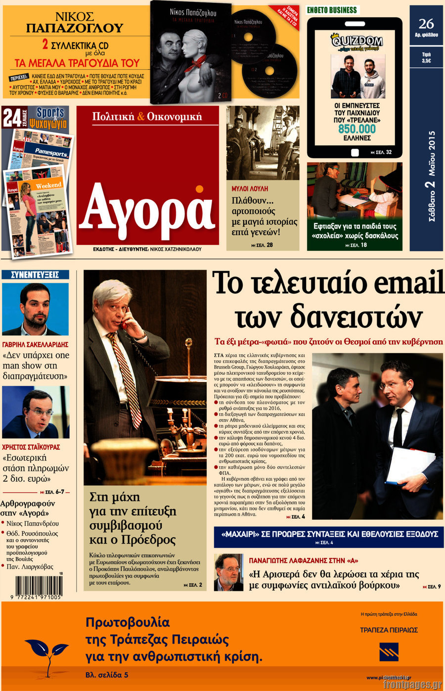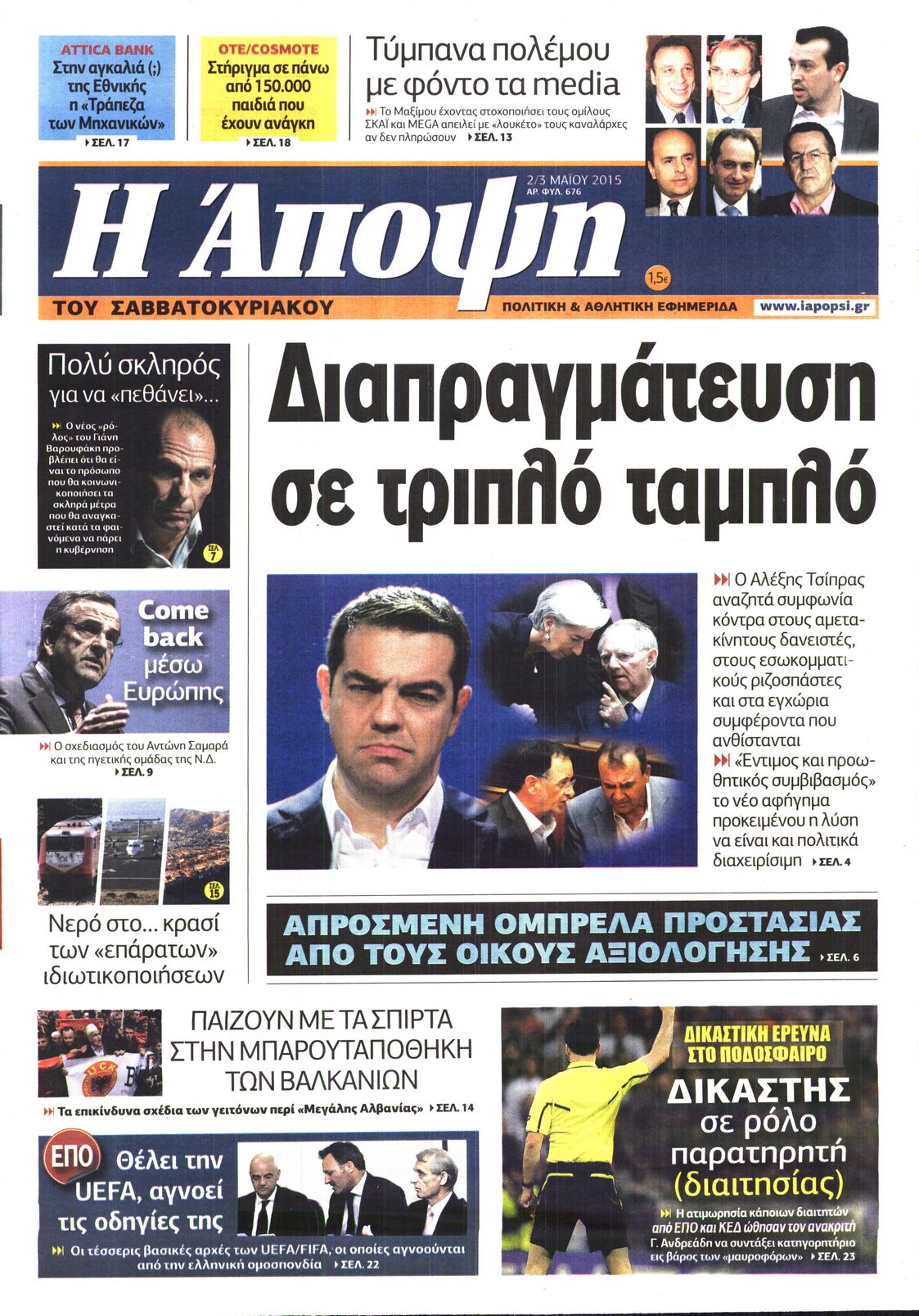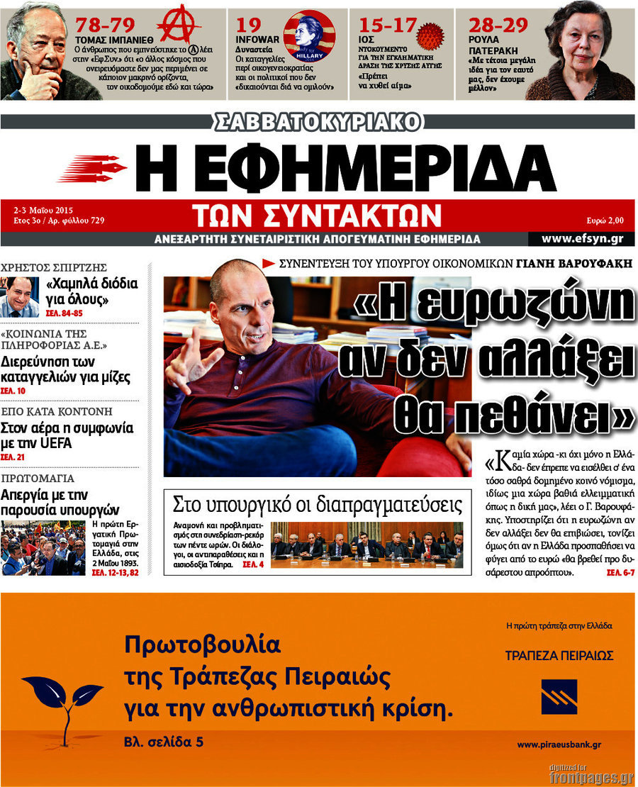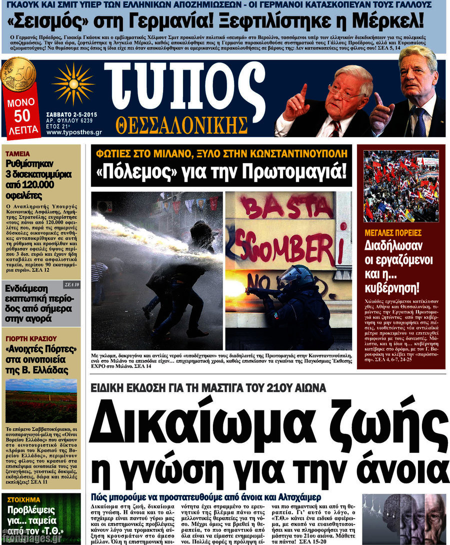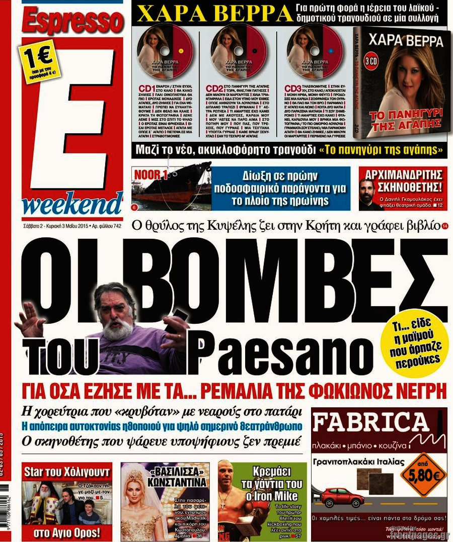 Οι πολιτικές εφημερίδες 2/5/2015 Enikos Newsroom 07:22, Σάββατο 02 Μαΐου 2015 Media Διαβάστε τα σημερινά πρωτοσέλιδα των πολιτικών εφημερίδων: ΠΟΛΙΤΙΚΕΣ ΕΦΗΜΕΡΙΔΕΣ ΠΡΩΤΟΣΕΛΙΔΑ Μοιράσου το: σχολίασε κι εσύ (0 σχόλια) Ακολουθήστε το enikos.gr στο Google News και μάθετε πρώτοι όλες τις ειδήσεις Δείτε όλες τις τελευταίες ειδήσεις από την Ελλάδα και τον Κόσμο στο enikos.gr Ειδήσεις Ροή Ειδήσεων 3 ώρες πριν Χριστούγεννα στα μπλόκα: Επιμένουν στις κινητοποιήσεις τους οι αγρότες – Ανοίγουν τα διόδια το Σαββατοκύριακο 3 ώρες πριν Ουκρανία: Η άνευ προηγουμένου επίθεση σε ρωσικό τάνκερ στη Μεσόγειο και το μήνυμα προς στον Πούτιν – Το «μακρύ χέρι» του Κιέβου 2 ώρες πριν Πούτιν: Τα μηνύματα σε Ευρώπη και ΝΑΤΟ από το μαραθώνιο «σόου» του – Η απαίτηση για «σεβασμό» και η ειρήνη «με τους όρους» της Μόσχας 3 ώρες πριν Τραμπ: Δεν αποκλείει την πιθανότητα ενός πολέμου στη Βενεζουέλα – «Ο Μαδούρο ξέρει καλύτερα από τον καθένα τι ακριβώς θέλω» 4 ώρες πριν Συνεχίζει να προκαλεί ο Μίτσκοσκι: «Για μένα το όνομα Μακεδονία είναι ιερό» 2 ώρες πριν Ανακαλύφθηκαν αρχαία χρυσά νομίσματα 2.200 ετών που απεικονίζουν τον θεό Απόλλωνα – Η άγνωστη σύνδεση με τον Φίλιππο Β΄ της Μακεδονίας 3 ώρες πριν Ύπνος: Μια κρυφή κατάσταση του εγκεφάλου πριν από τον ύπνο μπορεί να είναι το “κλειδί” για υψηλή ευφυΐα και δημιουργικότητα 4 ώρες πριν Αριθμολογία: Οι άνθρωποι που έχουν γεννηθεί αυτές τις 4 ημερομηνίες, συχνά παρεξηγούνται – «Η καλοσύνη τους κρύβει τεράστια δύναμη» 5 ώρες πριν Ξεχάστε το καθάρισμα το Σαββατοκύριακο: Ο «κανόνας των 20 λεπτών» που θα σας λύσει τα χέρια 6 λεπτά πριν Συρία: Μαζικά πλήγματα των ΗΠΑ σε θέσεις του Ισλαμικού Κράτους – Χέγκσεθ: «Δεν είναι αρχή πολέμου, είναι μια δήλωση εκδίκησης» για το θάνατο των στρατιωτών μας 19 λεπτά πριν Ουκρανία: Ολοκληρώθηκαν οι συνομιλίες με τους Αμερικανούς κι Ευρωπαίους διαπραγματευτές 34 λεπτά πριν Μπαρτσελόνα – Μπασκόνια 134-124: Οι «μπλαουγκράνα» πήραν το ματς της χρονιάς ύστερα από τρεις παρατάσεις 49 λεπτά πριν Φαίη Σκορδά: «Παλιότερα τα κομπλιμέντα τα προσπερνούσα, τώρα τα έχω ανάγκη» 1 ώρα πριν Βασίλης Σπανούλης: Δεν εμφανίστηκε ούτε ένας δημοσιογράφος στην συνέντευξη Τύπου – «Καλησπέρα στον… κανέναν», δείτε βίντεο ENIKOS NETWORK Το ΕΚΑΒ τιμήθηκε από την Ακαδημία Αθηνών για τα 40 χρόνια προσφοράς του Έχετε πραγματικά μεγάλη καρδιά; 10 χαρακτηριστικά όσων έχουν καλοσύνη Αναστολή μέτρων αναγκαστικής εκτέλεσης για κτηνοτρόφους που πλήττονται από την ευλογιά των αιγοπροβάτων Πλήρης επάρκεια προϊόντων στις λαϊκές της Αττικής, παρά τις αγροτικές κινητοποιήσεις – Τι απαντούν οι πωλητές Χαρτογραφώντας το «σημείο χωρίς επιστροφή»: Για πρώτη φορά αποκαλύπτεται με λεπτομέρεια το ακανθώδες όριο της ατμόσφαιρας τ... Η Google καταργεί τη λειτουργία «dark web report» – Πώς θα μπορούν οι χρήστες να διαγράφουν τα δεδομένα τους περισσότερα 22:42 , Παρασκευή 19 Δεκεμβρίου 2025 Γιώργος Γιαννόπουλος για “Το σόι σου”: “Είναι ευτυχία και ευλογία αυτή η σειρά” «Είναι ευτυχία και ευλογία η συγκυρία αυτής της σειράς», θα πει ο Γιώργος Γιαννόπουλος -ο αγαπ... 20:37 , Παρασκευή 19 Δεκεμβρίου 2025 Don’t Forget The Lyrics: Η Έλλη Κοκκίνου υποδέχεται 4 παίκτες που θα κάνουν τα πάντα για να μη χάσουν ούτε… μισή λέξη από τους στίχους Το «Don’t Forget The Lyrics» επιστρέφει απόψε, Παρασκευή 19 Δεκεμβρίου, στις 21:00 με νέο επει... 19:31 , Παρασκευή 19 Δεκεμβρίου 2025 GNTM: Απόψε ο μεγάλος τελικός για τους 4 φιναλίστ Έπειτα από μήνες γεμάτου