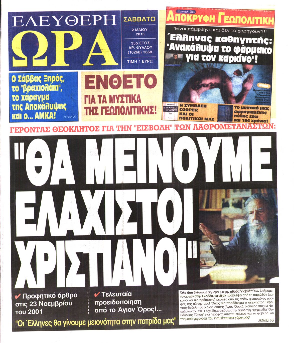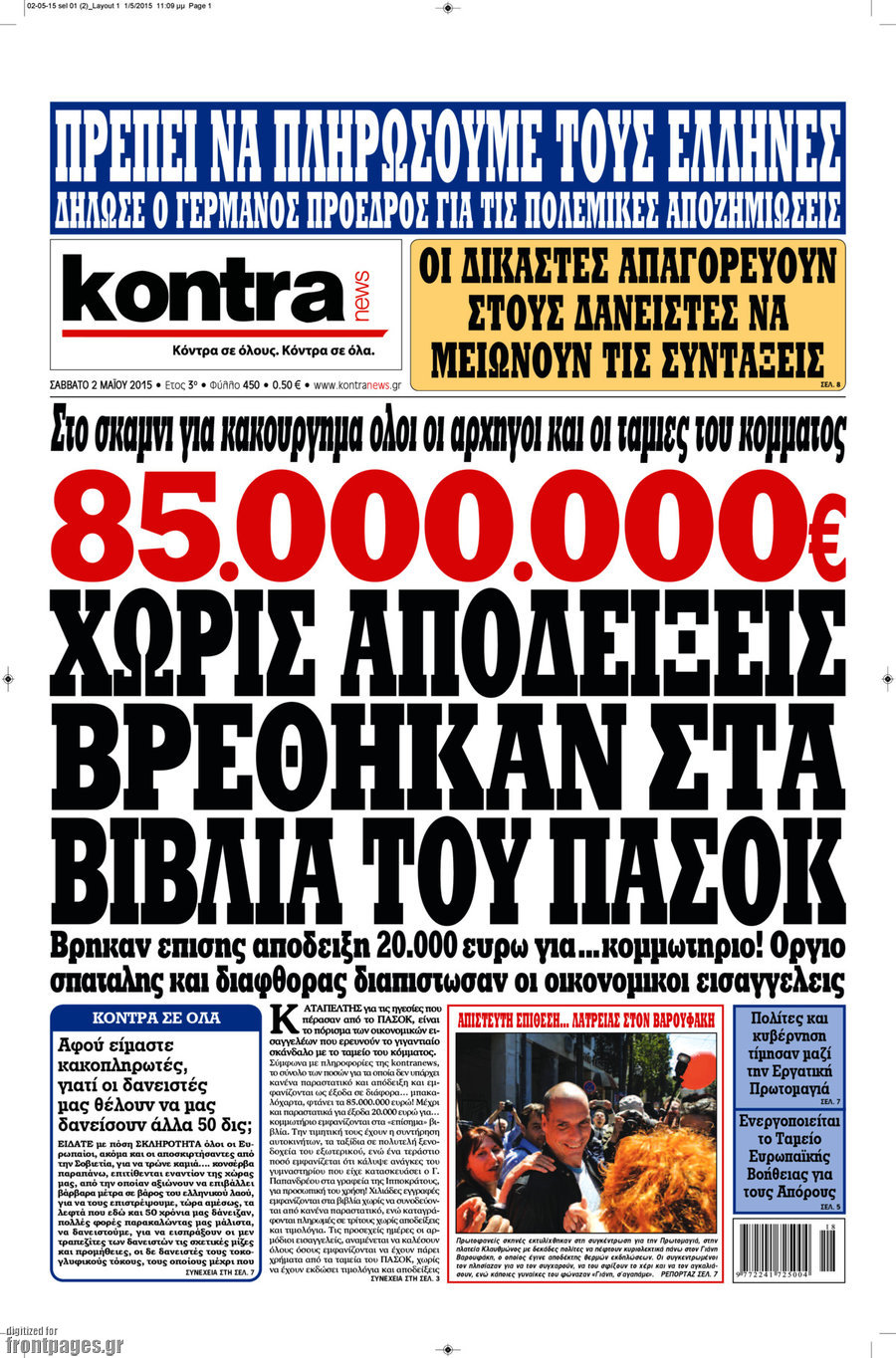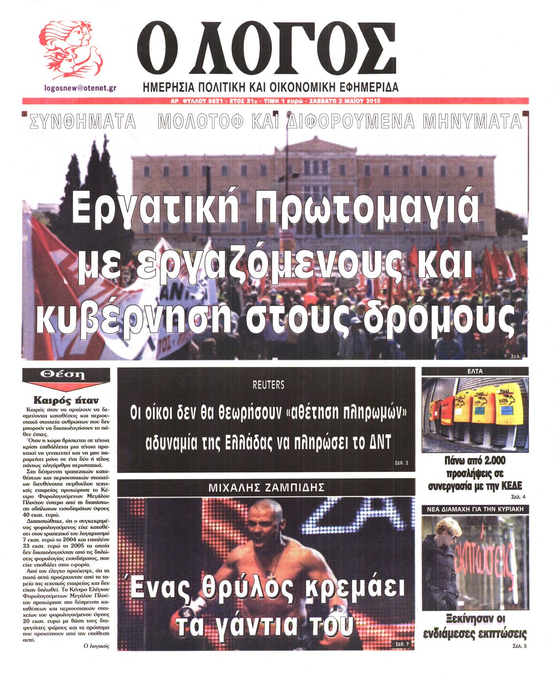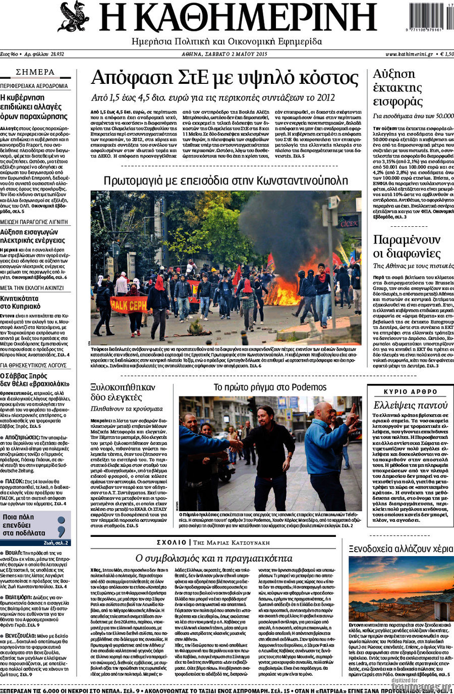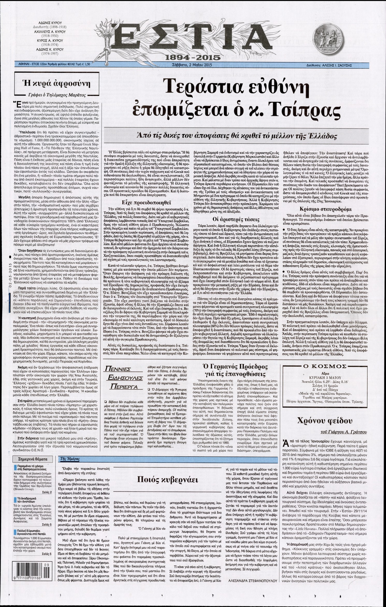 Οι πολιτικές εφημερίδες 2/5/2015 Enikos Newsroom 07:22, Σάββατο 02 Μαΐου 2015 Media Διαβάστε τα σημερινά πρωτοσέλιδα των πολιτικών εφημερίδων: ΠΟΛΙΤΙΚΕΣ ΕΦΗΜΕΡΙΔΕΣ ΠΡΩΤΟΣΕΛΙΔΑ Μοιράσου το: σχολίασε κι εσύ (0 σχόλια) Ακολουθήστε το enikos.gr στο Google News και μάθετε πρώτοι όλες τις ειδήσεις Δείτε όλες τις τελευταίες ειδήσεις από την Ελλάδα και τον Κόσμο στο enikos.gr Ειδήσεις Ροή Ειδήσεων 3 ώρες πριν Χριστούγεννα στα μπλόκα: Επιμένουν στις κινητοποιήσεις τους οι αγρότες – Ανοίγουν τα διόδια το Σαββατοκύριακο 3 ώρες πριν Ουκρανία: Η άνευ προηγουμένου επίθεση σε ρωσικό τάνκερ στη Μεσόγειο και το μήνυμα προς στον Πούτιν – Το «μακρύ χέρι» του Κιέβου 2 ώρες πριν Πούτιν: Τα μηνύματα σε Ευρώπη και ΝΑΤΟ από το μαραθώνιο «σόου» του – Η απαίτηση για «σεβασμό» και η ειρήνη «με τους όρους» της Μόσχας 3 ώρες πριν Τραμπ: Δεν αποκλείει την πιθανότητα ενός πολέμου στη Βενεζουέλα – «Ο Μαδούρο ξέρει καλύτερα από τον καθένα τι ακριβώς θέλω» 4 ώρες πριν Συνεχίζει να προκαλεί ο Μίτσκοσκι: «Για μένα το όνομα Μακεδονία είναι ιερό» 2 ώρες πριν Ανακαλύφθηκαν αρχαία χρυσά νομίσματα 2.200 ετών που απεικονίζουν τον θεό Απόλλωνα – Η άγνωστη σύνδεση με τον Φίλιππο Β΄ της Μακεδονίας 3 ώρες πριν Ύπνος: Μια κρυφή κατάσταση του εγκεφάλου πριν από τον ύπνο μπορεί να είναι το “κλειδί” για υψηλή ευφυΐα και δημιουργικότητα 4 ώρες πριν Αριθμολογία: Οι άνθρωποι που έχουν γεννηθεί αυτές τις 4 ημερομηνίες, συχνά παρεξηγούνται – «Η καλοσύνη τους κρύβει τεράστια δύναμη» 5 ώρες πριν Ξεχάστε το καθάρισμα το Σαββατοκύριακο: Ο «κανόνας των 20 λεπτών» που θα σας λύσει τα χέρια 6 λεπτά πριν Συρία: Μαζικά πλήγματα των ΗΠΑ σε θέσεις του Ισλαμικού Κράτους – Χέγκσεθ: «Δεν είναι αρχή πολέμου, είναι μια δήλωση εκδίκησης» για το θάνατο των στρατιωτών μας 19 λεπτά πριν Ουκρανία: Ολοκληρώθηκαν οι συνομιλίες με τους Αμερικανούς κι Ευρωπαίους διαπραγματευτές 34 λεπτά πριν Μπαρτσελόνα – Μπασκόνια 134-124: Οι «μπλαουγκράνα» πήραν το ματς της χρονιάς ύστερα από τρεις παρατάσεις 49 λεπτά πριν Φαίη Σκορδά: «Παλιότερα τα κομπλιμέντα τα προσπερνούσα, τώρα τα έχω ανάγκη» 1 ώρα πριν Βασίλης Σπανούλης: Δεν εμφανίστηκε ούτε ένας δημοσιογράφος στην συνέντευξη Τύπου – «Καλησπέρα στον… κανέναν», δείτε βίντεο ENIKOS NETWORK Το ΕΚΑΒ τιμήθηκε από την Ακαδημία Αθηνών για τα 40 χρόνια προσφοράς του Έχετε πραγματικά μεγάλη καρδιά; 10 χαρακτηριστικά όσων έχουν καλοσύνη Αναστολή μέτρων αναγκαστικής εκτέλεσης για κτηνοτρόφους που πλήττονται από την ευλογιά των αιγοπροβάτων Πλήρης επάρκεια προϊόντων στις λαϊκές της Αττικής, παρά τις αγροτικές κινητοποιήσεις – Τι απαντούν οι πωλητές Χαρτογραφώντας το «σημείο χωρίς επιστροφή»: Για πρώτη φορά αποκαλύπτεται με λεπτομέρεια το ακανθώδες όριο της ατμόσφαιρας τ... Η Google καταργεί τη λειτουργία «dark web report» – Πώς θα μπορούν οι χρήστες να διαγράφουν τα δεδομένα τους περισσότερα 22:42 , Παρασκευή 19 Δεκεμβρίου 2025 Γιώργος Γιαννόπουλος για “Το σόι σου”: “Είναι ευτυχία και ευλογία αυτή η σειρά” «Είναι ευτυχία και ευλογία η συγκυρία αυτής της σειράς», θα πει ο Γιώργος Γιαννόπουλος -ο αγαπ... 20:37 , Παρασκευή 19 Δεκεμβρίου 2025 Don’t Forget The Lyrics: Η Έλλη Κοκκίνου υποδέχεται 4 παίκτες που θα κάνουν τα πάντα για να μη χάσουν ούτε… μισή λέξη από τους στίχους Το «Don’t Forget The Lyrics» επιστρέφει απόψε, Παρασκευή 19 Δεκεμβρίου, στις 21:00 με νέο επει... 19:31 , Παρασκευή 19 Δεκεμβρίου 2025 GNTM: Απόψε ο μεγάλος τελικός για τους 4 φιναλίστ Έπειτα από μήνες γεμάτου