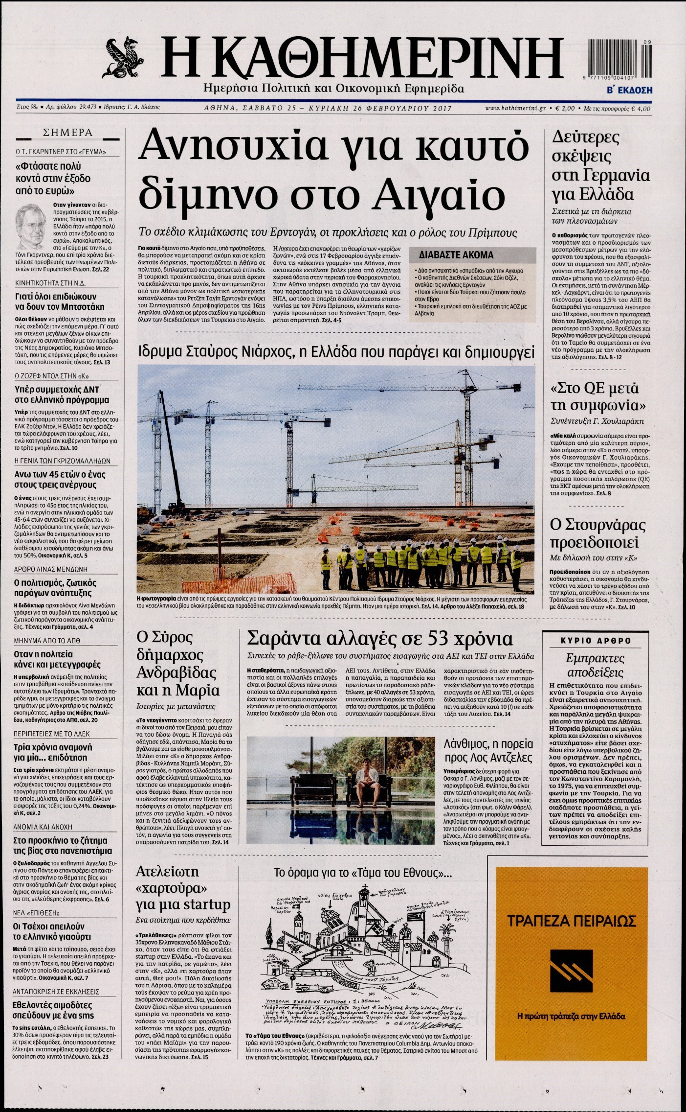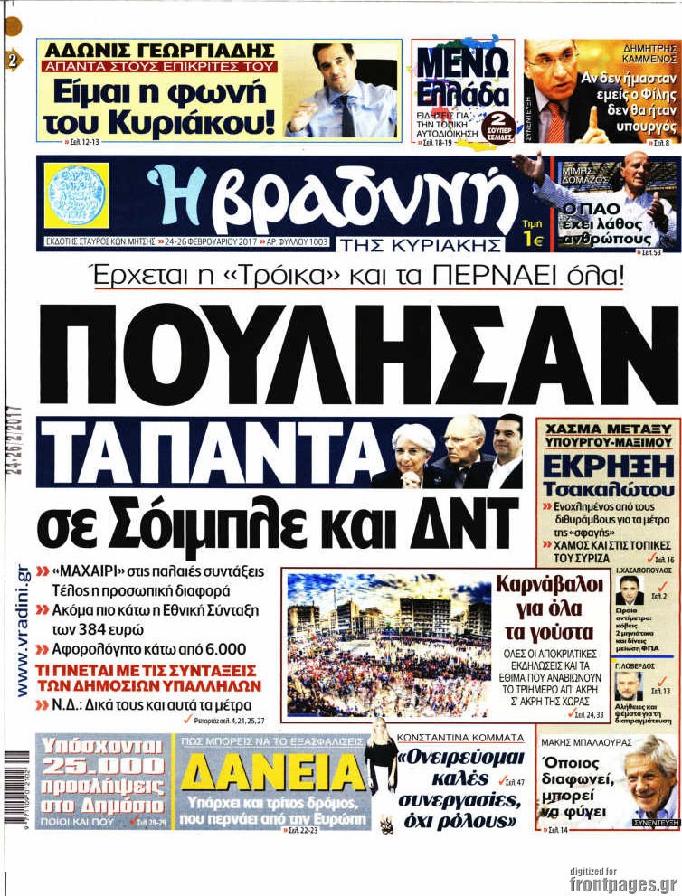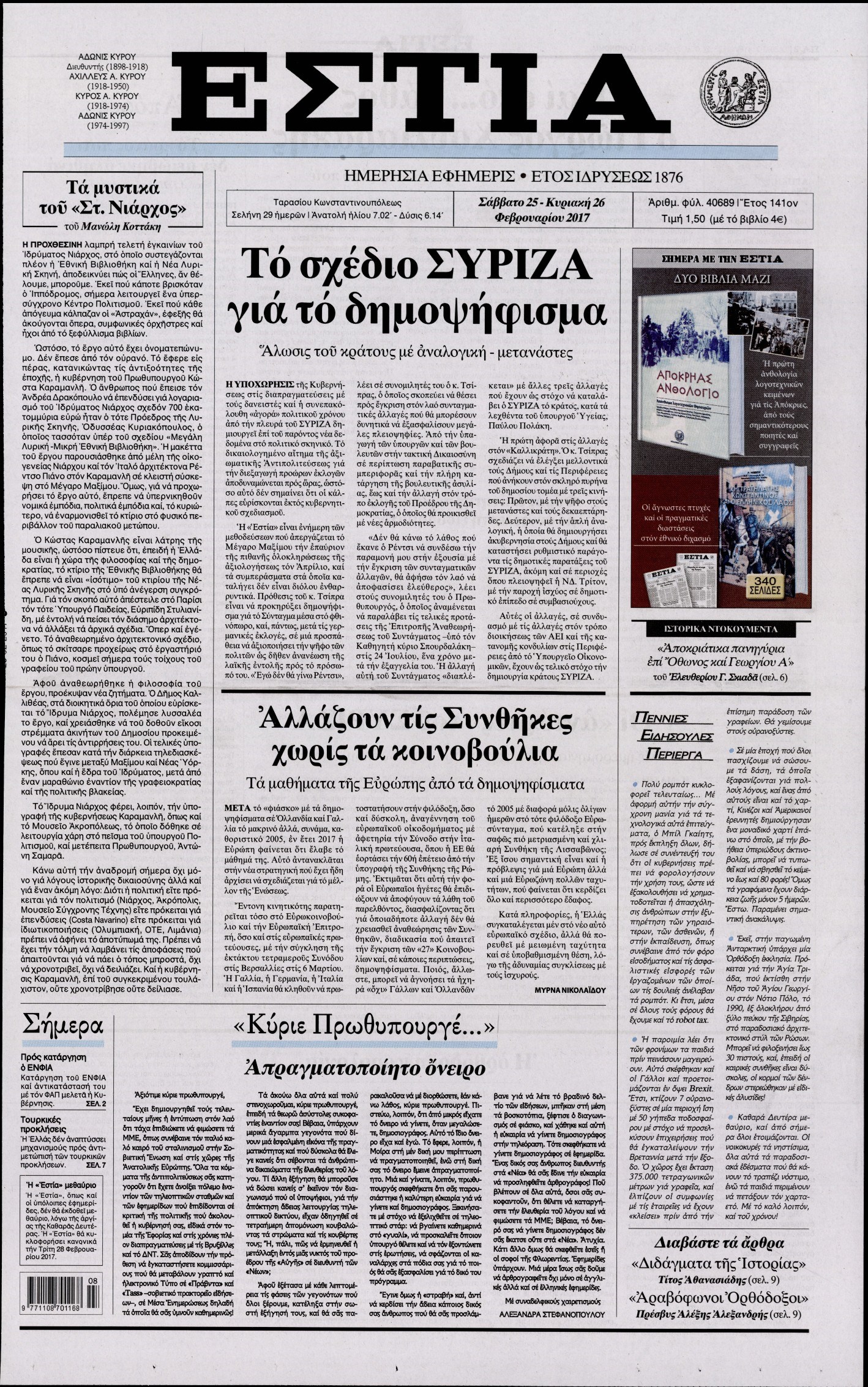 Οι πολιτικές εφημερίδες 25/2/2017 Enikos Newsroom 06:59, Σάββατο 25 Φεβρουαρίου 2017 Media Διαβάστε τα σημερινά πρωτοσέλιδα των πολιτικών εφημερίδων: ΠΟΛΙΤΙΚΕΣ ΕΦΗΜΕΡΙΔΕΣ ΠΡΩΤΟΣΕΛΙΔΑ Μοιράσου το: σχολίασε κι εσύ (0 σχόλια) Ακολουθήστε το enikos.gr στο Google News και μάθετε πρώτοι όλες τις ειδήσεις Δείτε όλες τις τελευταίες ειδήσεις από την Ελλάδα και τον Κόσμο στο enikos.gr Ειδήσεις Ροή Ειδήσεων 2 ώρες πριν Γιορτές με μπλόκα για τους αγρότες: Ανοίγουν διόδια και μοιράζουν προϊόντα στους ταξιδιώτες 2 ώρες πριν Τα αρχεία του Έπσταϊν αποκαλύπτουν φωτογραφία του έκπτωτου πρίγκιπα Άντριου – Είναι ξαπλωμένος στην αγκαλιά 5 γυναικών 1 ώρα πριν Νέες ταυτότητες: Μεγάλη αναμονή για ραντεβού στην Αττική – Τέλος τα ταξίδια εκτός Ελλάδος από τον Αύγουστο για όσους δεν έχουν αλλάξει 2 ώρες πριν Εξαφάνιση 33χρονου γιατρού στην Κρήτη: «Άναψα τα φώτα, τρόμαξε και άρχισε να τρέχει στα χωράφια» – Η τελευταία διαδρομή και η μαρτυρία «κλειδί» 33 λεπτά πριν Ινδία: Επτά ελέφαντες σκοτώθηκαν κατά τη σύγκρουση επιβατικού τρένου με κοπάδι 2 ώρες πριν Μία νέα «χρυσή» περίοδος αρχίζει για 3 ζώδια από σήμερα – «Μία αναπάντεχη ευκαιρία οδηγεί στην επιτυχία» 4 ώρες πριν Αρχαιολόγοι ανακάλυψαν σε χωράφι απεικόνιση 600 ετών ενός Αγίου – Τα στοιχεία που δείχνουν ότι μαρτύρησε 3 ώρες πριν Αγχώνεται για το χριστουγεννιάτικο δώρο που πήρε στην πλούσια σύντροφό του – «Φοβάμαι πως θα το βρει φθηνιάρικο, φοράει βραχιόλια Cartier» 30 λεπτά πριν Διαιτολόγος αποκαλύπτει 9 πρωινές συνήθειες που «λιώνουν» το κοιλιακό λίπος – «Υποστηρίζουν την υγιεινή απώλεια βάρους» 57 δευτερόλεπτα πριν Αρχεία Έπσταϊν: Οι συγκλονιστικές φωτογραφίες – Ο Μάικλ Τζάκσον, ο Μικ Τζάγκερ και ο Κέβιν Σπέισι ανάμεσα στους διάσημους που απεικονίζονται 10 λεπτά πριν Χρήστος Μάντακας: «Θα μπορούσα να είχα φύγει από τη ζωή, δεν μπορούσα να περπατήσω…» 17 λεπτά πριν Εντυπωσιακό βίντεο από «τσουνάμι» πάγου στη Σιβηρία – Πώς προκαλείται το σπάνιο φαινόμενο 25 λεπτά πριν Μυλωνάκης κατά Τζάκρη: Την καλώ να ανασκευάσει το αδιανόητο ψέμα της. Η ανοχή έχει και τα όρια της» 30 λεπτά πριν Διαιτολόγος αποκαλύπτει 9 πρωινές συνήθειες που «λιώνουν» το κοιλιακό λίπος – «Υποστηρίζουν την υγιεινή απώλεια βάρους» ENIKOS NETWORK Είστε μόνιμα απρόσεκτοι; 3 σημάδια που δείχνουν ότι μπορεί να είναι σύμπτωμα πάθησης Πόσα κιλά παίρνουμε πραγματικά τα Χριστούγεννα, σύμφωνα με την επιστήμη – Πώς να το αποτρέψουμε; Χριστούγεννα και Πρωτοχρονιά: Πώς αμείβονται όσοι εργαστούν e-ΕΦΚΑ και ΔΥΠΑ: Έρχονται νέες πληρωμές έως τις 24 Δεκεμβρίου – Ποιοι πάνε ταμείο Χαρτογραφώντας το «σημείο χωρίς επιστροφή»: Για πρώτη φορά αποκαλύπτεται με λεπτομέρεια το ακανθώδες όριο της ατμόσφαιρας τ... Η Google καταργεί τη λειτουργία «dark web report» – Πώς θα μπορούν οι χρήστες να διαγράφουν τα δεδομένα τους περισσότερα 11:41 , Σάββατο 20 Δεκεμβρίου 2025 «Η αγάπη δεν χάνεται ποτέ»: Η μικρού μήκους ταινία κινουμένων σχεδίων που θέτει ερωτήματα για τη ζωή και τον θάνατο Ο θάνατος είναι ένα από τα πιο σκληρά θέματα που καλείται να διαχειριστεί κάποιος στη διάρκεια... 09:30 , Σάββατο 20 Δεκεμβρίου 2025 «Porto Leone: Στη γειτονιά με τα κόκκινα φανάρια» – Ο Χρόνης αποκαλύπτει στην Αλεξάνδρα το μυστικό για το παιδί της Λένας Η μεγάλη δραματική σειρά του Apha «Porto Leone: Στη γειτονιά με τα κόκκινα φανάρια» μας μεταφέ... 08:14 , Σάββατο 20 Δεκεμβρίου 2025 Τρομεροί γονείς: Η Μαρία Καβογιάννη εισβάλλει στο σπίτι της οικογένειας Στεφανίδη Όσα θ
