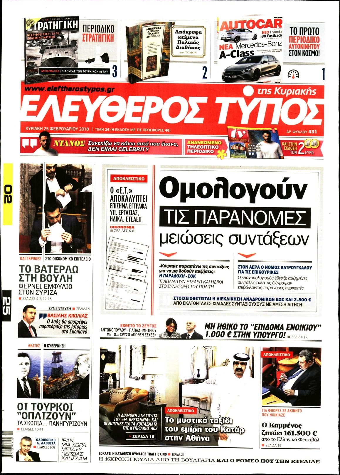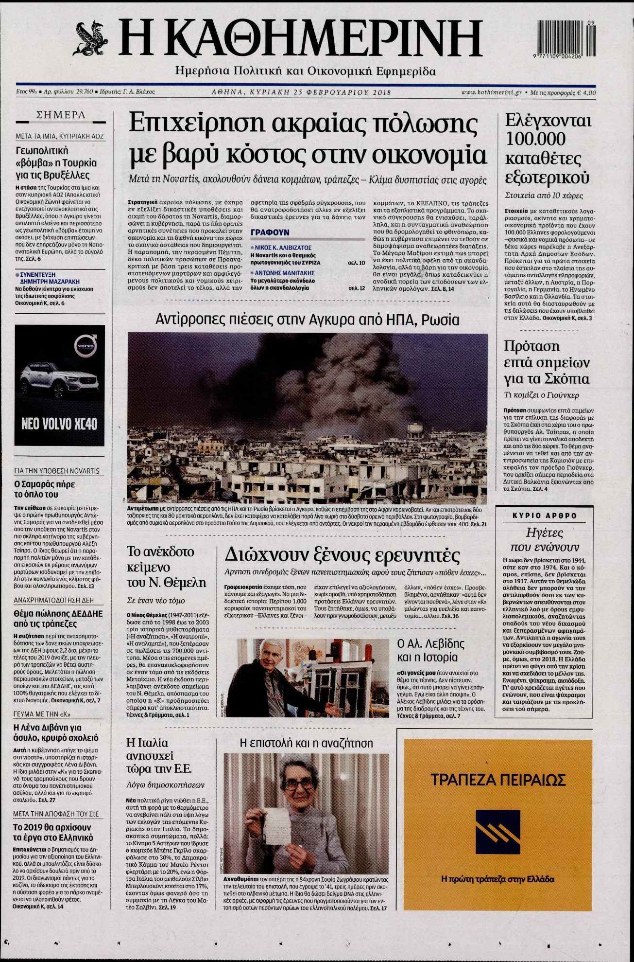 Οι πολιτικές εφημερίδες 25/2/2018 Enikos Newsroom 07:30, Κυριακή 25 Φεβρουαρίου 2018 Media Διαβάστε τα σημερινά πρωτοσέλιδα των πολιτικών εφημερίδων: ΠΟΛΙΤΙΚΕΣ ΕΦΗΜΕΡΙΔΕΣ ΠΡΩΤΟΣΕΛΙΔΑ Μοιράσου το: σχολίασε κι εσύ (0 σχόλια) Ακολουθήστε το enikos.gr στο Google News και μάθετε πρώτοι όλες τις ειδήσεις Δείτε όλες τις τελευταίες ειδήσεις από την Ελλάδα και τον Κόσμο στο enikos.gr Ειδήσεις Ροή Ειδήσεων 1 ώρα πριν Υπόθεση Έπσταϊν: Το Υπουργείο Δικαιοσύνης δημοσιοποίησε μια σειρά από εξαιρετικά επεξεργασμένα αρχεία – «Λείπουν τα πιο σημαντικά έγγραφα», λένε οι Δημοκρατικοί 38 λεπτά πριν Ο «χάρτης» με τις αυξήσεις και τις φοροελαφρύνσεις του 2026 – Ποιοι και πόσα κερδίζουν 11 ώρες πριν Χριστούγεννα στα μπλόκα: Επιμένουν στις κινητοποιήσεις τους οι αγρότες – Ανοίγουν τα διόδια το Σαββατοκύριακο 2 ώρες πριν ΟΝΕΧ – MEGATUGS: Ξεκίνησε η ναυπήγηση ρυμουλκών στην Ελλάδα – Προθάλαμος πολεμικών πλοίων – Δείτε φωτογραφίες και βίντεο 2 ώρες πριν Καιρός: Αλλαγή σκηνικού σήμερα με βροχές και πτώση της θερμοκρασίας – Οι προβλέψεις των μετεωρολόγων για τα Χριστούγεννα 3 ώρες πριν Αυγά: Πόσα μπορείτε να τρώτε την ημέρα με ασφάλεια για μέγιστη πρόσληψη πρωτεΐνης 4 ώρες πριν Τα ζώδια σήμερα, Σάββατο 20 Δεκεμβρίου: Παρθένοι, το σύμπαν σας δίνει το κλειδί 3 ώρες πριν Οπτική ψευδαίσθηση: Μόνο αν είσαι ο Σέρλοκ Χολμς θα βρεις τον αριθμό «87» σε 7 δευτερόλεπτα 1 ώρα πριν Αρχαιολόγοι ανακάλυψαν σε χωράφι απεικόνιση 600 ετών ενός Αγίου – Τα στοιχεία που δείχνουν ότι μαρτύρησε 1 λεπτό πριν Ουκρανία: Drones έπληξαν εξέδρα πετρελαίου και πολεμικό πλοίο της Ρωσίας στην Κασπία 10 λεπτά πριν Παιδική υπέρταση: Μια σιωπηλή απειλή που αυξάνεται διεθνώς 11 λεπτά πριν Αγχώνεται για το χριστουγεννιάτικο δώρο που πήρε στην πλούσια σύντροφό του – «Φοβάμαι πως θα το βρει φθηνιάρικο, φοράει βραχιόλια Cartier» 17 λεπτά πριν Enerwave: Το νέο «ρεύμα» στη λιανική ενέργειας που αλλάζει την εμπειρία του καταναλωτή 22 λεπτά πριν Γιώργος Μαζωνάκης: Τη Δευτέρα η μήνυση του τραγουδιστή κατά του 22χρονου ENIKOS NETWORK Πόσα κιλά παίρνουμε πραγματικά τα Χριστούγεννα, σύμφωνα με την επιστήμη – Πώς να το αποτρέψουμε; Το δημοφιλές ρόφημα που αυξάνει την πίεση πιο γρήγορα και από το αλάτι Mega χριστουγεννιάτικη φορολοταρία: «Κλείδωσε» η ημερομηνία για την κλήρωση – Ερωτήσεις και απαντήσεις Αναστολή μέτρων αναγκαστικής εκτέλεσης για κτηνοτρόφους που πλήττονται από την ευλογιά των αιγοπροβάτων Χαρτογραφώντας το «σημείο χωρίς επιστροφή»: Για πρώτη φορά αποκαλύπτεται με λεπτομέρεια το ακανθώδες όριο της ατμόσφαιρας τ... Η Google καταργεί τη λειτουργία «dark web report» – Πώς θα μπορούν οι χρήστες να διαγράφουν τα δεδομένα τους περισσότερα 08:14 , Σάββατο 20 Δεκεμβρίου 2025 Τρομεροί γονείς: Η Μαρία Καβογιάννη εισβάλλει στο σπίτι της οικογένειας Στεφανίδη Όσα θα δούμε στο νέο διπλό επεισόδιο της σειράς «Τρομεροί γονείς», σήμερα Σάββατο 20 Δεκεμβρίο... 05:48 , Σάββατο 20 Δεκεμβρίου 2025 Οι οικονομικές εφημερίδες 20/12/2025 Διαβάστε τα πρωτοσέλιδα από τις οικονομικές εφημερίδες, σήμερα 20/12/2025. 05:43 , Σάββατο 20 Δεκεμβρίου 2025 Οι αθλητικές εφημερίδες 20/12/2025 Διαβάστε τα πρωτοσέλιδα από τις αθλητικές εφημερίδες, σήμερα 20/12/2025. 05:38 , Σάββατο 20 Δεκεμβρίου 2025 Οι πολιτικές εφημερίδες 20/12/2025 Διαβάστε τα πρωτοσέλιδα από τις πολιτικές εφημερίδες, σήμερα 20/12/2025. ΤΕΛΕΥΤΑΙΕΣ ΕΙΔΗΣΕΙΣ 10 λεπτά πριν Παιδική υπέρταση: Μια σιωπηλή απειλή που αυξάνεται... 11 λεπτά πριν Αγχώνεται για το χριστουγεννιάτικο δώρο που