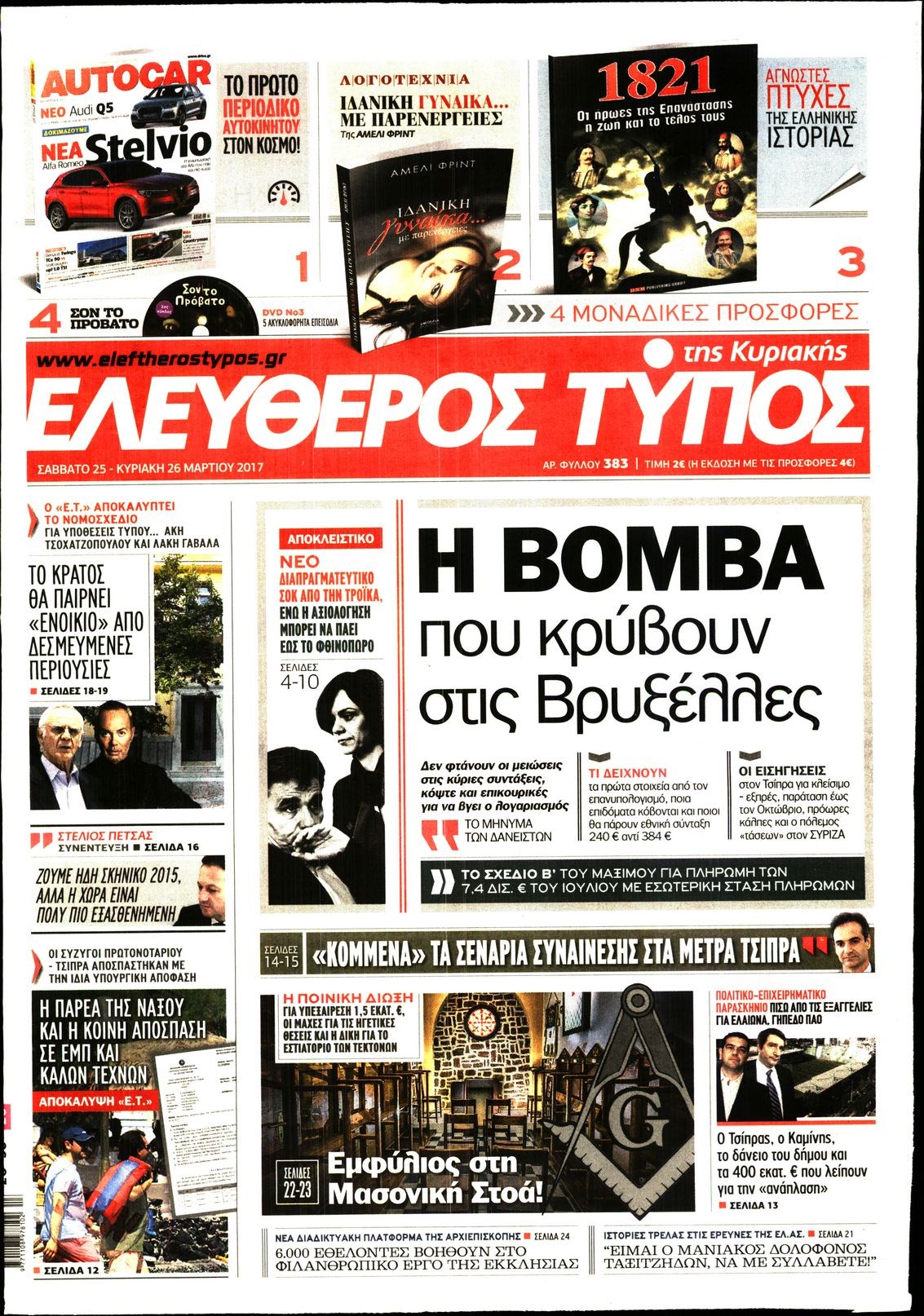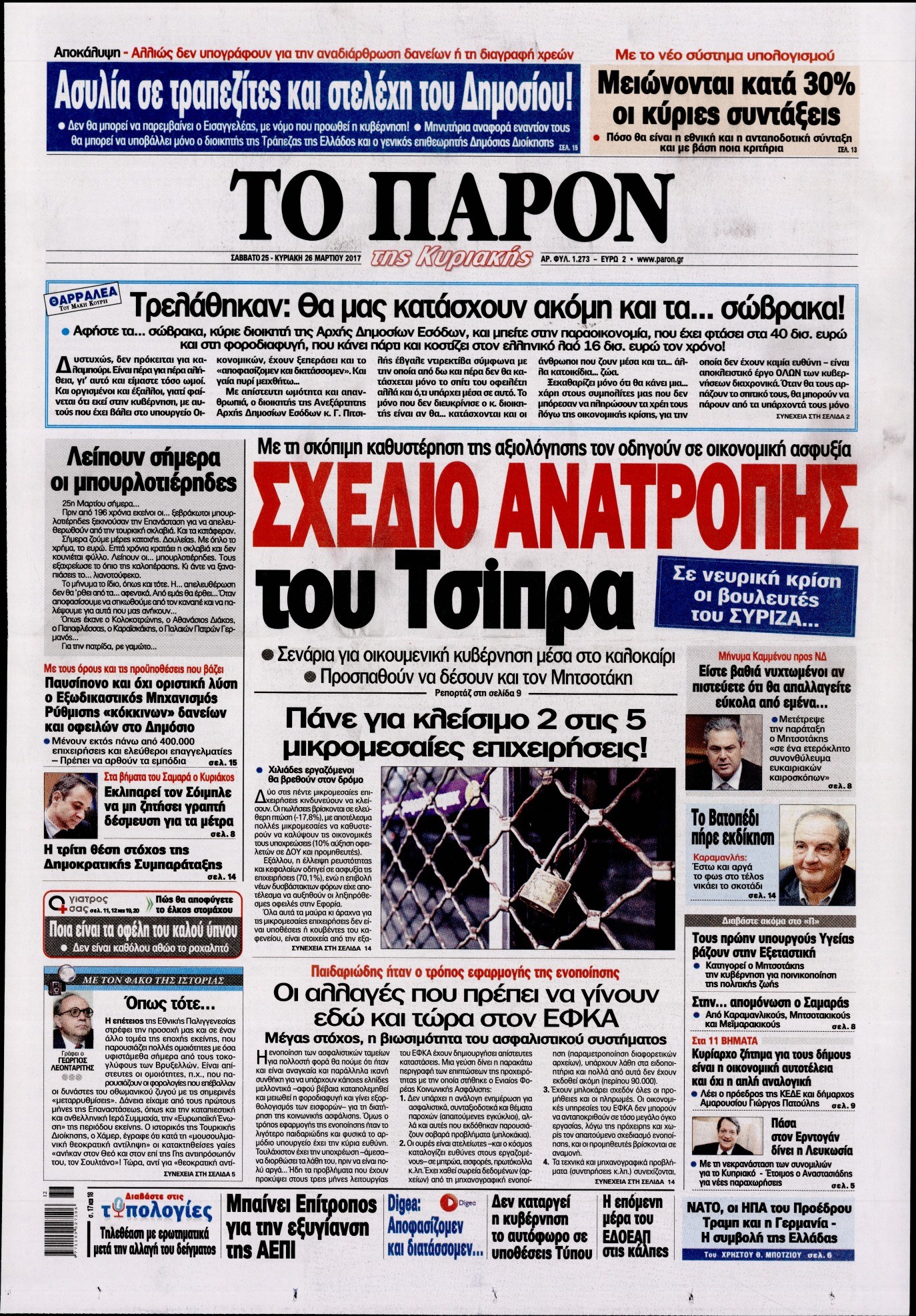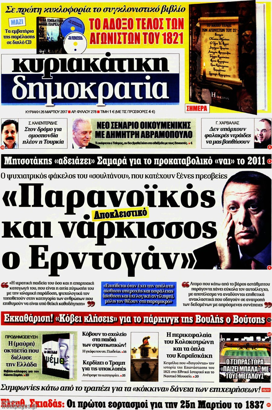 Οι πολιτικές εφημερίδες 25/3/2017 Enikos Newsroom 07:23, Σάββατο 25 Μαρτίου 2017 Media Διαβάστε τα σημερινά πρωτοσέλιδα των πολιτικών εφημερίδων: ΠΟΛΙΤΙΚΕΣ ΕΦΗΜΕΡΙΔΕΣ ΠΡΩΤΟΣΕΛΙΔΑ Μοιράσου το: σχολίασε κι εσύ (0 σχόλια) Ακολουθήστε το enikos.gr στο Google News και μάθετε πρώτοι όλες τις ειδήσεις Δείτε όλες τις τελευταίες ειδήσεις από την Ελλάδα και τον Κόσμο στο enikos.gr Ειδήσεις Ροή Ειδήσεων 46 λεπτά πριν Φοροδιαφυγή: Ποιοι φορολογούμενοι κινδυνεύουν να πληρώσουν «τσουχτερά» πρόστιμα 8 λεπτά πριν Φοινικούντα: Παραδόθηκε 30χρονος στην Καλαμάτα για τη διπλή δολοφονία 24 λεπτά πριν Αγρότες: Ανυποχώρητοι στα μπλόκα – Στις Σέρρες σήμερα η κρίσιμη συνεδρίαση της Πανελλαδικής Επιτροπής 37 λεπτά πριν Τα επίσημα χρονοδιαγράμματα που η Τουρκία θα παραλάβει τα Eurofighter 9 ώρες πριν «Θύελλα» αντιδράσεων για τον Νίκο Παππά μετά την επίθεση στον δημοσιογράφο Νίκο Γιαννόπουλο – Η μήνυση, οι δηλώσεις και η έξοδος από την ευρωομάδα του ΣΥΡΙΖΑ 2 ώρες πριν Καούρα: Το μπαχαρικό που είναι «εξίσου αποτελεσματικό» με την ομεπραζόλη, σύμφωνα με ειδικούς 3 ώρες πριν Τα ζώδια σήμερα, Πέμπτη 18 Δεκεμβρίου: Λέοντες, η καρδιά σας θέλει να εκφραστεί 2 ώρες πριν Οπτική ψευδαίσθηση: Μόνο οι πιο έξυπνοι άνθρωποι θα βρουν 7 ξωτικά 15 δευτερόλεπτα 23 ώρες πριν 20 χρόνια τα Χριστούγεννα ξεκινούν στα Public με μεγάλη ποικιλία σε δώρα! 5 λεπτά πριν Την Κυριακή με τη Realnews: Δωροεπιταγή 10€ 8 λεπτά πριν Φοινικούντα: Παραδόθηκε 30χρονος στην Καλαμάτα για τη διπλή δολοφονία 10 λεπτά πριν Έδεσσα: Χωρίς τις αισθήσεις ανασύρθηκε ηλικιωμένη έπειτα από φωτιά σε μονοκατοικία 15 λεπτά πριν «Το σόι σου»: Backstage στα γυρίσματα για το εορταστικό επεισόδιο 22 λεπτά πριν e-ΕΦΚΑ και ΔΥΠΑ: Προτελευταία ημέρα πληρωμών σήμερα ENIKOS NETWORK Ουρική αρθρίτιδα: Μεγάλη μελέτη αποκαλύπτει τι μπορεί να προκαλεί τη νόσο Τι σημαίνει όταν ο σκύλος σας σάς φέρνει τυχαία αντικείμενα, σύμφωνα με εκπαιδεύτρια Οφειλές προς το Δημόσιο: «Φρένο» στα σενάρια για νέα ρύθμιση – Τι απαντά το υπουργείο Εθνικής Οικονομίας και Οικονομικών Φοροδιαφυγή: Ποιοι φορολογούμενοι κινδυνεύουν να πληρώσουν «τσουχτερά» πρόστιμα Χαρτογραφώντας το «σημείο χωρίς επιστροφή»: Για πρώτη φορά αποκαλύπτεται με λεπτομέρεια το ακανθώδες όριο της ατμόσφαιρας τ... Η Google καταργεί τη λειτουργία «dark web report» – Πώς θα μπορούν οι χρήστες να διαγράφουν τα δεδομένα τους περισσότερα 08:00 , Πέμπτη 18 Δεκεμβρίου 2025 Την Κυριακή με τη Realnews: Δωροεπιταγή 10€ Δωροεπιταγή αξίας 10€ για αγορές άνω των 60€ από τα πολυκαταστήματα FactoryOutlet H προσφορά ι... 07:50 , Πέμπτη 18 Δεκεμβρίου 2025 «Το σόι σου»: Backstage στα γυρίσματα για το εορταστικό επεισόδιο «Το σόι σου» φορά τα γιορτινά του για τα Χριστούγεννα και η Όλγα Λαφαζάνη, με την κάμερα του «... 07:36 , Πέμπτη 18 Δεκεμβρίου 2025 Οι αθλητικές μεταδόσεις 18/12/2025 – Πού θα δείτε τον αγώνα της ΑΕΚ με την Κραϊόβα για το Conference League Τα ματς ΑΕΚ – Ουνιβερσιτάτεα Κραϊόβα για το Conference League και Παναθηναϊκός – Χάποελ Τελ Αβ... 05:48 , Πέμπτη 18 Δεκεμβρίου 2025 Οι οικονομικές εφημερίδες 18/12/2025 Διαβάστε τα πρωτοσέλιδα από τις οικονομικές εφημερίδες, σήμερα 18/12/2025. ΤΕΛΕΥΤΑΙΕΣ ΕΙΔΗΣΕΙΣ 5 λεπτά πριν Την Κυριακή με τη Realnews: Δωροεπιταγή 10€ 8 λεπτά πριν Φοινικούντα: Παραδόθηκε 30χρονος στην Καλαμάτα για τη... 10 λεπτά πριν Έδεσσα: Χωρίς τις αισθήσεις ανασύρθηκε ηλικιωμένη... 15 λεπτά πριν «Το σόι σου»: Backstage στα γυρίσματα για το εορταστικό... 22 λεπτά πριν e-ΕΦΚΑ και ΔΥΠΑ: Προτελευταία ημέρα πληρωμών σήμερα 24 λεπτά πριν Αγρότε