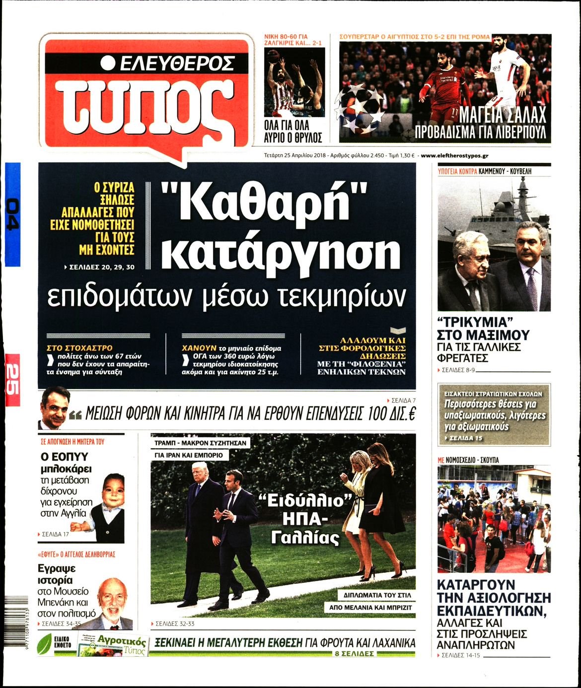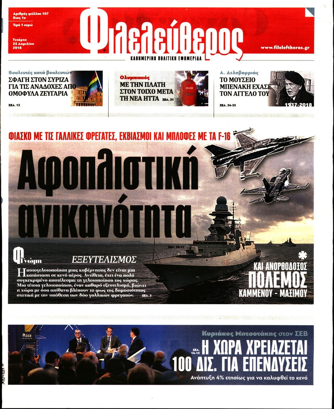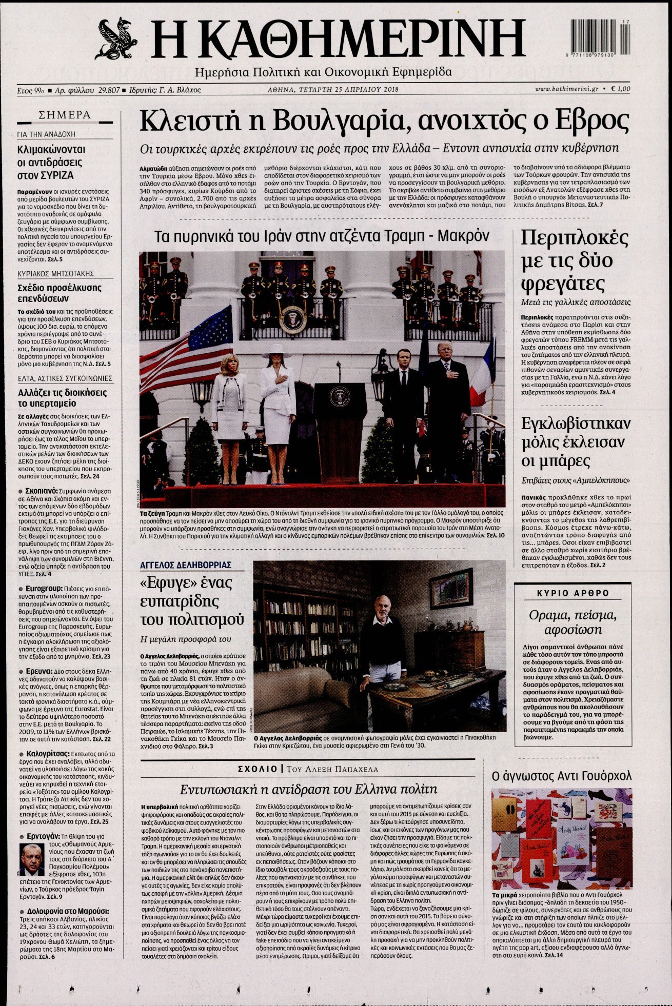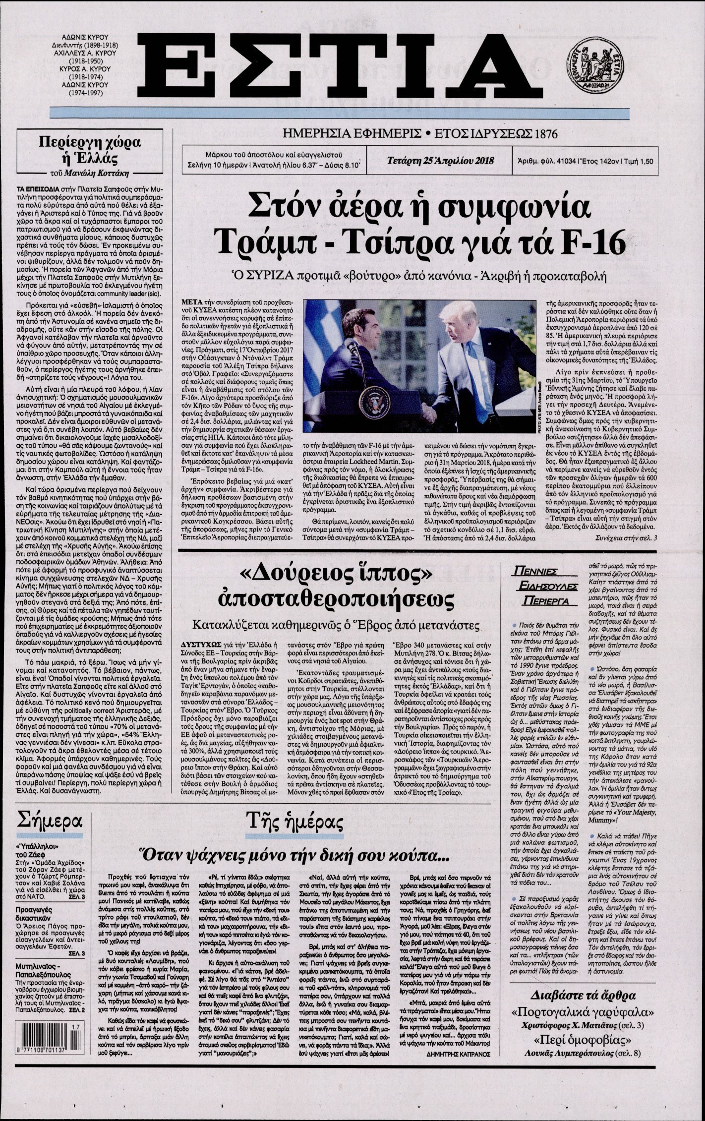 Οι πολιτικές εφημερίδες 25/4/2018 Enikos Newsroom 07:35, Τετάρτη 25 Απριλίου 2018 Media Διαβάστε τα σημερινά πρωτοσέλιδα των πολιτικών εφημερίδων: ΠΟΛΙΤΙΚΕΣ ΕΦΗΜΕΡΙΔΕΣ ΠΡΩΤΟΣΕΛΙΔΑ Μοιράσου το: σχολίασε κι εσύ (0 σχόλια) Ακολουθήστε το enikos.gr στο Google News και μάθετε πρώτοι όλες τις ειδήσεις Δείτε όλες τις τελευταίες ειδήσεις από την Ελλάδα και τον Κόσμο στο enikos.gr Ειδήσεις Ροή Ειδήσεων 60 λεπτά πριν Νέες εστίες ακρίβειας «ροκανίζουν» τα εισοδήματα – Πού καταγράφονται οι μεγαλύτερες αυξήσεις 14 λεπτά πριν Συνεχίζουν τις κινητοποιήσεις οι αγρότες: Κλείνουν τις σήραγγες των Τεμπών για τα φορτηγά – Τι θα γίνει τα Χριστούγεννα 42 λεπτά πριν «Έπιασαν δουλειά» οι 8 κάμερες που λειτουργούν πιλοτικά – Περισσότερες από 1.000 παραβάσεις σε 4 ημέρες 23 λεπτά πριν Ουκρανία: Συνομιλίες στη Φλόριντα με υποσημειώσεις και βαθιές διαφωνίες – Το δύσκολο παζλ των διαπραγματεύσεων και το χάσμα Ουάσιγκτον – Μόσχας 1 ώρα πριν Η Τουρκία μοστράρει τις κορβέτες της – Η χαμένη ευκαιρία της Ελλάδας 2 ώρες πριν Οπτική ψευδαίσθηση: Μόνο οι πιο έξυπνοι άνθρωποι θα βρουν τον Άγιο Βασίλη σε 8 δευτερόλεπτα 2 ώρες πριν Άνοια και εγκεφαλικό: Γιατρός προειδοποιεί για ένα δημοφιλές ρόφημα που αυξάνει τον κίνδυνο κατά 290% και 300% αντίστοιχα 3 ώρες πριν Τα ζώδια σήμερα, Δευτέρα 22 Δεκεμβρίου: Ζυγοί, αφήστε την καρδιά σας ελεύθερη 2 ημέρες πριν Enerwave: Το νέο «ρεύμα» στη λιανική ενέργειας που αλλάζει την εμπειρία του καταναλωτή 7 λεπτά πριν Το αδιέξοδο του Ερντογάν με τους ρωσικούς πυραύλους: Τα σενάρια για τα παζάρια μεταξύ Τουρκίας, Ρωσίας και ΗΠΑ για τους S-400 14 λεπτά πριν Συνεχίζουν τις κινητοποιήσεις οι αγρότες: Κλείνουν τις σήραγγες των Τεμπών για τα φορτηγά – Τι θα γίνει τα Χριστούγεννα 14 λεπτά πριν Επανεκκίνηση με τη Λιβύη – Το διπλωματικό παρασκήνιο 20 λεπτά πριν Ανακαλύφθηκε βραχογράφημα που παραπέμπει στον Ηρακλή και την Ύδρα από ελληνικά νομίσματα του 325 π.Χ. 23 λεπτά πριν Ουκρανία: Συνομιλίες στη Φλόριντα με υποσημειώσεις και βαθιές διαφωνίες – Το δύσκολο παζλ των διαπραγματεύσεων και το χάσμα Ουάσιγκτον – Μόσχας ENIKOS NETWORK Αυτή την Κυριακή με τη Realnews: Το μυστήριο των Χριστουγέννων της Vicki Delany, μαζί αστυνομικά μυθηστορήματα Μήπως το σεσουάρ σας σάς αρρωσταίνει; Ποιες οικιακές συσκευές εκπέμπουν τρισεκατομμύρια επιβλαβή σωματίδια, σύμφωνα με μελέ... Νέες εστίες ακρίβειας «ροκανίζουν» τα εισοδήματα – Πού καταγράφονται οι μεγαλύτερες αυξήσεις Νέο έτος ρεκόρ για τον ελληνικό τουρισμό το 2025: «Είμαστε μέσα στους 10 πλέον επισκέψιμους προορισμούς παγκοσμίως» λέει η ... Χαρτογραφώντας το «σημείο χωρίς επιστροφή»: Για πρώτη φορά αποκαλύπτεται με λεπτομέρεια το ακανθώδες όριο της ατμόσφαιρας τ... Η Google καταργεί τη λειτουργία «dark web report» – Πώς θα μπορούν οι χρήστες να διαγράφουν τα δεδομένα τους περισσότερα 07:02 , Δευτέρα 22 Δεκεμβρίου 2025 Αυτή την Κυριακή με τη Realnews: Το μυστήριο των Χριστουγέννων της Vicki Delany – Μαζί αστυνομικά μυθιστορήματα Αυτή την Κυριακή με τη Realnews: Το μυστήριο των Χριστουγέννων της Vicki Delany – Μαζί α... 05:48 , Δευτέρα 22 Δεκεμβρίου 2025 Οι οικονομικές εφημερίδες 22/12/2025 Διαβάστε τα πρωτοσέλιδα από τις οικονομικές εφημερίδες, σήμερα 22/12/2025 05:43 , Δευτέρα 22 Δεκεμβρίου 2025 Οι αθλητικές εφημερίδες 22/12/2025 Διαβάστε τα πρωτοσέλιδα από τις αθλητικές εφημερίδες, σήμερα 22/12/2025. 05:38 , Δευτέρα 22 Δεκεμβρίου 2025 Οι πολιτικές εφημερίδες 22/12/2025 Διαβάστε τα πρωτοσέλιδα από τις πολιτικές εφημερίδες, σήμερα 22/12/2025. ΤΕΛΕΥΤΑΙΕ