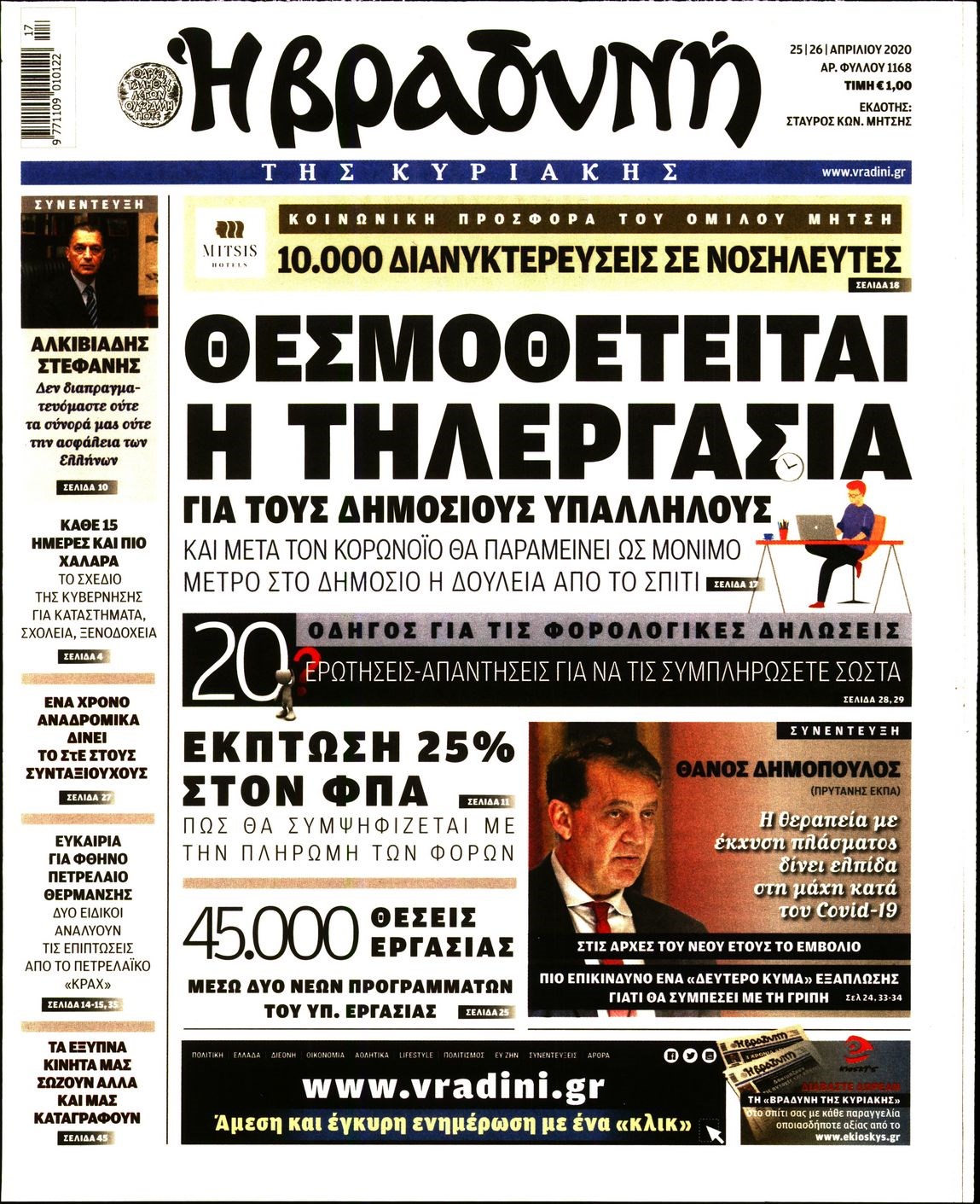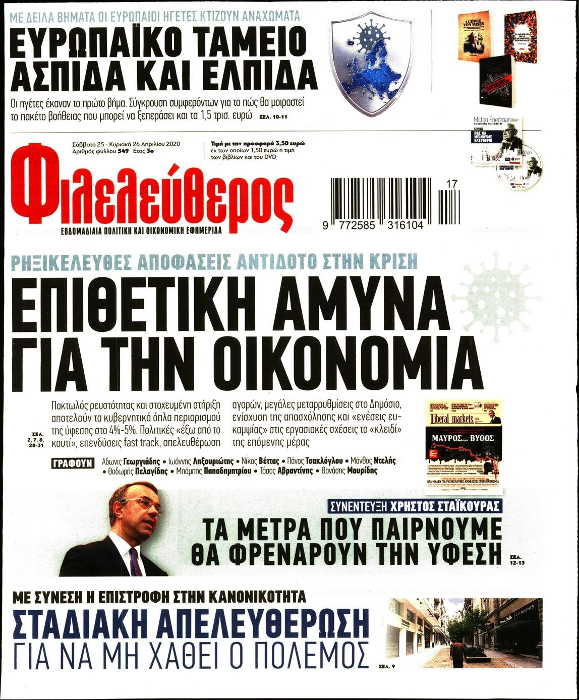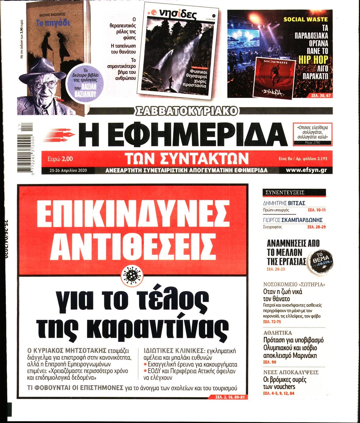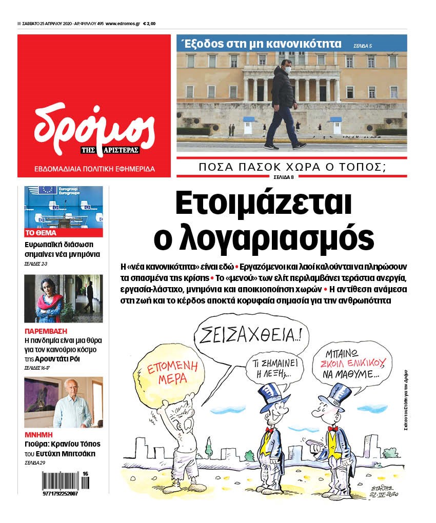 Οι πολιτικές εφημερίδες 25/4/2020 Διονύσης Νίκκας 07:09, Σάββατο 25 Απριλίου 2020 Media Διαβάστε τα πρωτοσέλιδα των πολιτικών εφημερίδων… ΠΟΛΙΤΙΚΕΣ ΕΦΗΜΕΡΙΔΕΣ ΠΡΩΤΟΣΕΛΙΔΑ Μοιράσου το: σχολίασε κι εσύ (0 σχόλια) Ακολουθήστε το enikos.gr στο Google News και μάθετε πρώτοι όλες τις ειδήσεις Δείτε όλες τις τελευταίες ειδήσεις από την Ελλάδα και τον Κόσμο στο enikos.gr Ειδήσεις Ροή Ειδήσεων 3 ώρες πριν Υπόθεση Έπσταϊν: Το Υπουργείο Δικαιοσύνης δημοσιοποίησε μια σειρά από εξαιρετικά επεξεργασμένα αρχεία – «Λείπουν τα πιο σημαντικά έγγραφα», λένε οι Δημοκρατικοί 21 λεπτά πριν Γιορτές με μπλόκα για τους αγρότες: Ανοίγουν διόδια και μοιράζουν προϊόντα στους ταξιδιώτες 54 λεπτά πριν Εξαφάνιση 33χρονου γιατρού στην Κρήτη: «Άναψα τα φώτα, τρόμαξε και άρχισε να τρέχει στα χωράφια» – Η τελευταία διαδρομή και η μαρτυρία «κλειδί» 2 ώρες πριν Ο «χάρτης» με τις αυξήσεις και τις φοροελαφρύνσεις του 2026 – Ποιοι και πόσα κερδίζουν 37 λεπτά πριν Τα αρχεία του Έπσταϊν αποκαλύπτουν φωτογραφία του έκπτωτου πρίγκιπα Άντριου – Είναι ξαπλωμένος στην αγκαλιά 5 γυναικών 44 λεπτά πριν Μία νέα «χρυσή» περίοδος αρχίζει για 3 ζώδια από σήμερα – «Μία αναπάντεχη ευκαιρία οδηγεί στην επιτυχία» 5 ώρες πριν Αυγά: Πόσα μπορείτε να τρώτε την ημέρα με ασφάλεια για μέγιστη πρόσληψη πρωτεΐνης 3 ώρες πριν Αρχαιολόγοι ανακάλυψαν σε χωράφι απεικόνιση 600 ετών ενός Αγίου – Τα στοιχεία που δείχνουν ότι μαρτύρησε 2 ώρες πριν Αγχώνεται για το χριστουγεννιάτικο δώρο που πήρε στην πλούσια σύντροφό του – «Φοβάμαι πως θα το βρει φθηνιάρικο, φοράει βραχιόλια Cartier» 6 λεπτά πριν Πώς η κλιματική αλλαγή επηρεάζει εγκύους και βρέφη – Οι επιπτώσεις των υψηλών θερμοκρασιών 13 λεπτά πριν e-ΕΦΚΑ και ΔΥΠΑ: Οι πληρωμές από 22 έως 24 Δεκεμβρίου – Ποιοι θα δουν χρήματα στους λογαριασμούς τους 21 λεπτά πριν Συνελήφθη οδηγός μηχανής που έτρεχε με 161 χλμ στη Συγγρού – Τον έπιασε το ραντάρ της Τροχαίας 21 λεπτά πριν Γιορτές με μπλόκα για τους αγρότες: Ανοίγουν διόδια και μοιράζουν προϊόντα στους ταξιδιώτες 30 λεπτά πριν Τηλεθέαση (19/12): Κυριάρχησε η σειρά «Το σόι σου» – Τι νούμερα έκανε ο τελικός του GNTM ENIKOS NETWORK Είστε μόνιμα απρόσεκτοι; 3 σημάδια που δείχνουν ότι μπορεί να είναι σύμπτωμα πάθησης Πόσα κιλά παίρνουμε πραγματικά τα Χριστούγεννα, σύμφωνα με την επιστήμη – Πώς να το αποτρέψουμε; Επίδομα παιδιού: Τι αλλάζει από το 2026 – Το όφελος από τις φορολογικές ελαφρύνσεις Mega χριστουγεννιάτικη φορολοταρία: «Κλείδωσε» η ημερομηνία για την κλήρωση – Ερωτήσεις και απαντήσεις Χαρτογραφώντας το «σημείο χωρίς επιστροφή»: Για πρώτη φορά αποκαλύπτεται με λεπτομέρεια το ακανθώδες όριο της ατμόσφαιρας τ... Η Google καταργεί τη λειτουργία «dark web report» – Πώς θα μπορούν οι χρήστες να διαγράφουν τα δεδομένα τους περισσότερα 09:30 , Σάββατο 20 Δεκεμβρίου 2025 «Porto Leone: Στη γειτονιά με τα κόκκινα φανάρια» – Ο Χρόνης αποκαλύπτει στην Αλεξάνδρα το μυστικό για το παιδί της Λένας Η μεγάλη δραματική σειρά του Apha «Porto Leone: Στη γειτονιά με τα κόκκινα φανάρια» μας μεταφέ... 08:14 , Σάββατο 20 Δεκεμβρίου 2025 Τρομεροί γονείς: Η Μαρία Καβογιάννη εισβάλλει στο σπίτι της οικογένειας Στεφανίδη Όσα θα δούμε στο νέο διπλό επεισόδιο της σειράς «Τρομεροί γονείς», σήμερα Σάββατο 20 Δεκεμβρίο... 05:48 , Σάββατο 20 Δεκεμβρίου 2025 Οι οικονομικές εφημερίδες 20/12/2025 Διαβάστε τα πρωτοσέλιδα από τις οικονομικές εφημερίδες, σήμερα 20/12/2025. 05:43 , Σάββατο 20 Δεκεμβρίου 2025 Οι αθλητικές εφημερίδες 20/12/2025 Διαβάστε 