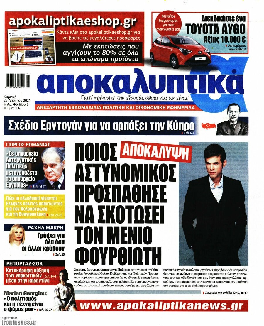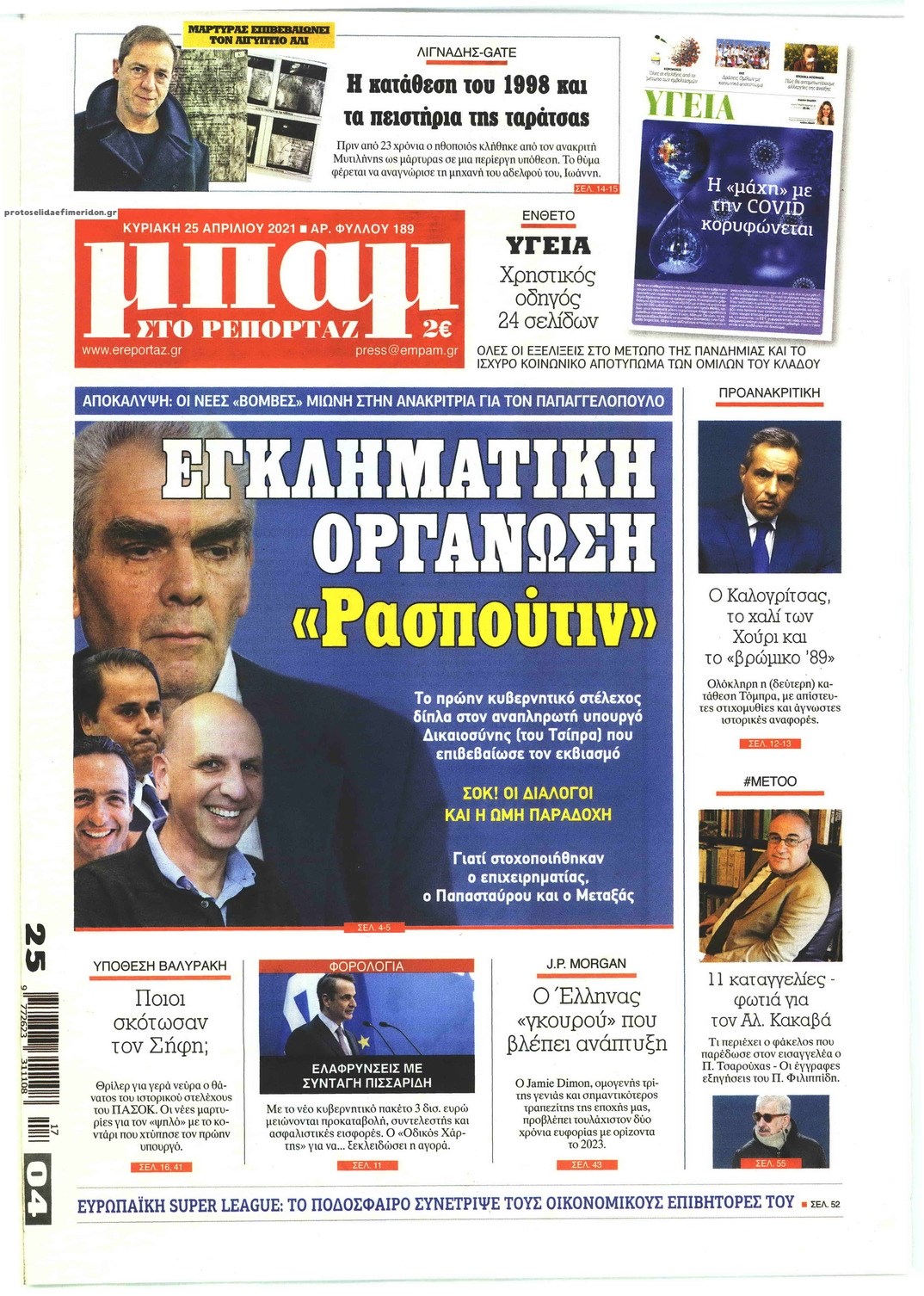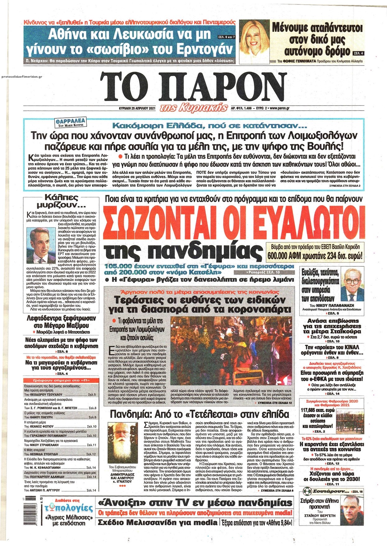 Οι πολιτικές εφημερίδες 25/4/2021 Σήφης Γαρυφαλάκης 07:44, Κυριακή 25 Απριλίου 2021 Media Διαβάστε τα πρωτοσέλιδα των πολιτικών εφημερίδων… ΕΦΗΜΕΡΙΔΕΣ ΠΟΛΙΤΙΚΕΣ ΕΦΗΜΕΡΙΔΕΣ ΠΡΩΤΟΣΕΛΙΔΑ ΠΡΩΤΟΣΕΛΙΔΑ ΕΦΗΜΕΡΙΔΩΝ Μοιράσου το: σχολίασε κι εσύ (0 σχόλια) Ακολουθήστε το enikos.gr στο Google News και μάθετε πρώτοι όλες τις ειδήσεις Δείτε όλες τις τελευταίες ειδήσεις από την Ελλάδα και τον Κόσμο στο enikos.gr Ειδήσεις Ροή Ειδήσεων 2 ώρες πριν Δημοσκόπηση Metron Analysis: Στις 10 μονάδες η διαφορά ΝΔ-ΠΑΣΟΚ, στην 3η θέση η Πλεύση Ελευθερίας – 8 στους 10 στηρίζουν τον αγώνα των αγροτών 6 ώρες πριν Αγρότες: «Όχι στον διάλογο, μας εμπαίζει η κυβέρνηση» – Αποφάσισαν κλιμάκωση των κινητοποιήσεων, τι θα γίνει τα Χριστούγεννα 2 ώρες πριν Νίκος Παππάς στον ΑΝΤ1: «Δεν κρύβομαι – Μετά το συμβάν ακολούθησα κανονικά το πρόγραμμά μου» – ΒΙΝΤΕΟ 3 ώρες πριν Αθήνα: Εξαρθρώθηκε εγκληματική οργάνωση που διακινούσε ναρκωτικά σε μορφή σοκολάτας – Δύο τράπερ ανάμεσα στους 4 συλληφθέντες – ΒΙΝΤΕΟ 2 ώρες πριν Διαμαντής Καραναστάσης: Οδηγούσε υπό την επήρεια αλκοόλ – Του αφαιρέθηκε το δίπλωμα και του επιβλήθηκε πρόστιμο 350 ευρώ 2 ώρες πριν Manifesting: Πώς να συναντήσετε τον σύντροφο της ζωής σας, ανάλογα με τον μήνα γέννησής σας 4 ώρες πριν Γάμος: 11 ψυχρές αλλά ευγενικές φράσεις, που λέει ένας άνδρας όταν σκέφτεται τον χωρισμό 3 ώρες πριν Σφουγγάρισμα: Η συνήθεια που θα σας βοηθήσει να διατηρήσετε το σπίτι σας καθαρό και τακτοποιημένο 2 ημέρες πριν 20 χρόνια τα Χριστούγεννα ξεκινούν στα Public με μεγάλη ποικιλία σε δώρα! 2 λεπτά πριν Στο ΟΑΚΑ για το «Παναθηναϊκός – Χάποελ » η Κίμπερλι Γκίλφοϊλ – ΦΩΤΟ 10 λεπτά πριν Ούρσουλα φον ντερ Λάιεν: Μετατίθεται για τον Ιανουάριο η υπογραφή της εμπορικής συμφωνίας «ΕΕ-MERCOSUR» 15 λεπτά πριν Φοινικούντα: Το Σάββατο απολογείται ο 30χρονος γιος γνωστού επιχειρηματία της Πλάκας που παραδόθηκε – Όσα είπε στους αστυνομικούς και ο ρόλος του στο έγκλημα 24 λεπτά πριν Αυξάνουν την πίεση προς την κυβέρνηση οι αγρότες: Κλείνουν παρακαμπτήριους και ανοίγουν διόδια – Τι θα γίνει τις γιορτές 29 λεπτά πριν Ελισάβετ Κωνσταντινίδου για τον Γεράσιμο Μιχελή και την Πόπη Χριστοδούλου: «Ξέρω ότι έχουν πάει απλώς κάπου αλλού, ότι δεν είναι ο θάνατος έτσι όπως τον έχουμε στο μυαλό μας» ENIKOS NETWORK Σε περίοδο αυξημένης δραστηριότητας η γρίπη στην Ελλάδα-Μέτρα προστασίας από τον ΕΟΔΥ Σκέφτεστε συνέχεια συζητήσεις που έχετε κάνει; Τι σημαίνει αυτό, σύμφωνα με ειδικό Λαγκάρντ: Αισιόδοξη για την ανάπτυξη της Ευρωζώνης, αβέβαιη για τον πληθωρισμό ΑΣΕΠ 2ΓΒ/2025: Σήμερα αρχίζει η υποβολή ενστάσεων – Πότε θα βγουν τα οριστικά αποτελέσματα Χαρτογραφώντας το «σημείο χωρίς επιστροφή»: Για πρώτη φορά αποκαλύπτεται με λεπτομέρεια το ακανθώδες όριο της ατμόσφαιρας τ... Η Google καταργεί τη λειτουργία «dark web report» – Πώς θα μπορούν οι χρήστες να διαγράφουν τα δεδομένα τους περισσότερα 17:45 , Πέμπτη 18 Δεκεμβρίου 2025 ROUK ZOUK: Εορταστικό επεισόδιο με καλεσμένους τους πρωταγωνιστές του «Γιατί ρε πατέρα» Το Σάββατο 20 Δεκεμβρίου στις 21:00, η Ζέτα Μακρυπούλια υποδέχεται εκλεκτούς ηθοποιούς που όλο... 17:20 , Πέμπτη 18 Δεκεμβρίου 2025 Άγιος έρωτας: Η Χριστίνα εξομολογείται στον πατέρα Νικόλαο, απόψε στις 21:00 στον Alpha Η Νότα αποφασίζει να εκδικηθεί τον Πέτρο και τον Στέφανο, για χάρη του Λούη, όμως τα πράγματα ... 16:50 , Πέμπτη 18 Δεκεμβρίου 2025 Να μ’ αγαπάς: Ζωή και Φωτεινή συμφιλιώνονται ως μάνα με κόρη, απόψε στις 20:00 Η ταυτότητα του Άγγελου αποκαλύπτετα