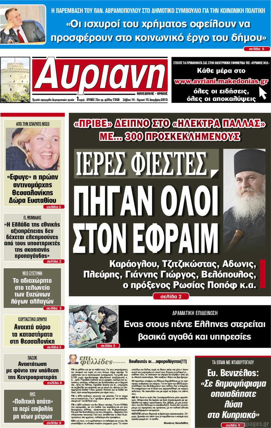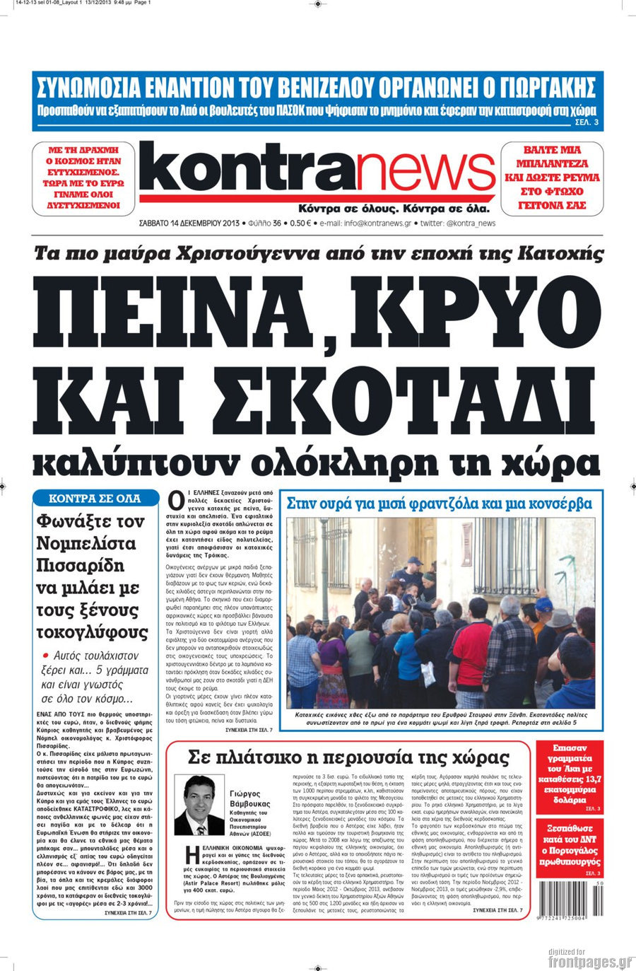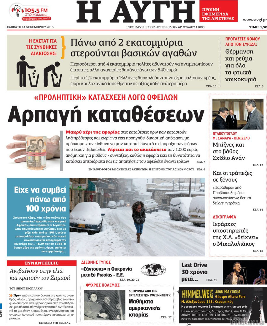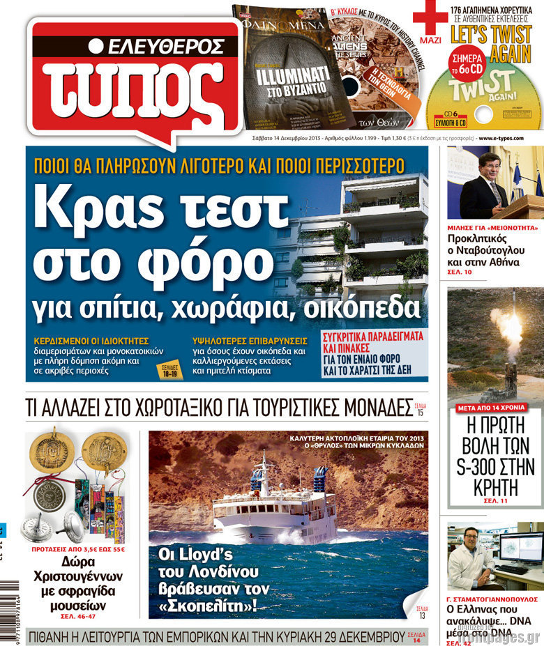 Οι πολιτικές εφημερίδες Enikos Newsroom 08:38, Σάββατο 14 Δεκεμβρίου 2013 Media Οι πολιτικές εφημερίδες Διαβάστε τα πρωτοσέλιδα των πολιτικών εφημερίδων: ΠΟΛΙΤΙΚΕΣ ΕΦΗΜΕΡΙΔΕΣ ΠΡΩΤΟΣΕΛΙΔΑ Μοιράσου το: σχολίασε κι εσύ (0 σχόλια) Ακολουθήστε το enikos.gr στο Google News και μάθετε πρώτοι όλες τις ειδήσεις Δείτε όλες τις τελευταίες ειδήσεις από την Ελλάδα και τον Κόσμο στο enikos.gr Ειδήσεις Ροή Ειδήσεων 5 ώρες πριν Κύκλωμα διακίνησης ναρκωτικών σε σχολεία: Βίντεο ντοκουμέντο από τα βασανιστήρια στους ανήλικους – Συζητούσαν για το πώς θα κάνουν «ξέπλυμα χρήματος» 4 ώρες πριν Κλιμακώνουν τις κινητοποιήσεις τους οι αγρότες: Κλείνουν τη Δευτέρα τις σήραγγες των Τεμπών για τα φορτηγά – Ανοίγουν την Τρίτη τους δρόμους για τους εκδρομείς 5 ώρες πριν Αιματηρό επεισόδιο στον Άγιο Παντελεήμονα – Δύο τραυματίες, αναζητείται ο δράστης 4 ώρες πριν ΗΠΑ: Αυξάνουν την πίεση στην Βενεζουέλα – Το νέο ρεσάλτο σε τάνκερ και ο στόχος του Τραμπ 5 ώρες πριν Κασσελάκης για παραίτηση Μάλαμα: «Η πορεία μας δεν θα καθοριστεί από μεμονωμένα πρόσωπα, μηχανισμούς και προσωπικές ατζέντες» 4 ώρες πριν Αρχαιολογικό θρίλερ στην καρδιά της Ευρώπης: Παράξενο θραύσμα με ανάγλυφα και σφηνοειδή γραφή ανακαλύφθηκε σε μέρος που δεν περίμενε κανείς 5 ώρες πριν Ύπνος: Τι είναι ο «κανόνας 3-3-3» που χρησιμοποιεί ένας γιατρός για να ξεχωρίσει την κόπωση από την αϋπνία 6 ώρες πριν Αριθμολογία: Οι άνθρωποι που έχουν γεννηθεί αυτές τις 4 ημερομηνίες, είναι οι πιο πιστοί και αφοσιωμένοι σύντροφοι 2 ημέρες πριν Enerwave: Το νέο «ρεύμα» στη λιανική ενέργειας που αλλάζει την εμπειρία του καταναλωτή 16 λεπτά πριν Κολομβία: Μονομερής εκεχειρία από τον ELN για την περίοδο των εορτών 31 λεπτά πριν ΗΠΑ: Επιχείρηση αναχαίτισης τάνκερ που συνδέεται με το Ιράν και κατευθυνόταν στη Βενεζουέλα 47 λεπτά πριν Στιβ Γουίτκοφ: «Eποικοδομητικές» οι συνομιλίες με τη Ρωσία για την Ουκρανία 1 ώρα πριν Άννα Βίσση: Απάντησε στις φήμες περί αποχώρησης από τις πίστες – «…όσο έχω φωνή θα σας τραγουδάω» 1 ώρα πριν David και Victoria Beckham: Ξύπνησαν… μπλοκαρισμένοι στο Instagram, από τον γιο τους Brooklyn ENIKOS NETWORK Οι γυναίκες έχουν βρει μια νέα απόλαυση στην κρεβατοκάμαρα που οι περισσότεροι άνδρες αγνοούν Christmas glow: 5 χρυσές συμβουλές για επιδερμίδα που λάμπει από ομορφιά τα Χριστούγεννα Νέο έτος ρεκόρ για τον ελληνικό τουρισμό το 2025: «Είμαστε μέσα στους 10 πλέον επισκέψιμους προορισμούς παγκοσμίως» λέει η ... Τιμές καυσίμων: Πόσο θα πληρώσουν οι εκδρομείς των Χριστουγέννων – Το κόστος μετακινήσεων σε δημοφιλείς προορισμούς Χαρτογραφώντας το «σημείο χωρίς επιστροφή»: Για πρώτη φορά αποκαλύπτεται με λεπτομέρεια το ακανθώδες όριο της ατμόσφαιρας τ... Η Google καταργεί τη λειτουργία «dark web report» – Πώς θα μπορούν οι χρήστες να διαγράφουν τα δεδομένα τους περισσότερα 00:13 , Δευτέρα 22 Δεκεμβρίου 2025 MasterChef: Στον… αέρα το τρέιλερ του 10ου κύκλου – ΒΙΝΤΕΟ Κυκλοφόρησε το τρέιλερ για τον 10ο κύκλο του MasterChef, σηματοδοτώντας την επιστροφή του δημο... 21:30 , Κυριακή 21 Δεκεμβρίου 2025 Ο Δικαστής: Στα χέρια της Αστυνομίας βίντεο, που ανατρέπει όλα τα δεδομένα – Στενεύει ο κλοιός γύρω από τον Δικαστή Καταιγιστικές εξελίξεις στο τελευταίο επεισόδιο της χρονιάς της σειράς “Ο Δικαστής”... 17:18 , Κυριακή 21 Δεκεμβρίου 2025 «Η Μεγάλη Χίμαιρα»: Μάγεψε το κοινό κατά την avant-première της προβολής της Την Πρωτοχρονιά (Πέμπτη 1η Ιανουαρίου 2026) στο ERTFLIX θα γίνει η πρεμιέρα της πολυαναμενόμεν... 15:08 , Κυριακή 21 Δεκεμβρ