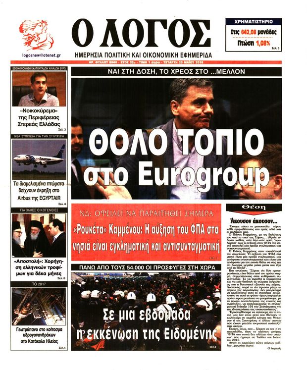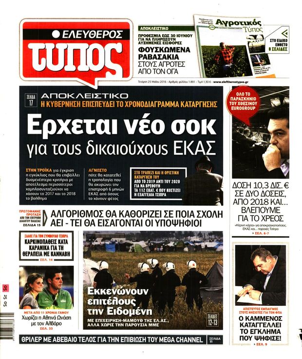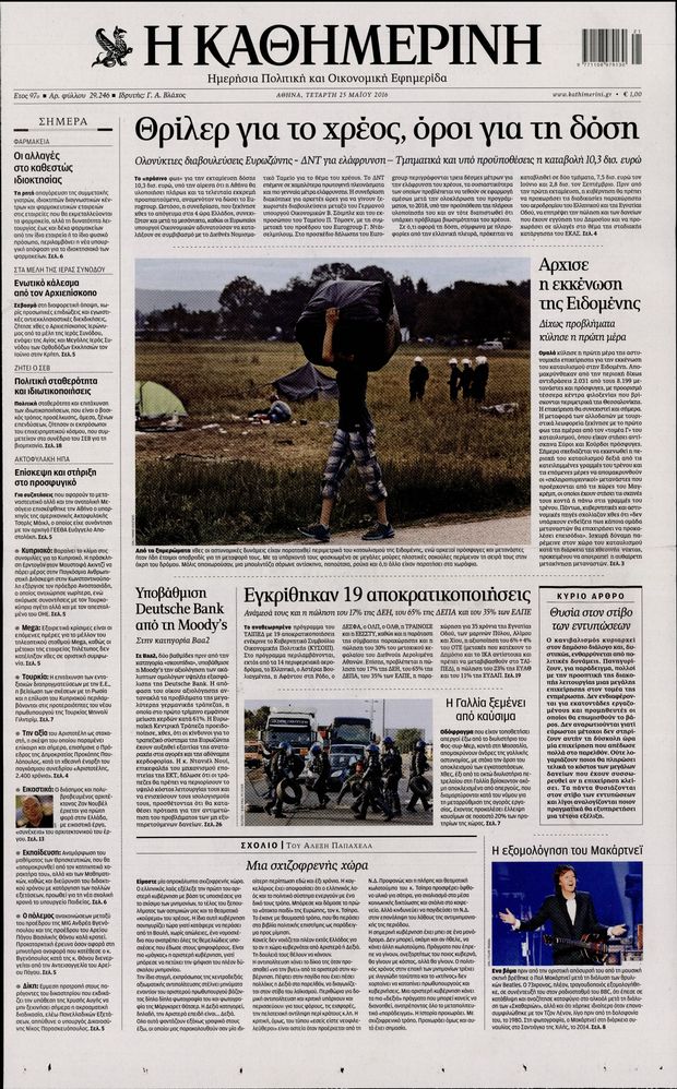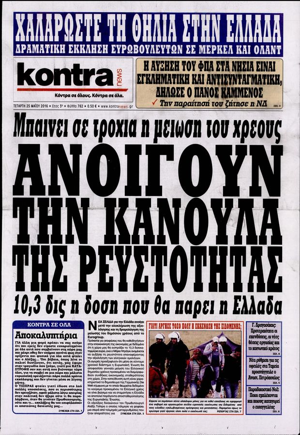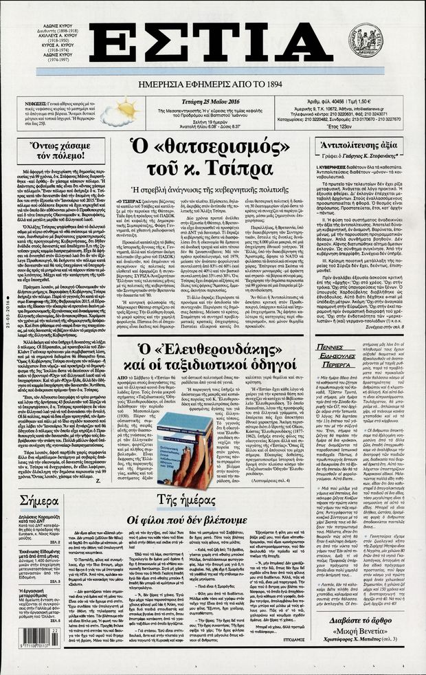 Οι πολιτικές εφημερίδες 25/5/2016 Enikos Newsroom 06:15, Τετάρτη 25 Μαΐου 2016 Media Διαβάστε τα σημερινά πρωτοσέλιδα των πολιτικών εφημερίδων: ΠΟΛΙΤΙΚΕΣ ΕΦΗΜΕΡΙΔΕΣ ΠΡΩΤΟΣΕΛΙΔΑ Μοιράσου το: σχολίασε κι εσύ (0 σχόλια) Ακολουθήστε το enikos.gr στο Google News και μάθετε πρώτοι όλες τις ειδήσεις Δείτε όλες τις τελευταίες ειδήσεις από την Ελλάδα και τον Κόσμο στο enikos.gr Ειδήσεις Ροή Ειδήσεων 3 ώρες πριν Αγρότες: Ζητούν κάμερες και πρακτικά στη συνάντηση με τον Μητσοτάκη – «Αν δεν ικανοποιηθούν τα αιτήματά μας, πάμε σε γενική κλιμάκωση» 2 ώρες πριν Κρίσιμες ώρες στο Ιράν: Φουντώνουν οι αντικαθεστωτικές διαδηλώσεις – Σενάρια για αεροπορική επίθεση των ΗΠΑ, «Είμαστε έτοιμοι να βοηθήσουμε» λέει ο Τραμπ 3 ώρες πριν Σέρρες: Εξετάζεται το ενδεχόμενο εμπλοκής και άλλων ατόμων στον θανάσιμο ξυλοδαρμό του 17χρονου – «Αν βλέπατε το παιδί μου πώς ήταν χτυπημένο…» 7 ώρες πριν Τραγωδία στην Κρήτη: «Πίστευα πως ήταν όλα ψέματα, μέχρι που τον είδα…» – Συγκλονίζει ο αδελφός του 27χρονου κυνηγού που έπεσε σε χαράδρα 5 ώρες πριν Θεσσαλονίκη: Έπεσε τμήμα της οροφής σε εμπορικό κέντρο – Τραυματίστηκε γυναίκα – BINTEO 7 ώρες πριν Καθαρό και οργανωμένο σπίτι: Το πιο σημαντικό σημείο που πρέπει να καθαρίζετε κάθε βράδυ 6 ώρες πριν Σχέσεις: 7 φράσεις που ακούγονται τρυφερές, αλλά δεν είναι αθώες – Γιατί μπορεί να γίνουν «παγίδες» που οι περισσότεροι άνθρωποι αγνοούν 4 ώρες πριν Οι άνθρωποι που πηγαίνουν για ύπνο την ίδια ώρα κάθε βράδυ, συνήθως εμφανίζουν αυτά τα 7 μοτίβα προσωπικότητας 5 ώρες πριν Αριθμολογία: Οι άνθρωποι που έχουν γεννηθεί αυτές τις 3 ημερομηνίες, βλέπουν πράγματα που οι άλλοι δεν μπορούν να δουν 3 λεπτά πριν Αγγλία: Ομάδα 6ης κατηγορίας απέκλεισε την Κρίσταλ Πάλας από το FA Cup – Ο ιδιοκτήτης της την είχε αγοράσει μεθυσμένος και δεν το θυμόταν 16 λεπτά πριν Γιώργος Θεοφάνους: «Μου έχει ζητηθεί να γράψω μουσικό θέμα για κόμμα» 30 λεπτά πριν ΗΠΑ: Χρησιμοποίησαν «ισχυρό και μυστικό» όπλο κατά την επιχείρηση σύλληψης του Μαδούρο – «Ένιωσα το κεφάλι μου να εκρήγνυται» 49 λεπτά πριν Στέιτ Ντιπάρμεντ: Καλεί τους Αμερικανούς που βρίσκονται στη Βενεζουέλα να εγκαταλείψουν τη χώρα 1 ώρα πριν Παναθηναϊκός: Τελειώνει η πώληση του Ντραγκόφσκι στη Βίντζεβ Λοτζ – Όφελος έως και 800.000 ευρώ για τους Πράσινους ENIKOS NETWORK Τι αισθάνεται ο σκύλος σας όταν σας βλέπει να κάνετε έρωτα – Πώς το αντιλαμβάνεται η γάτα σας; Χαλαρό δέρμα μετά από απώλεια βάρους: Πότε εμφανίζεται και πώς μπορεί να αντιμετωπιστεί Κόστος θέρμανσης: Πώς διαμορφώνονται οι τιμές σε καυσόξυλα και πετρέλαιο Τι σημαίνουν για το κλίμα τα σχέδια Τραμπ στη Βενεζουέλα Ο Google Assistant θα παραμείνει λίγο περισσότερο για ορισμένους χρήστες Android Τεστ προσωπικότητας: Το βάζο που θα επιλέξετε αποκαλύπτει πώς λύνετε προβλήματα στη ζωή σας περισσότερα 00:01 , Κυριακή 11 Ιανουαρίου 2026 Σήμερα με τη Realnews: Μυστηριώδης εξαφάνιση του Rick Mofina – Μαζί Food & Travel Σήμερα με τη Realnews: Μυστηριώδης εξαφάνιση του Rick Mofina – Μαζί Food & Travel Μ... 18:01 , Σάββατο 10 Ιανουαρίου 2026 Η Realnews στο www.pressreader.com Διαβάστε την ψηφιακή έκδοση της εφημερίδας στην οθόνη του κινητού, του tablet και του υπολογισ... 17:44 , Σάββατο 10 Ιανουαρίου 2026 Eurovision 2026: Τη Δευτέρα 12 Ιανουαρίου η κλήρωση των ημιτελικών – Πού μπορείτε να τη δείτε Έφτασε η στιγμή που θα μάθουμε σε ποιον Ημιτελικό της Eurovision 2026 θα διαγωνιστεί η Ελλάδα!... 14:03 , Σάββατο 10 Ιανουαρίου 2026 Η Realnews που κυκλοφορεί σήμερα Με τίτλο: «Ο Τραμπ ανατρέπει όλες τις ισορρ