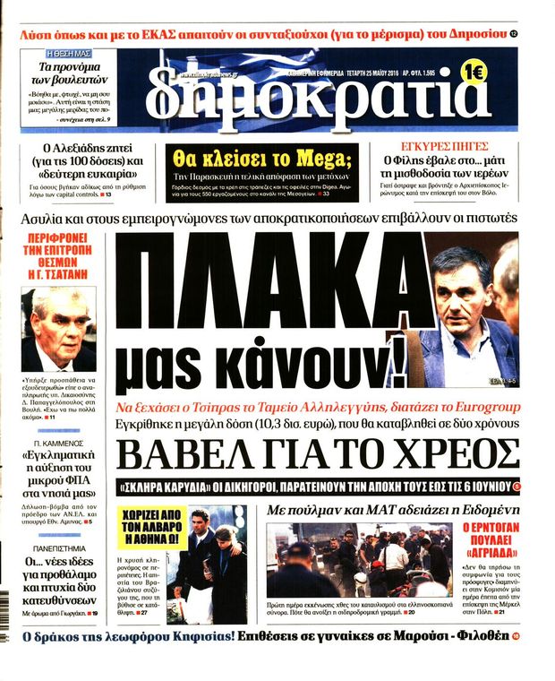 Οι πολιτικές εφημερίδες 25/5/2016 Enikos Newsroom 06:15, Τετάρτη 25 Μαΐου 2016 Media Διαβάστε τα σημερινά πρωτοσέλιδα των πολιτικών εφημερίδων: ΠΟΛΙΤΙΚΕΣ ΕΦΗΜΕΡΙΔΕΣ ΠΡΩΤΟΣΕΛΙΔΑ Μοιράσου το: σχολίασε κι εσύ (0 σχόλια) Ακολουθήστε το enikos.gr στο Google News και μάθετε πρώτοι όλες τις ειδήσεις Δείτε όλες τις τελευταίες ειδήσεις από την Ελλάδα και τον Κόσμο στο enikos.gr Ειδήσεις Ροή Ειδήσεων 2 ώρες πριν Βρυξέλλες: «Πράσινο φως» για την υπογραφή της εμπορικής συμφωνίας ΕΕ – Mercosur 3 ώρες πριν Αγρότες: Ανοίγουν οι παράδρομοι στον Μπράλο, το βράδυ αποφασίζουν στο Κάστρο – Η εικόνα από τα τελωνεία, πού παραμένουν οι αποκλεισμοί 1 ώρα πριν Κύπρος: Στο μικροσκόπιο των αρχών το βίντεο που προκάλεσε σάλο – «Δεν αμφισβητούμε τις συνομιλίες αλλά έγινε κακόβουλη επεξεργασία» λέει η κυβέρνηση 3 ώρες πριν Ιράν: Ο Χαμενεΐ κατηγορεί τους διαδηλωτές ως «μισθοφόρους ξένων» – Στο προσκήνιο οι σχέσεις μεταξύ Τραμπ και Παχλαβί 2 ώρες πριν Σέρρες: «17 ετών ζητούσε ζωή, όχι σιωπή» – Διαμαρτυρία συγγενών και φίλων του θύματος κατά τη μεταγωγή του 16χρονου στα δικαστήρια 6 ώρες πριν Ευχάριστες εκπλήξεις για 3 ζώδια – «Έχετε πολλά να περιμένετε από εδώ και πέρα» 5 ώρες πριν Γλώσσα του σώματος: 8 σημάδια που προδίδουν αν έχετε αυτοπεποίθηση ή βαθιά ανασφάλεια 4 ώρες πριν «Πίνω 5 φλιτζάνια καφέ την ημέρα»: Μια γιατρός αποκαλύπτει ποια είναι τα οφέλη για την υγεία 1 ώρα πριν Επιστήμονες ανακαλύπτουν ένα «κρυφό σύννεφο» πλαστικού πάνω από μεγάλες πόλεις 3 λεπτά πριν Πάτρα: Προφυλακιστέος ο 26χρονος για τα θανατηφόρα χτυπήματα στον 30χρονο – Ελεύθεροι υπό όρους οι άλλοι 3 κατηγορούμενοι 9 λεπτά πριν Αποχωρούν τα τρακτέρ από τα Τέμπη – Αύριο η πανελλαδική σύσκεψη των αγροτών στη Νίκαια – ΒΙΝΤΕΟ 14 λεπτά πριν Τα 5 ζώδια που «απογειώνονται» το 2026 – «Η τύχη σας αλλάζει ριζικά και βελτιώνονται τα πράγματα σε όλους τους τομείς» 19 λεπτά πριν Οι ΗΠΑ κατάσχεσαν ακόμα ένα δεξαμενόπλοιο στην Καραϊβική – Μετέφερε πετρέλαιο από την Βενεζουέλα 27 λεπτά πριν Τροχαίο στη Λάρισα: Τούμπαρε αυτοκίνητο και έπεσε σε χαντάκι – Τέσσερις τραυματίες ENIKOS NETWORK ΕΟΦ: Προσοχή σε φάρμακο για πόνους στις αρθρώσεις-Δεν είναι εγκεκριμένο και διακινείται παρανόμως Ποια κοινά συντηρητικά τροφίμων συνδέονται με καρκίνο και διαβήτη τύπου 2 – Σε ποια τρόφιμα βρίσκονται Εγκρίθηκε η συμφωνία της Ε.Ε. με τη Mercosur για τα αγροτικά προϊόντα – Τι σηματοδοτεί Τι σηματοδοτεί η είσοδος της Βουλγαρίας στην Ευρωζώνη για τις ελληνικές επιχειρήσεις Ο Google Assistant θα παραμείνει λίγο περισσότερο για ορισμένους χρήστες Android Τεστ προσωπικότητας: Το βάζο που θα επιλέξετε αποκαλύπτει πώς λύνετε προβλήματα στη ζωή σας περισσότερα 10:20 , Παρασκευή 09 Ιανουαρίου 2026 Χρήστος Πολίτης: Το συγκινητικό βίντεο της Finos Film – «Καλό ταξίδι σε έναν καλλιτέχνη που έζησε με αξιοπρέπεια εντός και εκτός σκηνής» Ένα βίντεο με αποσπάσματα από ταινίες στις οποίες πρωταγωνίστησε ο Χρήστος Πολίτης ανέβασε στο... 09:00 , Παρασκευή 09 Ιανουαρίου 2026 Αυτή την Κυριακή με τη Realnews: Μυστηριώδης εξαφάνιση – Ένα καθηλωτικό θρίλερ γεμάτο αγωνία από τον διεθνώς αναγνωρισμένο συγγραφέα Rick Mofina Αυτή την Κυριακή με τη Realnews: Μυστηριώδης εξαφάνιση –Ένα καθηλωτικό θρίλερ γεμάτο αγω... 08:56 , Παρασκευή 09 Ιανουαρίου 2026 Κάτια Δανδουλάκη: Η ανάρτηση για τον θάνατο του Χρήστου Πολίτη – Η αναφορά στη «Λάμψη» Ο Χρήστος Πολίτης πέθανε την Πέμπτη (8/1) σε ηλικία 83 ετών και η Κάτια Δανδουλάκη, τον αποχαι... 08:00 , Παρασκευή 09 