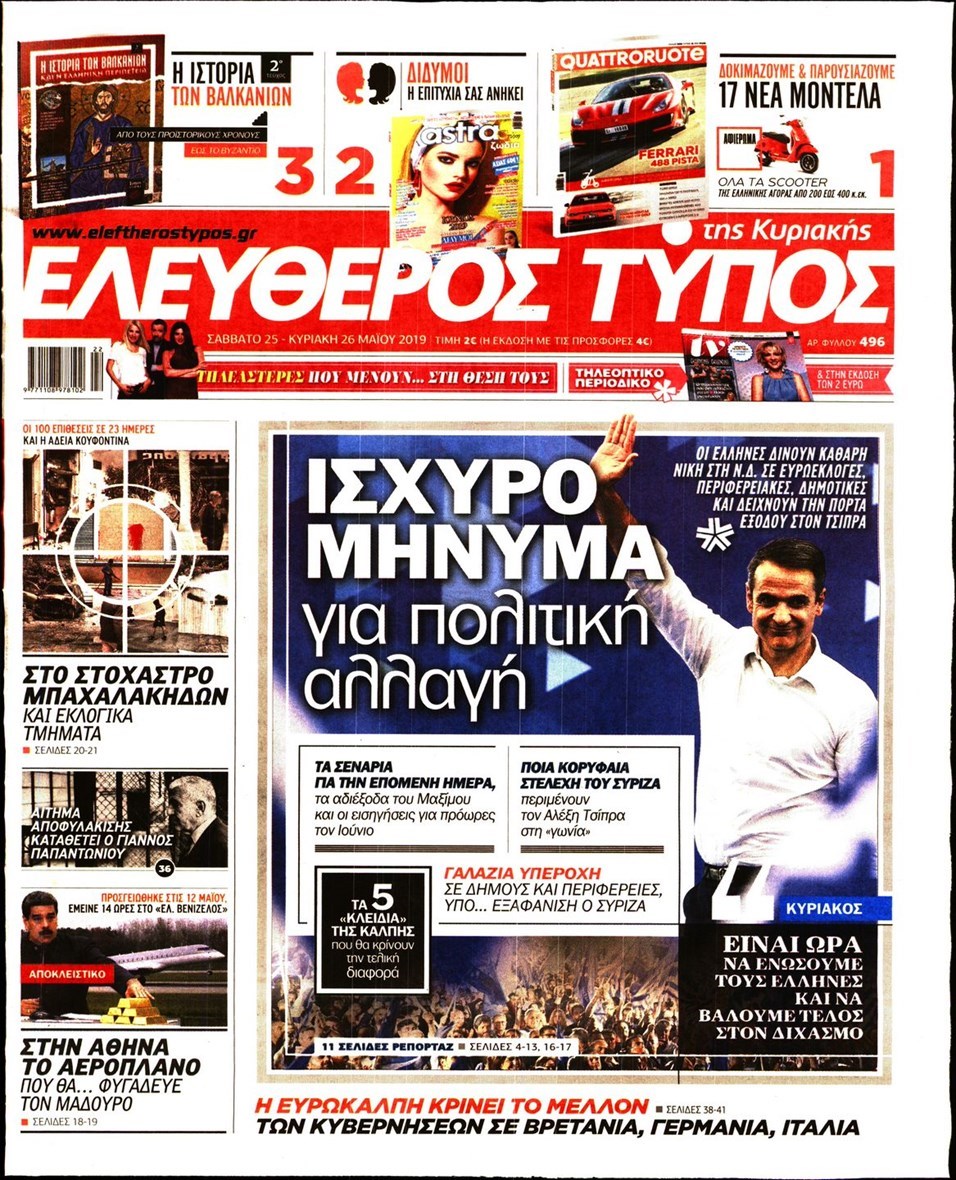 Οι πολιτικές εφημερίδες 25/5/2019 Κώστας Τεό 07:52, Σάββατο 25 Μαΐου 2019 Media Διαβάστε τα πρωτοσέλιδα των πολιτικών εφημερίδων: ΠΟΛΙΤΙΚΕΣ ΕΦΗΜΕΡΙΔΕΣ ΠΡΩΤΟΣΕΛΙΔΑ Μοιράσου το: σχολίασε κι εσύ (0 σχόλια) Ακολουθήστε το enikos.gr στο Google News και μάθετε πρώτοι όλες τις ειδήσεις Δείτε όλες τις τελευταίες ειδήσεις από την Ελλάδα και τον Κόσμο στο enikos.gr Ειδήσεις Ροή Ειδήσεων 5 ώρες πριν Χριστούγεννα στα μπλόκα: Επιμένουν στις κινητοποιήσεις τους οι αγρότες – Ανοίγουν τα διόδια το Σαββατοκύριακο 5 ώρες πριν Ουκρανία: Η άνευ προηγουμένου επίθεση σε ρωσικό τάνκερ στη Μεσόγειο και το μήνυμα προς στον Πούτιν – Το «μακρύ χέρι» του Κιέβου 4 ώρες πριν Πούτιν: Τα μηνύματα σε Ευρώπη και ΝΑΤΟ από το μαραθώνιο «σόου» του – Η απαίτηση για «σεβασμό» και η ειρήνη «με τους όρους» της Μόσχας 5 ώρες πριν Τραμπ: Δεν αποκλείει την πιθανότητα ενός πολέμου στη Βενεζουέλα – «Ο Μαδούρο ξέρει καλύτερα από τον καθένα τι ακριβώς θέλω» 6 ώρες πριν Συνεχίζει να προκαλεί ο Μίτσκοσκι: «Για μένα το όνομα Μακεδονία είναι ιερό» 4 ώρες πριν Ανακαλύφθηκαν αρχαία χρυσά νομίσματα 2.200 ετών που απεικονίζουν τον θεό Απόλλωνα – Η άγνωστη σύνδεση με τον Φίλιππο Β΄ της Μακεδονίας 5 ώρες πριν Ύπνος: Μια κρυφή κατάσταση του εγκεφάλου πριν από τον ύπνο μπορεί να είναι το “κλειδί” για υψηλή ευφυΐα και δημιουργικότητα 6 ώρες πριν Αριθμολογία: Οι άνθρωποι που έχουν γεννηθεί αυτές τις 4 ημερομηνίες, συχνά παρεξηγούνται – «Η καλοσύνη τους κρύβει τεράστια δύναμη» 7 ώρες πριν Ξεχάστε το καθάρισμα το Σαββατοκύριακο: Ο «κανόνας των 20 λεπτών» που θα σας λύσει τα χέρια 16 λεπτά πριν Η Ελλάδα προσχωρεί στη Διεθνή Επιτροπή Αποζημιώσεων για την Ουκρανία 30 λεπτά πριν GNTM: Η Ξένια Τσίρκοβα αναδείχθηκε μεγάλη νικήτρια και πήρε τις 50.000 ευρώ – Ποιος βρέθηκε σε απόσταση αναπνοής; 45 λεπτά πριν Θεσσαλονίκη: Εξαφανίστηκε 13χρονος από χώρο φιλοξενίας ασυνόδευτων ανηλίκων στο Ωραιόκαστρο 56 λεπτά πριν Ντόναλντ Τραμπ: «Πολύ βαριά αντίποινα» στη Συρία – «Πλήττουμε πολύ δυνατά οχυρά του Ισλαμικού Κράτους» 1 ώρα πριν Εξάρχεια: Ένταση με μολότοφ, χημικά και κρότου λάμψης ENIKOS NETWORK Το ΕΚΑΒ τιμήθηκε από την Ακαδημία Αθηνών για τα 40 χρόνια προσφοράς του Έχετε πραγματικά μεγάλη καρδιά; 10 χαρακτηριστικά όσων έχουν καλοσύνη Αναστολή μέτρων αναγκαστικής εκτέλεσης για κτηνοτρόφους που πλήττονται από την ευλογιά των αιγοπροβάτων Πλήρης επάρκεια προϊόντων στις λαϊκές της Αττικής, παρά τις αγροτικές κινητοποιήσεις – Τι απαντούν οι πωλητές Χαρτογραφώντας το «σημείο χωρίς επιστροφή»: Για πρώτη φορά αποκαλύπτεται με λεπτομέρεια το ακανθώδες όριο της ατμόσφαιρας τ... Η Google καταργεί τη λειτουργία «dark web report» – Πώς θα μπορούν οι χρήστες να διαγράφουν τα δεδομένα τους περισσότερα 02:50 , Σάββατο 20 Δεκεμβρίου 2025 GNTM: Η Ξένια Τσίρκοβα αναδείχθηκε μεγάλη νικήτρια και πήρε τις 50.000 ευρώ – Ποιος βρέθηκε σε απόσταση αναπνοής; Με φαντασμαγορικό τρόπο ολοκληρώθηκε το βράδυ της Παρασκευής ο μεγάλος τελικός του GNTM, μέσα ... 22:42 , Παρασκευή 19 Δεκεμβρίου 2025 Γιώργος Γιαννόπουλος για “Το σόι σου”: “Είναι ευτυχία και ευλογία αυτή η σειρά” «Είναι ευτυχία και ευλογία η συγκυρία αυτής της σειράς», θα πει ο Γιώργος Γιαννόπουλος -ο αγαπ... 20:37 , Παρασκευή 19 Δεκεμβρίου 2025 Don’t Forget The Lyrics: Η Έλλη Κοκκίνου υποδέχεται 4 παίκτες που θα κάνουν τα πάντα για να μη χάσουν ούτε… μισή λέξη από τους στίχους Το «Don’t Forget The Lyrics» επιστρέφει απόψε, Παρασκευή 19 Δεκεμβρίου, στις 21:00 με νέο επει... 1
