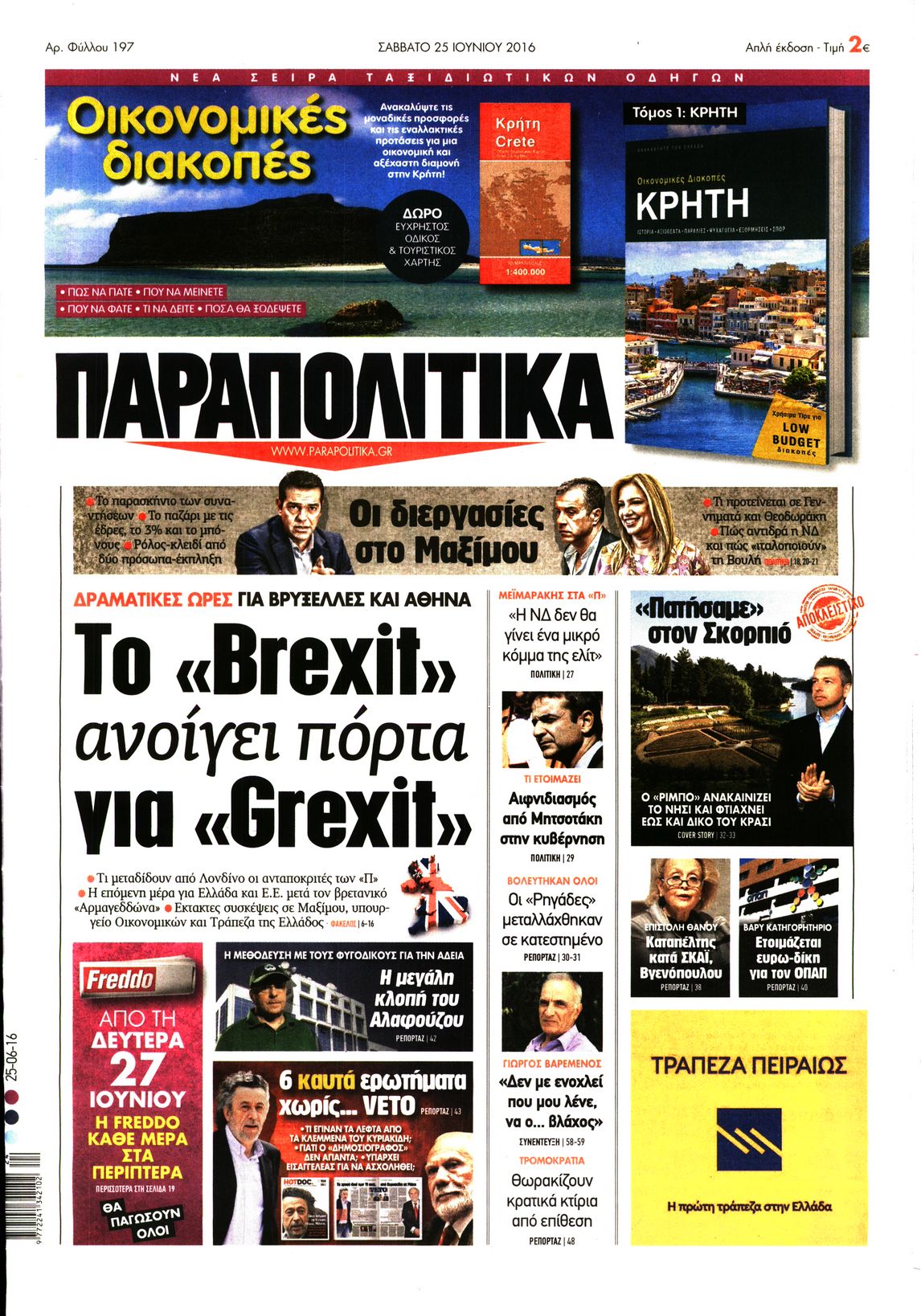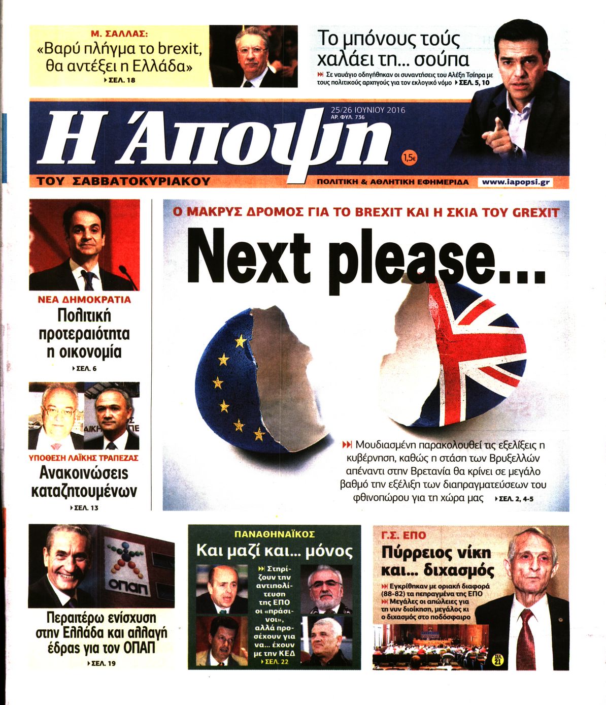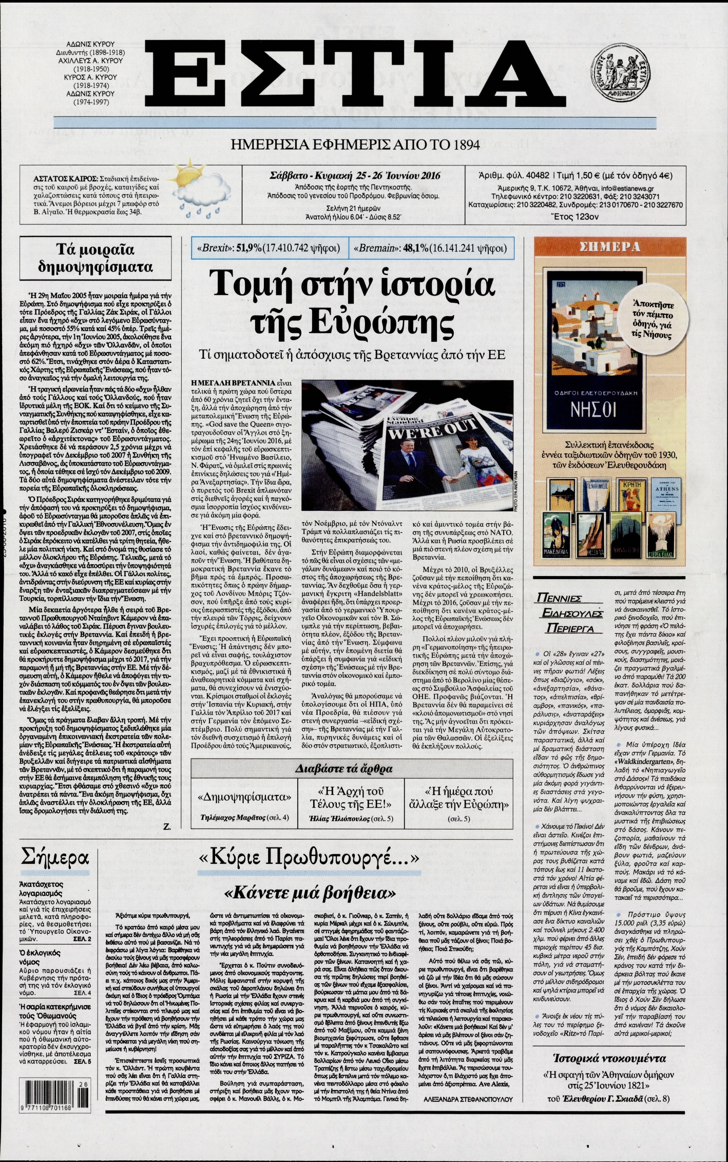 Οι πολιτικές εφημερίδες 25/6/2016 Enikos Newsroom 06:32, Σάββατο 25 Ιουνίου 2016 Media Διαβάστε τα σημερινά πρωτοσέλιδα των πολιτικών εφημερίδων: ΠΟΛΙΤΙΚΕΣ ΕΦΗΜΕΡΙΔΕΣ ΠΡΩΤΟΣΕΛΙΔΑ Μοιράσου το: σχολίασε κι εσύ (0 σχόλια) Ακολουθήστε το enikos.gr στο Google News και μάθετε πρώτοι όλες τις ειδήσεις Δείτε όλες τις τελευταίες ειδήσεις από την Ελλάδα και τον Κόσμο στο enikos.gr Ειδήσεις Ροή Ειδήσεων 3 ώρες πριν Αυξάνουν την πίεση προς την κυβέρνηση οι αγρότες: Κλείνουν παρακαμπτήριους και ανοίγουν διόδια – Τι θα γίνει τις γιορτές 2 ώρες πριν ΟΠΕΚΕΠΕ: Προφυλακιστέος ο φερόμενος αρχηγός και ο λογιστής της εγκληματικής οργάνωσης 3 ώρες πριν Φοινικούντα: Το Σάββατο απολογείται ο 30χρονος γιος γνωστού επιχειρηματία της Πλάκας που παραδόθηκε – Όσα είπε στους αστυνομικούς και ο ρόλος του στο έγκλημα 2 ώρες πριν Μπορεί ο Μαδούρο να αντέξει τον αποκλεισμό του Τραμπ; Τι θα χρειαστεί η Ουάσινγκτον για να τον ανατρέψει 4 ώρες πριν Πρίγκιπας Ουίλιαμ – Κέιτ: Η νέα οικογενειακή φωτογραφία για τις Χριστουγεννιάτικες κάρτες του 2025 3 ώρες πριν Ύπνος: Η απλή βραδινή ρουτίνα για να προστατεύσετε τα μαλλιά σας από το κρύο κατά τη διάρκεια του χειμώνα 4 ώρες πριν Manifesting: Πώς να συναντήσετε τον σύντροφο της ζωής σας, ανάλογα με τον μήνα γέννησής σας 2 ημέρες πριν 20 χρόνια τα Χριστούγεννα ξεκινούν στα Public με μεγάλη ποικιλία σε δώρα! 2 ώρες πριν Αρχαιολόγοι ανακάλυψαν ρωμαϊκά τεχνουργήματα από μια πόλη που δεν υπήρξε ποτέ – Τα τρία εντυπωσιακά κτίρια και ο αμφορέας με τις… σαρδέλες 35 δευτερόλεπτα πριν ΟΗΕ: Την εκλογή του νέου ύπατου αρμοστή για τους Πρόσφυγες Μπαρχάμ Άχμεντ Σαλίχ χαιρέτησε ο Αντόνιο Γκουτέρες 5 λεπτά πριν Σύνοδος Κορυφής στις Βρυξέλλες: Ακόμη πιο κοντά σε διέξοδο για τη χρηματοδότηση της Ουκρανίας 13 λεπτά πριν ΟΗΕ: Iστορική επίσκεψη του Συμβουλίου Ασφαλείας στη Δαμασκό – Mήνυμα Ελλάδας για συμπερίληψη και λογοδοσία 20 λεπτά πριν Νέος πρέσβης της Μεγάλης Βρετανίας στις ΗΠΑ ο Κρίστιαν Τέρνερ 24 λεπτά πριν Conference League: Με Νόα, Ντρίτα, Άλκμααρ ή Τσέλιε στους «16» η ΑΕΚ ENIKOS NETWORK Σε περίοδο αυξημένης δραστηριότητας η γρίπη στην Ελλάδα-Μέτρα προστασίας από τον ΕΟΔΥ Σκέφτεστε συνέχεια συζητήσεις που έχετε κάνει; Τι σημαίνει αυτό, σύμφωνα με ειδικό Στεγαστικό: Τι λέει η ΠΟΜΙΔΑ για τα νέα μέτρα που ανακοίνωσε ο Κυριάκος Μητσοτάκης Λαγκάρντ: Αισιόδοξη για την ανάπτυξη της Ευρωζώνης, αβέβαιη για τον πληθωρισμό Χαρτογραφώντας το «σημείο χωρίς επιστροφή»: Για πρώτη φορά αποκαλύπτεται με λεπτομέρεια το ακανθώδες όριο της ατμόσφαιρας τ... Η Google καταργεί τη λειτουργία «dark web report» – Πώς θα μπορούν οι χρήστες να διαγράφουν τα δεδομένα τους περισσότερα 17:45 , Πέμπτη 18 Δεκεμβρίου 2025 ROUK ZOUK: Εορταστικό επεισόδιο με καλεσμένους τους πρωταγωνιστές του «Γιατί ρε πατέρα» Το Σάββατο 20 Δεκεμβρίου στις 21:00, η Ζέτα Μακρυπούλια υποδέχεται εκλεκτούς ηθοποιούς που όλο... 17:20 , Πέμπτη 18 Δεκεμβρίου 2025 Άγιος έρωτας: Η Χριστίνα εξομολογείται στον πατέρα Νικόλαο, απόψε στις 21:00 στον Alpha Η Νότα αποφασίζει να εκδικηθεί τον Πέτρο και τον Στέφανο, για χάρη του Λούη, όμως τα πράγματα ... 16:50 , Πέμπτη 18 Δεκεμβρίου 2025 Να μ’ αγαπάς: Ζωή και Φωτεινή συμφιλιώνονται ως μάνα με κόρη, απόψε στις 20:00 Η ταυτότητα του Άγγελου αποκαλύπτεται στο νέο επεισόδιο της σειράς “Να μ’ αγαπάς... 15:52 , Πέμπτη 18 Δεκεμβρίου 2025 Το Σπίτι Δίπλα Στο Ποτάμι: Το καθηλωτικό τελευταίο επεισόδιο για το 2025 απόψε στις 22:30 Καθηλώνει το σημερινό επεισόδιο της σειράς “Το Σπίτι Δ