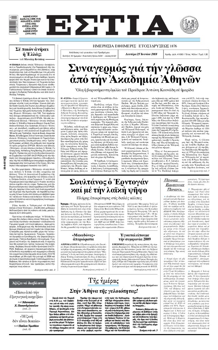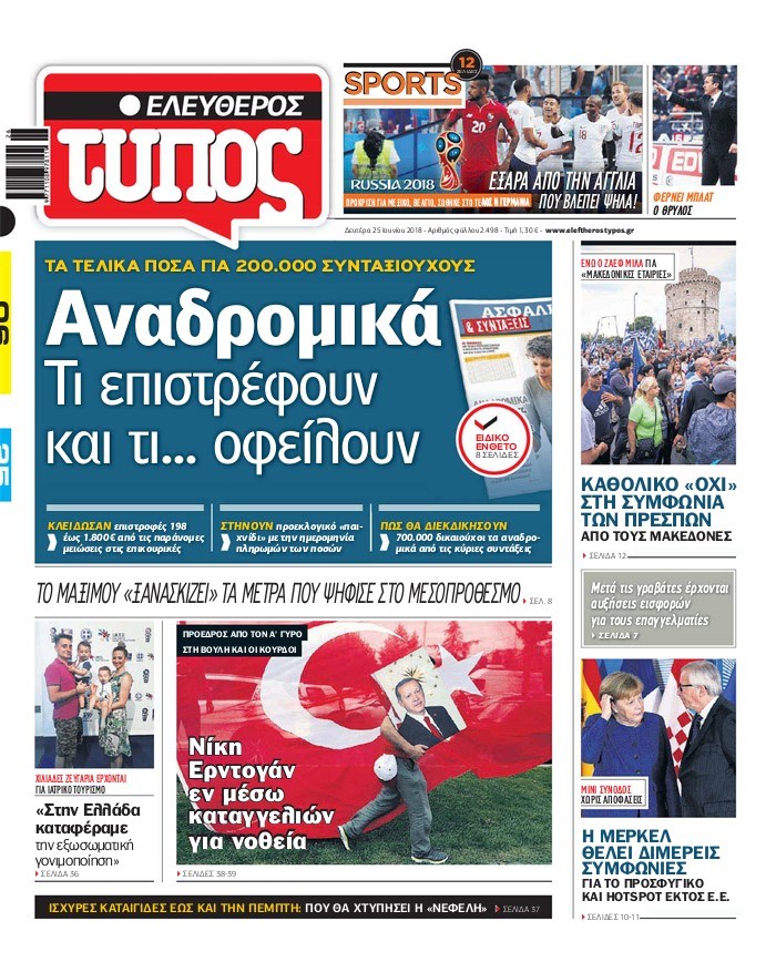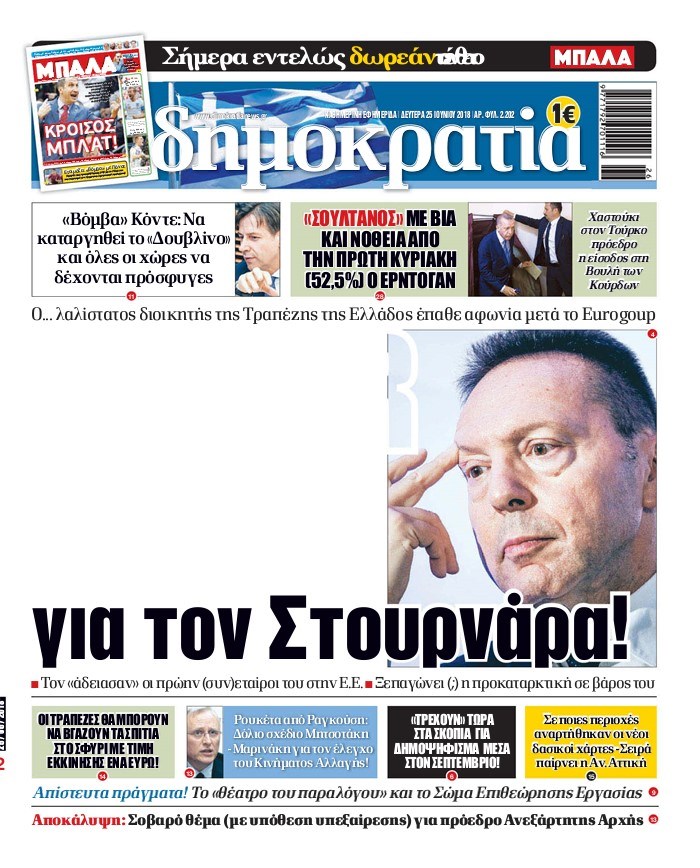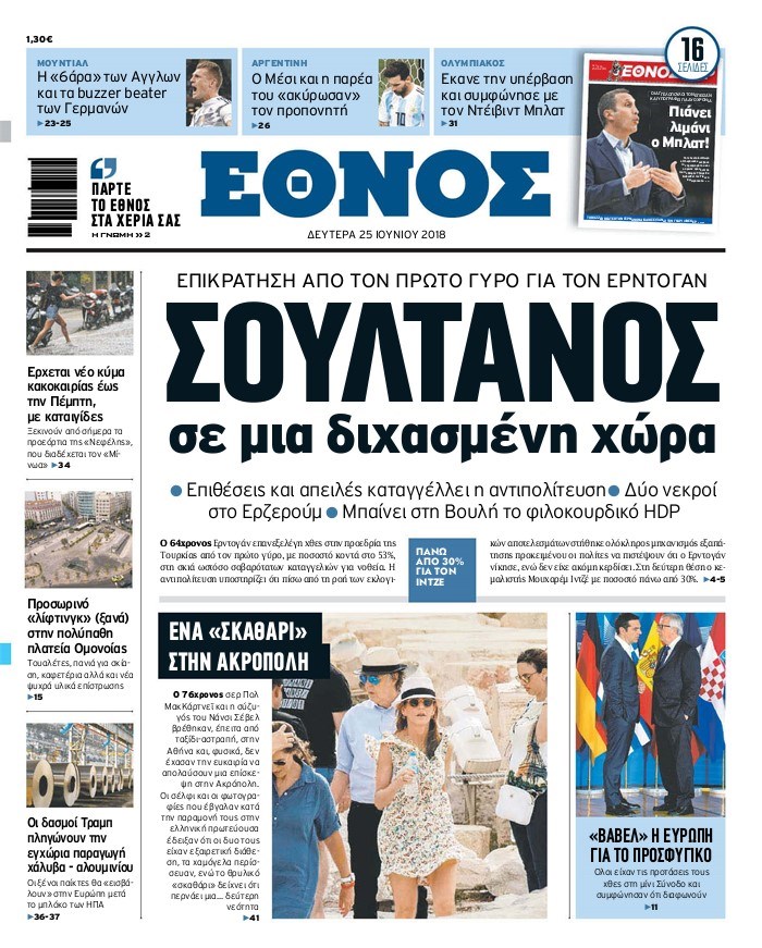 Οι πολιτικές εφημερίδες 25/6/2018 Enikos Newsroom 06:36, Δευτέρα 25 Ιουνίου 2018 Media Διαβάστε τα σημερινά πρωτοσέλιδα των πολιτικών εφημερίδων. ΠΟΛΙΤΙΚΕΣ ΕΦΗΜΕΡΙΔΕΣ ΠΡΩΤΟΣΕΛΙΔΑ Μοιράσου το: σχολίασε κι εσύ (0 σχόλια) Ακολουθήστε το enikos.gr στο Google News και μάθετε πρώτοι όλες τις ειδήσεις Δείτε όλες τις τελευταίες ειδήσεις από την Ελλάδα και τον Κόσμο στο enikos.gr Ειδήσεις Ροή Ειδήσεων 1 ώρα πριν Χριστούγεννα στα μπλόκα οι αγρότες: Άνοιξαν στα διόδια και μοίρασαν προϊόντα στους πολίτες – Νέα σύσκεψη την Κυριακή στη Νίκαια 1 ώρα πριν Κύκλωμα διακίνησης ναρκωτικών σε σχολεία: Τηλεφωνούσαν στους ανηλίκους την ώρα του μαθήματος – Οι διάλογοι-σοκ, τα «ψευδώνυμα» και τα βασανιστήρια 51 λεπτά πριν Αρχεία Επστάιν: Οι 500 σελίδες που λείπουν, τα αναπάντητα ερωτήματα και οι επώνυμοι – Τι έπεται 3 ώρες πριν Ζελένσκι: Μόνο οι ΗΠΑ και ο Τραμπ μπορούν να πιέσουν τη Ρωσία να βάλει τέλος στον πόλεμο 3 ώρες πριν Φοινικούντα: Προφυλακιστέος ο 30χρονος για συνέργεια στη διπλή δολοφονία – Και άλλα πρόσωπα στο «μικροσκόπιο» 3 ώρες πριν Αριθμολογία: Ο αριθμός του φύλακα αγγέλου σας, με βάση τον μήνα γέννησής σας – «Έτσι σας στέλνει σημάδια το σύμπαν» 4 ώρες πριν Πώς να απαλλαγείτε από τη μυρωδιά του τηγανητού φαγητού: Το μυστικό βρίσκεται στην κουζίνα σας 15 ώρες πριν Enerwave: Το νέο «ρεύμα» στη λιανική ενέργειας που αλλάζει την εμπειρία του καταναλωτή 2 ώρες πριν Ύπνος: Η διατροφή που μπορεί να σας βοηθήσει να κοιμάστε καλύτερα και να ζήσετε περισσότερο 17 λεπτά πριν Ανηλίκιο Μετσόβου: Δύο σπίτια παραδόθηκαν στις φλόγες – Επί ποδός η Πυροσβεστική 32 λεπτά πριν Super League: Η βαθμολογία, μετά την ισοπαλία του Ολυμπιακού 47 λεπτά πριν Αποκαλύφθηκε το άγνωστο «GPS» της αρχαιότητας – Πώς οι ναοί «φώτιζαν» τον δρόμο των ναυτικών πριν από την εφεύρεση των φάρων 51 λεπτά πριν Αρχεία Επστάιν: Οι 500 σελίδες που λείπουν, τα αναπάντητα ερωτήματα και οι επώνυμοι – Τι έπεται 1 ώρα πριν Χριστούγεννα στα μπλόκα οι αγρότες: Άνοιξαν στα διόδια και μοίρασαν προϊόντα στους πολίτες – Νέα σύσκεψη την Κυριακή στη Νίκαια ENIKOS NETWORK Οι γυναίκες αποκαλύπτουν το πιο ελκυστικό πράγμα που μπορεί να κάνει ένας άνδρας Ομορφιά και αντιγήρανση: Ειδικοί μιλούν για συσκευές περιποίησης του δέρματος «Πολεμική» προετοιμασία από την ευρωπαϊκή βιομηχανία ενέργειας – Η Eurelectric ζητεί «ομπρέλα» προστασίας για τις υποδομές Ακύρωση ΑΦΜ για απάτες – Ποιους βάζει στο στόχαστρο η ΑΑΔΕ Χαρτογραφώντας το «σημείο χωρίς επιστροφή»: Για πρώτη φορά αποκαλύπτεται με λεπτομέρεια το ακανθώδες όριο της ατμόσφαιρας τ... Η Google καταργεί τη λειτουργία «dark web report» – Πώς θα μπορούν οι χρήστες να διαγράφουν τα δεδομένα τους περισσότερα 20:30 , Σάββατο 20 Δεκεμβρίου 2025 Αυτή την Κυριακή με τη Realnews: Instyle, μαζί Drive και Realnews Geopolitics Αυτή την Κυριακή με τη Realnews: Instyle, μαζί Drive και Realnews Geopolitics Instyle Η Άννα Ρ... 20:28 , Σάββατο 20 Δεκεμβρίου 2025 Ο ΑΝΤ1 γεμίζει τις γιορτές με μουσική – Ποιους καλλιτέχνες θα απολαύσουμε Φέτος στον ΑΝΤ1 γιορτάζουμε τις νύχτες μας παρέα με αγαπημένους καλλιτέχνες και μεγάλες μουσι... 18:19 , Σάββατο 20 Δεκεμβρίου 2025 HOTΕΛ ΕΛVIRA: Η Ελβίρα μαθαίνει πως ο Χάρι μένει κρυφά στο ξενοδοχείο του Παντελή Συνεχίζονται οι εκλογές για πρόεδρο, στο νέο επεισόδιο της κωμικής σειράς του MEGA, HOTΕΛ ΕΛVI... 14:04 , Σάββατο 20 Δεκεμβρίου 2025 Η Realnews αυτής της Κυριακής (21/12/2025) Με τίτλο: «Ασπίδα προστασίας για την Ελλάδα» κυκλοφορεί, αυτήν την Κυριακή, η Realnews. Σημαντ... ΤΕΛΕΥΤΑΙΕΣ ΕΙΔΗΣΕΙΣ 17 λεπτά 