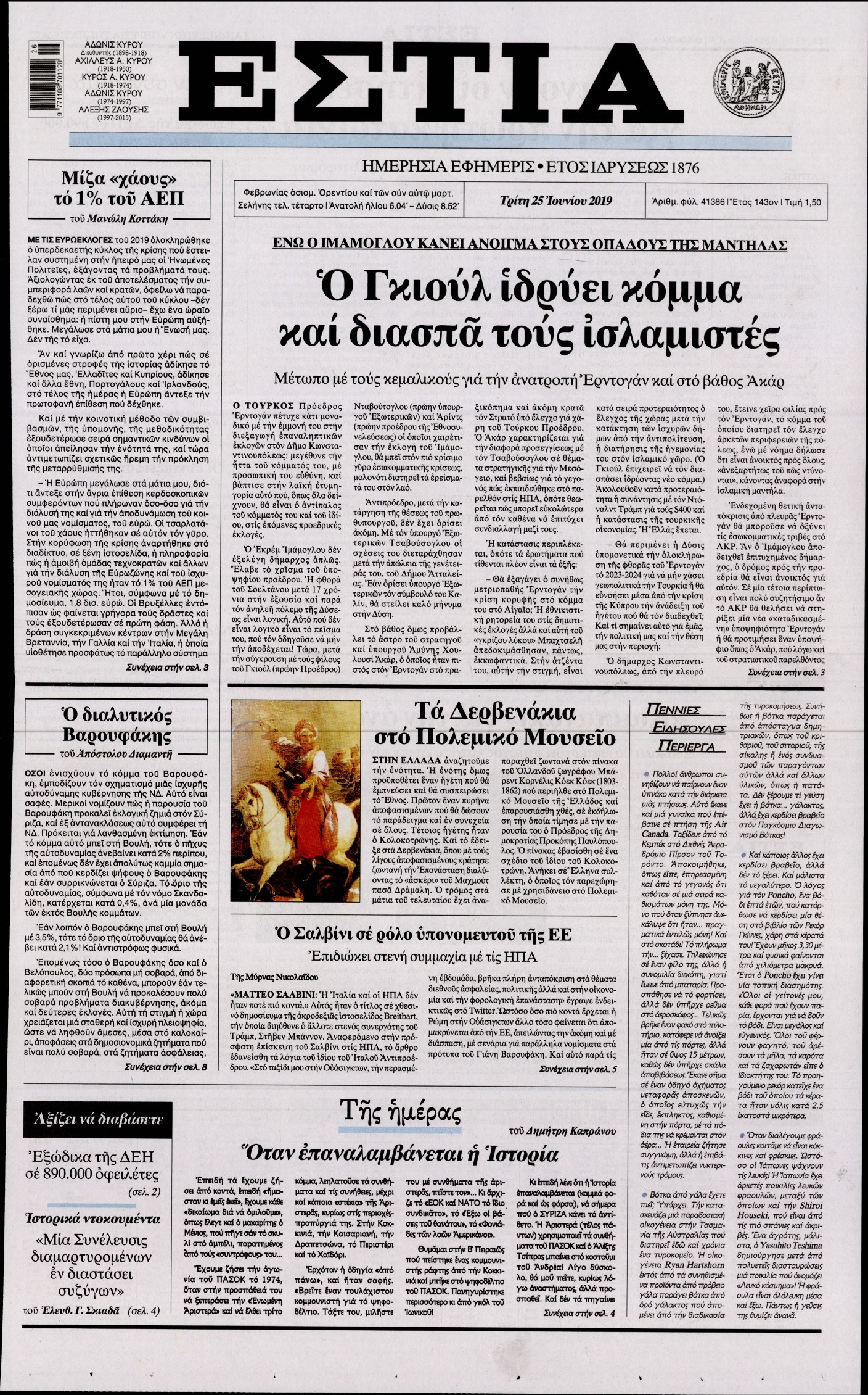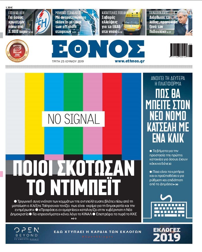 Οι πολιτικές εφημερίδες 25/6/2019 Κώστας Τεό 06:42, Τρίτη 25 Ιουνίου 2019 Media Διαβάστε τα πρωτοσέλιδα των πολιτικών εφημερίδων: ΠΟΛΙΤΙΚΕΣ ΕΦΗΜΕΡΙΔΕΣ ΠΡΩΤΟΣΕΛΙΔΑ Μοιράσου το: σχολίασε κι εσύ (0 σχόλια) Ακολουθήστε το enikos.gr στο Google News και μάθετε πρώτοι όλες τις ειδήσεις Δείτε όλες τις τελευταίες ειδήσεις από την Ελλάδα και τον Κόσμο στο enikos.gr Ειδήσεις Ροή Ειδήσεων 1 ώρα πριν Πώς δρούσε το κύκλωμα που διακινούσε ναρκωτικά σε σχολεία – Υπέβαλαν σε βασανιστήρια όσους δεν τηρούσαν τους «κανόνες πειθαρχίας» 2 ώρες πριν Αγρότες: Γιορτές στα μπλόκα με ανοιχτά διόδια – Δικογραφία στα Ιωάννινα για το σήκωμα των μπαρών 6 ώρες πριν Αρχεία Έπσταϊν: Οι συγκλονιστικές φωτογραφίες – Ο Μάικλ Τζάκσον, ο Μικ Τζάγκερ και ο Κέβιν Σπέισι ανάμεσα στους διάσημους που απεικονίζονται 34 λεπτά πριν NBC: Ο Νετανιάχου σχεδιάζει να ενημερώσει τον Τραμπ για πιθανά νέα πλήγματα εναντίον του Ιράν 43 λεπτά πριν Αττική: Εξαρθρώθηκε εγκληματική οργάνωση που έκλεβε οχήματα, τα παραποιούσε και τα μεταπωλούσε σε πολίτες – Πώς δρούσε το κύκλωμα 2 ώρες πριν Η τύχη χαμογελά σε 3 ζώδια έως τις 28 Δεκεμβρίου – «Προσέξτε τις επιλογές σας και η επιμονή σας θα ανταμειφθεί» 6 ώρες πριν Διαιτολόγος αποκαλύπτει 9 πρωινές συνήθειες που «λιώνουν» το κοιλιακό λίπος – «Υποστηρίζουν την υγιεινή απώλεια βάρους» 3 ώρες πριν Μία ανεκμετάλλευτη πηγή θα μπορούσε να προσφέρει ανεξάντλητη ενέργεια – Οι επιστήμονες ίσως γνωρίζουν πώς να την ξεκλειδώσουν 9 ώρες πριν Enerwave: Το νέο «ρεύμα» στη λιανική ενέργειας που αλλάζει την εμπειρία του καταναλωτή 8 λεπτά πριν Η Realnews στο www.pressreader.com 15 λεπτά πριν Νιούκαστλ – Τσέλσι 2-2: Αλύγιστοι οι Λονδρέζοι 25 λεπτά πριν Μικαέλα Μπέντχαους: Ο πρώτος άνθρωπος σε αναπηρικό αμαξίδιο που ταξίδεψε στο διάστημα – ΒΙΝΤΕΟ 34 λεπτά πριν NBC: Ο Νετανιάχου σχεδιάζει να ενημερώσει τον Τραμπ για πιθανά νέα πλήγματα εναντίον του Ιράν 43 λεπτά πριν Αττική: Εξαρθρώθηκε εγκληματική οργάνωση που έκλεβε οχήματα, τα παραποιούσε και τα μεταπωλούσε σε πολίτες – Πώς δρούσε το κύκλωμα ENIKOS NETWORK Γιατί πρέπει να ζητάμε χάρες; Ποιο είναι το φαινόμενο Ben Franklin που κάνει τους άλλους να μας συμπαθούν Η αποχή από την αναπαραγωγή παρατείνει τη ζωή στα ζώα, σύμφωνα με μελέτη – Τι ισχύει για τους ανθρώπους; Τράπεζες: Πόσες ημέρες θα είναι κλειστές μέσα στις γιορτές Στα ύψη ο χρυσός – Νέο ρεκόρ στην τιμή της λίρας, πόσο πωλείται Χαρτογραφώντας το «σημείο χωρίς επιστροφή»: Για πρώτη φορά αποκαλύπτεται με λεπτομέρεια το ακανθώδες όριο της ατμόσφαιρας τ... Η Google καταργεί τη λειτουργία «dark web report» – Πώς θα μπορούν οι χρήστες να διαγράφουν τα δεδομένα τους περισσότερα 14:04 , Σάββατο 20 Δεκεμβρίου 2025 Η Realnews αυτής της Κυριακής (21/12/2025) Με τίτλο: «Ασπίδα προστασίας για την Ελλάδα» κυκλοφορεί, αυτήν την Κυριακή, η Realnews. Σημαντ... 12:53 , Σάββατο 20 Δεκεμβρίου 2025 Να μ’ αγαπάς: Το παρελθόν έρχεται στο φως – Καταιγιστικές εξελίξεις στα τελευταία επεισόδια του 2025 Ο Άγγελος αποκαλύπτεται, η Φωτεινή ανησυχεί για τον Λευτέρη και η Ζωή έρχεται αντιμέτωπη με το... 11:41 , Σάββατο 20 Δεκεμβρίου 2025 «Η αγάπη δεν χάνεται ποτέ»: Η μικρού μήκους ταινία κινουμένων σχεδίων που θέτει ερωτήματα για τη ζωή και τον θάνατο Ο θάνατος είναι ένα από τα πιο σκληρά θέματα που καλείται να διαχειριστεί κάποιος στη διάρκεια... 09:30 , Σάββατο 20 Δεκεμβρίου 2025 «Porto Leone: Στη γειτονιά με τα κόκκινα φανάρια» – Ο Χρόνης αποκαλύπτει στην Αλεξάνδρα το μυστικό για το παιδί της Λένας Η μ