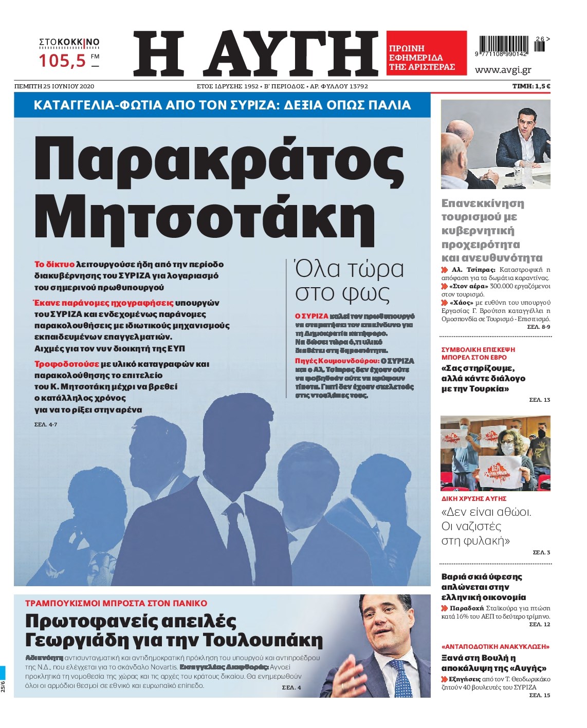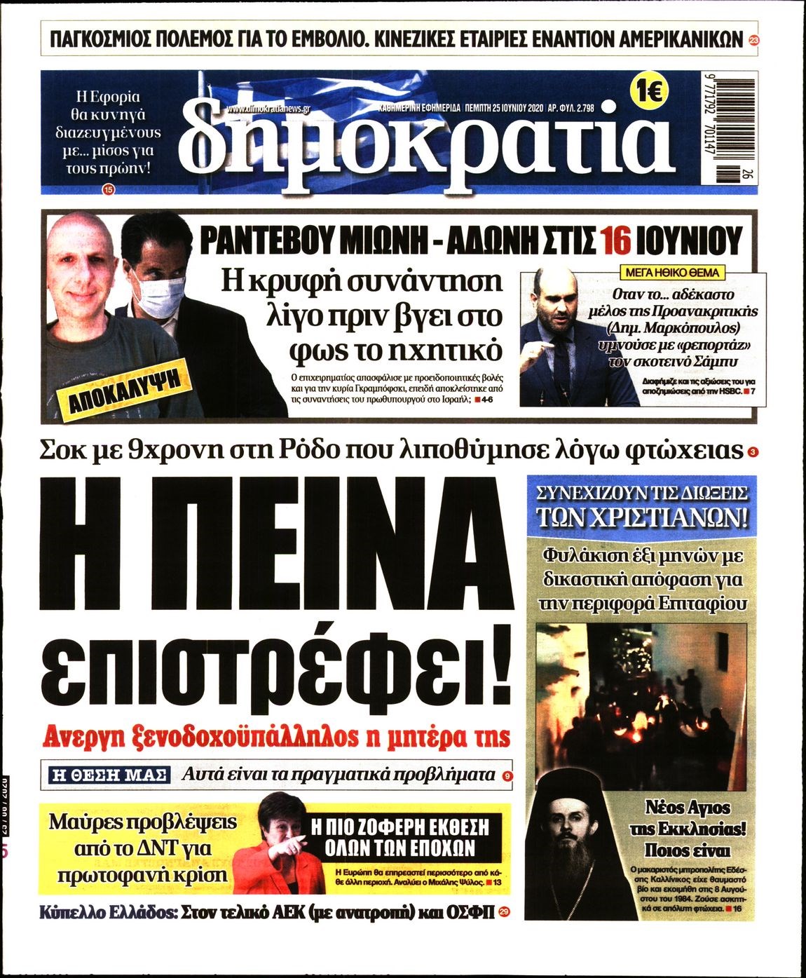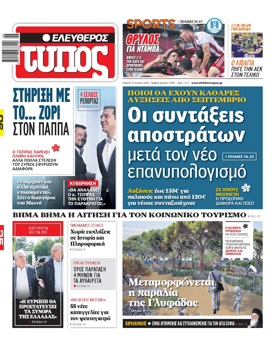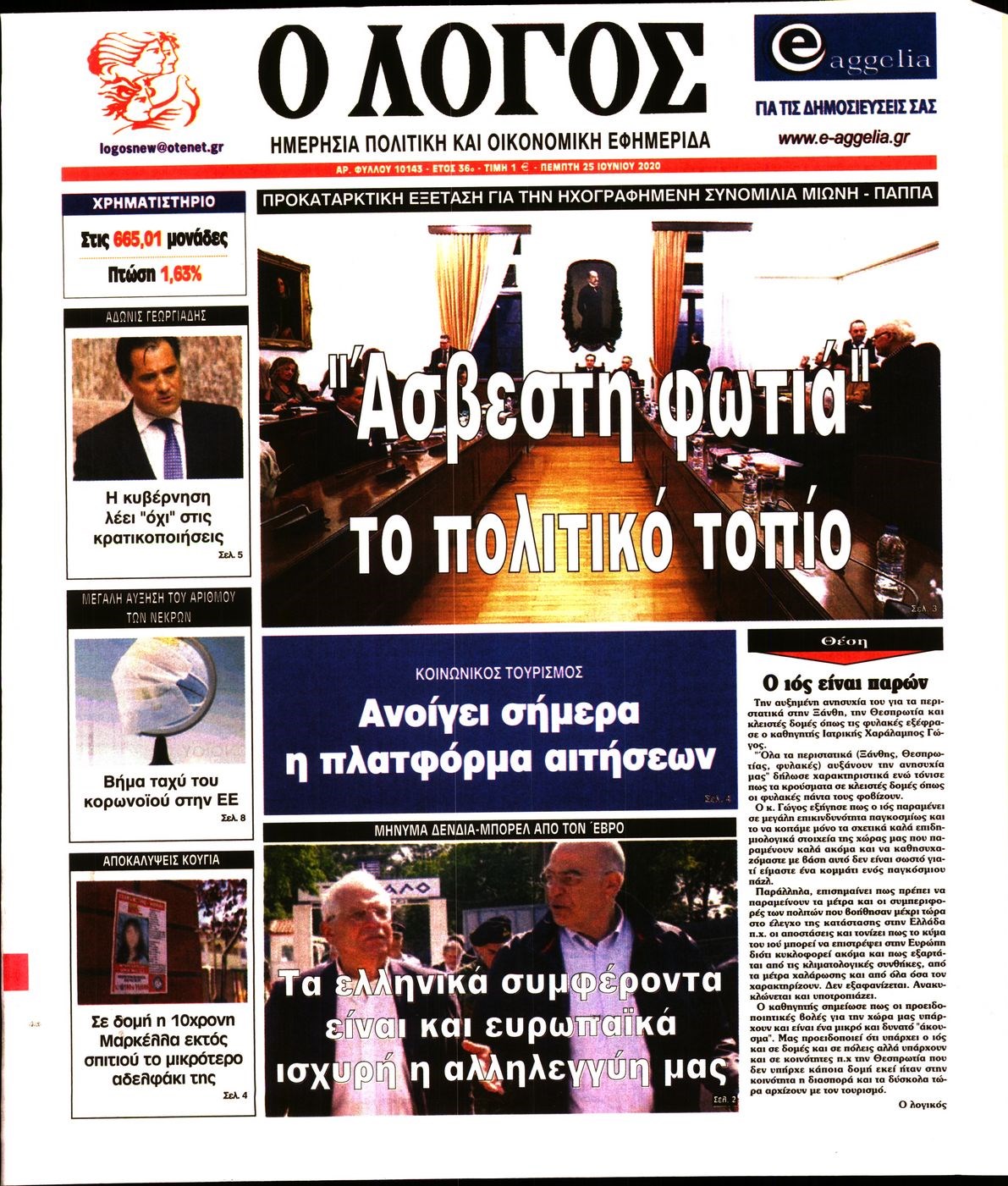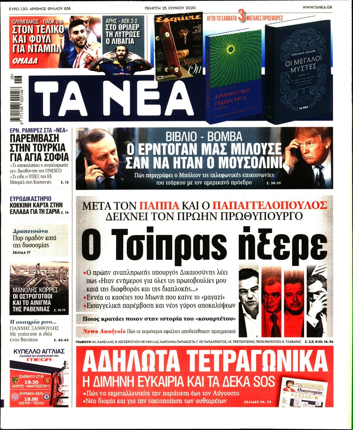 Οι πολιτικές εφημερίδες 25/6/2020 Διονύσης Νίκκας 06:06, Πέμπτη 25 Ιουνίου 2020 Media Διαβάστε τα πρωτοσέλιδα των πολιτικών εφημερίδων… ΠΟΛΙΤΙΚΕΣ ΕΦΗΜΕΡΙΔΕΣ Μοιράσου το: σχολίασε κι εσύ (0 σχόλια) Ακολουθήστε το enikos.gr στο Google News και μάθετε πρώτοι όλες τις ειδήσεις Δείτε όλες τις τελευταίες ειδήσεις από την Ελλάδα και τον Κόσμο στο enikos.gr Ειδήσεις Ροή Ειδήσεων 15 λεπτά πριν Χριστούγεννα στα μπλόκα: Επιμένουν στις κινητοποιήσεις τους οι αγρότες – Ανοίγουν τα διόδια το Σαββατοκύριακο 43 λεπτά πριν Τραμπ: Δεν αποκλείει την πιθανότητα ενός πολέμου στη Βενεζουέλα – «Ο Μαδούρο ξέρει καλύτερα από τον καθένα τι ακριβώς θέλω» 38 λεπτά πριν Ουκρανία: Η άνευ προηγουμένου επίθεση σε ρωσικό τάνκερ στη Μεσόγειο και το μήνυμα προς στον Πούτιν – Το «μακρύ χέρι» του Κιέβου 3 ώρες πριν Πούτιν: «Ναι, είμαι ερωτευμένος» – Βίντεο από τη σπάνια προσωπική παραδοχή του 1 ώρα πριν Συνεχίζει να προκαλεί ο Μίτσκοσκι: «Για μένα το όνομα Μακεδονία είναι ιερό» 2 ώρες πριν Αριθμολογία: Οι άνθρωποι που έχουν γεννηθεί αυτές τις 4 ημερομηνίες, συχνά παρεξηγούνται – «Η καλοσύνη τους κρύβει τεράστια δύναμη» 4 ώρες πριν Μήπως έχετε χάσει τον εαυτό σας στη σχέση σας; 7 «αθόρυβες» υποχωρήσεις που μάλλον κάνατε, χωρίς να το συνειδητοποιήσετε 3 ώρες πριν Ξεχάστε το καθάρισμα το Σαββατοκύριακο: Ο «κανόνας των 20 λεπτών» που θα σας λύσει τα χέρια 53 λεπτά πριν Ύπνος: Μια κρυφή κατάσταση του εγκεφάλου πριν από τον ύπνο μπορεί να είναι το “κλειδί” για υψηλή ευφυΐα και δημιουργικότητα 5 λεπτά πριν Παναθηναϊκός: «Μέσα» οι Σφιντέρσκι και Τουμπά για το ματς με τον ΠΑΟΚ – Τι έδειξε η μαγνητική του Πάντοβιτς 10 λεπτά πριν Γιώργος Γιαννόπουλος για “Το σόι σου”: “Είναι ευτυχία και ευλογία αυτή η σειρά” 15 λεπτά πριν Χριστούγεννα στα μπλόκα: Επιμένουν στις κινητοποιήσεις τους οι αγρότες – Ανοίγουν τα διόδια το Σαββατοκύριακο 26 λεπτά πριν Χάρι και Μέγκαν: Η σπάνια οικογενειακή φωτογραφία με τον Άρτσι και τη Λίλιμπετ – Τι σχεδιάζουν για τα Χριστούγεννα 33 λεπτά πριν Βασίλης Καρράς: «Είναι πάντα δίπλα μου, δεν έφυγε…», λέει ο αδελφός του ENIKOS NETWORK Το ΕΚΑΒ τιμήθηκε από την Ακαδημία Αθηνών για τα 40 χρόνια προσφοράς του Έχετε πραγματικά μεγάλη καρδιά; 10 χαρακτηριστικά όσων έχουν καλοσύνη Πλήρης επάρκεια προϊόντων στις λαϊκές της Αττικής, παρά τις αγροτικές κινητοποιήσεις – Τι απαντούν οι πωλητές ΑΑΔΕ: Νέες αναβαθμίσεις στο Ψηφιακό Πελατολόγιο και την εφαρμογή myDATAapp – Τι πρέπει να γνωρίζετε Χαρτογραφώντας το «σημείο χωρίς επιστροφή»: Για πρώτη φορά αποκαλύπτεται με λεπτομέρεια το ακανθώδες όριο της ατμόσφαιρας τ... Η Google καταργεί τη λειτουργία «dark web report» – Πώς θα μπορούν οι χρήστες να διαγράφουν τα δεδομένα τους περισσότερα 22:42 , Παρασκευή 19 Δεκεμβρίου 2025 Γιώργος Γιαννόπουλος για “Το σόι σου”: “Είναι ευτυχία και ευλογία αυτή η σειρά” «Είναι ευτυχία και ευλογία η συγκυρία αυτής της σειράς», θα πει ο Γιώργος Γιαννόπουλος -ο αγαπ... 20:37 , Παρασκευή 19 Δεκεμβρίου 2025 Don’t Forget The Lyrics: Η Έλλη Κοκκίνου υποδέχεται 4 παίκτες που θα κάνουν τα πάντα για να μη χάσουν ούτε… μισή λέξη από τους στίχους Το «Don’t Forget The Lyrics» επιστρέφει απόψε, Παρασκευή 19 Δεκεμβρίου, στις 21:00 με νέο επει... 19:31 , Παρασκευή 19 Δεκεμβρίου 2025 GNTM: Απόψε ο μεγάλος τελικός για τους 4 φιναλίστ Έπειτα από μήνες γεμάτους μόδα, δημιουργία και έντονες αναμετρήσεις, το GNTM 2025 κορυφώνεται,... 18:11 , Παρασκευή 19 Δεκεμβρίου 2025 Το σόι σου: Ο Άρης έρχεται στην Ελλάδα για τις γιο