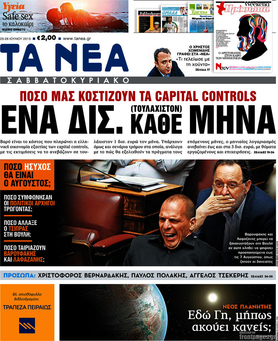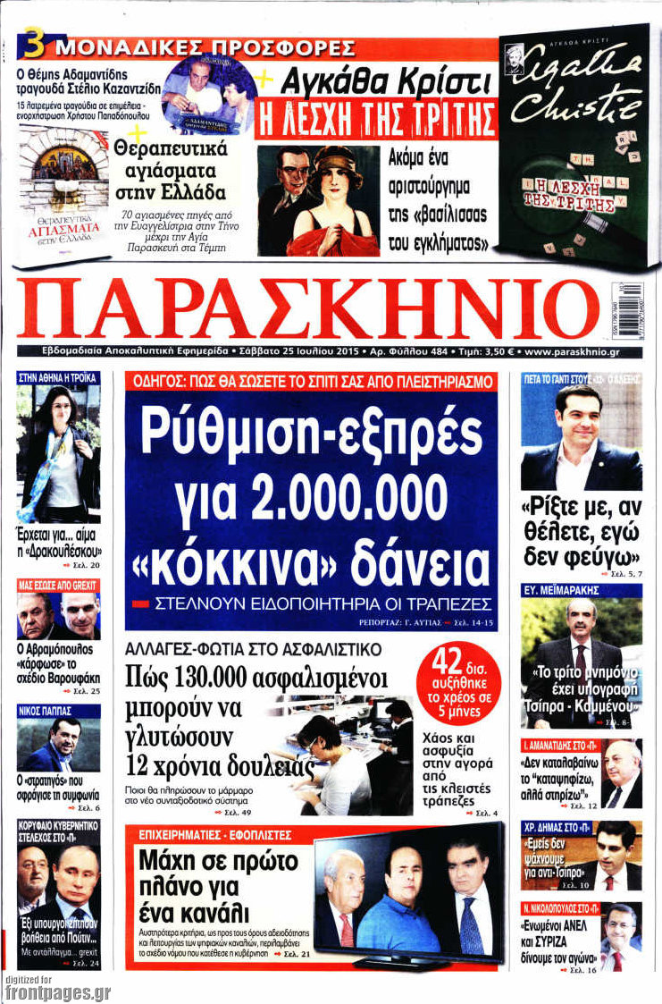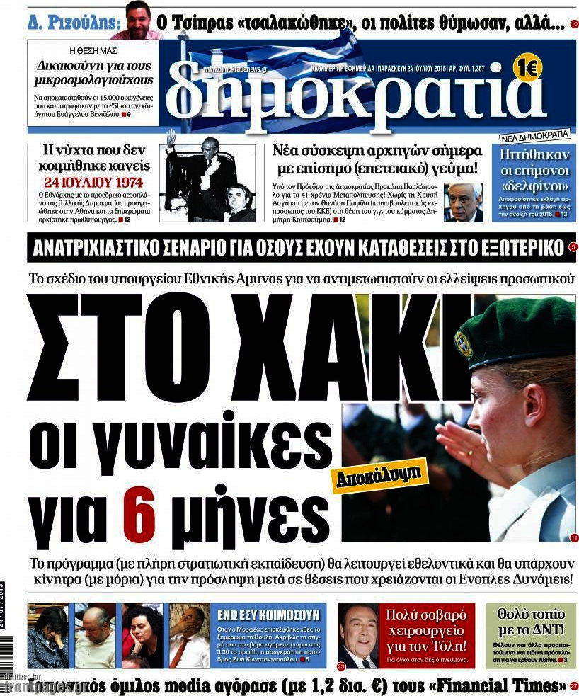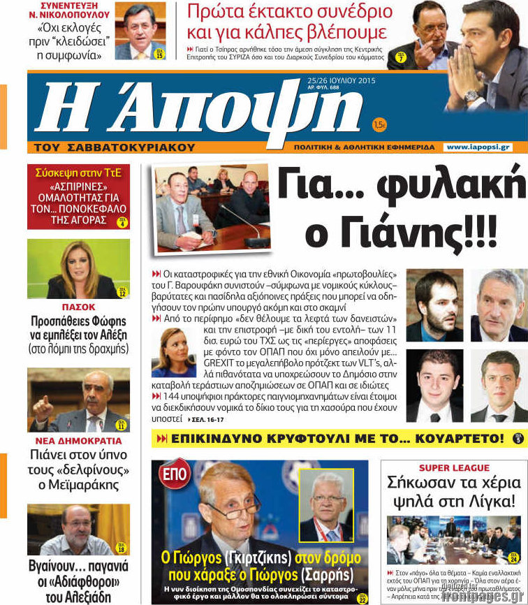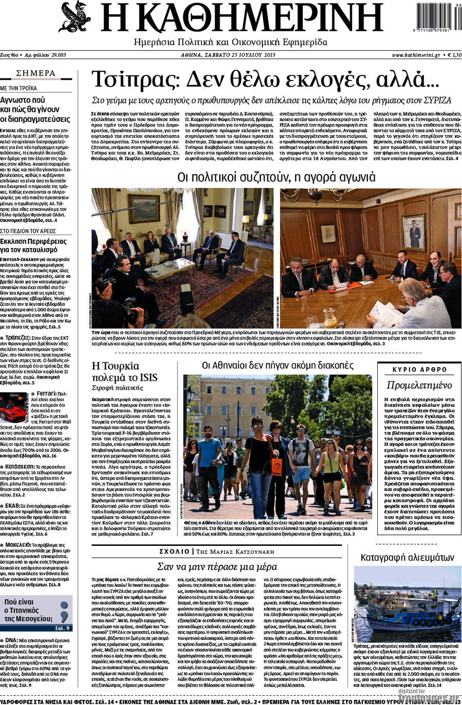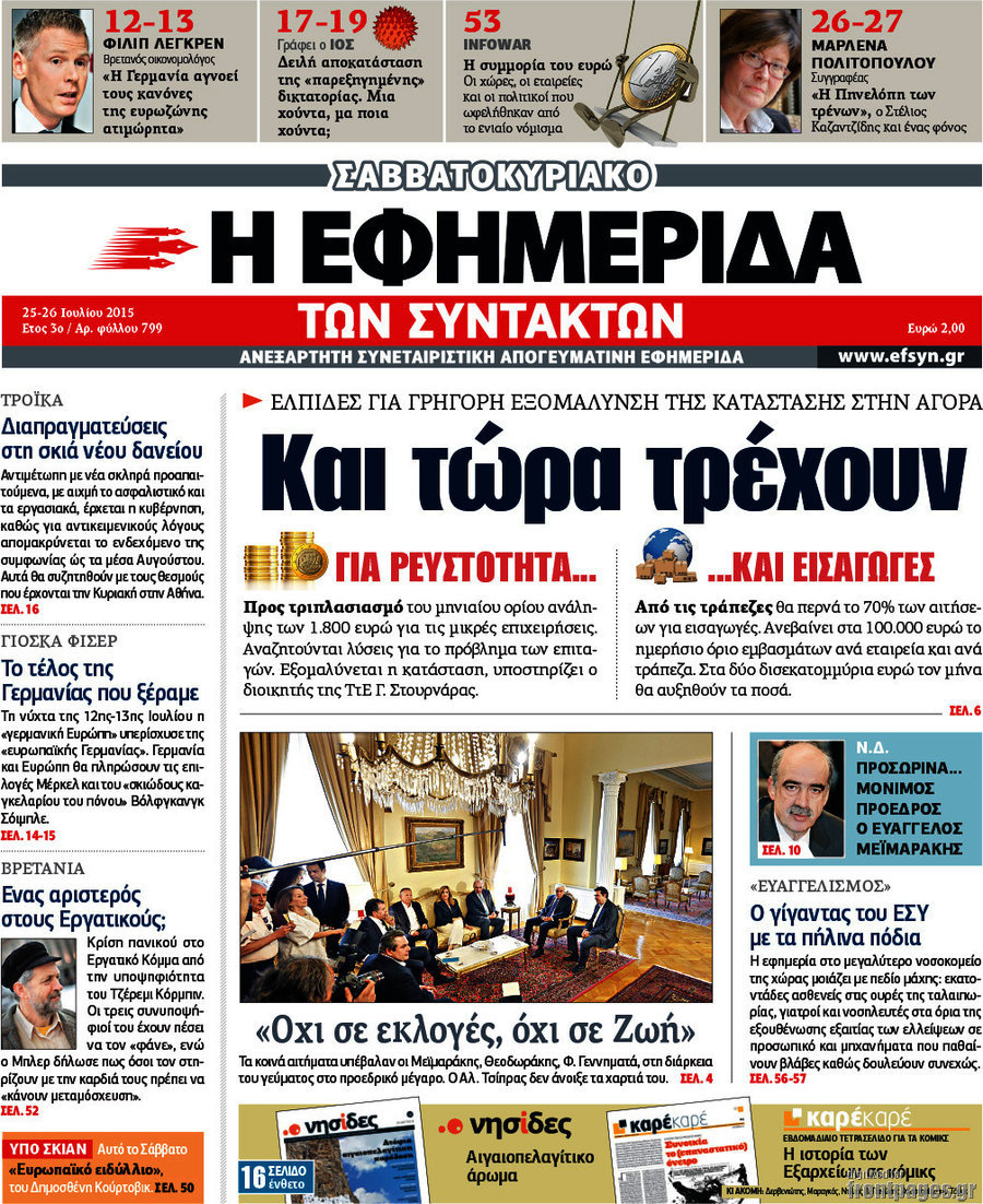 Οι πολιτικές εφημερίδες 25/7/2015 Enikos Newsroom 07:52, Σάββατο 25 Ιουλίου 2015 Media Διαβάστε τα σημερινά πρωτοσέλιδα των πολιτικών εφημερίδων. ΠΟΛΙΤΙΚΕΣ ΕΦΗΜΕΡΙΔΕΣ ΠΡΩΤΟΣΕΛΙΔΑ Μοιράσου το: σχολίασε κι εσύ (0 σχόλια) Ακολουθήστε το enikos.gr στο Google News και μάθετε πρώτοι όλες τις ειδήσεις Δείτε όλες τις τελευταίες ειδήσεις από την Ελλάδα και τον Κόσμο στο enikos.gr Ειδήσεις Ροή Ειδήσεων 3 ώρες πριν Χριστούγεννα στα μπλόκα οι αγρότες: Άνοιξαν στα διόδια και μοίρασαν προϊόντα στους πολίτες – Νέα σύσκεψη την Κυριακή στη Νίκαια 4 ώρες πριν Κύκλωμα διακίνησης ναρκωτικών σε σχολεία: Τηλεφωνούσαν στους ανηλίκους την ώρα του μαθήματος – Οι διάλογοι-σοκ, τα «ψευδώνυμα» και τα βασανιστήρια 3 ώρες πριν Αρχεία Επστάιν: Οι 500 σελίδες που λείπουν, τα αναπάντητα ερωτήματα και οι επώνυμοι – Τι έπεται 5 ώρες πριν Ζελένσκι: Μόνο οι ΗΠΑ και ο Τραμπ μπορούν να πιέσουν τη Ρωσία να βάλει τέλος στον πόλεμο 5 ώρες πριν Φοινικούντα: Προφυλακιστέος ο 30χρονος για συνέργεια στη διπλή δολοφονία – Και άλλα πρόσωπα στο «μικροσκόπιο» 3 ώρες πριν Αποκαλύφθηκε το άγνωστο «GPS» της αρχαιότητας – Πώς οι ναοί «φώτιζαν» τον δρόμο των ναυτικών πριν από την εφεύρεση των φάρων 4 ώρες πριν Ύπνος: Η διατροφή που μπορεί να σας βοηθήσει να κοιμάστε καλύτερα και να ζήσετε περισσότερο 5 ώρες πριν Αριθμολογία: Ο αριθμός του φύλακα αγγέλου σας, με βάση τον μήνα γέννησής σας – «Έτσι σας στέλνει σημάδια το σύμπαν» 17 ώρες πριν Enerwave: Το νέο «ρεύμα» στη λιανική ενέργειας που αλλάζει την εμπειρία του καταναλωτή 12 λεπτά πριν Σεισμός 3,8 Ρίχτερ ανοιχτά της Αμοργού 27 λεπτά πριν Άννα Βίσση: Τα… Social Media «προσκύνησαν» την «απόλυτη» για την συναυλία της στο Καλλιμάρμαρο που προβλήθηκε από το Mega 41 λεπτά πριν Φωτεινή Αθερίδου: «Προσπαθώ να είμαι κάθετη και αυστηρή σαν μαμά πια» 56 λεπτά πριν ΗΠΑ, Αίγυπτος, Κατάρ και Τουρκία συζήτησαν τη δεύτερη φάση του ειρηνευτικού σχεδίου για τη Γάζα 1 ώρα πριν Γιάννης Αντετοκούνμπο: Έμεινε στην 6η θέση της ψηφοφορίας του ESPN για το βραβείο του MVP του NBA ENIKOS NETWORK Οι γυναίκες αποκαλύπτουν το πιο ελκυστικό πράγμα που μπορεί να κάνει ένας άνδρας Ομορφιά και αντιγήρανση: Ειδικοί μιλούν για συσκευές περιποίησης του δέρματος «Πολεμική» προετοιμασία από την ευρωπαϊκή βιομηχανία ενέργειας – Η Eurelectric ζητεί «ομπρέλα» προστασίας για τις υποδομές Ακύρωση ΑΦΜ για απάτες – Ποιους βάζει στο στόχαστρο η ΑΑΔΕ Χαρτογραφώντας το «σημείο χωρίς επιστροφή»: Για πρώτη φορά αποκαλύπτεται με λεπτομέρεια το ακανθώδες όριο της ατμόσφαιρας τ... Η Google καταργεί τη λειτουργία «dark web report» – Πώς θα μπορούν οι χρήστες να διαγράφουν τα δεδομένα τους περισσότερα 01:30 , Κυριακή 21 Δεκεμβρίου 2025 Άννα Βίσση: Τα… Social Media «προσκύνησαν» την «απόλυτη» για την συναυλία της στο Καλλιμάρμαρο που προβλήθηκε από το Mega Την ημέρα των γενεθλίων της Άννας Βίσση, το MEGA τίμησε τη διαχρονική παρουσία της «απόλυτης Ε... 00:00 , Κυριακή 21 Δεκεμβρίου 2025 The Voice: Η επιστροφή της Έλενας Παπαρίζου και η ατάκα του Γιώργου Μαζωνάκη μετά τις καταγγελίες Στη φάση των Cross Battles Live μπήκε το The Voice, με την Έλενα Παπαρίζου να επιστρέφει στο π... 20:30 , Σάββατο 20 Δεκεμβρίου 2025 Αυτή την Κυριακή με τη Realnews: Instyle, μαζί Drive και Realnews Geopolitics Αυτή την Κυριακή με τη Realnews: Instyle, μαζί Drive και Realnews Geopolitics Instyle Η Άννα Ρ... 20:28 , Σάββατο 20 Δεκεμβρίου 2025 Ο ΑΝΤ1 γεμίζει τις γιορτές με μουσική – Ποιους καλλιτέχνες θα απολαύσουμε Φέτος στον ΑΝΤ1 γιορτάζουμε τις νύχτες μας παρέα με αγαπημένους καλλιτέχνες κα