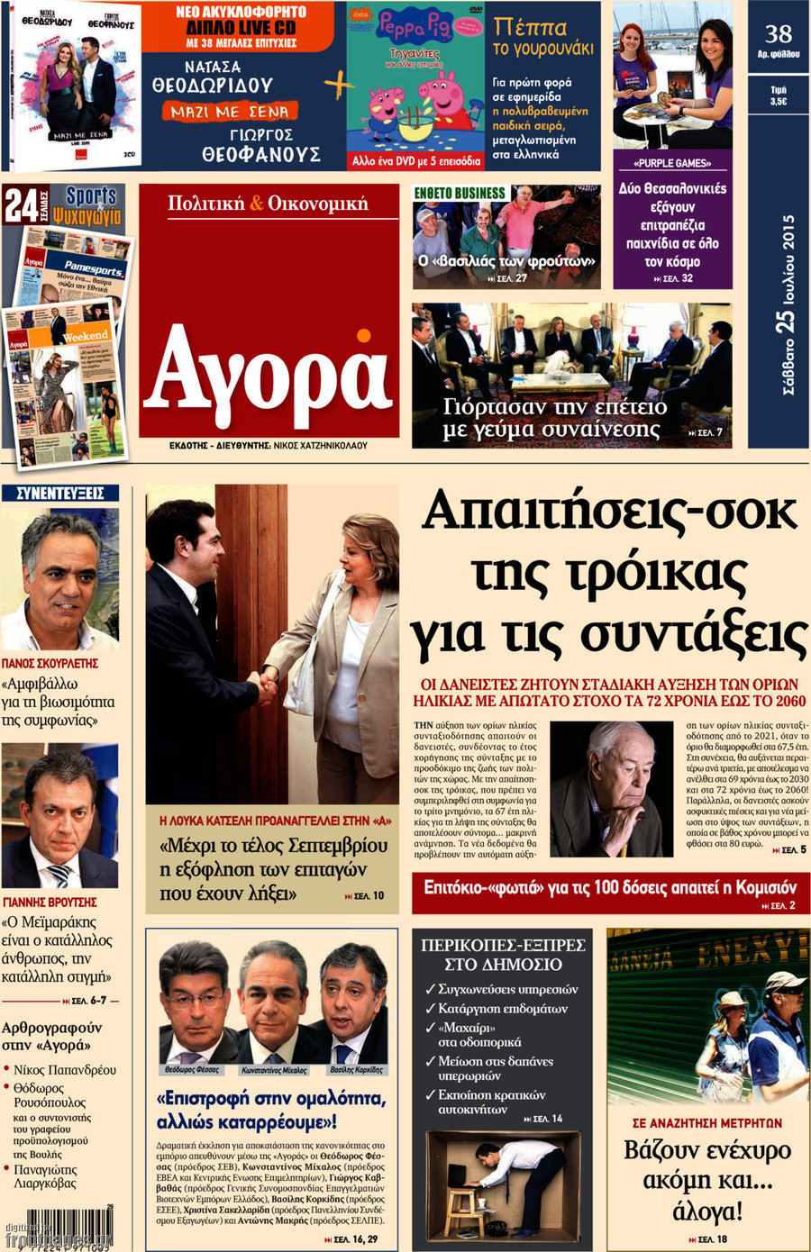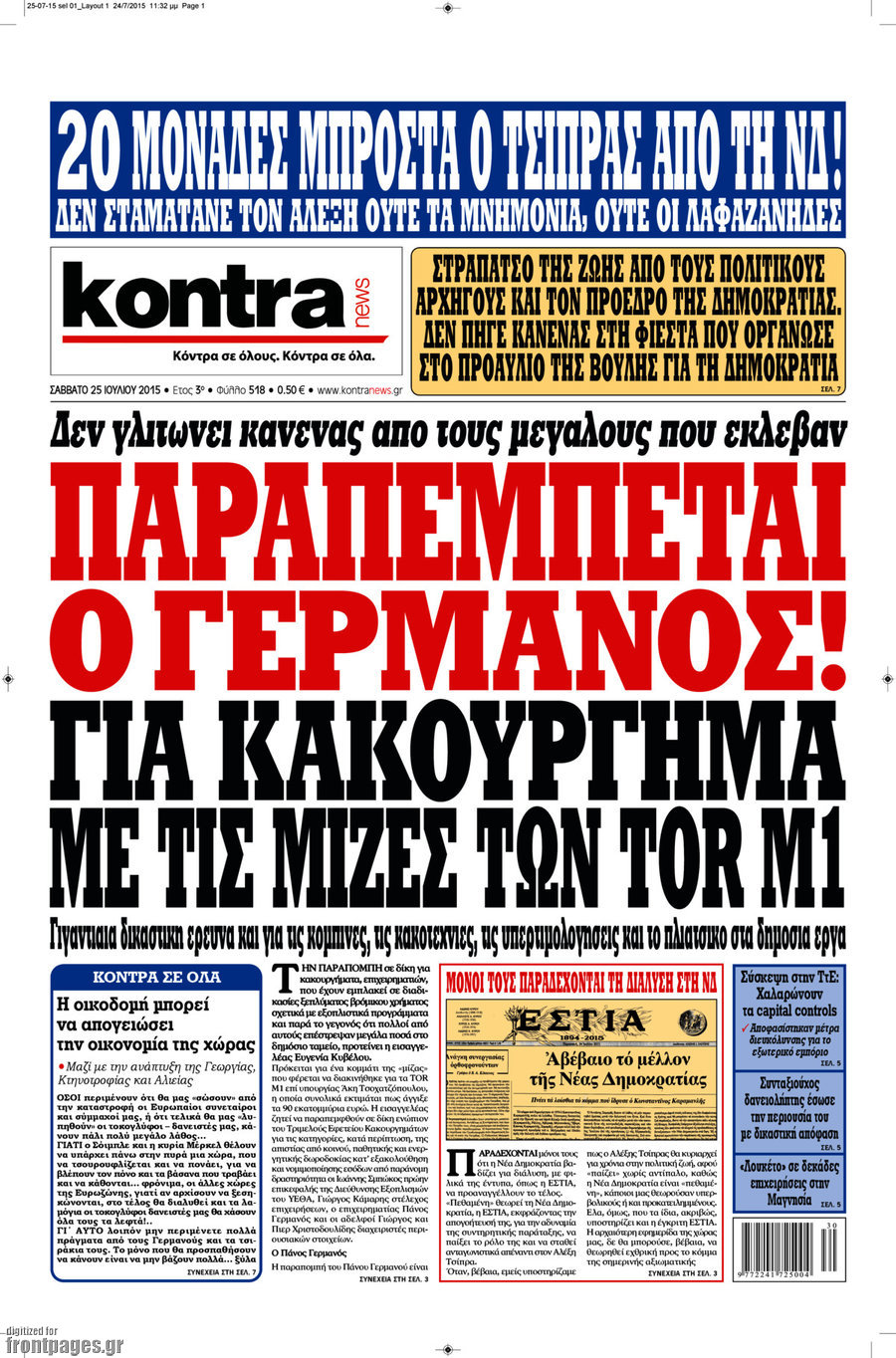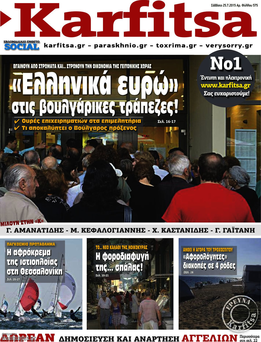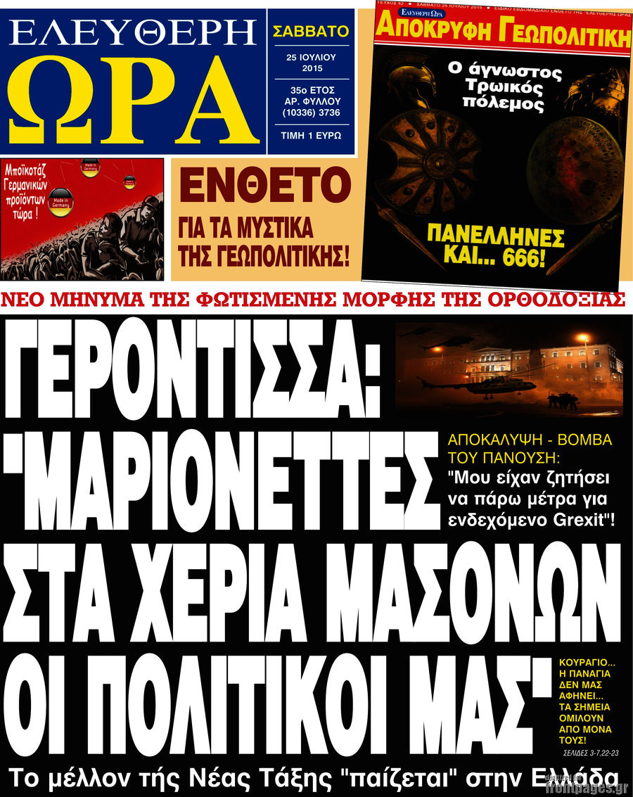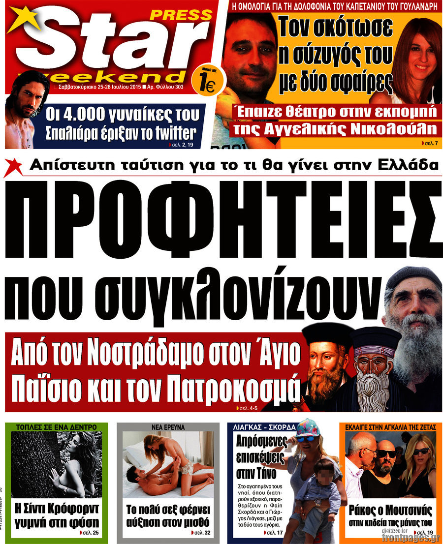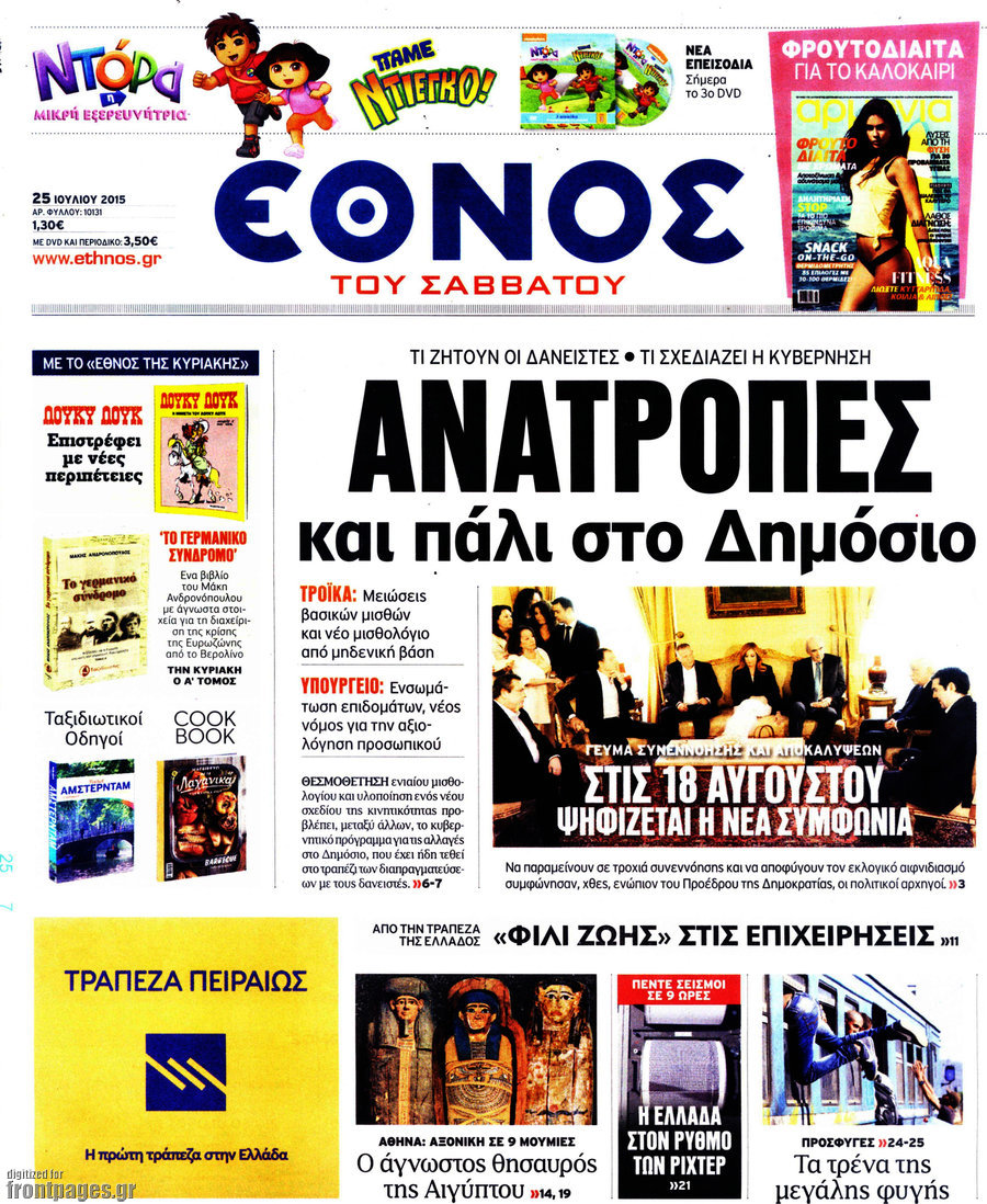 Οι πολιτικές εφημερίδες 25/7/2015 Enikos Newsroom 07:52, Σάββατο 25 Ιουλίου 2015 Media Διαβάστε τα σημερινά πρωτοσέλιδα των πολιτικών εφημερίδων. ΠΟΛΙΤΙΚΕΣ ΕΦΗΜΕΡΙΔΕΣ ΠΡΩΤΟΣΕΛΙΔΑ Μοιράσου το: σχολίασε κι εσύ (0 σχόλια) Ακολουθήστε το enikos.gr στο Google News και μάθετε πρώτοι όλες τις ειδήσεις Δείτε όλες τις τελευταίες ειδήσεις από την Ελλάδα και τον Κόσμο στο enikos.gr Ειδήσεις Ροή Ειδήσεων 3 ώρες πριν Χριστούγεννα στα μπλόκα οι αγρότες: Άνοιξαν στα διόδια και μοίρασαν προϊόντα στους πολίτες – Νέα σύσκεψη την Κυριακή στη Νίκαια 4 ώρες πριν Κύκλωμα διακίνησης ναρκωτικών σε σχολεία: Τηλεφωνούσαν στους ανηλίκους την ώρα του μαθήματος – Οι διάλογοι-σοκ, τα «ψευδώνυμα» και τα βασανιστήρια 3 ώρες πριν Αρχεία Επστάιν: Οι 500 σελίδες που λείπουν, τα αναπάντητα ερωτήματα και οι επώνυμοι – Τι έπεται 5 ώρες πριν Ζελένσκι: Μόνο οι ΗΠΑ και ο Τραμπ μπορούν να πιέσουν τη Ρωσία να βάλει τέλος στον πόλεμο 5 ώρες πριν Φοινικούντα: Προφυλακιστέος ο 30χρονος για συνέργεια στη διπλή δολοφονία – Και άλλα πρόσωπα στο «μικροσκόπιο» 3 ώρες πριν Αποκαλύφθηκε το άγνωστο «GPS» της αρχαιότητας – Πώς οι ναοί «φώτιζαν» τον δρόμο των ναυτικών πριν από την εφεύρεση των φάρων 4 ώρες πριν Ύπνος: Η διατροφή που μπορεί να σας βοηθήσει να κοιμάστε καλύτερα και να ζήσετε περισσότερο 5 ώρες πριν Αριθμολογία: Ο αριθμός του φύλακα αγγέλου σας, με βάση τον μήνα γέννησής σας – «Έτσι σας στέλνει σημάδια το σύμπαν» 17 ώρες πριν Enerwave: Το νέο «ρεύμα» στη λιανική ενέργειας που αλλάζει την εμπειρία του καταναλωτή 12 λεπτά πριν Σεισμός 3,8 Ρίχτερ ανοιχτά της Αμοργού 27 λεπτά πριν Άννα Βίσση: Τα… Social Media «προσκύνησαν» την «απόλυτη» για την συναυλία της στο Καλλιμάρμαρο που προβλήθηκε από το Mega 41 λεπτά πριν Φωτεινή Αθερίδου: «Προσπαθώ να είμαι κάθετη και αυστηρή σαν μαμά πια» 56 λεπτά πριν ΗΠΑ, Αίγυπτος, Κατάρ και Τουρκία συζήτησαν τη δεύτερη φάση του ειρηνευτικού σχεδίου για τη Γάζα 1 ώρα πριν Γιάννης Αντετοκούνμπο: Έμεινε στην 6η θέση της ψηφοφορίας του ESPN για το βραβείο του MVP του NBA ENIKOS NETWORK Οι γυναίκες αποκαλύπτουν το πιο ελκυστικό πράγμα που μπορεί να κάνει ένας άνδρας Ομορφιά και αντιγήρανση: Ειδικοί μιλούν για συσκευές περιποίησης του δέρματος «Πολεμική» προετοιμασία από την ευρωπαϊκή βιομηχανία ενέργειας – Η Eurelectric ζητεί «ομπρέλα» προστασίας για τις υποδομές Ακύρωση ΑΦΜ για απάτες – Ποιους βάζει στο στόχαστρο η ΑΑΔΕ Χαρτογραφώντας το «σημείο χωρίς επιστροφή»: Για πρώτη φορά αποκαλύπτεται με λεπτομέρεια το ακανθώδες όριο της ατμόσφαιρας τ... Η Google καταργεί τη λειτουργία «dark web report» – Πώς θα μπορούν οι χρήστες να διαγράφουν τα δεδομένα τους περισσότερα 01:30 , Κυριακή 21 Δεκεμβρίου 2025 Άννα Βίσση: Τα… Social Media «προσκύνησαν» την «απόλυτη» για την συναυλία της στο Καλλιμάρμαρο που προβλήθηκε από το Mega Την ημέρα των γενεθλίων της Άννας Βίσση, το MEGA τίμησε τη διαχρονική παρουσία της «απόλυτης Ε... 00:00 , Κυριακή 21 Δεκεμβρίου 2025 The Voice: Η επιστροφή της Έλενας Παπαρίζου και η ατάκα του Γιώργου Μαζωνάκη μετά τις καταγγελίες Στη φάση των Cross Battles Live μπήκε το The Voice, με την Έλενα Παπαρίζου να επιστρέφει στο π... 20:30 , Σάββατο 20 Δεκεμβρίου 2025 Αυτή την Κυριακή με τη Realnews: Instyle, μαζί Drive και Realnews Geopolitics Αυτή την Κυριακή με τη Realnews: Instyle, μαζί Drive και Realnews Geopolitics Instyle Η Άννα Ρ... 20:28 , Σάββατο 20 Δεκεμβρίου 2025 Ο ΑΝΤ1 γεμίζει τις γιορτές με μουσική – Ποιους καλλιτέχνες θα απολαύσουμε Φέτος στον ΑΝΤ1 γιορτάζουμε τις νύχτες μας παρέα με αγαπημένους καλλιτέχνες κα