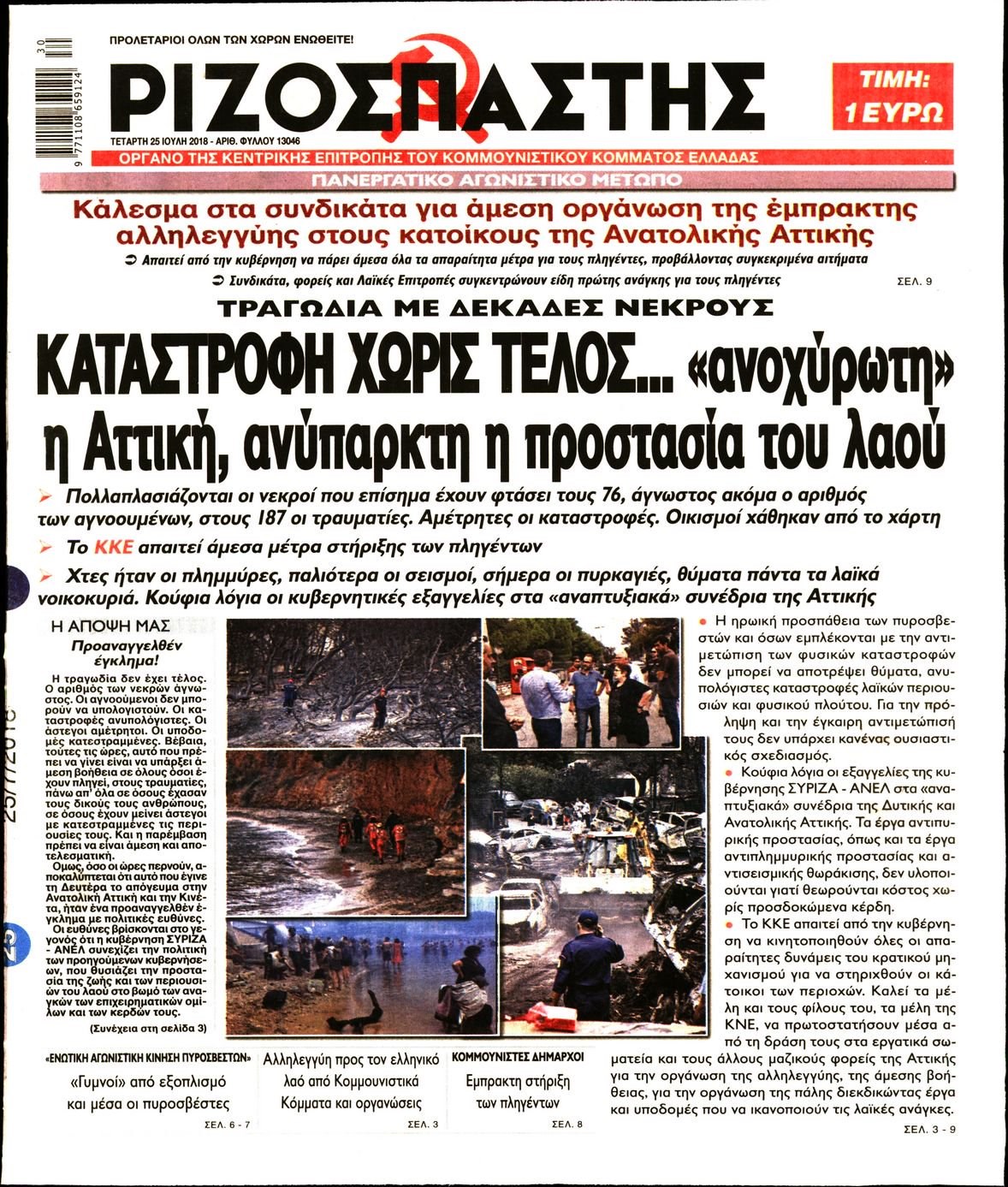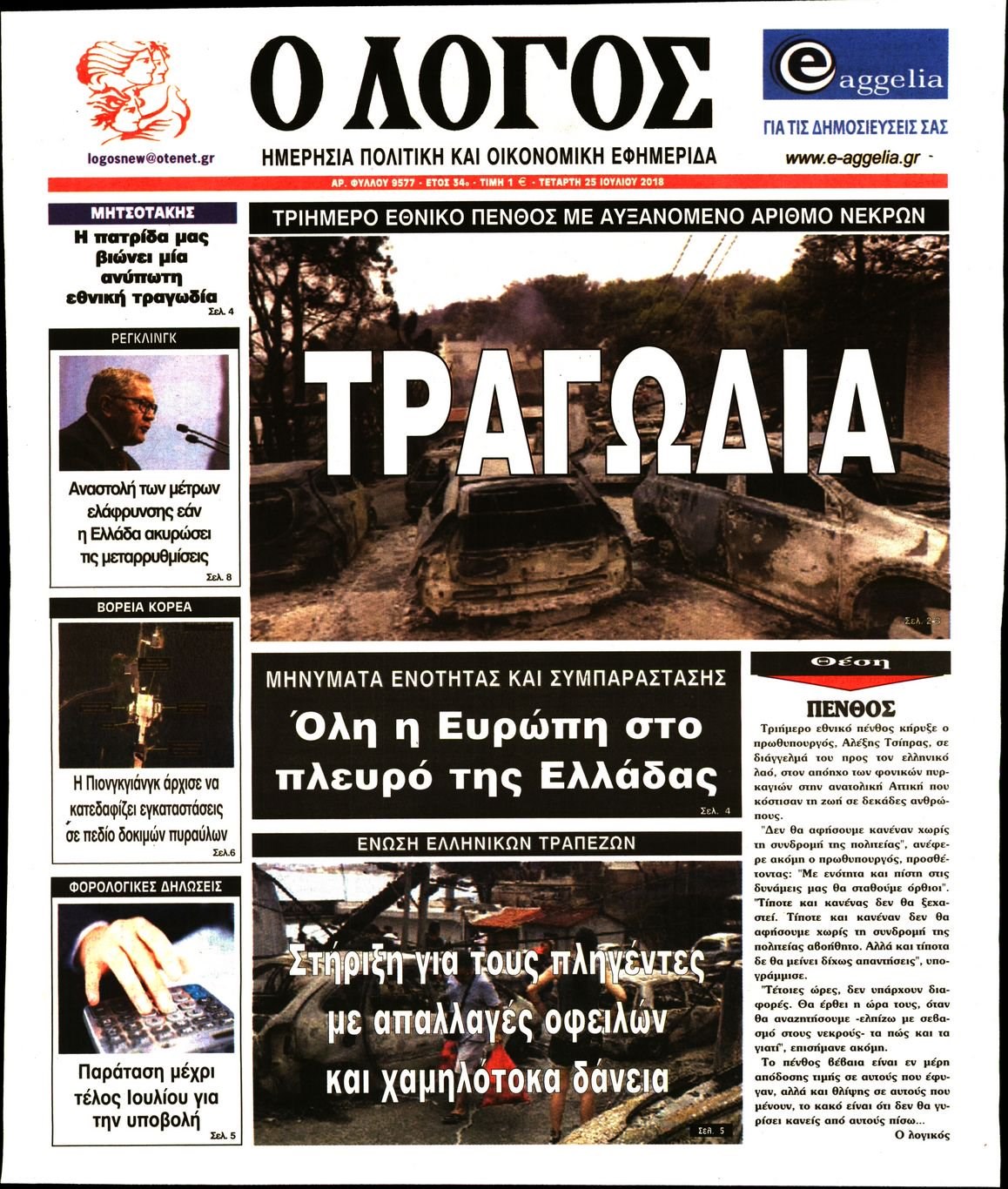 Οι πολιτικές εφημερίδες 25/7/2018 Enikos Newsroom 06:34, Τετάρτη 25 Ιουλίου 2018 Media Διαβάστε τα σημερινά πρωτοσέλιδα των πολιτικών εφημερίδων. ΠΟΛΙΤΙΚΕΣ ΕΦΗΜΕΡΙΔΕΣ ΠΡΩΤΟΣΕΛΙΔΑ Μοιράσου το: σχολίασε κι εσύ (0 σχόλια) Ακολουθήστε το enikos.gr στο Google News και μάθετε πρώτοι όλες τις ειδήσεις Δείτε όλες τις τελευταίες ειδήσεις από την Ελλάδα και τον Κόσμο στο enikos.gr Ειδήσεις Ροή Ειδήσεων 1 ώρα πριν Μαρινάκης: Ο Πρωθυπουργός δεν μπορεί να λειτουργεί με όρους τελεσίγραφων – Περιμένουμε τα ονόματα των αγροτών που θα συμμετέχουν στις 2 συναντήσεις 3 ώρες πριν Κύπρος: Παραιτήθηκε ο Χαράλαμπος Χαραλάμπους από διευθυντής του γραφείου του Χριστοδουλίδη 2 ώρες πριν Σέρρες: Εισαγγελική έρευνα για τις αναφορές του «Χαμόγελου του Παιδιού» προ ετών για το περιβάλλον του 16χρονου 3 ώρες πριν Τραμπ για Γροιλανδία: «Η άμυνά τους είναι δύο έλκηθρα με σκύλους» – Επιμένει στην «απόκτηση» της χώρας από τις ΗΠΑ 3 ώρες πριν Ρούλα Πισπιρίγκου: Αναβολή για τον Σεπτέμβριο πήρε η δίκη της για τη δολοφονία της Τζωρτζίνας 5 ώρες πριν Πέταξε έξω από το σπίτι τον αρραβωνιαστικό της με την αγενέστατη κόρη του – «Σκέφτομαι να τον χωρίσω, θέλω την ηρεμία μου» 4 ώρες πριν Τα 3 ζώδια που ξαναβρίσκουν την ελπίδα που είχαν χάσει εδώ και καιρό – «Μία παλιά ιδέα αξίζει μία δεύτερη ευκαιρία» 3 ώρες πριν Η γλώσσα της «δυσαρέσκειας»: 8 φράσεις που εκπέμπουν μιζέρια και αρνητικότητα χωρίς να το συνειδητοποιείτε 2 ώρες πριν Γυναίκα έχασε 55 κιλά και βελτίωσε την ψυχολογία της τηρώντας έναν κανόνα – «Το κλειδί της επιτυχίας ήταν η ευκολία» 1 λεπτό πριν Νίκος Χριστοδουλίδης: «Ενεργώ με ανοιχτά χαρτιά και πάνω από όλα καθαρά χέρια» – Τι είπε για την παραίτηση του διευθυντή του γραφείου του 7 λεπτά πριν Λευκό τοπίο στην Πάρνηθα: Το έστρωσε στα ορειβατικά καταφύγια Μπάφι και Φλαμπούρι 11 λεπτά πριν Τραγωδία στη Νέα Ιωνία: Αυτοκίνητο παρέσυρε και σκότωσε πεζό 12 λεπτά πριν Παρίσι: Κλειστό ξανά το Μουσείο του Λούβρου λόγω απεργίας 17 λεπτά πριν Κακοκαιρία στην Αλεξανδρούπολη: Στις 68 οι αιτήσεις των επιχειρήσεων που επλήγησαν από την καταιγίδα – Στις 150 οι κατοικίες που υπέστησαν ζημιές ENIKOS NETWORK Μουστάρδα, μαρμελάδες, οδοντόκρεμα και άλλα προϊόντα που περιέχουν καρκινογόνα πρόσθετα, σύμφωνα με νέα μελέτη ΕΟΦ: Οδηγίες για ασφαλή χρήση φαρμάκου για την επιληψία σε νεογνά- Κίνδυνος σοβαρών παρενεργειών «Ημέρα Καριέρας» της ΔΥΠΑ: Στο επίκεντρο της απασχόλησης βρέθηκε η Λάρισα – Μεγάλο το ενδιαφέρον πολιτών και επιχειρήσεων Συνολικά 120 νέες μόνιμες προσλήψεις σε φορέα του Δημοσίου: Ποιοι και μέχρι πότε μπορούν να υποβάλλουν αίτηση Ο Google Assistant θα παραμείνει λίγο περισσότερο για ορισμένους χρήστες Android Τεστ προσωπικότητας: Το βάζο που θα επιλέξετε αποκαλύπτει πώς λύνετε προβλήματα στη ζωή σας περισσότερα 10:15 , Δευτέρα 12 Ιανουαρίου 2026 Μαζωνάκης: Τι θα γίνει με τη νέα μουσική εκπομπή που συζητούσε Σε νέες βάσεις μπαίνει η συνεργασία του Γιώργου Μαζωνάκη με τον ΣΚΑΪ μετά το φινάλε του «The v... 09:45 , Δευτέρα 12 Ιανουαρίου 2026 Αλλαγή φρουράς στην πρωινή ζώνη του Σαββατοκύριακου του ANT1 Η απόφαση του ΑΝΤ1 να διακόψει το «Πρωινό Σαββατοκύριακο» με την Ελένη Τσολάκη και η επιστροφή... 08:07 , Δευτέρα 12 Ιανουαρίου 2026 Χρυσές Σφαίρες 2026: Θρίαμβος για το «One Battle After Another» με 4 βραβεία και δικαίωση για τον Σαλαμέ – Η λίστα των μεγάλων νικητών Με ανατροπές και σαρκασμό η 83η τελετή για τις Χρυσές Σφαίρες ολοκληρώθηκε το βράδυ της Κυριακ... 08:00 , Δευτέρ