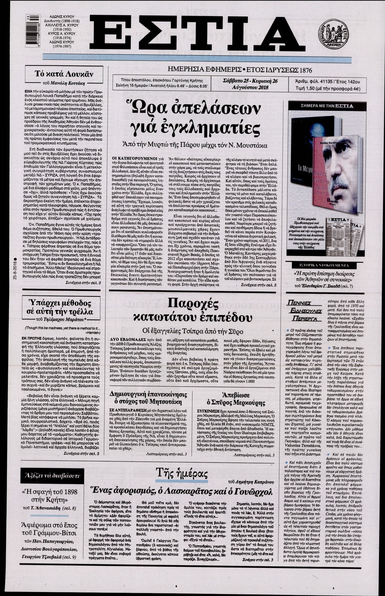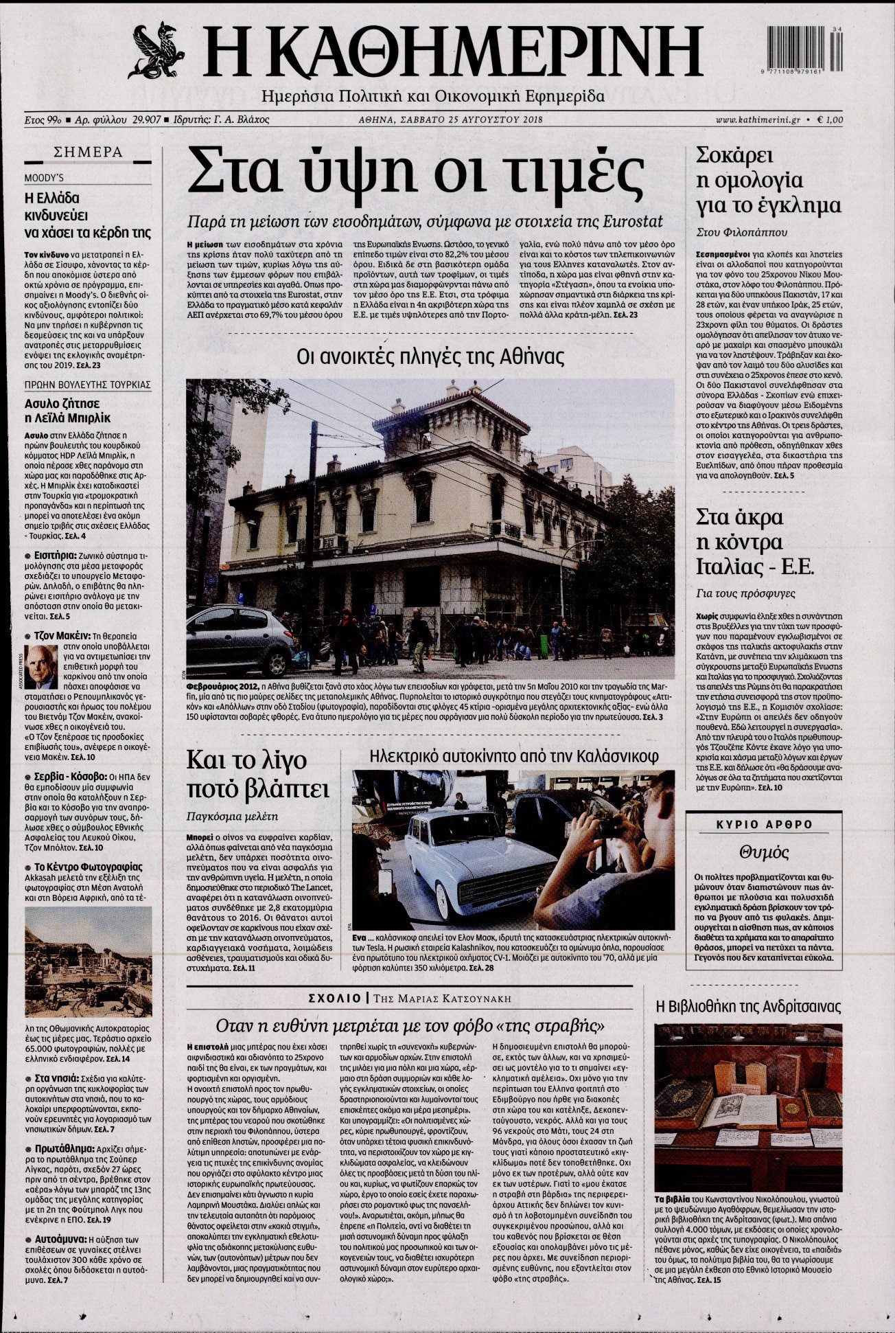 Οι πολιτικές εφημερίδες 25/8/2018 Enikos Newsroom 06:26, Σάββατο 25 Αυγούστου 2018 Media Διαβάστε τα πρωτοσέλιδα των πολιτικών εφημερίδων. ΠΟΛΙΤΙΚΕΣ ΕΦΗΜΕΡΙΔΕΣ ΠΡΩΤΟΣΕΛΙΔΑ Μοιράσου το: σχολίασε κι εσύ (0 σχόλια) Ακολουθήστε το enikos.gr στο Google News και μάθετε πρώτοι όλες τις ειδήσεις Δείτε όλες τις τελευταίες ειδήσεις από την Ελλάδα και τον Κόσμο στο enikos.gr Ειδήσεις Ροή Ειδήσεων 4 ώρες πριν Χριστούγεννα στα μπλόκα οι αγρότες: Άνοιξαν στα διόδια και μοίρασαν προϊόντα στους πολίτες – Νέα σύσκεψη την Κυριακή στη Νίκαια 4 ώρες πριν Κύκλωμα διακίνησης ναρκωτικών σε σχολεία: Τηλεφωνούσαν στους ανηλίκους την ώρα του μαθήματος – Οι διάλογοι-σοκ, τα «ψευδώνυμα» και τα βασανιστήρια 3 ώρες πριν Αρχεία Επστάιν: Οι 500 σελίδες που λείπουν, τα αναπάντητα ερωτήματα και οι επώνυμοι – Τι έπεται 5 ώρες πριν Ζελένσκι: Μόνο οι ΗΠΑ και ο Τραμπ μπορούν να πιέσουν τη Ρωσία να βάλει τέλος στον πόλεμο 6 ώρες πριν Φοινικούντα: Προφυλακιστέος ο 30χρονος για συνέργεια στη διπλή δολοφονία – Και άλλα πρόσωπα στο «μικροσκόπιο» 3 ώρες πριν Αποκαλύφθηκε το άγνωστο «GPS» της αρχαιότητας – Πώς οι ναοί «φώτιζαν» τον δρόμο των ναυτικών πριν από την εφεύρεση των φάρων 4 ώρες πριν Ύπνος: Η διατροφή που μπορεί να σας βοηθήσει να κοιμάστε καλύτερα και να ζήσετε περισσότερο 5 ώρες πριν Αριθμολογία: Ο αριθμός του φύλακα αγγέλου σας, με βάση τον μήνα γέννησής σας – «Έτσι σας στέλνει σημάδια το σύμπαν» 17 ώρες πριν Enerwave: Το νέο «ρεύμα» στη λιανική ενέργειας που αλλάζει την εμπειρία του καταναλωτή 11 λεπτά πριν Δυτική Όχθη: Δύο Παλαιστίνιοι νεκροί από σφαίρες του Ισραηλινού στρατού 26 λεπτά πριν Ένοχος ο 54χρονος «ερευνητής» που έταζε ότι θα εντοπίσει τον αγνοούμενο γιατρό από την Κρήτη – «Μας γέμισε φρούδες ελπίδες», λέει ο πατέρας του 33χρονου 41 λεπτά πριν Σεισμός 3,8 Ρίχτερ ανοιχτά της Αμοργού 57 λεπτά πριν Άννα Βίσση: Τα… Social Media «προσκύνησαν» την «απόλυτη» για την συναυλία της στο Καλλιμάρμαρο που προβλήθηκε από το Mega 1 ώρα πριν Φωτεινή Αθερίδου: «Προσπαθώ να είμαι κάθετη και αυστηρή σαν μαμά πια» ENIKOS NETWORK Οι γυναίκες αποκαλύπτουν το πιο ελκυστικό πράγμα που μπορεί να κάνει ένας άνδρας Ομορφιά και αντιγήρανση: Ειδικοί μιλούν για συσκευές περιποίησης του δέρματος «Πολεμική» προετοιμασία από την ευρωπαϊκή βιομηχανία ενέργειας – Η Eurelectric ζητεί «ομπρέλα» προστασίας για τις υποδομές Ακύρωση ΑΦΜ για απάτες – Ποιους βάζει στο στόχαστρο η ΑΑΔΕ Χαρτογραφώντας το «σημείο χωρίς επιστροφή»: Για πρώτη φορά αποκαλύπτεται με λεπτομέρεια το ακανθώδες όριο της ατμόσφαιρας τ... Η Google καταργεί τη λειτουργία «dark web report» – Πώς θα μπορούν οι χρήστες να διαγράφουν τα δεδομένα τους περισσότερα 01:30 , Κυριακή 21 Δεκεμβρίου 2025 Άννα Βίσση: Τα… Social Media «προσκύνησαν» την «απόλυτη» για την συναυλία της στο Καλλιμάρμαρο που προβλήθηκε από το Mega Την ημέρα των γενεθλίων της Άννας Βίσση, το MEGA τίμησε τη διαχρονική παρουσία της «απόλυτης Ε... 00:00 , Κυριακή 21 Δεκεμβρίου 2025 The Voice: Η επιστροφή της Έλενας Παπαρίζου και η ατάκα του Γιώργου Μαζωνάκη μετά τις καταγγελίες Στη φάση των Cross Battles Live μπήκε το The Voice, με την Έλενα Παπαρίζου να επιστρέφει στο π... 20:30 , Σάββατο 20 Δεκεμβρίου 2025 Αυτή την Κυριακή με τη Realnews: Instyle, μαζί Drive και Realnews Geopolitics Αυτή την Κυριακή με τη Realnews: Instyle, μαζί Drive και Realnews Geopolitics Instyle Η Άννα Ρ... 20:28 , Σάββατο 20 Δεκεμβρίου 2025 Ο ΑΝΤ1 γεμίζει τις γιορτές με μουσική – Ποιους καλλιτέχνες θα απολαύσουμε Φέτος στον ΑΝΤ1 γιορτάζουμε τις νύχτες μας παρέα 
