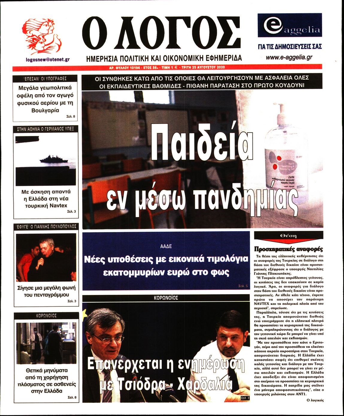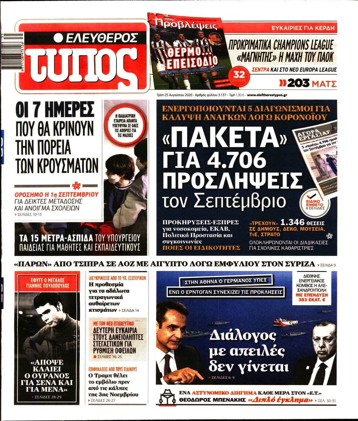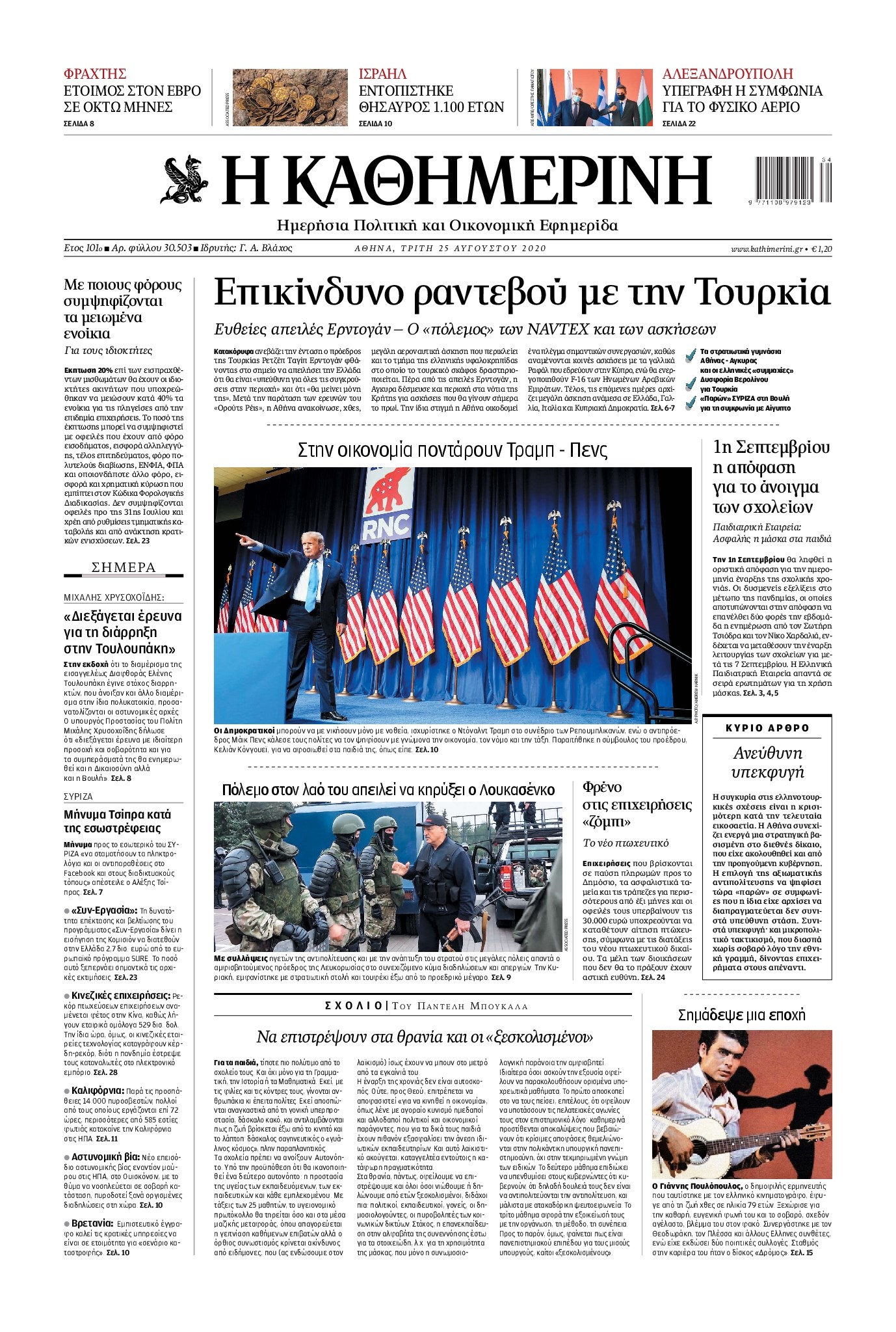 Οι πολιτικές εφημερίδες 25/8/2020 Διονύσης Νίκκας 06:12, Τρίτη 25 Αυγούστου 2020 Media Διαβάστε τα πρωτοσέλιδα των πολιτικών εφημερίδων… ΠΟΛΙΤΙΚΕΣ ΕΦΗΜΕΡΙΔΕΣ ΠΡΩΤΟΣΕΛΙΔΑ Μοιράσου το: σχολίασε κι εσύ (0 σχόλια) Ακολουθήστε το enikos.gr στο Google News και μάθετε πρώτοι όλες τις ειδήσεις Δείτε όλες τις τελευταίες ειδήσεις από την Ελλάδα και τον Κόσμο στο enikos.gr Ειδήσεις Ροή Ειδήσεων 9 ώρες πριν Χριστούγεννα στα μπλόκα: Επιμένουν στις κινητοποιήσεις τους οι αγρότες – Ανοίγουν τα διόδια το Σαββατοκύριακο 2 ώρες πριν Σαρωτικοί οι έλεγχοι στους δρόμους ενόψει εορτών – Μπλόκα της τροχαίας σε κεντρικές αρτηρίες της Αττικής 9 ώρες πριν Πούτιν: Τα μηνύματα σε Ευρώπη και ΝΑΤΟ από το μαραθώνιο «σόου» του – Η απαίτηση για «σεβασμό» και η ειρήνη «με τους όρους» της Μόσχας 8 ώρες πριν ΗΠΑ: Η κυβέρνηση του Ντόναλντ Τραμπ άρχισε να δημοσιοποιεί τα αρχεία Έπσταϊν 8 ώρες πριν Άνω Λιόσια: Πυροβολισμοί σε επιχείρηση με χαλιά – Εντοπίστηκαν 10 κάλυκες 2 ώρες πριν Αυγά: Πόσα μπορείτε να τρώτε την ημέρα με ασφάλεια για μέγιστη πρόσληψη πρωτεΐνης 2 ώρες πριν Τα ζώδια σήμερα, Σάββατο 20 Δεκεμβρίου: Παρθένοι, το σύμπαν σας δίνει το κλειδί 9 ώρες πριν Ανακαλύφθηκαν αρχαία χρυσά νομίσματα 2.200 ετών που απεικονίζουν τον θεό Απόλλωνα – Η άγνωστη σύνδεση με τον Φίλιππο Β΄ της Μακεδονίας 1 ώρα πριν Οπτική ψευδαίσθηση: Μόνο αν είσαι ο Σέρλοκ Χολμς θα βρεις τον αριθμό «87» σε 7 δευτερόλεπτα 8 λεπτά πριν ΟΝΕΧ – MEGATUGS: Ξεκίνησε η ναυπήγηση ρυμουλκών στην Ελλάδα – Προθάλαμος πολεμικών πλοίων – Δείτε φωτογραφίες και βίντεο 17 λεπτά πριν Φοινικούντα: Σήμερα απολογείται ο 30χρονος γιος γνωστού επιχειρηματία της Πλάκας 24 λεπτά πριν Οι αθλητικές μεταδόσεις 20/12/2025 34 λεπτά πριν Εορτολόγιο: Ποιοι γιορτάζουν σήμερα 20 Δεκεμβρίου 41 λεπτά πριν Συρία: Μπαράζ αμερικανικών επιδρομών εναντίον του ISIS – «Πλήττουμε δυνατά οχυρά του ΙΚ» λέει ο Ντόναλντ Τραμπ ENIKOS NETWORK Πρέπει να αποδέχεστε ή να απορρίπτετε όλα τα cookies; Ένας ειδικός εξηγεί Η αγαπημένη λιχουδιά των πόνι που μπορεί να ενισχύσει όραση, εγκέφαλο και ανοσοποιητικό Αναστολή μέτρων αναγκαστικής εκτέλεσης για κτηνοτρόφους που πλήττονται από την ευλογιά των αιγοπροβάτων Πλήρης επάρκεια προϊόντων στις λαϊκές της Αττικής, παρά τις αγροτικές κινητοποιήσεις – Τι απαντούν οι πωλητές Χαρτογραφώντας το «σημείο χωρίς επιστροφή»: Για πρώτη φορά αποκαλύπτεται με λεπτομέρεια το ακανθώδες όριο της ατμόσφαιρας τ... Η Google καταργεί τη λειτουργία «dark web report» – Πώς θα μπορούν οι χρήστες να διαγράφουν τα δεδομένα τους περισσότερα 05:48 , Σάββατο 20 Δεκεμβρίου 2025 Οι οικονομικές εφημερίδες 20/12/2025 Διαβάστε τα πρωτοσέλιδα από τις οικονομικές εφημερίδες, σήμερα 20/12/2025. 05:43 , Σάββατο 20 Δεκεμβρίου 2025 Οι αθλητικές εφημερίδες 20/12/2025 Διαβάστε τα πρωτοσέλιδα από τις αθλητικές εφημερίδες, σήμερα 20/12/2025. 05:38 , Σάββατο 20 Δεκεμβρίου 2025 Οι πολιτικές εφημερίδες 20/12/2025 Διαβάστε τα πρωτοσέλιδα από τις πολιτικές εφημερίδες, σήμερα 20/12/2025. 04:20 , Σάββατο 20 Δεκεμβρίου 2025 Αγγελική Νικολούλη: Τα συλλυπητήρια για την απώλεια της Ειρήνης Μαρινάκη Τα συλληπητήρια στον πρόεδρο του Mega, τον Βαγγέλη Μαρινάκη, για την απώλεια της μητέρας του Ε... ΤΕΛΕΥΤΑΙΕΣ ΕΙΔΗΣΕΙΣ 8 λεπτά πριν ΟΝΕΧ – MEGATUGS: Ξεκίνησε η ναυπήγηση ρυμουλκών στην... 17 λεπτά πριν Φοινικούντα: Σήμερα απολογείται ο 30χρονος γιος... 24 λεπτά πριν Οι αθλητικές μεταδόσεις 20/12/2025 34 λεπτά πριν Εορτολόγιο: Ποιοι γιορτάζουν σήμερα 20 Δεκεμβρίου 41 λεπτά πριν Συρία: Μπαράζ