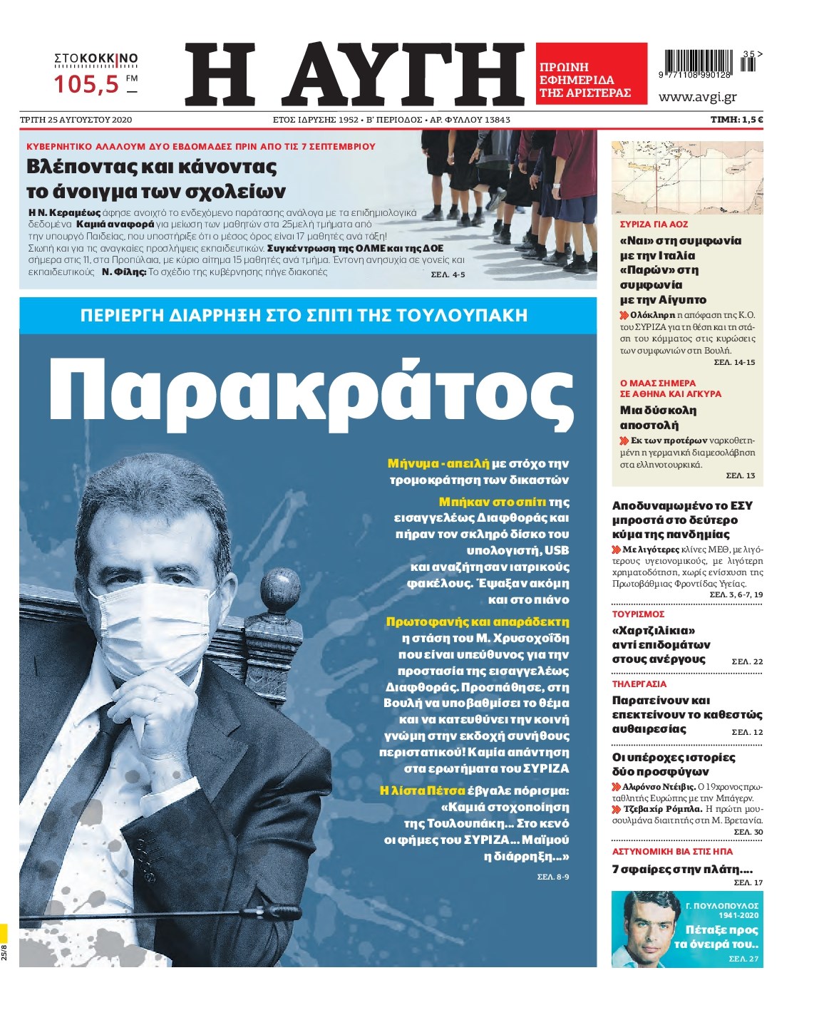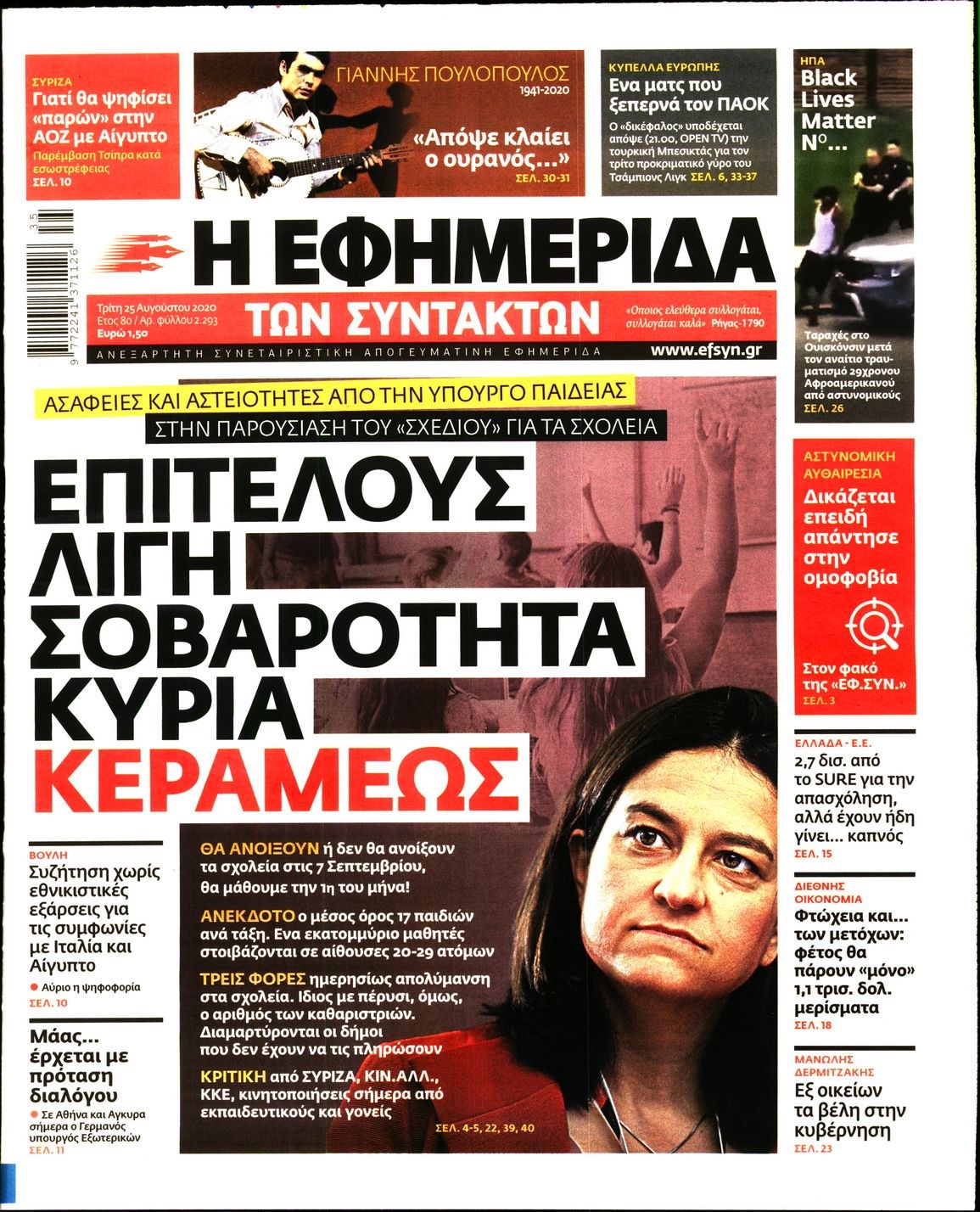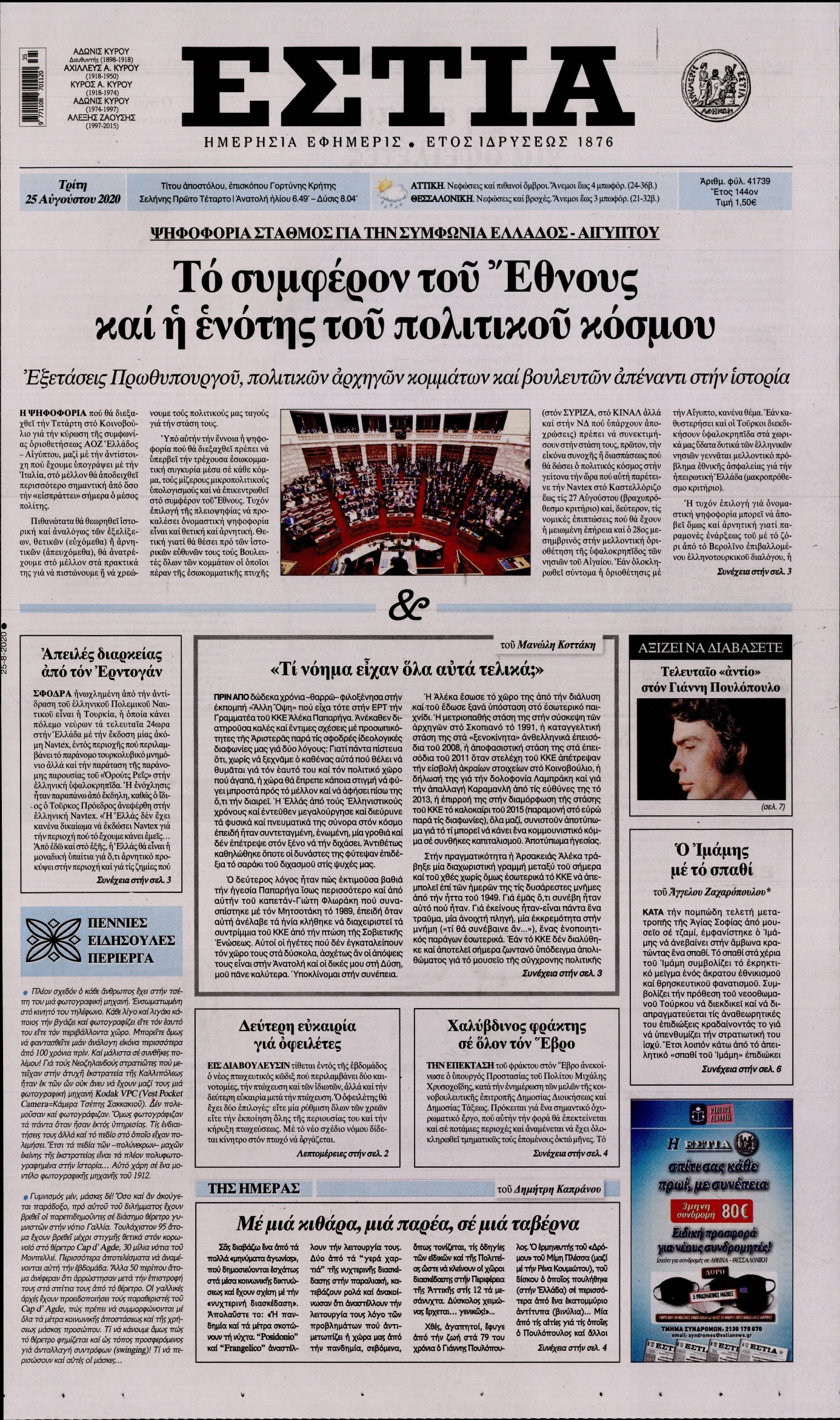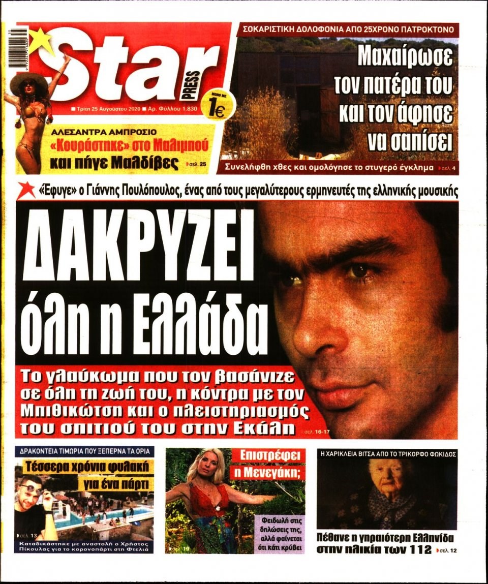 Οι πολιτικές εφημερίδες 25/8/2020 Διονύσης Νίκκας 06:12, Τρίτη 25 Αυγούστου 2020 Media Διαβάστε τα πρωτοσέλιδα των πολιτικών εφημερίδων… ΠΟΛΙΤΙΚΕΣ ΕΦΗΜΕΡΙΔΕΣ ΠΡΩΤΟΣΕΛΙΔΑ Μοιράσου το: σχολίασε κι εσύ (0 σχόλια) Ακολουθήστε το enikos.gr στο Google News και μάθετε πρώτοι όλες τις ειδήσεις Δείτε όλες τις τελευταίες ειδήσεις από την Ελλάδα και τον Κόσμο στο enikos.gr Ειδήσεις Ροή Ειδήσεων 9 ώρες πριν Χριστούγεννα στα μπλόκα: Επιμένουν στις κινητοποιήσεις τους οι αγρότες – Ανοίγουν τα διόδια το Σαββατοκύριακο 2 ώρες πριν Σαρωτικοί οι έλεγχοι στους δρόμους ενόψει εορτών – Μπλόκα της τροχαίας σε κεντρικές αρτηρίες της Αττικής 9 ώρες πριν Πούτιν: Τα μηνύματα σε Ευρώπη και ΝΑΤΟ από το μαραθώνιο «σόου» του – Η απαίτηση για «σεβασμό» και η ειρήνη «με τους όρους» της Μόσχας 8 ώρες πριν ΗΠΑ: Η κυβέρνηση του Ντόναλντ Τραμπ άρχισε να δημοσιοποιεί τα αρχεία Έπσταϊν 8 ώρες πριν Άνω Λιόσια: Πυροβολισμοί σε επιχείρηση με χαλιά – Εντοπίστηκαν 10 κάλυκες 2 ώρες πριν Αυγά: Πόσα μπορείτε να τρώτε την ημέρα με ασφάλεια για μέγιστη πρόσληψη πρωτεΐνης 2 ώρες πριν Τα ζώδια σήμερα, Σάββατο 20 Δεκεμβρίου: Παρθένοι, το σύμπαν σας δίνει το κλειδί 9 ώρες πριν Ανακαλύφθηκαν αρχαία χρυσά νομίσματα 2.200 ετών που απεικονίζουν τον θεό Απόλλωνα – Η άγνωστη σύνδεση με τον Φίλιππο Β΄ της Μακεδονίας 1 ώρα πριν Οπτική ψευδαίσθηση: Μόνο αν είσαι ο Σέρλοκ Χολμς θα βρεις τον αριθμό «87» σε 7 δευτερόλεπτα 8 λεπτά πριν ΟΝΕΧ – MEGATUGS: Ξεκίνησε η ναυπήγηση ρυμουλκών στην Ελλάδα – Προθάλαμος πολεμικών πλοίων – Δείτε φωτογραφίες και βίντεο 17 λεπτά πριν Φοινικούντα: Σήμερα απολογείται ο 30χρονος γιος γνωστού επιχειρηματία της Πλάκας 24 λεπτά πριν Οι αθλητικές μεταδόσεις 20/12/2025 34 λεπτά πριν Εορτολόγιο: Ποιοι γιορτάζουν σήμερα 20 Δεκεμβρίου 41 λεπτά πριν Συρία: Μπαράζ αμερικανικών επιδρομών εναντίον του ISIS – «Πλήττουμε δυνατά οχυρά του ΙΚ» λέει ο Ντόναλντ Τραμπ ENIKOS NETWORK Πρέπει να αποδέχεστε ή να απορρίπτετε όλα τα cookies; Ένας ειδικός εξηγεί Η αγαπημένη λιχουδιά των πόνι που μπορεί να ενισχύσει όραση, εγκέφαλο και ανοσοποιητικό Αναστολή μέτρων αναγκαστικής εκτέλεσης για κτηνοτρόφους που πλήττονται από την ευλογιά των αιγοπροβάτων Πλήρης επάρκεια προϊόντων στις λαϊκές της Αττικής, παρά τις αγροτικές κινητοποιήσεις – Τι απαντούν οι πωλητές Χαρτογραφώντας το «σημείο χωρίς επιστροφή»: Για πρώτη φορά αποκαλύπτεται με λεπτομέρεια το ακανθώδες όριο της ατμόσφαιρας τ... Η Google καταργεί τη λειτουργία «dark web report» – Πώς θα μπορούν οι χρήστες να διαγράφουν τα δεδομένα τους περισσότερα 05:48 , Σάββατο 20 Δεκεμβρίου 2025 Οι οικονομικές εφημερίδες 20/12/2025 Διαβάστε τα πρωτοσέλιδα από τις οικονομικές εφημερίδες, σήμερα 20/12/2025. 05:43 , Σάββατο 20 Δεκεμβρίου 2025 Οι αθλητικές εφημερίδες 20/12/2025 Διαβάστε τα πρωτοσέλιδα από τις αθλητικές εφημερίδες, σήμερα 20/12/2025. 05:38 , Σάββατο 20 Δεκεμβρίου 2025 Οι πολιτικές εφημερίδες 20/12/2025 Διαβάστε τα πρωτοσέλιδα από τις πολιτικές εφημερίδες, σήμερα 20/12/2025. 04:20 , Σάββατο 20 Δεκεμβρίου 2025 Αγγελική Νικολούλη: Τα συλλυπητήρια για την απώλεια της Ειρήνης Μαρινάκη Τα συλληπητήρια στον πρόεδρο του Mega, τον Βαγγέλη Μαρινάκη, για την απώλεια της μητέρας του Ε... ΤΕΛΕΥΤΑΙΕΣ ΕΙΔΗΣΕΙΣ 8 λεπτά πριν ΟΝΕΧ – MEGATUGS: Ξεκίνησε η ναυπήγηση ρυμουλκών στην... 17 λεπτά πριν Φοινικούντα: Σήμερα απολογείται ο 30χρονος γιος... 24 λεπτά πριν Οι αθλητικές μεταδόσεις 20/12/2025 34 λεπτά πριν Εορτολόγιο: Ποιοι γιορτάζουν σήμερα 20 Δεκεμβρίου 41 λεπτά πριν Συρία: Μπαράζ