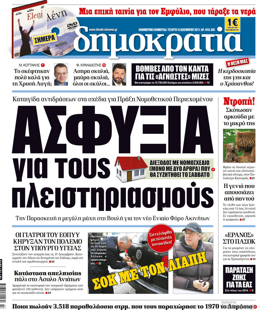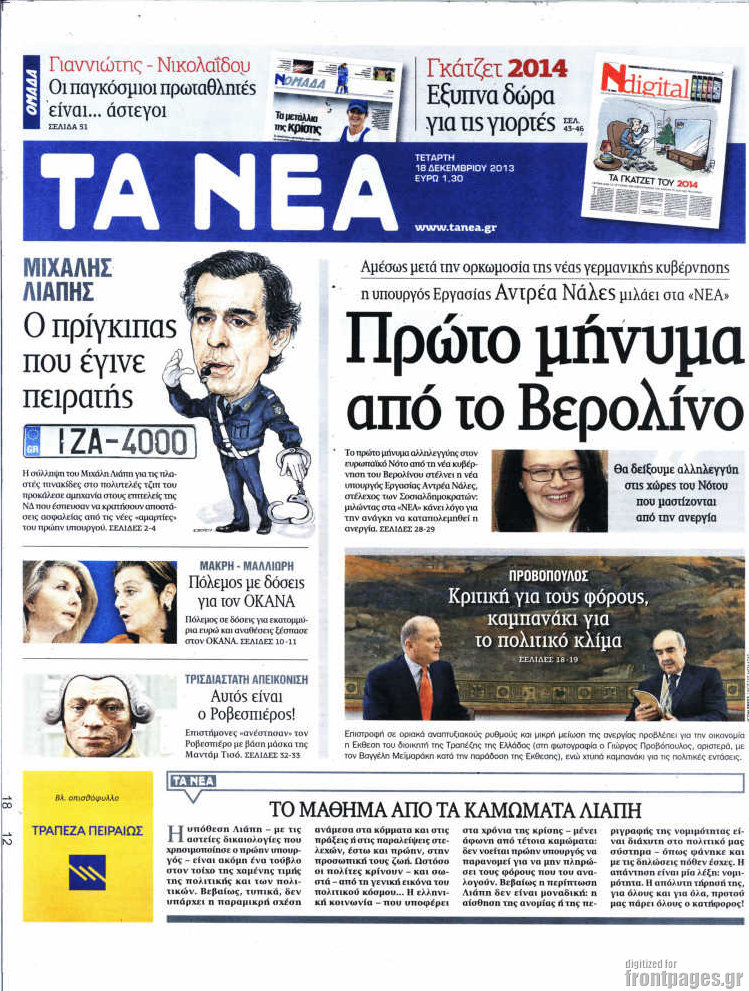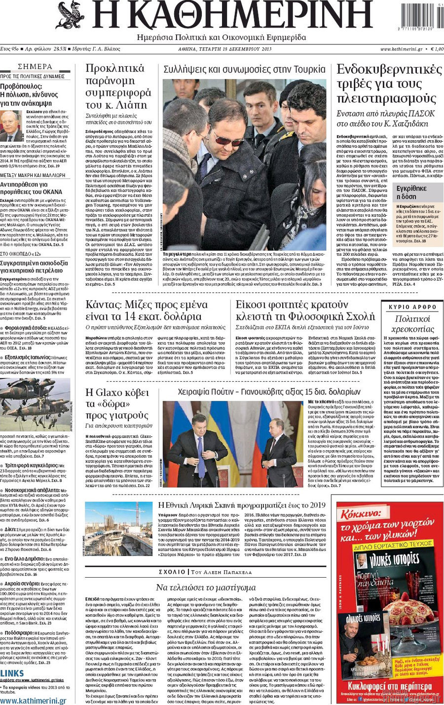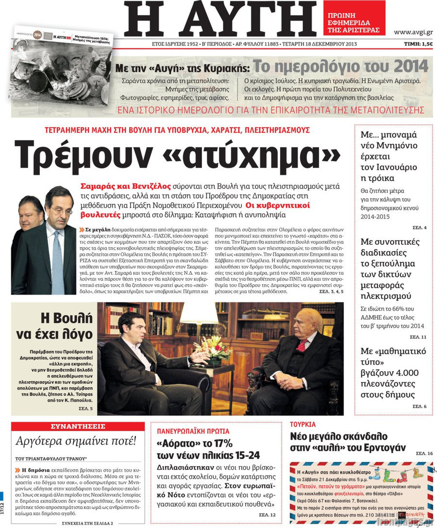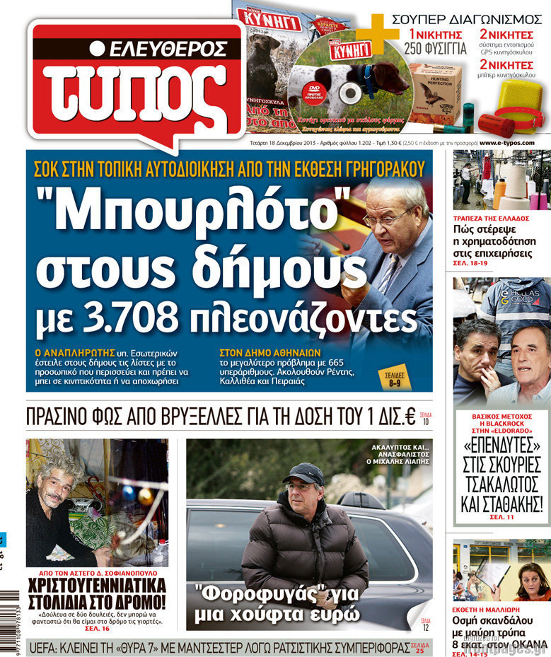 Οι πολιτικές εφημερίδες Enikos Newsroom 08:24, Τετάρτη 18 Δεκεμβρίου 2013 Media Οι πολιτικές εφημερίδες Διαβάστε τα πρωτοσέλιδα των πολιτικών εφημερίδων: ΕΦΗΜΕΡΙΔΕΣ ΠΟΛΙΤΙΚΕΣ ΕΦΗΜΕΡΙΔΕΣ ΠΡΩΤΟΣΕΛΙΔΑ Μοιράσου το: σχολίασε κι εσύ (0 σχόλια) Ακολουθήστε το enikos.gr στο Google News και μάθετε πρώτοι όλες τις ειδήσεις Δείτε όλες τις τελευταίες ειδήσεις από την Ελλάδα και τον Κόσμο στο enikos.gr Ειδήσεις Ροή Ειδήσεων 2 ώρες πριν Υπόθεση Έπσταϊν: Το Υπουργείο Δικαιοσύνης δημοσιοποίησε μια σειρά από εξαιρετικά επεξεργασμένα αρχεία – «Λείπουν τα πιο σημαντικά έγγραφα», λένε οι Δημοκρατικοί 46 λεπτά πριν Ο «χάρτης» με τις αυξήσεις και τις φοροελαφρύνσεις του 2026 – Ποιοι και πόσα κερδίζουν 11 ώρες πριν Χριστούγεννα στα μπλόκα: Επιμένουν στις κινητοποιήσεις τους οι αγρότες – Ανοίγουν τα διόδια το Σαββατοκύριακο 2 ώρες πριν ΟΝΕΧ – MEGATUGS: Ξεκίνησε η ναυπήγηση ρυμουλκών στην Ελλάδα – Προθάλαμος πολεμικών πλοίων – Δείτε φωτογραφίες και βίντεο 2 ώρες πριν Καιρός: Αλλαγή σκηνικού σήμερα με βροχές και πτώση της θερμοκρασίας – Οι προβλέψεις των μετεωρολόγων για τα Χριστούγεννα 3 ώρες πριν Αυγά: Πόσα μπορείτε να τρώτε την ημέρα με ασφάλεια για μέγιστη πρόσληψη πρωτεΐνης 4 ώρες πριν Τα ζώδια σήμερα, Σάββατο 20 Δεκεμβρίου: Παρθένοι, το σύμπαν σας δίνει το κλειδί 3 ώρες πριν Οπτική ψευδαίσθηση: Μόνο αν είσαι ο Σέρλοκ Χολμς θα βρεις τον αριθμό «87» σε 7 δευτερόλεπτα 1 ώρα πριν Αρχαιολόγοι ανακάλυψαν σε χωράφι απεικόνιση 600 ετών ενός Αγίου – Τα στοιχεία που δείχνουν ότι μαρτύρησε 10 λεπτά πριν Ουκρανία: Drones έπληξαν εξέδρα πετρελαίου και πολεμικό πλοίο της Ρωσίας στην Κασπία 18 λεπτά πριν Παιδική υπέρταση: Μια σιωπηλή απειλή που αυξάνεται διεθνώς 19 λεπτά πριν Αγχώνεται για το χριστουγεννιάτικο δώρο που πήρε στην πλούσια σύντροφό του – «Φοβάμαι πως θα το βρει φθηνιάρικο, φοράει βραχιόλια Cartier» 26 λεπτά πριν Enerwave: Το νέο «ρεύμα» στη λιανική ενέργειας που αλλάζει την εμπειρία του καταναλωτή 30 λεπτά πριν Γιώργος Μαζωνάκης: Τη Δευτέρα η μήνυση του τραγουδιστή κατά του 22χρονου ENIKOS NETWORK Πόσα κιλά παίρνουμε πραγματικά τα Χριστούγεννα, σύμφωνα με την επιστήμη – Πώς να το αποτρέψουμε; Το δημοφιλές ρόφημα που αυξάνει την πίεση πιο γρήγορα και από το αλάτι Mega χριστουγεννιάτικη φορολοταρία: «Κλείδωσε» η ημερομηνία για την κλήρωση – Ερωτήσεις και απαντήσεις Αναστολή μέτρων αναγκαστικής εκτέλεσης για κτηνοτρόφους που πλήττονται από την ευλογιά των αιγοπροβάτων Χαρτογραφώντας το «σημείο χωρίς επιστροφή»: Για πρώτη φορά αποκαλύπτεται με λεπτομέρεια το ακανθώδες όριο της ατμόσφαιρας τ... Η Google καταργεί τη λειτουργία «dark web report» – Πώς θα μπορούν οι χρήστες να διαγράφουν τα δεδομένα τους περισσότερα 08:14 , Σάββατο 20 Δεκεμβρίου 2025 Τρομεροί γονείς: Η Μαρία Καβογιάννη εισβάλλει στο σπίτι της οικογένειας Στεφανίδη Όσα θα δούμε στο νέο διπλό επεισόδιο της σειράς «Τρομεροί γονείς», σήμερα Σάββατο 20 Δεκεμβρίο... 05:48 , Σάββατο 20 Δεκεμβρίου 2025 Οι οικονομικές εφημερίδες 20/12/2025 Διαβάστε τα πρωτοσέλιδα από τις οικονομικές εφημερίδες, σήμερα 20/12/2025. 05:43 , Σάββατο 20 Δεκεμβρίου 2025 Οι αθλητικές εφημερίδες 20/12/2025 Διαβάστε τα πρωτοσέλιδα από τις αθλητικές εφημερίδες, σήμερα 20/12/2025. 05:38 , Σάββατο 20 Δεκεμβρίου 2025 Οι πολιτικές εφημερίδες 20/12/2025 Διαβάστε τα πρωτοσέλιδα από τις πολιτικές εφημερίδες, σήμερα 20/12/2025. ΤΕΛΕΥΤΑΙΕΣ ΕΙΔΗΣΕΙΣ 10 λεπτά πριν Ουκρανία: Drones έπληξαν εξέδρα πετρελαίου και πολεμικό... 18 λεπτά πριν Παιδική υπέρταση: Μι