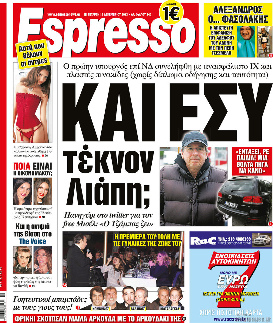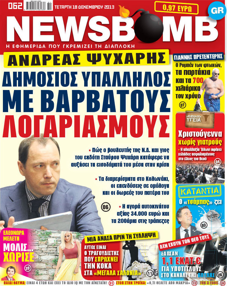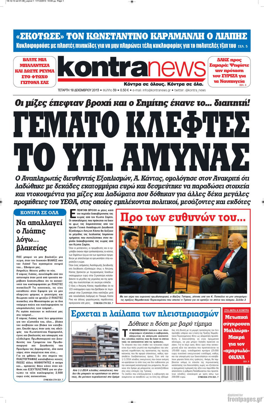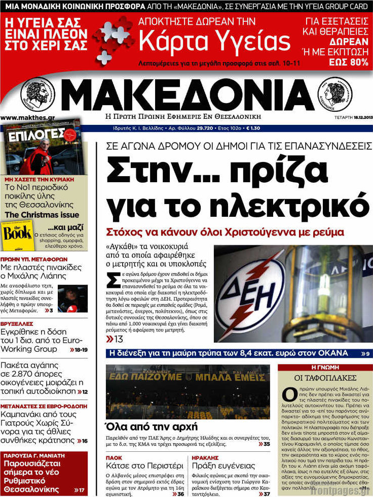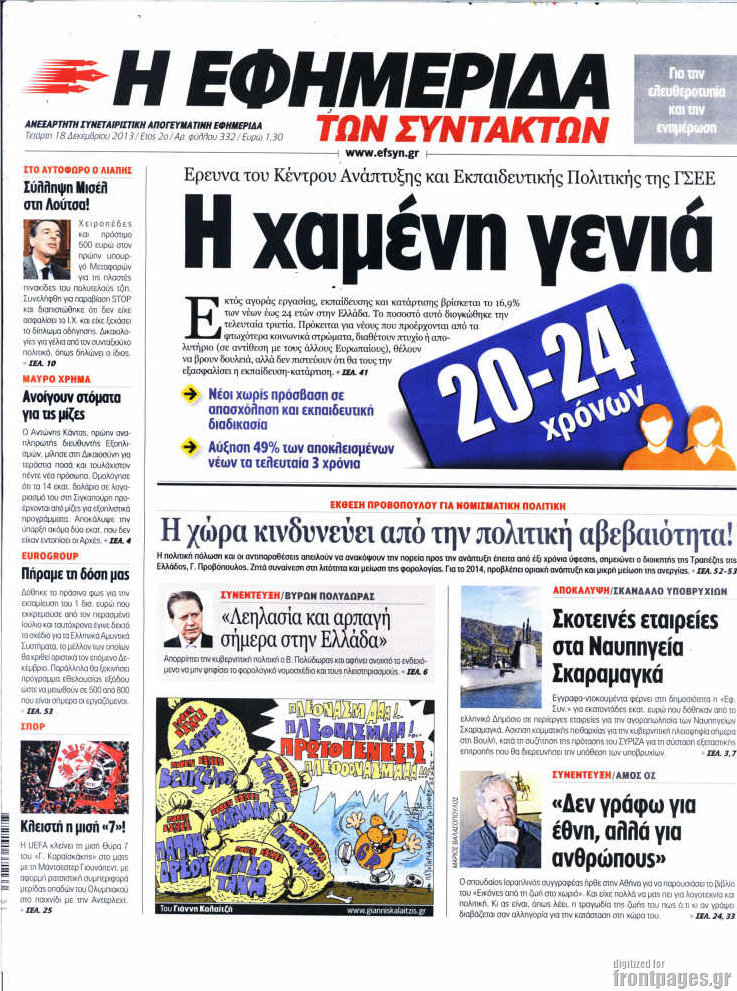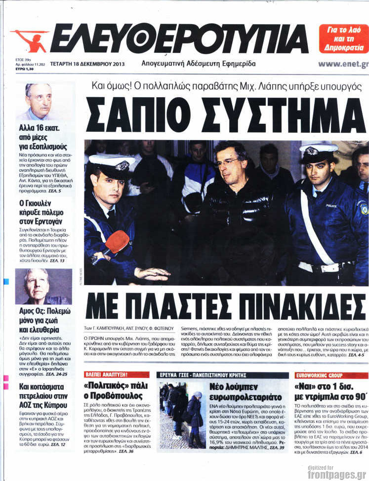 Οι πολιτικές εφημερίδες Enikos Newsroom 08:24, Τετάρτη 18 Δεκεμβρίου 2013 Media Οι πολιτικές εφημερίδες Διαβάστε τα πρωτοσέλιδα των πολιτικών εφημερίδων: ΕΦΗΜΕΡΙΔΕΣ ΠΟΛΙΤΙΚΕΣ ΕΦΗΜΕΡΙΔΕΣ ΠΡΩΤΟΣΕΛΙΔΑ Μοιράσου το: σχολίασε κι εσύ (0 σχόλια) Ακολουθήστε το enikos.gr στο Google News και μάθετε πρώτοι όλες τις ειδήσεις Δείτε όλες τις τελευταίες ειδήσεις από την Ελλάδα και τον Κόσμο στο enikos.gr Ειδήσεις Ροή Ειδήσεων 2 ώρες πριν Υπόθεση Έπσταϊν: Το Υπουργείο Δικαιοσύνης δημοσιοποίησε μια σειρά από εξαιρετικά επεξεργασμένα αρχεία – «Λείπουν τα πιο σημαντικά έγγραφα», λένε οι Δημοκρατικοί 46 λεπτά πριν Ο «χάρτης» με τις αυξήσεις και τις φοροελαφρύνσεις του 2026 – Ποιοι και πόσα κερδίζουν 11 ώρες πριν Χριστούγεννα στα μπλόκα: Επιμένουν στις κινητοποιήσεις τους οι αγρότες – Ανοίγουν τα διόδια το Σαββατοκύριακο 2 ώρες πριν ΟΝΕΧ – MEGATUGS: Ξεκίνησε η ναυπήγηση ρυμουλκών στην Ελλάδα – Προθάλαμος πολεμικών πλοίων – Δείτε φωτογραφίες και βίντεο 2 ώρες πριν Καιρός: Αλλαγή σκηνικού σήμερα με βροχές και πτώση της θερμοκρασίας – Οι προβλέψεις των μετεωρολόγων για τα Χριστούγεννα 3 ώρες πριν Αυγά: Πόσα μπορείτε να τρώτε την ημέρα με ασφάλεια για μέγιστη πρόσληψη πρωτεΐνης 4 ώρες πριν Τα ζώδια σήμερα, Σάββατο 20 Δεκεμβρίου: Παρθένοι, το σύμπαν σας δίνει το κλειδί 3 ώρες πριν Οπτική ψευδαίσθηση: Μόνο αν είσαι ο Σέρλοκ Χολμς θα βρεις τον αριθμό «87» σε 7 δευτερόλεπτα 1 ώρα πριν Αρχαιολόγοι ανακάλυψαν σε χωράφι απεικόνιση 600 ετών ενός Αγίου – Τα στοιχεία που δείχνουν ότι μαρτύρησε 10 λεπτά πριν Ουκρανία: Drones έπληξαν εξέδρα πετρελαίου και πολεμικό πλοίο της Ρωσίας στην Κασπία 18 λεπτά πριν Παιδική υπέρταση: Μια σιωπηλή απειλή που αυξάνεται διεθνώς 19 λεπτά πριν Αγχώνεται για το χριστουγεννιάτικο δώρο που πήρε στην πλούσια σύντροφό του – «Φοβάμαι πως θα το βρει φθηνιάρικο, φοράει βραχιόλια Cartier» 26 λεπτά πριν Enerwave: Το νέο «ρεύμα» στη λιανική ενέργειας που αλλάζει την εμπειρία του καταναλωτή 30 λεπτά πριν Γιώργος Μαζωνάκης: Τη Δευτέρα η μήνυση του τραγουδιστή κατά του 22χρονου ENIKOS NETWORK Πόσα κιλά παίρνουμε πραγματικά τα Χριστούγεννα, σύμφωνα με την επιστήμη – Πώς να το αποτρέψουμε; Το δημοφιλές ρόφημα που αυξάνει την πίεση πιο γρήγορα και από το αλάτι Mega χριστουγεννιάτικη φορολοταρία: «Κλείδωσε» η ημερομηνία για την κλήρωση – Ερωτήσεις και απαντήσεις Αναστολή μέτρων αναγκαστικής εκτέλεσης για κτηνοτρόφους που πλήττονται από την ευλογιά των αιγοπροβάτων Χαρτογραφώντας το «σημείο χωρίς επιστροφή»: Για πρώτη φορά αποκαλύπτεται με λεπτομέρεια το ακανθώδες όριο της ατμόσφαιρας τ... Η Google καταργεί τη λειτουργία «dark web report» – Πώς θα μπορούν οι χρήστες να διαγράφουν τα δεδομένα τους περισσότερα 08:14 , Σάββατο 20 Δεκεμβρίου 2025 Τρομεροί γονείς: Η Μαρία Καβογιάννη εισβάλλει στο σπίτι της οικογένειας Στεφανίδη Όσα θα δούμε στο νέο διπλό επεισόδιο της σειράς «Τρομεροί γονείς», σήμερα Σάββατο 20 Δεκεμβρίο... 05:48 , Σάββατο 20 Δεκεμβρίου 2025 Οι οικονομικές εφημερίδες 20/12/2025 Διαβάστε τα πρωτοσέλιδα από τις οικονομικές εφημερίδες, σήμερα 20/12/2025. 05:43 , Σάββατο 20 Δεκεμβρίου 2025 Οι αθλητικές εφημερίδες 20/12/2025 Διαβάστε τα πρωτοσέλιδα από τις αθλητικές εφημερίδες, σήμερα 20/12/2025. 05:38 , Σάββατο 20 Δεκεμβρίου 2025 Οι πολιτικές εφημερίδες 20/12/2025 Διαβάστε τα πρωτοσέλιδα από τις πολιτικές εφημερίδες, σήμερα 20/12/2025. ΤΕΛΕΥΤΑΙΕΣ ΕΙΔΗΣΕΙΣ 10 λεπτά πριν Ουκρανία: Drones έπληξαν εξέδρα πετρελαίου και πολεμικό... 18 λεπτά πριν Παιδική υπέρταση: Μι