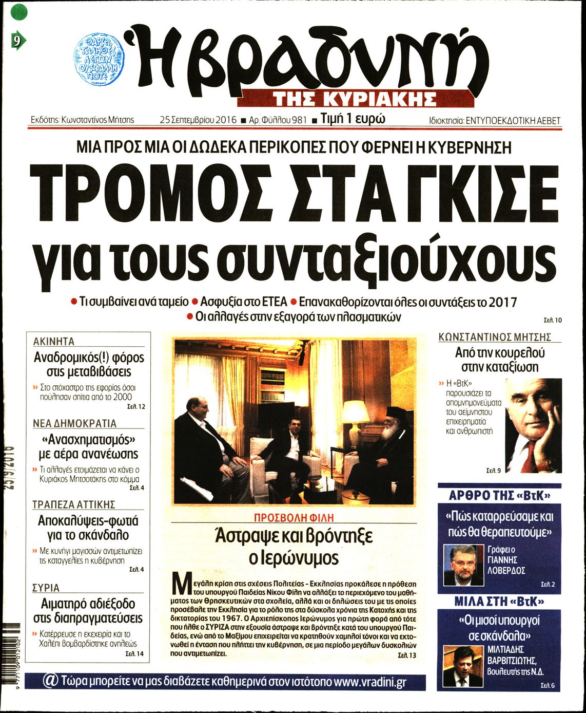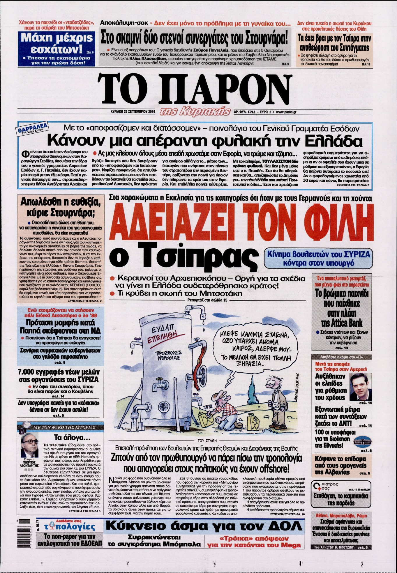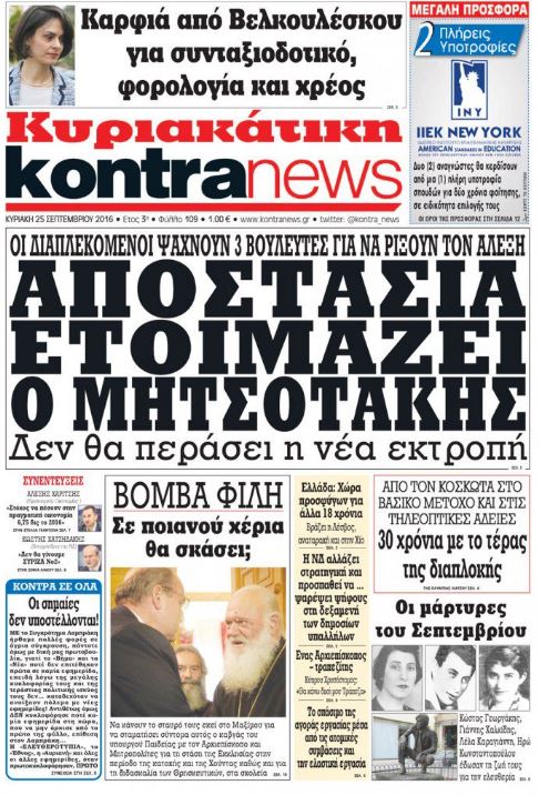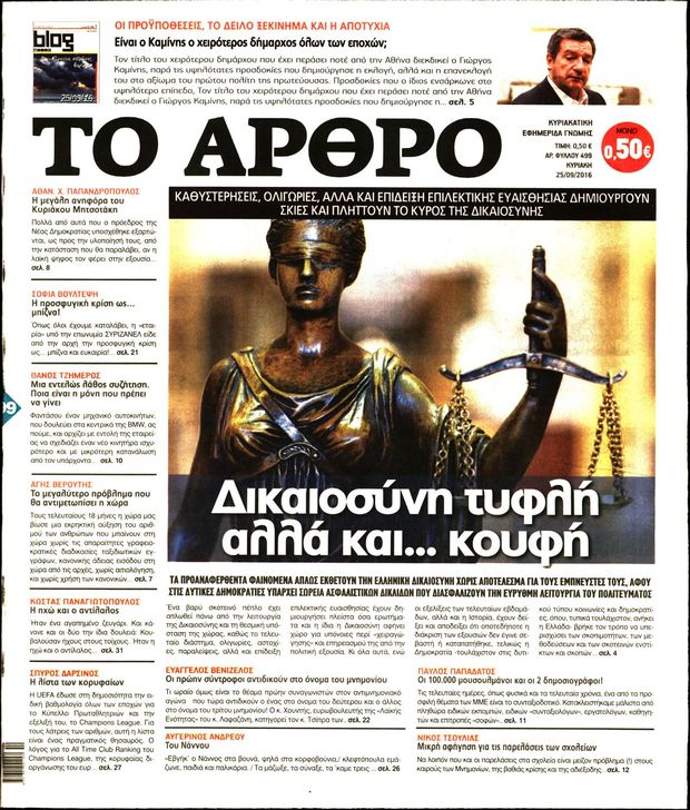 Oι πολιτικές εφημερίδες 25/9/2016 Enikos Newsroom 04:28, Κυριακή 25 Σεπτεμβρίου 2016 Media Διαβάστε τα σημερινά πρωτοσέλιδα των πολιτικών εφημερίδων: ΠΟΛΙΤΙΚΕΣ ΕΦΗΜΕΡΙΔΕΣ ΠΡΩΤΟΣΕΛΙΔΑ Μοιράσου το: σχολίασε κι εσύ (0 σχόλια) Ακολουθήστε το enikos.gr στο Google News και μάθετε πρώτοι όλες τις ειδήσεις Δείτε όλες τις τελευταίες ειδήσεις από την Ελλάδα και τον Κόσμο στο enikos.gr Ειδήσεις Ροή Ειδήσεων 3 ώρες πριν Αγρότες: Πολύωροι αποκλεισμοί στα τελωνεία Προμαχώνα, Εξοχής, Ευζώνων και Νίκης – Κλείνουν τον κόμβο Φιλώτα οι παραγωγοί στη Δυτική Μακεδονία 2 ώρες πριν Νίκος Παππάς: Ζητώ συγγνώμη για αυτό το επεισόδιο – Δεν τον γρονθοκόπησα 1 ώρα πριν Πούτιν: Η Ουκρανία δεν είναι έτοιμη για ειρηνευτικές συνομιλίες – ο ρωσικός στρατός προελαύνει σε όλα τα μέτωπα 54 λεπτά πριν Κρήτη: Στο Ρέθυμνο μεταφέρονται οι εκατοντάδες μετανάστες που διασώθηκαν ανοιχτά της Γαύδου 2 ώρες πριν Τρομακτικό βίντεο: Η στιγμή της έκρηξης στο τζετ που μετέφερε τον οδηγό του NASCAR, Γκρεγκ Μπιφλ και την οικογένειά του 3 ώρες πριν Αλλαγή σελίδας για 3 ζώδια – «Μία δύσκολη περίοδος φτάνει στο τέλος της» 2 ημέρες πριν 20 χρόνια τα Χριστούγεννα ξεκινούν στα Public με μεγάλη ποικιλία σε δώρα! 2 ώρες πριν Γεμάτος νεροχύτης; 5 σοβαρές ευθύνες που «φοβίζουν» όσους αφήνουν άπλυτα πιάτα 59 λεπτά πριν Ειδικός μοιράζεται 6 κόλπα για να διατηρείστε σε φόρμα με πάνω από 40 ώρες εργασίας την εβδομάδα: «Προπονηθείτε πριν από τη δουλειά, όχι μετά» 2 λεπτά πριν ΑΑΔΕ: QR Code και Barcode για εύκολες και γρήγορες πληρωμές οφειλών 7 λεπτά πριν Νέα Φιλαδέλφεια: Βίντεο ντοκουμέντο από το θανατηφόρο τροχαίο 12 λεπτά πριν Παπαθανάσης: «Η Ελλάδα αλλάζει με μεταρρυθμίσεις και έργα – Το 2026 χρονιά μεγάλης ανάπτυξης, νέων θέσεων εργασίας, καλύτερων αμοιβών» 18 λεπτά πριν Αγρότες: Παραμένουν στα μπλόκα και ενισχύουν τις δράσεις τους σε Ημαθία, Πέλλα, Πιερία και Καβάλα 24 λεπτά πριν Γιώργος Μαζωνάκης: «Φοβόταν, θεώρησα ότι έπρεπε να τον προστατεύσω» – Τι λέει η τραγουδίστρια, Νωαίνα για τον Στέφανο Παπαδόπουλο ENIKOS NETWORK Κίνδυνος παραπλάνησης από διαφημίσεις οδοντικών εμφυτευμάτων Καρκίνος του πνεύμονα: Έως 8.000 ζωές μπορούν να σωθούν με την έγκαιρη διάγνωση Αγορά πολυτελών κατοικιών: Αυτές είναι οι προτεραιότητες των αγοραστών – Σε ποιες περιοχές στρέφονται και τι επιλέγουν ΕΥΔΑΠ: Στο τραπέζι αλλαγές στους λογαριασμούς του νερού – Τι θα ισχύσει για ευάλωτα νοικοκυριά και επιχειρήσεις Χαρτογραφώντας το «σημείο χωρίς επιστροφή»: Για πρώτη φορά αποκαλύπτεται με λεπτομέρεια το ακανθώδες όριο της ατμόσφαιρας τ... Η Google καταργεί τη λειτουργία «dark web report» – Πώς θα μπορούν οι χρήστες να διαγράφουν τα δεδομένα τους περισσότερα 08:00 , Παρασκευή 19 Δεκεμβρίου 2025 Την Κυριακή με τη Realnews: Δωροεπιταγή 10€ Δωροεπιταγή αξίας 10€ για αγορές άνω των 60€ από τα πολυκαταστήματα FactoryOutlet H προσφορά ι... 05:48 , Παρασκευή 19 Δεκεμβρίου 2025 Οι οικονομικές εφημερίδες 19/12/2025 Διαβάστε τα πρωτοσέλιδα από τις οικονομικές εφημερίδες, σήμερα 19/12/2025. 05:43 , Παρασκευή 19 Δεκεμβρίου 2025 Οι αθλητικές εφημερίδες 19/12/2025 Διαβάστε τα πρωτοσέλιδα από τις αθλητικές εφημερίδες, σήμερα 19/12/2025. 05:38 , Παρασκευή 19 Δεκεμβρίου 2025 Οι πολιτικές εφημερίδες 19/12/2025 Διαβάστε τα πρωτοσέλιδα από τις πολιτικές εφημερίδες, σήμερα 19/12/2025. ΤΕΛΕΥΤΑΙΕΣ ΕΙΔΗΣΕΙΣ 7 λεπτά πριν Νέα Φιλαδέλφεια: Βίντεο ντοκουμέντο από το θανατηφόρο... 12 λεπτά πριν Παπαθανάσης: «Η Ελλάδα αλλάζει με μεταρρυθμίσεις και... 18 λεπτά πριν Αγρότες: Παραμένουν σ