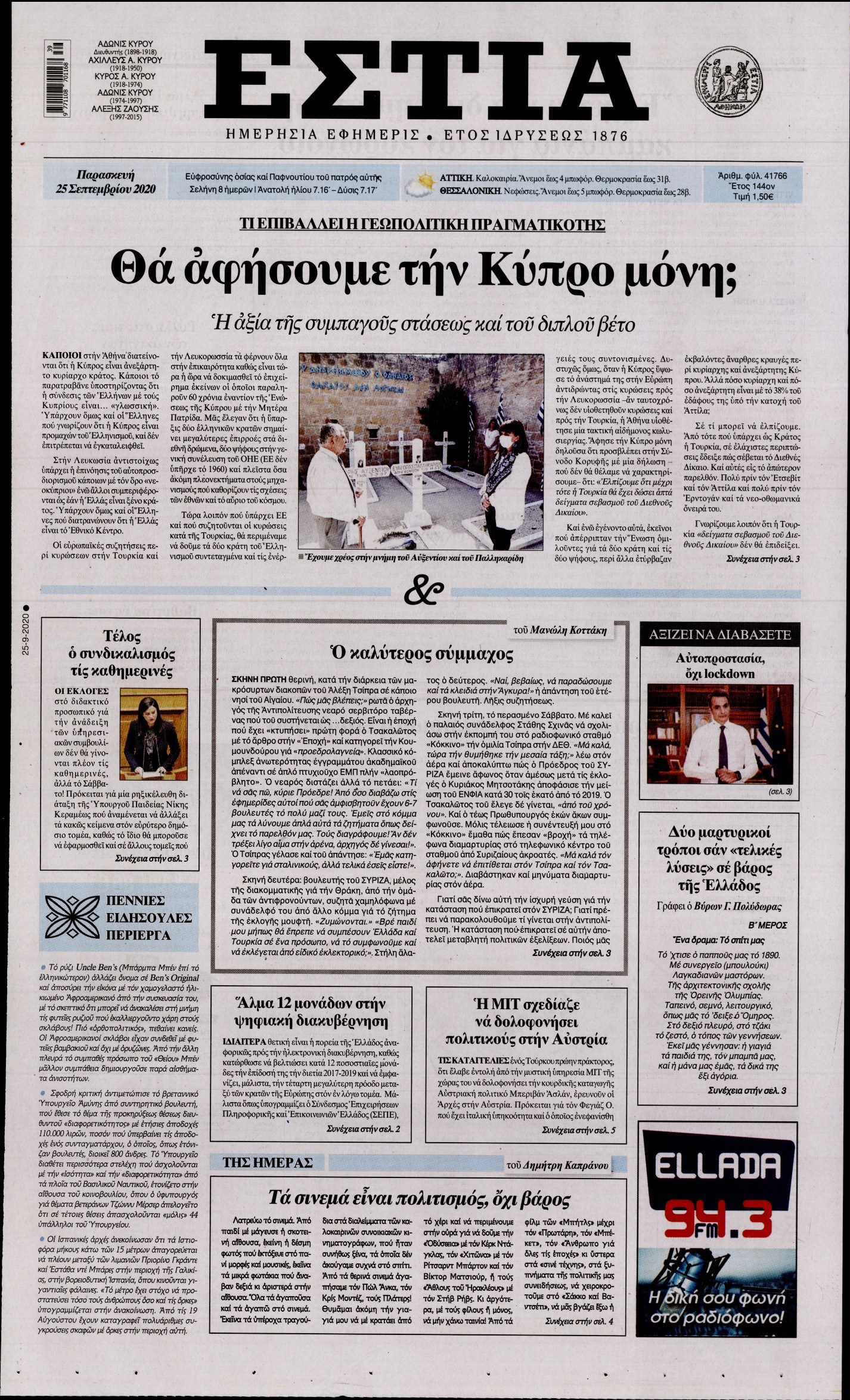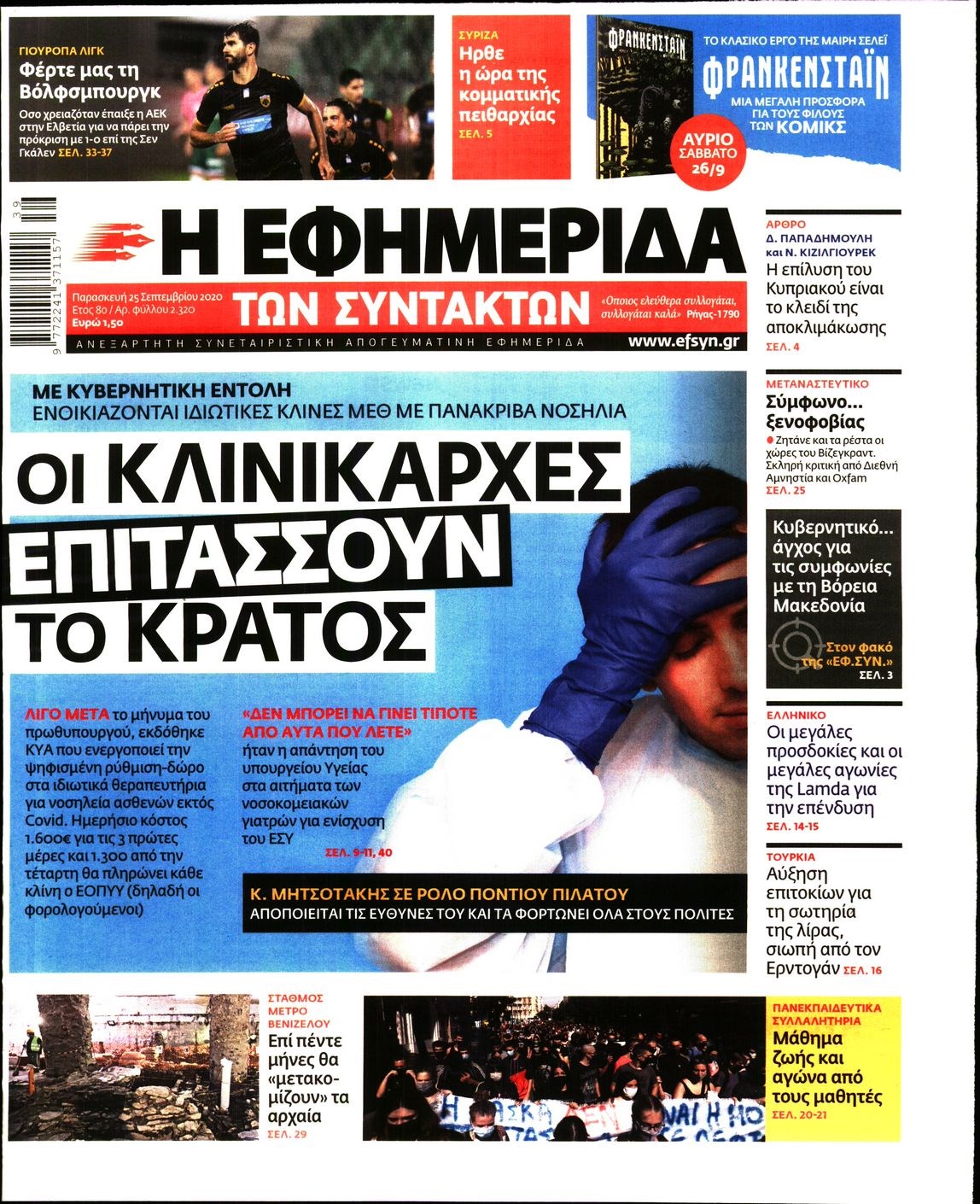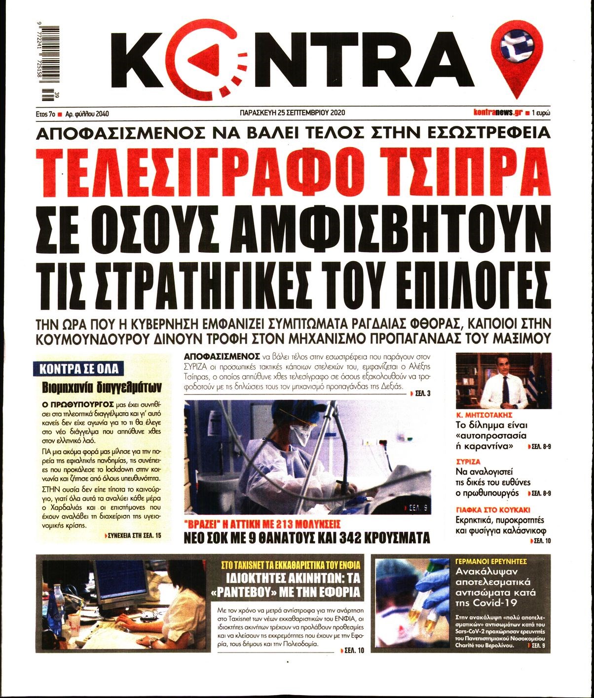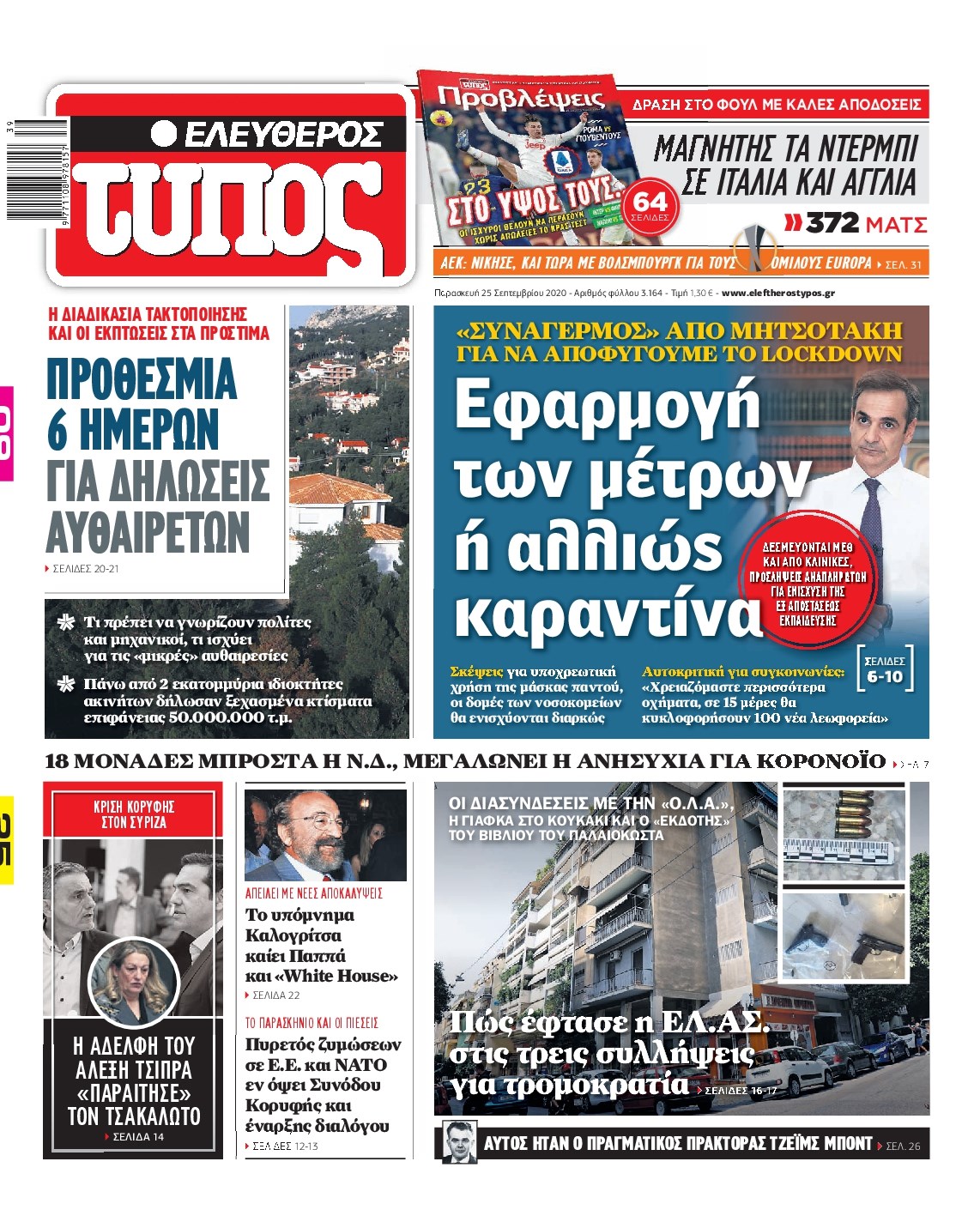 Οι πολιτικές εφημερίδες 25/9/2020 Διονύσης Νίκκας 06:12, Παρασκευή 25 Σεπτεμβρίου 2020 Media Διαβάστε τα πρωτοσέλιδα των πολιτικών εφημερίδων… ΠΟΛΙΤΙΚΕΣ ΕΦΗΜΕΡΙΔΕΣ ΠΡΩΤΟΣΕΛΙΔΑ Μοιράσου το: σχολίασε κι εσύ (0 σχόλια) Ακολουθήστε το enikos.gr στο Google News και μάθετε πρώτοι όλες τις ειδήσεις Δείτε όλες τις τελευταίες ειδήσεις από την Ελλάδα και τον Κόσμο στο enikos.gr Ειδήσεις Ροή Ειδήσεων 4 ώρες πριν Χριστούγεννα στα μπλόκα: Επιμένουν στις κινητοποιήσεις τους οι αγρότες – Ανοίγουν τα διόδια το Σαββατοκύριακο 4 ώρες πριν Ουκρανία: Η άνευ προηγουμένου επίθεση σε ρωσικό τάνκερ στη Μεσόγειο και το μήνυμα προς στον Πούτιν – Το «μακρύ χέρι» του Κιέβου 3 ώρες πριν Πούτιν: Τα μηνύματα σε Ευρώπη και ΝΑΤΟ από το μαραθώνιο «σόου» του – Η απαίτηση για «σεβασμό» και η ειρήνη «με τους όρους» της Μόσχας 4 ώρες πριν Τραμπ: Δεν αποκλείει την πιθανότητα ενός πολέμου στη Βενεζουέλα – «Ο Μαδούρο ξέρει καλύτερα από τον καθένα τι ακριβώς θέλω» 5 ώρες πριν Συνεχίζει να προκαλεί ο Μίτσκοσκι: «Για μένα το όνομα Μακεδονία είναι ιερό» 3 ώρες πριν Ανακαλύφθηκαν αρχαία χρυσά νομίσματα 2.200 ετών που απεικονίζουν τον θεό Απόλλωνα – Η άγνωστη σύνδεση με τον Φίλιππο Β΄ της Μακεδονίας 4 ώρες πριν Ύπνος: Μια κρυφή κατάσταση του εγκεφάλου πριν από τον ύπνο μπορεί να είναι το “κλειδί” για υψηλή ευφυΐα και δημιουργικότητα 5 ώρες πριν Αριθμολογία: Οι άνθρωποι που έχουν γεννηθεί αυτές τις 4 ημερομηνίες, συχνά παρεξηγούνται – «Η καλοσύνη τους κρύβει τεράστια δύναμη» 6 ώρες πριν Ξεχάστε το καθάρισμα το Σαββατοκύριακο: Ο «κανόνας των 20 λεπτών» που θα σας λύσει τα χέρια 16 λεπτά πριν Εξάρχεια: Ένταση με μολότοφ, χημικά και κρότου λάμψης 32 λεπτά πριν ΗΠΑ: Τραγωδία στην Αλαμπάμα – Σκότωσε την δημοσιογράφο σύζυγό του και αυτοκτόνησε μπροστά στον 3χρονο γιο τους 46 λεπτά πριν Πρόταση γάμου στο ΣΕΦ κατά την διάρκεια του αγώνα Ολυμπιακός-Βιλερμπάν – Δείτε βίντεο 1 ώρα πριν Euroleague: Επέστρεψε στις νίκες ο Ολυμπιακός, πήρε την ματσάρα της χρονιάς η Μπάρτσα – Τα αποτελέσματα και η βαθμολογία 1 ώρα πριν Συρία: Μαζικά πλήγματα των ΗΠΑ σε θέσεις του Ισλαμικού Κράτους – Χέγκσεθ: «Δεν είναι αρχή πολέμου, είναι μια δήλωση εκδίκησης» για το θάνατο των στρατιωτών μας ENIKOS NETWORK Το ΕΚΑΒ τιμήθηκε από την Ακαδημία Αθηνών για τα 40 χρόνια προσφοράς του Έχετε πραγματικά μεγάλη καρδιά; 10 χαρακτηριστικά όσων έχουν καλοσύνη Αναστολή μέτρων αναγκαστικής εκτέλεσης για κτηνοτρόφους που πλήττονται από την ευλογιά των αιγοπροβάτων Πλήρης επάρκεια προϊόντων στις λαϊκές της Αττικής, παρά τις αγροτικές κινητοποιήσεις – Τι απαντούν οι πωλητές Χαρτογραφώντας το «σημείο χωρίς επιστροφή»: Για πρώτη φορά αποκαλύπτεται με λεπτομέρεια το ακανθώδες όριο της ατμόσφαιρας τ... Η Google καταργεί τη λειτουργία «dark web report» – Πώς θα μπορούν οι χρήστες να διαγράφουν τα δεδομένα τους περισσότερα 22:42 , Παρασκευή 19 Δεκεμβρίου 2025 Γιώργος Γιαννόπουλος για “Το σόι σου”: “Είναι ευτυχία και ευλογία αυτή η σειρά” «Είναι ευτυχία και ευλογία η συγκυρία αυτής της σειράς», θα πει ο Γιώργος Γιαννόπουλος -ο αγαπ... 20:37 , Παρασκευή 19 Δεκεμβρίου 2025 Don’t Forget The Lyrics: Η Έλλη Κοκκίνου υποδέχεται 4 παίκτες που θα κάνουν τα πάντα για να μη χάσουν ούτε… μισή λέξη από τους στίχους Το «Don’t Forget The Lyrics» επιστρέφει απόψε, Παρασκευή 19 Δεκεμβρίου, στις 21:00 με νέο επει... 19:31 , Παρασκευή 19 Δεκεμβρίου 2025 GNTM: Απόψε ο μεγάλος τελικός για τους 4 φιναλίστ Έπειτα από μήνες γεμάτους μόδα, δημιουργία κα
