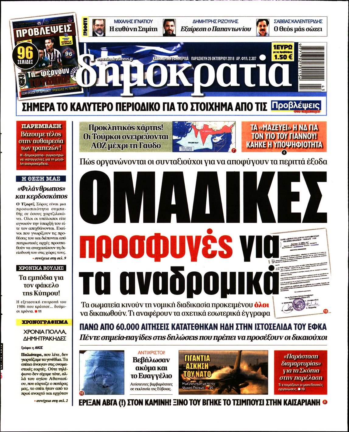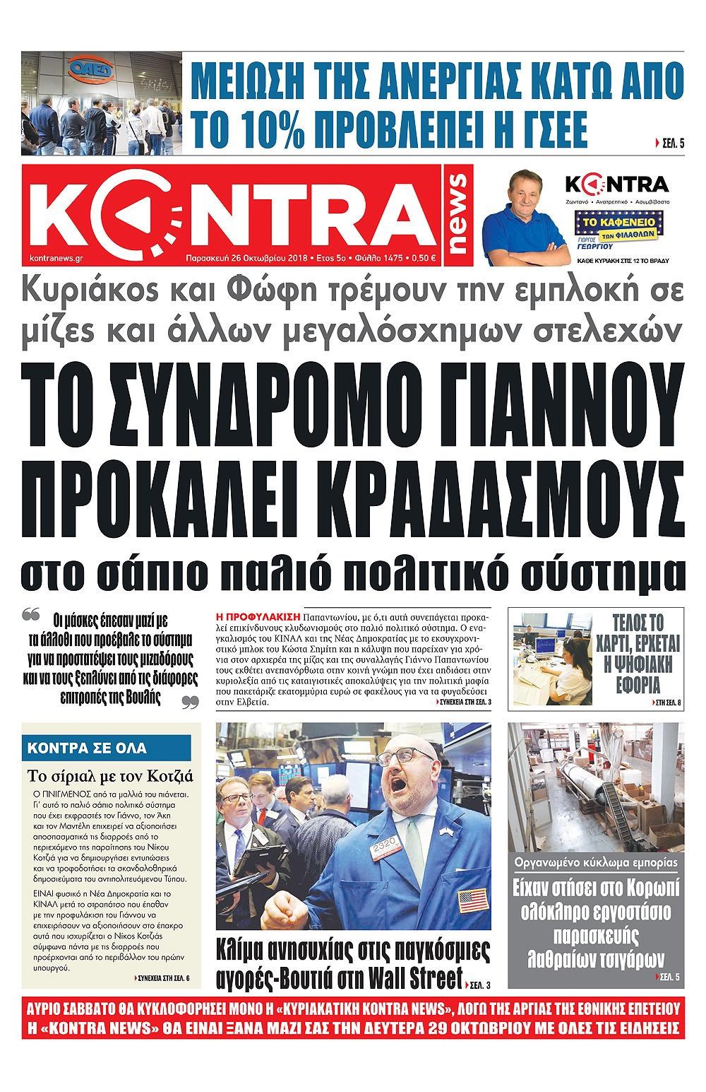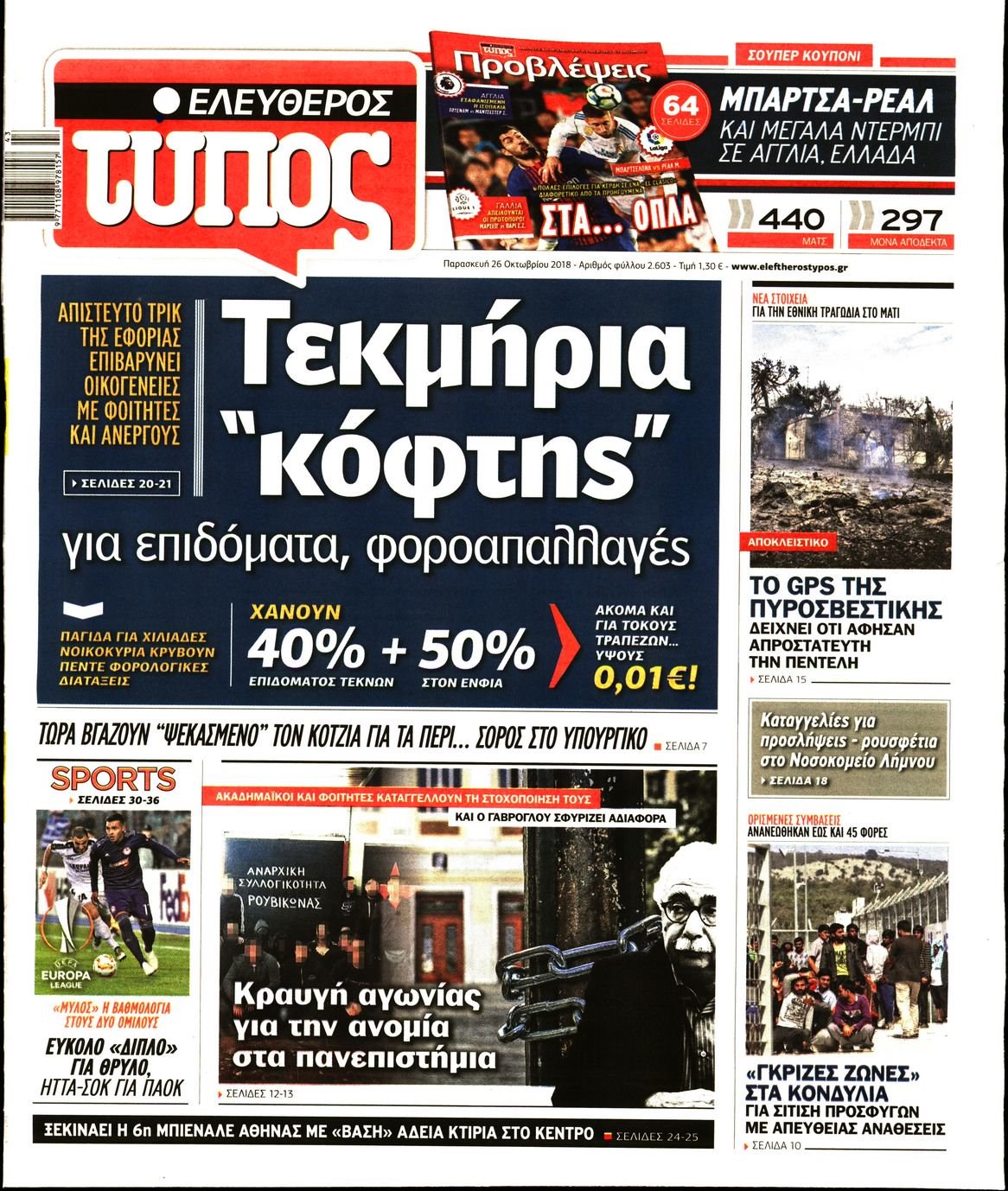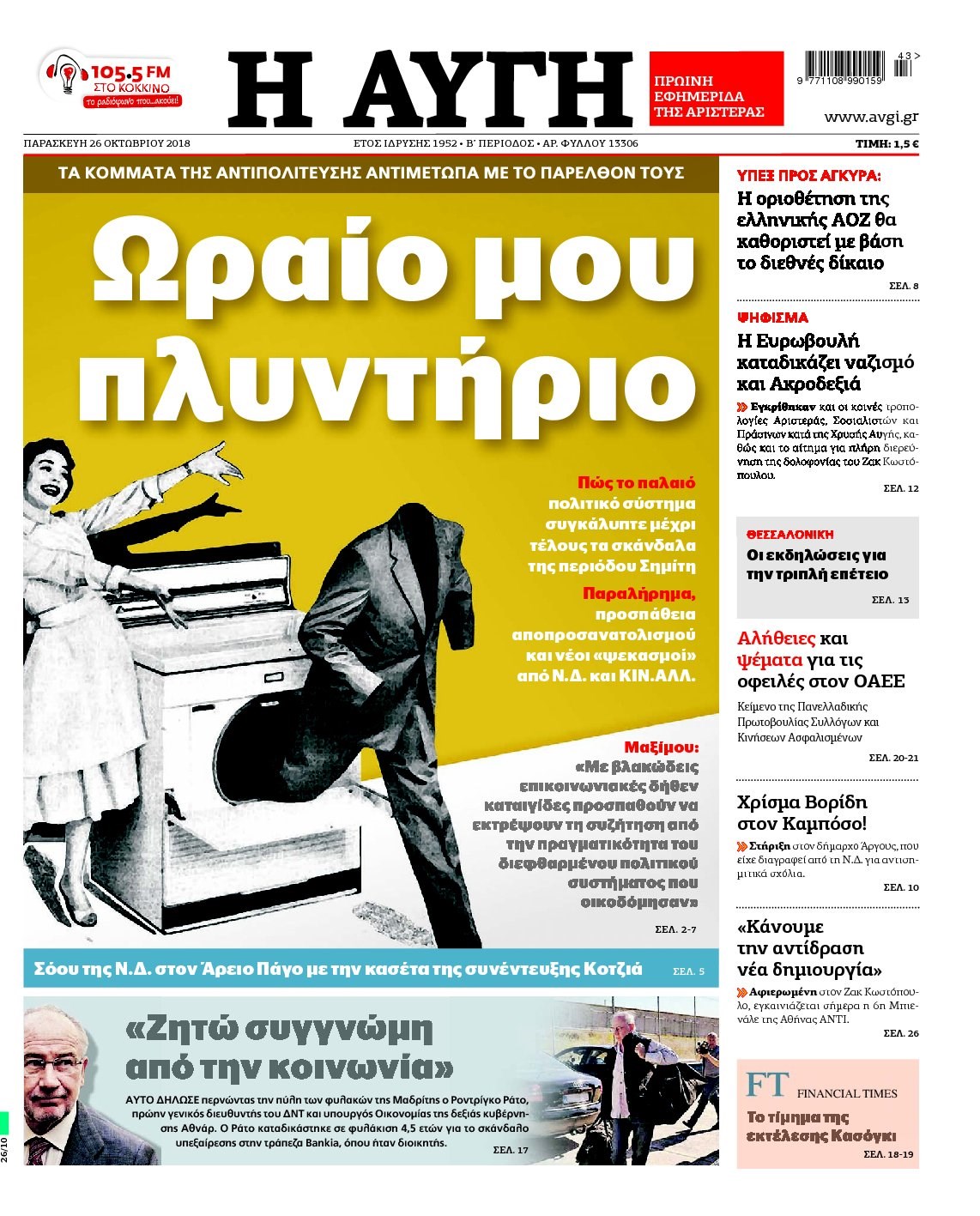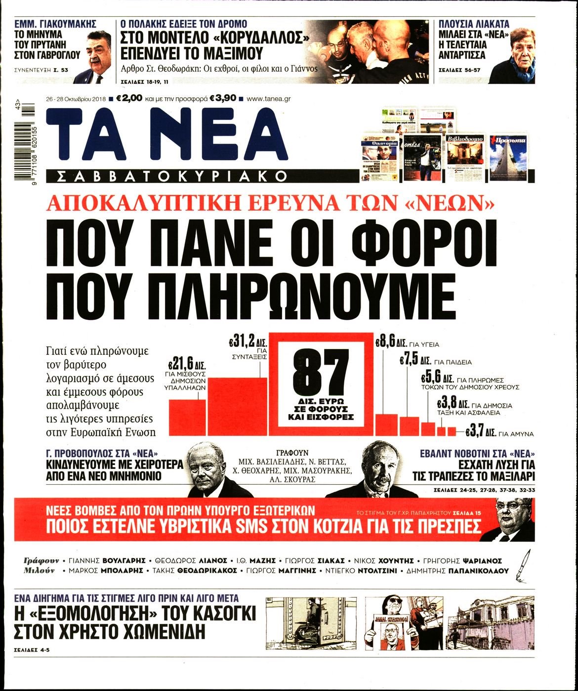 Οι πολιτικές εφημερίδες 26/10//18 Enikos Newsroom 06:27, Παρασκευή 26 Οκτωβρίου 2018 Media Διαβάστε τα πρωτοσέλιδα: ΠΟΛΙΤΙΚΕΣ ΕΦΗΜΕΡΙΔΕΣ ΠΡΩΤΟΣΕΛΙΔΑ Μοιράσου το: σχολίασε κι εσύ (0 σχόλια) Ακολουθήστε το enikos.gr στο Google News και μάθετε πρώτοι όλες τις ειδήσεις Δείτε όλες τις τελευταίες ειδήσεις από την Ελλάδα και τον Κόσμο στο enikos.gr Ειδήσεις Ροή Ειδήσεων 2 ώρες πριν Ζελένσκι: Μόνο οι ΗΠΑ και ο Τραμπ μπορούν να πιέσουν τη Ρωσία να βάλει τέλος στον πόλεμο 2 ώρες πριν Φοινικούντα: Προφυλακιστέος ο 30χρονος για συνέργεια στη διπλή δολοφονία – Και άλλα πρόσωπα στο «μικροσκόπιο» 3 ώρες πριν Κυριάκος Μητσοτάκης: Στην Ιερουσαλήμ την Τρίτη ο Πρωθυπουργός για την τριμερή Ελλάδας, Κύπρου, Ισραήλ – Θα συναντηθεί και με τον Αμπάς 6 ώρες πριν Πώς δρούσε το κύκλωμα που διακινούσε ναρκωτικά σε σχολεία – Υπέβαλαν σε βασανιστήρια όσους δεν τηρούσαν τους «κανόνες πειθαρχίας» 3 ώρες πριν Πάπας Λέων: Όταν έχει αϋπνίες επενδύει παραγωγικά τον χρόνο του – Ποιο παιχνίδι παίζει στο κινητό 2 ώρες πριν Αριθμολογία: Ο αριθμός του φύλακα αγγέλου σας, με βάση τον μήνα γέννησής σας – «Έτσι σας στέλνει σημάδια το σύμπαν» 3 ώρες πριν Πώς να απαλλαγείτε από τη μυρωδιά του τηγανητού φαγητού: Το μυστικό βρίσκεται στην κουζίνα σας 4 ώρες πριν Μήπως οι γιορτές σας δεν είναι τόσο τέλειες; 7 χριστουγεννιάτικες συνήθειες που μαρτυρούν ότι μια οικογένεια είναι δυσλειτουργική 14 ώρες πριν Enerwave: Το νέο «ρεύμα» στη λιανική ενέργειας που αλλάζει την εμπειρία του καταναλωτή 10 λεπτά πριν Χριστούγεννα στα μπλόκα οι αγρότες: Άνοιξαν στα διόδια και μοίρασαν προϊόντα στους πολίτες – Νέα σύσκεψη την Κυριακή στη Νίκαια 20 λεπτά πριν Ολυμπιακός – Κηφισιά 1-1: Δεύτερη σερί ισοπαλία για τους Ερυθρόλευκους – Υπό… αμφισβήτηση η κορυφή της Super League 31 λεπτά πριν Κύκλωμα διακίνησης ναρκωτικών σε σχολεία: Τηλεφωνούσαν στους ανηλίκους την ώρα του μαθήματος – Οι διάλογοι-σοκ, τα «ψευδώνυμα» και τα βασανιστήρια 39 λεπτά πριν Χαβιέρ Μιλέι: Ο πρόεδρος της Αργεντινής χαιρετίζει την «πίεση των ΗΠΑ» στη Βενεζουέλα 47 λεπτά πριν Ξένια Τσίρκοβα: Έμαθε από την τηλεόραση ότι είναι η μεγάλη νικήτρια του GNTM – Η αντίδρασή της – ΒΙΝΤΕΟ ENIKOS NETWORK Οι γυναίκες αποκαλύπτουν το πιο ελκυστικό πράγμα που μπορεί να κάνει ένας άνδρας Ομορφιά και αντιγήρανση: Ειδικοί μιλούν για συσκευές περιποίησης του δέρματος Ακύρωση ΑΦΜ για απάτες – Ποιους βάζει στο στόχαστρο η ΑΑΔΕ Ρεύμα: Πώς μπορείτε να αλλάξετε πάροχο γρήγορα και εύκολα – Τα βήματα της διαδικασίας Χαρτογραφώντας το «σημείο χωρίς επιστροφή»: Για πρώτη φορά αποκαλύπτεται με λεπτομέρεια το ακανθώδες όριο της ατμόσφαιρας τ... Η Google καταργεί τη λειτουργία «dark web report» – Πώς θα μπορούν οι χρήστες να διαγράφουν τα δεδομένα τους περισσότερα 20:30 , Σάββατο 20 Δεκεμβρίου 2025 Αυτή την Κυριακή με τη Realnews: Instyle, μαζί Drive και Realnews Geopolitics Αυτή την Κυριακή με τη Realnews: Instyle, μαζί Drive και Realnews Geopolitics Instyle Η Άννα Ρ... 20:28 , Σάββατο 20 Δεκεμβρίου 2025 Ο ΑΝΤ1 γεμίζει τις γιορτές με μουσική – Ποιους καλλιτέχνες θα απολαύσουμε Φέτος στον ΑΝΤ1 γιορτάζουμε τις νύχτες μας παρέα με αγαπημένους καλλιτέχνες και μεγάλες μουσι... 18:19 , Σάββατο 20 Δεκεμβρίου 2025 HOTΕΛ ΕΛVIRA: Η Ελβίρα μαθαίνει πως ο Χάρι μένει κρυφά στο ξενοδοχείο του Παντελή Συνεχίζονται οι εκλογές για πρόεδρο, στο νέο επεισόδιο της κωμικής σειράς του MEGA, HOTΕΛ ΕΛVI... 14:04 , Σάββατο 20 Δεκεμβρίου 2025 Η Realnews αυτής της Κυριακής (21/12/2025) Με τίτλο: «Ασπίδα προστασίας για την Ελλάδα» κυκλοφορεί