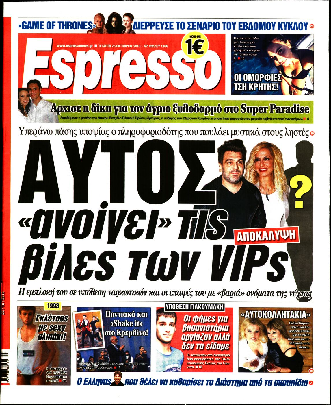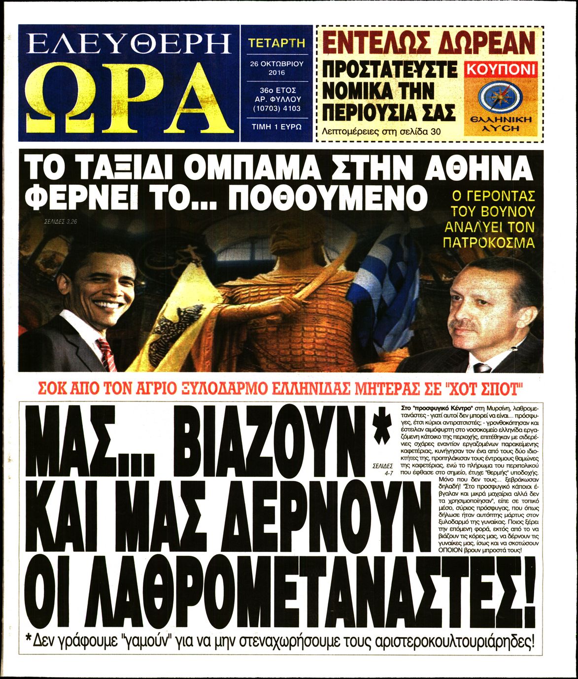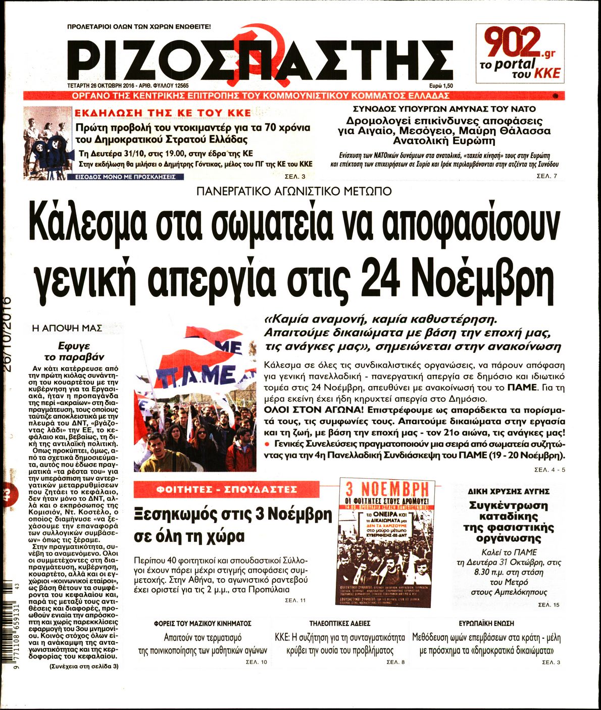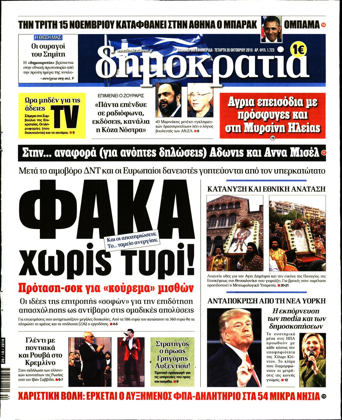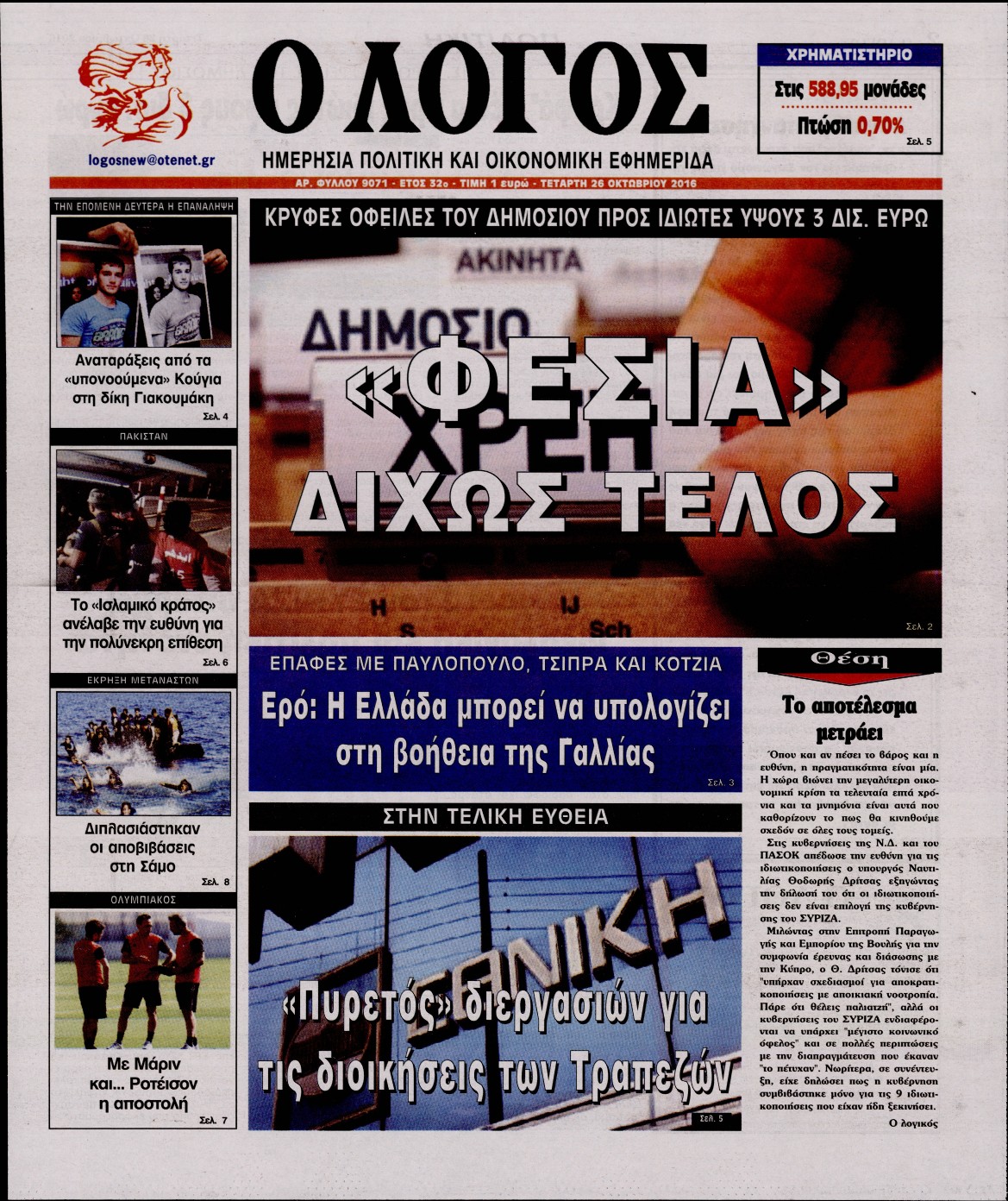 Oι πολιτικές εφημερίδες 26/10/2016 Κώστας Τεό 04:48, Τετάρτη 26 Οκτωβρίου 2016 Media Διαβάστε τα σημερινά πρωτοσέλιδα των πολιτικών εφημερίδων: ΠΟΛΙΤΙΚΕΣ ΕΦΗΜΕΡΙΔΕΣ ΠΡΩΤΟΣΕΛΙΔΑ Μοιράσου το: σχολίασε κι εσύ (0 σχόλια) Ακολουθήστε το enikos.gr στο Google News και μάθετε πρώτοι όλες τις ειδήσεις Δείτε όλες τις τελευταίες ειδήσεις από την Ελλάδα και τον Κόσμο στο enikos.gr Ειδήσεις Ροή Ειδήσεων 2 ώρες πριν Ακίλα Σάλεχ: «Άκυρο» το τουρκολιβυκό μνημόνιο λέει ο πρόεδρος της λιβυκής Βουλής – Ανοίγει ο διάλογος με Ελλάδα, Αίγυπτο και Τουρκία 6 ώρες πριν Αγρότες: Την Τρίτη η απόφαση για διάλογο ή κλιμάκωση των κινητοποιήσεών τους – Πώς χαρακτηρίζουν τις ανακοινώσεις Τσιάρα και οι επόμενες κινήσεις 6 ώρες πριν Τραμπ για Ουκρανία: «Είμαστε πιο κοντά σε συμφωνία από ποτέ» – «Πολυεθνική δύναμη» προτείνουν οι Ευρωπαίοι 6 ώρες πριν Κυψέλη: Η 16χρονη που μαχαίρωσε την 14χρονη είχε συλληφθεί 3 φορές στο παρελθόν – Έβριζε καθηγητές, έβαζε φωτιές σε κάδους και εκβίαζε συμμαθητές της 5 ώρες πριν Τρομοκρατική επίθεση στο Σίδνεϊ: Θλίψη για τα 15 θύματα – Οργή στην εβραϊκή κοινότητα που προειδοποιούσε επί δύο χρόνια 6 ώρες πριν Επιστήμονες ίσως έλυσαν το μυστήριο γύρω από τα Χόμπιτ – Νέα έρευνα αποκαλύπτει πώς εξαφανίστηκαν 7 ώρες πριν Ύπνος: Η αρχαία μορφή άσκησης που αποδεικνύεται αποτελεσματική στην αντιμετώπιση της αϋπνίας, σύμφωνα με μελέτη 8 ώρες πριν Αριθμολογία: Ο τυχερός σας αριθμός, ανάλογα με τον μήνα γέννησής σας 9 ώρες πριν Πώς να μην μαραίνονται γρήγορα τα κομμένα λουλούδια: Το λάθος στην τοποθέτηση του βάζου που πρέπει να αποφεύγετε 8 λεπτά πριν Νεοκλής Αβδάλας: Συνεχίζει να εντυπωσιάζει τους Αμερικάνους – Αναδείχθηκε Rookie of the week στην περιφέρειά του στο NCAA 19 λεπτά πριν Άντονι Αλμπανέζι: Κίνητρο της φονικής επίθεσης στην παραλία Μπόνταϊ μοιάζει να ήταν η ιδεολογία του Ισλαμικού Κράτους 27 λεπτά πριν Ντόναλντ Τραμπ: Κατέθεσε αγωγή 10 δισ. δολαρίων κατά του BBC, για συκοφαντική δυσφήμιση 37 λεπτά πριν ΗΠΑ: «Όπλο μαζικής καταστροφής» xαρακτήρισε ο Ντόναλντ Τραμπ τη φαιντανύλη 52 λεπτά πριν Στέλλα Κονιτοπούλου: «Η κόρη μου με έστειλε για ψυχοθεραπεία για να μπορέσω να το διαχειριστώ» ENIKOS NETWORK Πότε το χρόνιο ροχαλητό να αποτελέσει ένδειξη κινδύνου για την καρδιά; Τι λένε οι ειδικοί Μάριος Θεμιστοκλέους: Το ΕΣΥ ενισχύεται, εκσυγχρονίζεται, αλλάζει ΕΒΕΠ για αγροτικές κινητοποιήσεις: Κάθε επιπλέον εβδομάδα προσθέτει περίπου 200 εκατ. ευρώ ζημιά Τι προβλέπει το νομοσχέδιο του υπουργείου Εθνικής Άμυνας – Oι αλλαγές στους μισθούς Σύγχρονος Νοστράδαμος: Προειδοποιεί για «μεγάλο γεγονός» τους επόμενους μήνες που θα συγκλονίσει τη Βρετανία και τον κόσμο Τεστ παρατηρητικότητας: Μπορείτε να βρείτε τις 3 διαφορές στις εικόνες με έναν πιγκουίνο σε 14 δευτερόλεπτα περισσότερα 21:35 , Δευτέρα 15 Δεκεμβρίου 2025 Το Σπίτι Δίπλα Στο Ποτάμι: Η Ιουλία και ο Φωκάς μετακομίζουν στη Ρόδο – Δύο νέοι χαρακτήρες μπαίνουν στη σειρά Δύο νέοι, κομβικοί χαρακτήρες κάνουν την εμφάνισή τους αυτή την εβδομάδα στην αγαπημένη σειρά ... 19:46 , Δευτέρα 15 Δεκεμβρίου 2025 Άγιος έρωτας: Η Χριστίνα λέει την αλήθεια στον Αντρέα Ο Βασίλης δέχεται επίθεση από τους συμμαθητές του, η Αναστασία είναι συντετριμμένη με την απώλ... 18:45 , Δευτέρα 15 Δεκεμβρίου 2025 Συνέδριο «Ελληνικός Τουρισμός 2025, Μια εθνική υπόθεση!» – «Ο Θαλάσσιος Πυλώνας ως Ενιαία Στρατηγική: Συνέργειες σε Λιμάνια, Μαρίνες, Ακτοπλοΐα, Κρουαζιέρα και Yachting» Στο πλαίσιο της τ