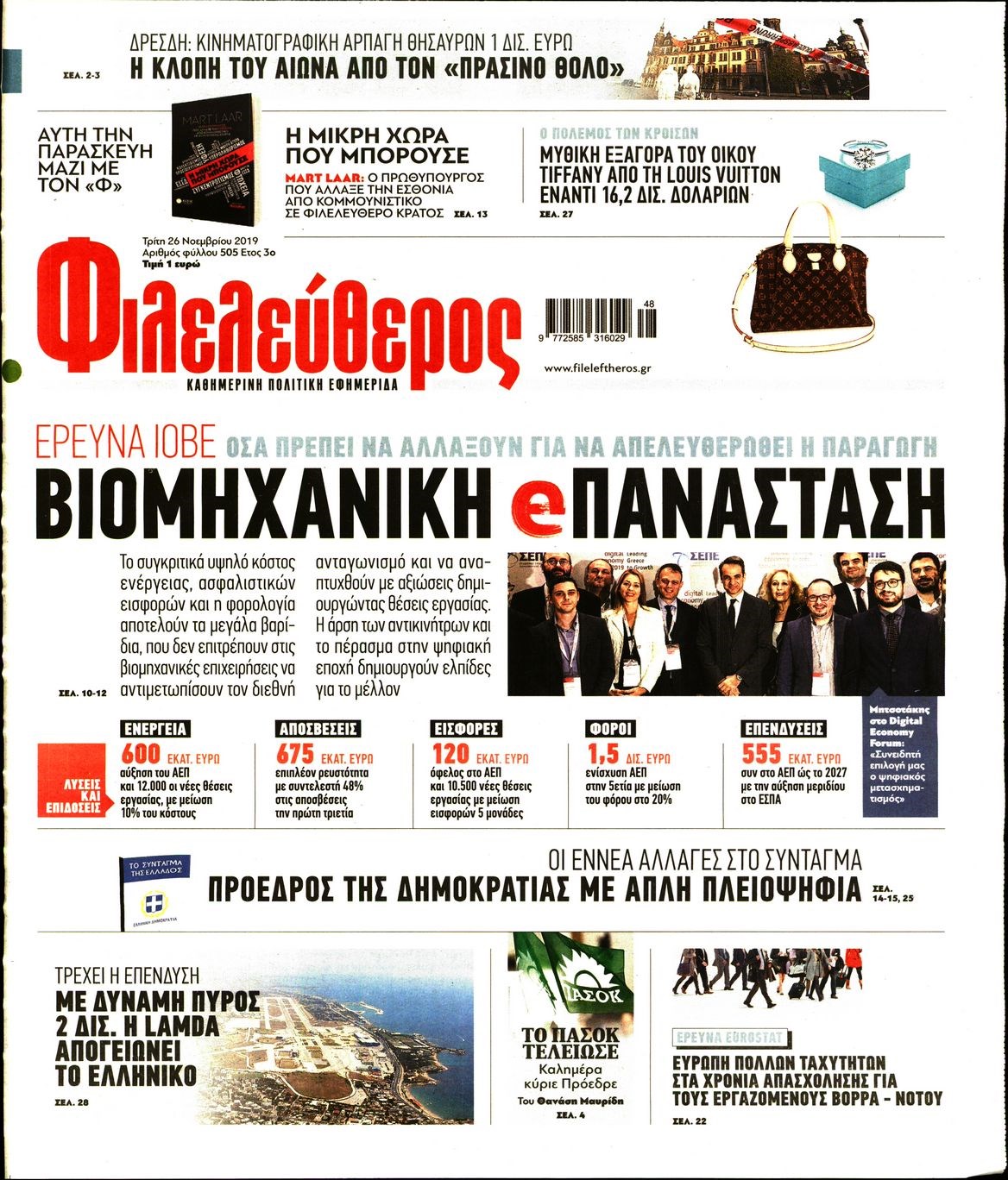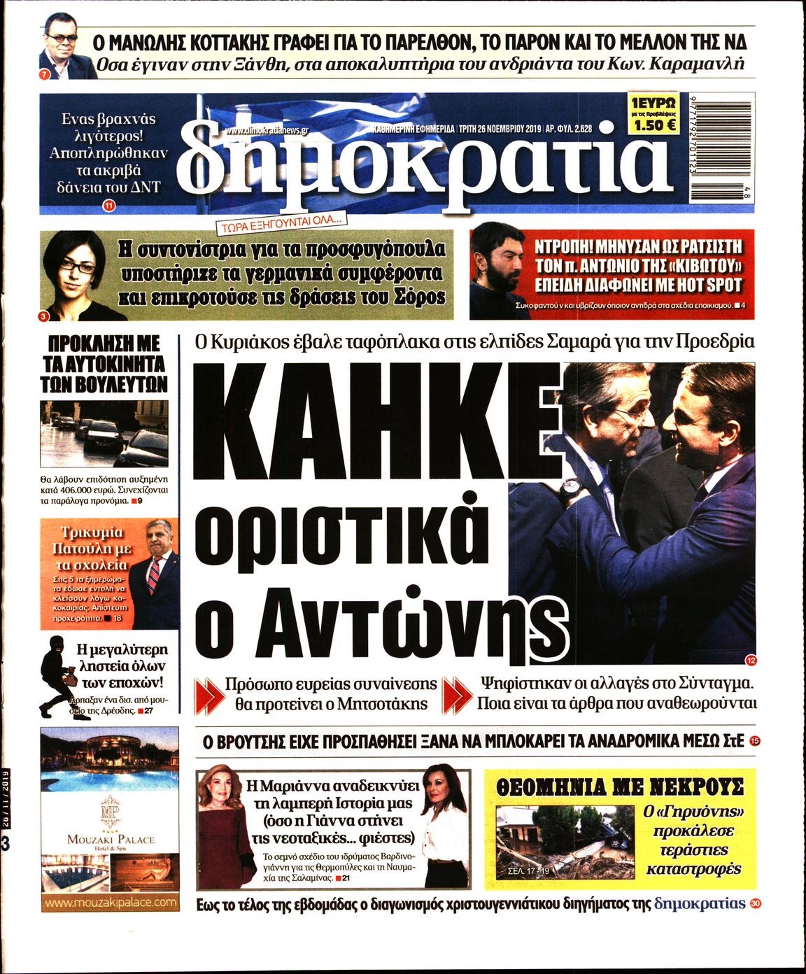 Οι πολιτικές εφημερίδες 26/11/19 Διονύσης Νίκκας 06:28, Τρίτη 26 Νοεμβρίου 2019 Media Διαβάστε τα πρωτοσέλιδα των πολιτικών εφημερίδων… ΕΦΗΜΕΡΙΔΕΣ ΠΟΛΙΤΙΚΕΣ Μοιράσου το: σχολίασε κι εσύ (0 σχόλια) Ακολουθήστε το enikos.gr στο Google News και μάθετε πρώτοι όλες τις ειδήσεις Δείτε όλες τις τελευταίες ειδήσεις από την Ελλάδα και τον Κόσμο στο enikos.gr Ειδήσεις Ροή Ειδήσεων 2 ώρες πριν Αυξάνουν την πίεση προς την κυβέρνηση οι αγρότες: Κλείνουν παρακαμπτήριους και ανοίγουν διόδια – Τι θα γίνει τις γιορτές 41 λεπτά πριν ΟΠΕΚΕΠΕ: Προφυλακιστέος ο φερόμενος αρχηγός και ο λογιστής της εγκληματικής οργάνωσης 2 ώρες πριν Φοινικούντα: Το Σάββατο απολογείται ο 30χρονος γιος γνωστού επιχειρηματία της Πλάκας που παραδόθηκε – Όσα είπε στους αστυνομικούς και ο ρόλος του στο έγκλημα 1 ώρα πριν Μπορεί ο Μαδούρο να αντέξει τον αποκλεισμό του Τραμπ; Τι θα χρειαστεί η Ουάσινγκτον για να τον ανατρέψει 3 ώρες πριν Πρίγκιπας Ουίλιαμ – Κέιτ: Η νέα οικογενειακή φωτογραφία για τις Χριστουγεννιάτικες κάρτες του 2025 2 ώρες πριν Ύπνος: Η απλή βραδινή ρουτίνα για να προστατεύσετε τα μαλλιά σας από το κρύο κατά τη διάρκεια του χειμώνα 3 ώρες πριν Manifesting: Πώς να συναντήσετε τον σύντροφο της ζωής σας, ανάλογα με τον μήνα γέννησής σας 2 ημέρες πριν 20 χρόνια τα Χριστούγεννα ξεκινούν στα Public με μεγάλη ποικιλία σε δώρα! 1 ώρα πριν Αρχαιολόγοι ανακάλυψαν ρωμαϊκά τεχνουργήματα από μια πόλη που δεν υπήρξε ποτέ – Τα τρία εντυπωσιακά κτίρια και ο αμφορέας με τις… σαρδέλες 21 λεπτά πριν ΑΕΚ – Κραϊόβα 3-2: Επική ανατροπή και πρόκριση στους «16» του Conference League η Ένωση 41 λεπτά πριν ΟΠΕΚΕΠΕ: Προφυλακιστέος ο φερόμενος αρχηγός και ο λογιστής της εγκληματικής οργάνωσης 51 λεπτά πριν Αθηνά Μαξίμου: Η τρυφερή ανάρτηση για τα γενέθλια του Αιμίλιου Χειλάκη – «Είναι η εκλεκτική συγγένειά μου, η επιλογή και η ευθύνη μου» 1 ώρα πριν Παναθηναϊκός – Χάποελ Τελ Αβίβ 93-82: Με… φόρα από την Κωνσταντινούπολη 1 ώρα πριν Μπορεί ο Μαδούρο να αντέξει τον αποκλεισμό του Τραμπ; Τι θα χρειαστεί η Ουάσινγκτον για να τον ανατρέψει ENIKOS NETWORK Σε περίοδο αυξημένης δραστηριότητας η γρίπη στην Ελλάδα-Μέτρα προστασίας από τον ΕΟΔΥ Σκέφτεστε συνέχεια συζητήσεις που έχετε κάνει; Τι σημαίνει αυτό, σύμφωνα με ειδικό Στεγαστικό: Τι λέει η ΠΟΜΙΔΑ για τα νέα μέτρα που ανακοίνωσε ο Κυριάκος Μητσοτάκης Λαγκάρντ: Αισιόδοξη για την ανάπτυξη της Ευρωζώνης, αβέβαιη για τον πληθωρισμό Χαρτογραφώντας το «σημείο χωρίς επιστροφή»: Για πρώτη φορά αποκαλύπτεται με λεπτομέρεια το ακανθώδες όριο της ατμόσφαιρας τ... Η Google καταργεί τη λειτουργία «dark web report» – Πώς θα μπορούν οι χρήστες να διαγράφουν τα δεδομένα τους περισσότερα 17:45 , Πέμπτη 18 Δεκεμβρίου 2025 ROUK ZOUK: Εορταστικό επεισόδιο με καλεσμένους τους πρωταγωνιστές του «Γιατί ρε πατέρα» Το Σάββατο 20 Δεκεμβρίου στις 21:00, η Ζέτα Μακρυπούλια υποδέχεται εκλεκτούς ηθοποιούς που όλο... 17:20 , Πέμπτη 18 Δεκεμβρίου 2025 Άγιος έρωτας: Η Χριστίνα εξομολογείται στον πατέρα Νικόλαο, απόψε στις 21:00 στον Alpha Η Νότα αποφασίζει να εκδικηθεί τον Πέτρο και τον Στέφανο, για χάρη του Λούη, όμως τα πράγματα ... 16:50 , Πέμπτη 18 Δεκεμβρίου 2025 Να μ’ αγαπάς: Ζωή και Φωτεινή συμφιλιώνονται ως μάνα με κόρη, απόψε στις 20:00 Η ταυτότητα του Άγγελου αποκαλύπτεται στο νέο επεισόδιο της σειράς “Να μ’ αγαπάς... 15:52 , Πέμπτη 18 Δεκεμβρίου 2025 Το Σπίτι Δίπλα Στο Ποτάμι: Το καθηλωτικό τελευταίο επεισόδιο για το 2025 απόψε στις 22:30 Καθηλώνει το σημερινό επεισόδιο της σειρ