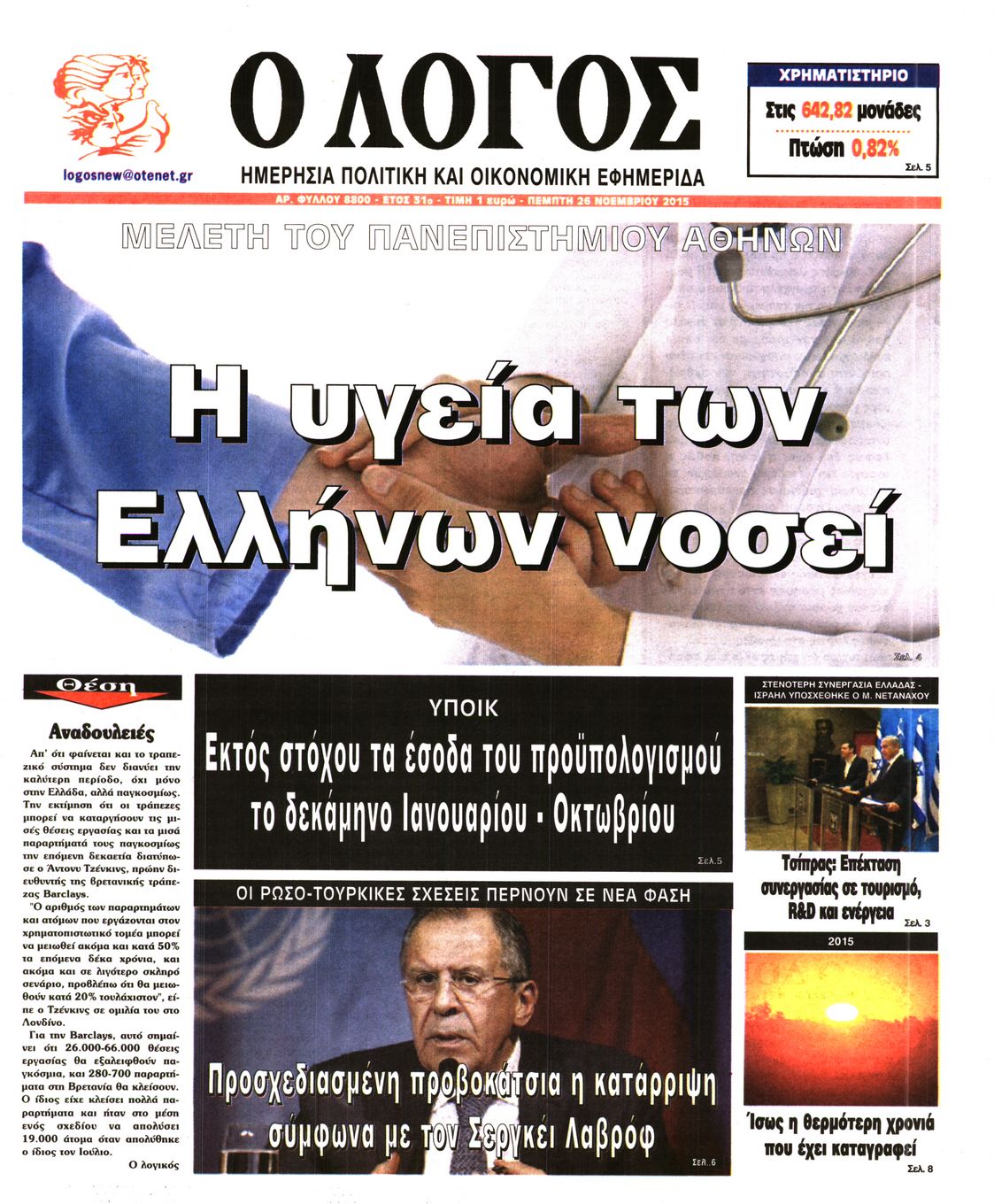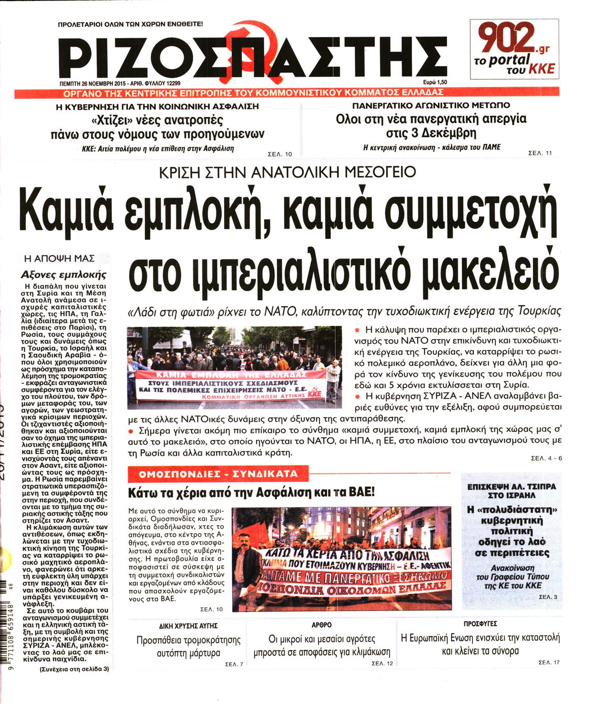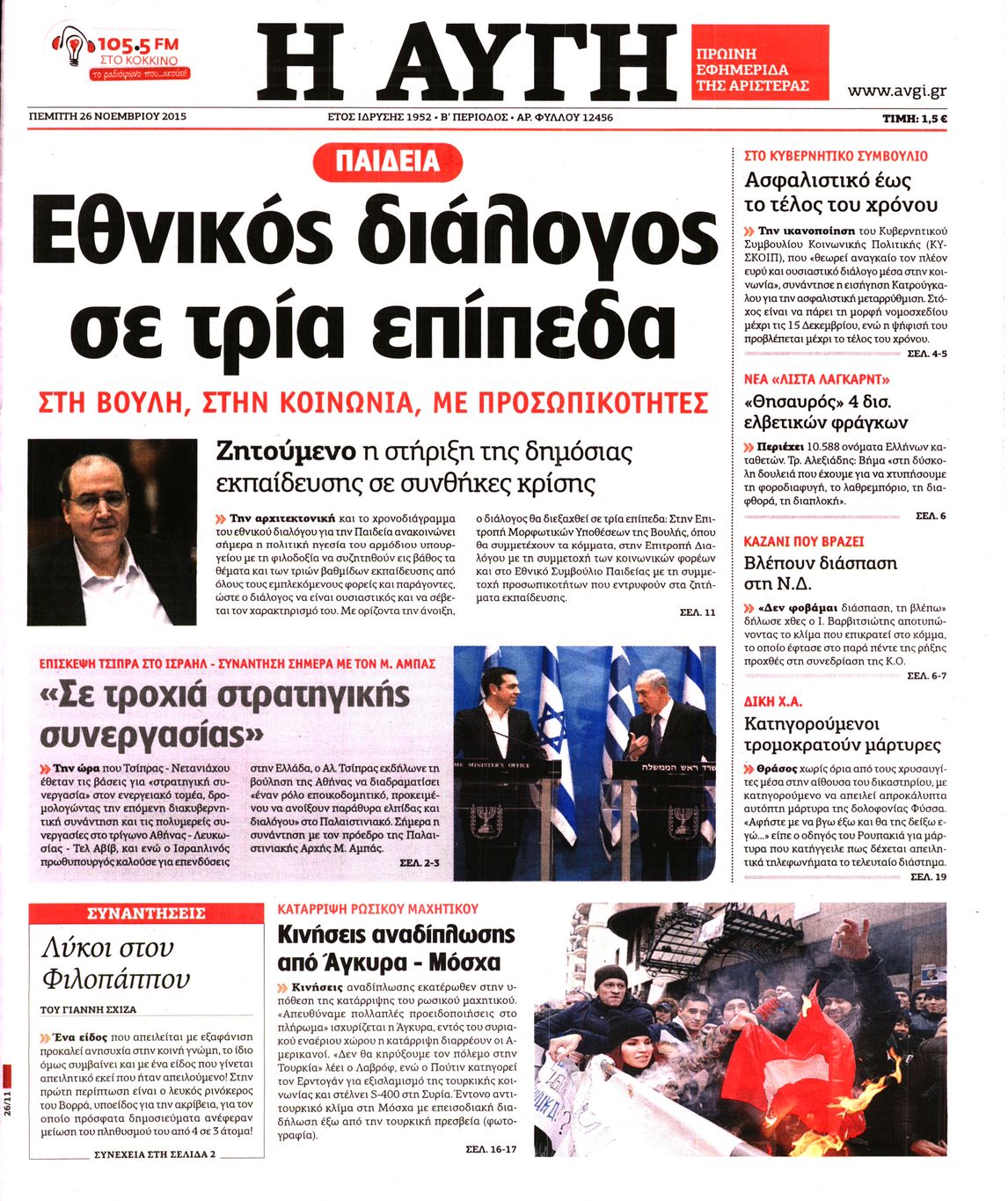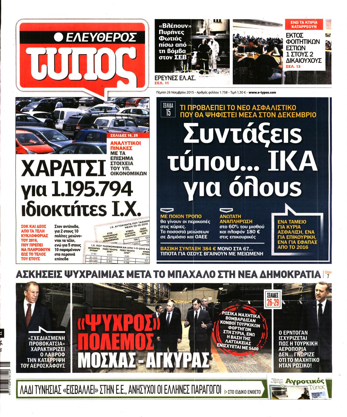 Οι πολιτικές εφημερίδες 26/11/2015 Enikos Newsroom 06:17, Πέμπτη 26 Νοεμβρίου 2015 Media Διαβάστε τα σημερινά πρωτοσέλιδα των πολιτικών εφημερίδων: ΠΟΛΙΤΙΚΕΣ ΕΦΗΜΕΡΙΔΕΣ ΠΡΩΤΟΣΕΛΙΔΑ Μοιράσου το: σχολίασε κι εσύ (0 σχόλια) Ακολουθήστε το enikos.gr στο Google News και μάθετε πρώτοι όλες τις ειδήσεις Δείτε όλες τις τελευταίες ειδήσεις από την Ελλάδα και τον Κόσμο στο enikos.gr Ειδήσεις Ροή Ειδήσεων 3 ώρες πριν Χριστούγεννα στα μπλόκα: Επιμένουν στις κινητοποιήσεις τους οι αγρότες – Ανοίγουν τα διόδια το Σαββατοκύριακο 3 ώρες πριν Ουκρανία: Η άνευ προηγουμένου επίθεση σε ρωσικό τάνκερ στη Μεσόγειο και το μήνυμα προς στον Πούτιν – Το «μακρύ χέρι» του Κιέβου 2 ώρες πριν Πούτιν: Τα μηνύματα σε Ευρώπη και ΝΑΤΟ από το μαραθώνιο «σόου» του – Η απαίτηση για «σεβασμό» και η ειρήνη «με τους όρους» της Μόσχας 3 ώρες πριν Τραμπ: Δεν αποκλείει την πιθανότητα ενός πολέμου στη Βενεζουέλα – «Ο Μαδούρο ξέρει καλύτερα από τον καθένα τι ακριβώς θέλω» 4 ώρες πριν Συνεχίζει να προκαλεί ο Μίτσκοσκι: «Για μένα το όνομα Μακεδονία είναι ιερό» 2 ώρες πριν Ανακαλύφθηκαν αρχαία χρυσά νομίσματα 2.200 ετών που απεικονίζουν τον θεό Απόλλωνα – Η άγνωστη σύνδεση με τον Φίλιππο Β΄ της Μακεδονίας 3 ώρες πριν Ύπνος: Μια κρυφή κατάσταση του εγκεφάλου πριν από τον ύπνο μπορεί να είναι το “κλειδί” για υψηλή ευφυΐα και δημιουργικότητα 4 ώρες πριν Αριθμολογία: Οι άνθρωποι που έχουν γεννηθεί αυτές τις 4 ημερομηνίες, συχνά παρεξηγούνται – «Η καλοσύνη τους κρύβει τεράστια δύναμη» 5 ώρες πριν Ξεχάστε το καθάρισμα το Σαββατοκύριακο: Ο «κανόνας των 20 λεπτών» που θα σας λύσει τα χέρια 5 λεπτά πριν Συρία: Μαζικά πλήγματα των ΗΠΑ σε θέσεις του Ισλαμικού Κράτους – Χέγκσεθ: «Δεν είναι αρχή πολέμου, είναι μια δήλωση εκδίκησης» για το θάνατο των στρατιωτών μας 18 λεπτά πριν Ουκρανία: Ολοκληρώθηκαν οι συνομιλίες με τους Αμερικανούς κι Ευρωπαίους διαπραγματευτές 33 λεπτά πριν Μπαρτσελόνα – Μπασκόνια 134-124: Οι «μπλαουγκράνα» πήραν το ματς της χρονιάς ύστερα από τρεις παρατάσεις 48 λεπτά πριν Φαίη Σκορδά: «Παλιότερα τα κομπλιμέντα τα προσπερνούσα, τώρα τα έχω ανάγκη» 1 ώρα πριν Βασίλης Σπανούλης: Δεν εμφανίστηκε ούτε ένας δημοσιογράφος στην συνέντευξη Τύπου – «Καλησπέρα στον… κανέναν», δείτε βίντεο ENIKOS NETWORK Το ΕΚΑΒ τιμήθηκε από την Ακαδημία Αθηνών για τα 40 χρόνια προσφοράς του Έχετε πραγματικά μεγάλη καρδιά; 10 χαρακτηριστικά όσων έχουν καλοσύνη Αναστολή μέτρων αναγκαστικής εκτέλεσης για κτηνοτρόφους που πλήττονται από την ευλογιά των αιγοπροβάτων Πλήρης επάρκεια προϊόντων στις λαϊκές της Αττικής, παρά τις αγροτικές κινητοποιήσεις – Τι απαντούν οι πωλητές Χαρτογραφώντας το «σημείο χωρίς επιστροφή»: Για πρώτη φορά αποκαλύπτεται με λεπτομέρεια το ακανθώδες όριο της ατμόσφαιρας τ... Η Google καταργεί τη λειτουργία «dark web report» – Πώς θα μπορούν οι χρήστες να διαγράφουν τα δεδομένα τους περισσότερα 22:42 , Παρασκευή 19 Δεκεμβρίου 2025 Γιώργος Γιαννόπουλος για “Το σόι σου”: “Είναι ευτυχία και ευλογία αυτή η σειρά” «Είναι ευτυχία και ευλογία η συγκυρία αυτής της σειράς», θα πει ο Γιώργος Γιαννόπουλος -ο αγαπ... 20:37 , Παρασκευή 19 Δεκεμβρίου 2025 Don’t Forget The Lyrics: Η Έλλη Κοκκίνου υποδέχεται 4 παίκτες που θα κάνουν τα πάντα για να μη χάσουν ούτε… μισή λέξη από τους στίχους Το «Don’t Forget The Lyrics» επιστρέφει απόψε, Παρασκευή 19 Δεκεμβρίου, στις 21:00 με νέο επει... 19:31 , Παρασκευή 19 Δεκεμβρίου 2025 GNTM: Απόψε ο μεγάλος τελικός για τους 4 φιναλίστ Έπειτα από μήνες γεμ