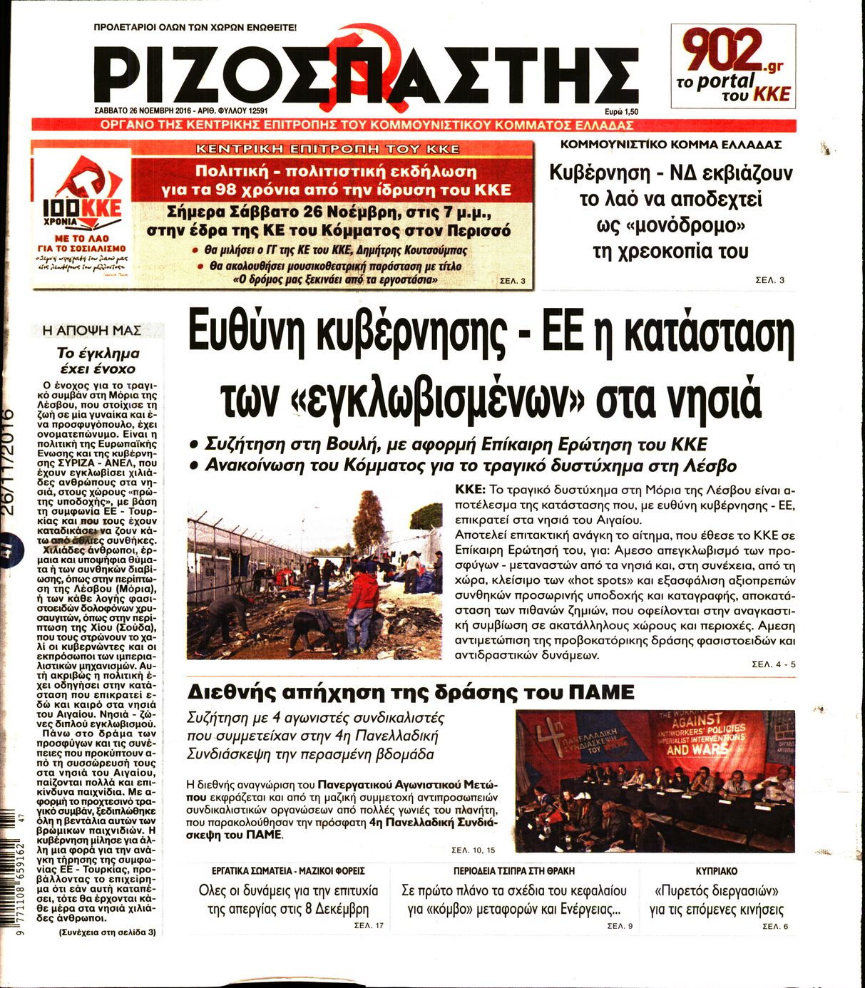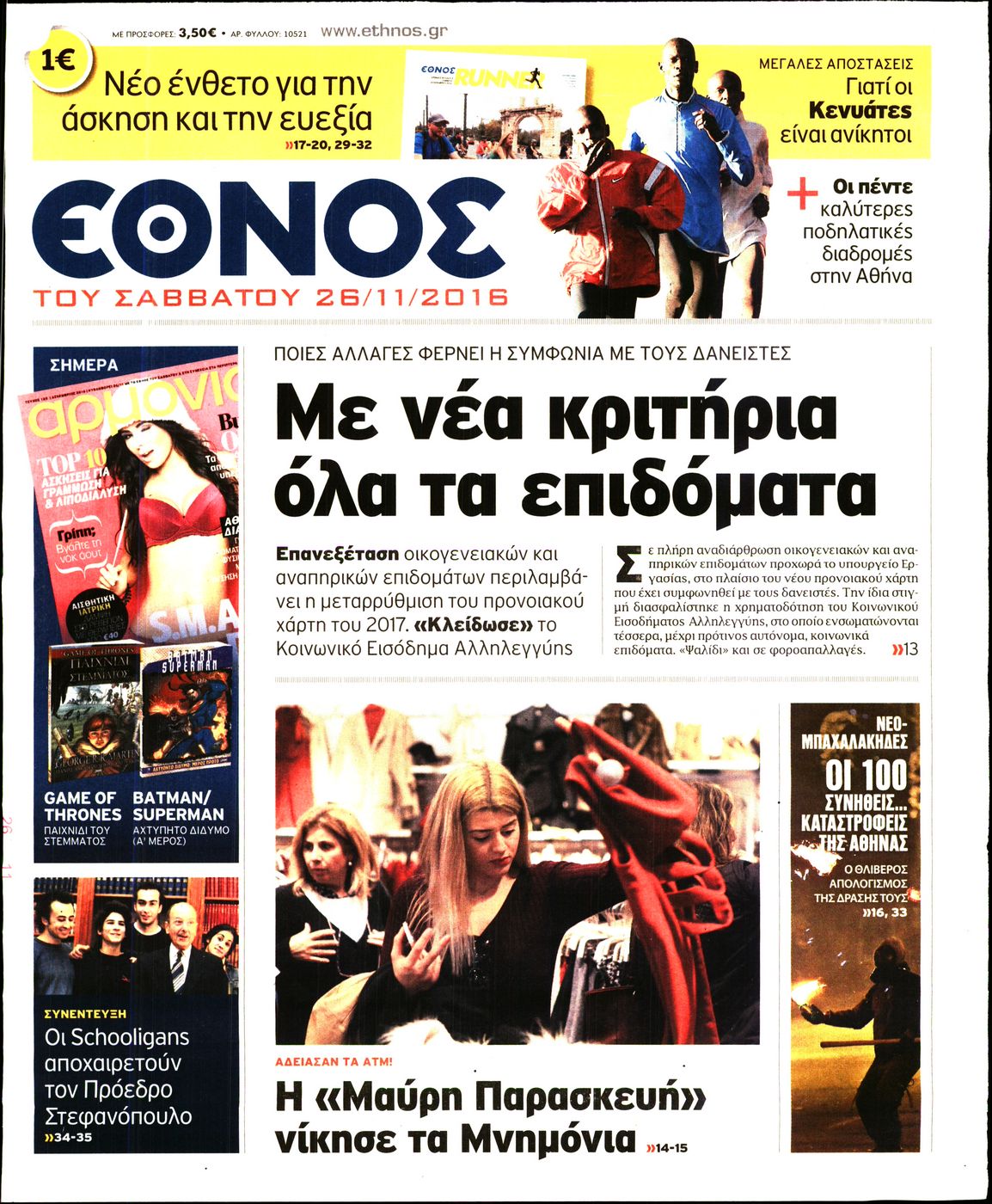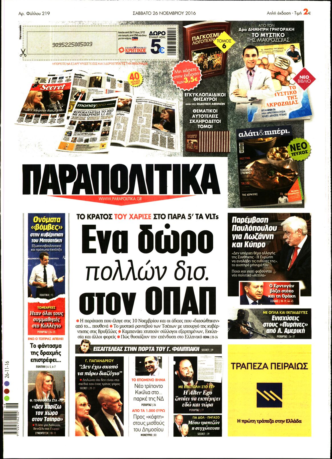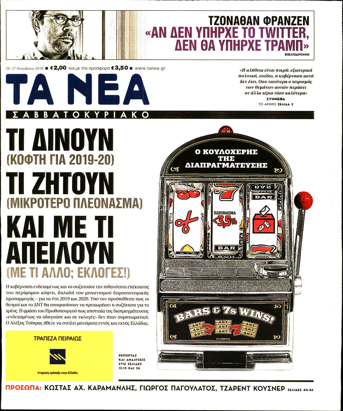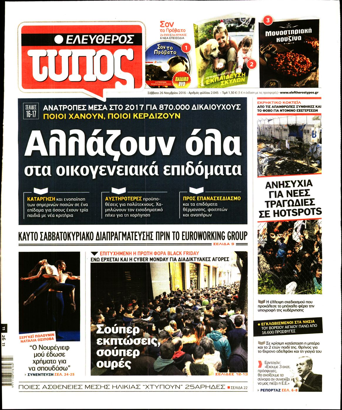 Οι πολιτικές εφημερίδες 26/11/2016 Enikos Newsroom 01:36, Σάββατο 26 Νοεμβρίου 2016 Media Διαβάστε τα σημερινά πρωτοσέλιδα των πολιτικών εφημερίδων: ΠΟΛΙΤΙΚΕΣ ΕΦΗΜΕΡΙΔΕΣ ΠΡΩΤΟΣΕΛΙΔΑ Μοιράσου το: σχολίασε κι εσύ (0 σχόλια) Ακολουθήστε το enikos.gr στο Google News και μάθετε πρώτοι όλες τις ειδήσεις Δείτε όλες τις τελευταίες ειδήσεις από την Ελλάδα και τον Κόσμο στο enikos.gr Ειδήσεις Ροή Ειδήσεων 4 ώρες πριν Χριστούγεννα στα μπλόκα: Επιμένουν στις κινητοποιήσεις τους οι αγρότες – Ανοίγουν τα διόδια το Σαββατοκύριακο 4 ώρες πριν Ουκρανία: Η άνευ προηγουμένου επίθεση σε ρωσικό τάνκερ στη Μεσόγειο και το μήνυμα προς στον Πούτιν – Το «μακρύ χέρι» του Κιέβου 3 ώρες πριν Πούτιν: Τα μηνύματα σε Ευρώπη και ΝΑΤΟ από το μαραθώνιο «σόου» του – Η απαίτηση για «σεβασμό» και η ειρήνη «με τους όρους» της Μόσχας 4 ώρες πριν Τραμπ: Δεν αποκλείει την πιθανότητα ενός πολέμου στη Βενεζουέλα – «Ο Μαδούρο ξέρει καλύτερα από τον καθένα τι ακριβώς θέλω» 5 ώρες πριν Συνεχίζει να προκαλεί ο Μίτσκοσκι: «Για μένα το όνομα Μακεδονία είναι ιερό» 3 ώρες πριν Ανακαλύφθηκαν αρχαία χρυσά νομίσματα 2.200 ετών που απεικονίζουν τον θεό Απόλλωνα – Η άγνωστη σύνδεση με τον Φίλιππο Β΄ της Μακεδονίας 4 ώρες πριν Ύπνος: Μια κρυφή κατάσταση του εγκεφάλου πριν από τον ύπνο μπορεί να είναι το “κλειδί” για υψηλή ευφυΐα και δημιουργικότητα 5 ώρες πριν Αριθμολογία: Οι άνθρωποι που έχουν γεννηθεί αυτές τις 4 ημερομηνίες, συχνά παρεξηγούνται – «Η καλοσύνη τους κρύβει τεράστια δύναμη» 6 ώρες πριν Ξεχάστε το καθάρισμα το Σαββατοκύριακο: Ο «κανόνας των 20 λεπτών» που θα σας λύσει τα χέρια 15 λεπτά πριν ΗΠΑ: Τραγωδία στην Αλαμπάμα – Σκότωσε την δημοσιογράφο σύζυγό του και αυτοκτόνησε μπροστά στον 3χρονο γιο τους 29 λεπτά πριν Πρόταση γάμου στο ΣΕΦ κατά την διάρκεια του αγώνα Ολυμπιακός-Βιλερμπάν – Δείτε βίντεο 44 λεπτά πριν Euroleague: Επέστρεψε στις νίκες ο Ολυμπιακός, πήρε την ματσάρα της χρονιάς η Μπάρτσα – Τα αποτελέσματα και η βαθμολογία 59 λεπτά πριν Συρία: Μαζικά πλήγματα των ΗΠΑ σε θέσεις του Ισλαμικού Κράτους – Χέγκσεθ: «Δεν είναι αρχή πολέμου, είναι μια δήλωση εκδίκησης» για το θάνατο των στρατιωτών μας 1 ώρα πριν Ουκρανία: Ολοκληρώθηκαν οι συνομιλίες με τους Αμερικανούς κι Ευρωπαίους διαπραγματευτές ENIKOS NETWORK Το ΕΚΑΒ τιμήθηκε από την Ακαδημία Αθηνών για τα 40 χρόνια προσφοράς του Έχετε πραγματικά μεγάλη καρδιά; 10 χαρακτηριστικά όσων έχουν καλοσύνη Αναστολή μέτρων αναγκαστικής εκτέλεσης για κτηνοτρόφους που πλήττονται από την ευλογιά των αιγοπροβάτων Πλήρης επάρκεια προϊόντων στις λαϊκές της Αττικής, παρά τις αγροτικές κινητοποιήσεις – Τι απαντούν οι πωλητές Χαρτογραφώντας το «σημείο χωρίς επιστροφή»: Για πρώτη φορά αποκαλύπτεται με λεπτομέρεια το ακανθώδες όριο της ατμόσφαιρας τ... Η Google καταργεί τη λειτουργία «dark web report» – Πώς θα μπορούν οι χρήστες να διαγράφουν τα δεδομένα τους περισσότερα 22:42 , Παρασκευή 19 Δεκεμβρίου 2025 Γιώργος Γιαννόπουλος για “Το σόι σου”: “Είναι ευτυχία και ευλογία αυτή η σειρά” «Είναι ευτυχία και ευλογία η συγκυρία αυτής της σειράς», θα πει ο Γιώργος Γιαννόπουλος -ο αγαπ... 20:37 , Παρασκευή 19 Δεκεμβρίου 2025 Don’t Forget The Lyrics: Η Έλλη Κοκκίνου υποδέχεται 4 παίκτες που θα κάνουν τα πάντα για να μη χάσουν ούτε… μισή λέξη από τους στίχους Το «Don’t Forget The Lyrics» επιστρέφει απόψε, Παρασκευή 19 Δεκεμβρίου, στις 21:00 με νέο επει... 19:31 , Παρασκευή 19 Δεκεμβρίου 2025 GNTM: Απόψε ο μεγάλος τελικός για τους 4 φιναλίστ Έπειτα απ