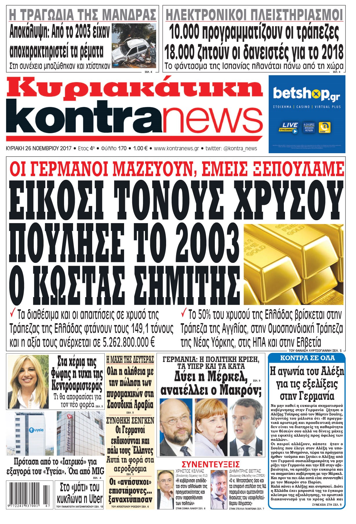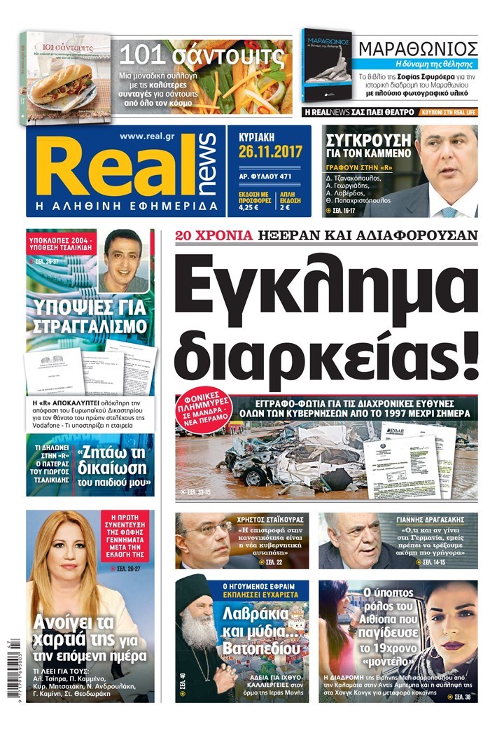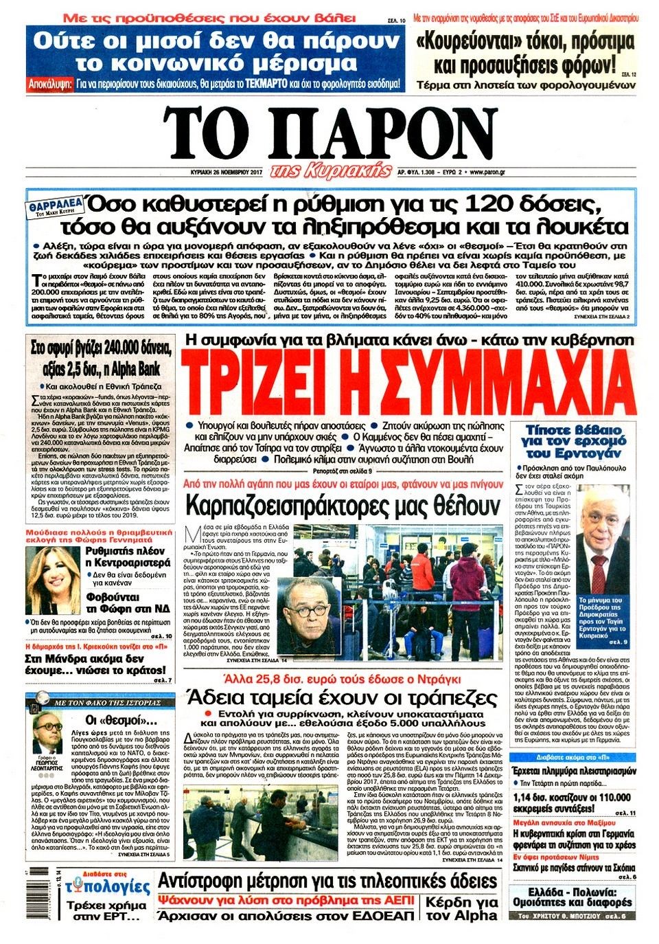 Οι πολιτικές εφημερίδες 26/11/2017 Κώστας Τεό 07:26, Κυριακή 26 Νοεμβρίου 2017 Media Διαβάστε τα σημερινά πρωτοσέλιδα των πολιτικών εφημερίδων: ΠΟΛΙΤΙΚΕΣ ΕΦΗΜΕΡΙΔΕΣ ΠΡΩΤΟΣΕΛΙΔΑ Μοιράσου το: σχολίασε κι εσύ (0 σχόλια) Ακολουθήστε το enikos.gr στο Google News και μάθετε πρώτοι όλες τις ειδήσεις Δείτε όλες τις τελευταίες ειδήσεις από την Ελλάδα και τον Κόσμο στο enikos.gr Ειδήσεις Ροή Ειδήσεων 23 λεπτά πριν Τραμπ: Δεν αποκλείει την πιθανότητα ενός πολέμου στη Βενεζουέλα – «Ο Μαδούρο ξέρει καλύτερα από τον καθένα τι ακριβώς θέλω» 17 λεπτά πριν Ουκρανία: Η άνευ προηγουμένου επίθεση σε ρωσικό τάνκερ στη Μεσόγειο και το μήνυμα προς στον Πούτιν – Το «μακρύ χέρι» του Κιέβου 3 ώρες πριν Εμπλοκή και αερομαχίες με οπλισμένα τουρκικά F-16 στο Αιγαίο 3 ώρες πριν Πούτιν: «Ναι, είμαι ερωτευμένος» – Βίντεο από τη σπάνια προσωπική παραδοχή του 1 ώρα πριν Ανδρέας Λυκουρέντζος: Υπέβαλε την παραίτησή του ο πρόεδρος του ΕΛΓΑ, αλλά δεν έγινε δεκτή – Όλο το παρασκήνιο 2 ώρες πριν Αριθμολογία: Οι άνθρωποι που έχουν γεννηθεί αυτές τις 4 ημερομηνίες, συχνά παρεξηγούνται – «Η καλοσύνη τους κρύβει τεράστια δύναμη» 4 ώρες πριν Μήπως έχετε χάσει τον εαυτό σας στη σχέση σας; 7 «αθόρυβες» υποχωρήσεις που μάλλον κάνατε, χωρίς να το συνειδητοποιήσετε 3 ώρες πριν Ξεχάστε το καθάρισμα το Σαββατοκύριακο: Ο «κανόνας των 20 λεπτών» που θα σας λύσει τα χέρια 32 λεπτά πριν Ύπνος: Μια κρυφή κατάσταση του εγκεφάλου πριν από τον ύπνο μπορεί να είναι το “κλειδί” για υψηλή ευφυΐα και δημιουργικότητα 6 λεπτά πριν Χάρι και Μέγκαν: Η σπάνια οικογενειακή φωτογραφία με τον Άρτσι και τη Λίλιμπετ – Τι σχεδιάζουν για τα Χριστούγεννα 13 λεπτά πριν Βασίλης Καρράς: «Είναι πάντα δίπλα μου, δεν έφυγε…», λέει ο αδελφός του 17 λεπτά πριν Ουκρανία: Η άνευ προηγουμένου επίθεση σε ρωσικό τάνκερ στη Μεσόγειο και το μήνυμα προς στον Πούτιν – Το «μακρύ χέρι» του Κιέβου 23 λεπτά πριν Τραμπ: Δεν αποκλείει την πιθανότητα ενός πολέμου στη Βενεζουέλα – «Ο Μαδούρο ξέρει καλύτερα από τον καθένα τι ακριβώς θέλω» 25 λεπτά πριν Κηφισιά: Με πολλές απουσίες κόντρα στον Ολυμπιακό – «Last dance» για τον Τεττέη ENIKOS NETWORK Το ΕΚΑΒ τιμήθηκε από την Ακαδημία Αθηνών για τα 40 χρόνια προσφοράς του Έχετε πραγματικά μεγάλη καρδιά; 10 χαρακτηριστικά όσων έχουν καλοσύνη ΑΑΔΕ: Νέες αναβαθμίσεις στο Ψηφιακό Πελατολόγιο και την εφαρμογή myDATAapp – Τι πρέπει να γνωρίζετε Όμιλος ΔΕΗ: Νέα ορόσημα και ενισχυμένη διαφάνεια στην ετήσια Έκθεση Βιώσιμης Ανάπτυξης Χαρτογραφώντας το «σημείο χωρίς επιστροφή»: Για πρώτη φορά αποκαλύπτεται με λεπτομέρεια το ακανθώδες όριο της ατμόσφαιρας τ... Η Google καταργεί τη λειτουργία «dark web report» – Πώς θα μπορούν οι χρήστες να διαγράφουν τα δεδομένα τους περισσότερα 20:37 , Παρασκευή 19 Δεκεμβρίου 2025 Don’t Forget The Lyrics: Η Έλλη Κοκκίνου υποδέχεται 4 παίκτες που θα κάνουν τα πάντα για να μη χάσουν ούτε… μισή λέξη από τους στίχους Το «Don’t Forget The Lyrics» επιστρέφει απόψε, Παρασκευή 19 Δεκεμβρίου, στις 21:00 με νέο επει... 19:31 , Παρασκευή 19 Δεκεμβρίου 2025 GNTM: Απόψε ο μεγάλος τελικός για τους 4 φιναλίστ Έπειτα από μήνες γεμάτους μόδα, δημιουργία και έντονες αναμετρήσεις, το GNTM 2025 κορυφώνεται,... 18:11 , Παρασκευή 19 Δεκεμβρίου 2025 Το σόι σου: Ο Άρης έρχεται στην Ελλάδα για τις γιορτές των Χριστουγέννων – Τι θα δούμε στο αποψινό εορταστικό επεισόδιο Ένα απολαυστικό, εορταστικό επεισόδιο της σειράς “Το σόι σου”, γεμάτο ευτράπελα αλ... 15:15 , Παρασκευή 19 Δεκεμβρίου 2025 Την Κυριακή με τη Real