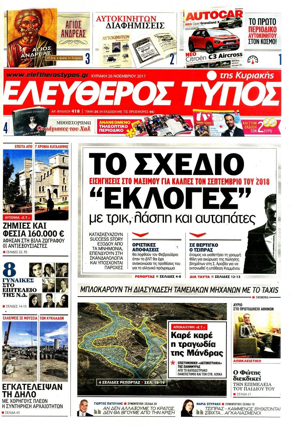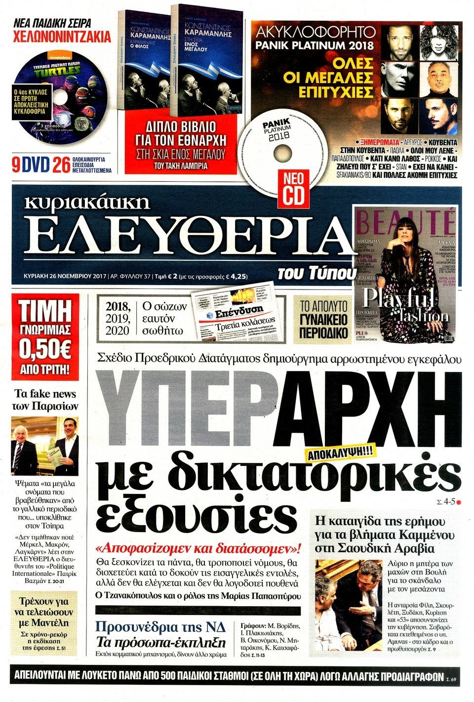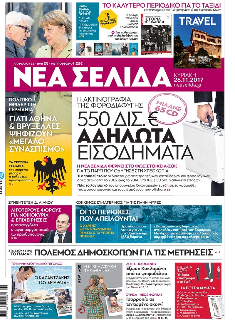 Οι πολιτικές εφημερίδες 26/11/2017 Κώστας Τεό 07:26, Κυριακή 26 Νοεμβρίου 2017 Media Διαβάστε τα σημερινά πρωτοσέλιδα των πολιτικών εφημερίδων: ΠΟΛΙΤΙΚΕΣ ΕΦΗΜΕΡΙΔΕΣ ΠΡΩΤΟΣΕΛΙΔΑ Μοιράσου το: σχολίασε κι εσύ (0 σχόλια) Ακολουθήστε το enikos.gr στο Google News και μάθετε πρώτοι όλες τις ειδήσεις Δείτε όλες τις τελευταίες ειδήσεις από την Ελλάδα και τον Κόσμο στο enikos.gr Ειδήσεις Ροή Ειδήσεων 23 λεπτά πριν Τραμπ: Δεν αποκλείει την πιθανότητα ενός πολέμου στη Βενεζουέλα – «Ο Μαδούρο ξέρει καλύτερα από τον καθένα τι ακριβώς θέλω» 17 λεπτά πριν Ουκρανία: Η άνευ προηγουμένου επίθεση σε ρωσικό τάνκερ στη Μεσόγειο και το μήνυμα προς στον Πούτιν – Το «μακρύ χέρι» του Κιέβου 3 ώρες πριν Εμπλοκή και αερομαχίες με οπλισμένα τουρκικά F-16 στο Αιγαίο 3 ώρες πριν Πούτιν: «Ναι, είμαι ερωτευμένος» – Βίντεο από τη σπάνια προσωπική παραδοχή του 1 ώρα πριν Ανδρέας Λυκουρέντζος: Υπέβαλε την παραίτησή του ο πρόεδρος του ΕΛΓΑ, αλλά δεν έγινε δεκτή – Όλο το παρασκήνιο 2 ώρες πριν Αριθμολογία: Οι άνθρωποι που έχουν γεννηθεί αυτές τις 4 ημερομηνίες, συχνά παρεξηγούνται – «Η καλοσύνη τους κρύβει τεράστια δύναμη» 4 ώρες πριν Μήπως έχετε χάσει τον εαυτό σας στη σχέση σας; 7 «αθόρυβες» υποχωρήσεις που μάλλον κάνατε, χωρίς να το συνειδητοποιήσετε 3 ώρες πριν Ξεχάστε το καθάρισμα το Σαββατοκύριακο: Ο «κανόνας των 20 λεπτών» που θα σας λύσει τα χέρια 32 λεπτά πριν Ύπνος: Μια κρυφή κατάσταση του εγκεφάλου πριν από τον ύπνο μπορεί να είναι το “κλειδί” για υψηλή ευφυΐα και δημιουργικότητα 6 λεπτά πριν Χάρι και Μέγκαν: Η σπάνια οικογενειακή φωτογραφία με τον Άρτσι και τη Λίλιμπετ – Τι σχεδιάζουν για τα Χριστούγεννα 13 λεπτά πριν Βασίλης Καρράς: «Είναι πάντα δίπλα μου, δεν έφυγε…», λέει ο αδελφός του 17 λεπτά πριν Ουκρανία: Η άνευ προηγουμένου επίθεση σε ρωσικό τάνκερ στη Μεσόγειο και το μήνυμα προς στον Πούτιν – Το «μακρύ χέρι» του Κιέβου 23 λεπτά πριν Τραμπ: Δεν αποκλείει την πιθανότητα ενός πολέμου στη Βενεζουέλα – «Ο Μαδούρο ξέρει καλύτερα από τον καθένα τι ακριβώς θέλω» 25 λεπτά πριν Κηφισιά: Με πολλές απουσίες κόντρα στον Ολυμπιακό – «Last dance» για τον Τεττέη ENIKOS NETWORK Το ΕΚΑΒ τιμήθηκε από την Ακαδημία Αθηνών για τα 40 χρόνια προσφοράς του Έχετε πραγματικά μεγάλη καρδιά; 10 χαρακτηριστικά όσων έχουν καλοσύνη ΑΑΔΕ: Νέες αναβαθμίσεις στο Ψηφιακό Πελατολόγιο και την εφαρμογή myDATAapp – Τι πρέπει να γνωρίζετε Όμιλος ΔΕΗ: Νέα ορόσημα και ενισχυμένη διαφάνεια στην ετήσια Έκθεση Βιώσιμης Ανάπτυξης Χαρτογραφώντας το «σημείο χωρίς επιστροφή»: Για πρώτη φορά αποκαλύπτεται με λεπτομέρεια το ακανθώδες όριο της ατμόσφαιρας τ... Η Google καταργεί τη λειτουργία «dark web report» – Πώς θα μπορούν οι χρήστες να διαγράφουν τα δεδομένα τους περισσότερα 20:37 , Παρασκευή 19 Δεκεμβρίου 2025 Don’t Forget The Lyrics: Η Έλλη Κοκκίνου υποδέχεται 4 παίκτες που θα κάνουν τα πάντα για να μη χάσουν ούτε… μισή λέξη από τους στίχους Το «Don’t Forget The Lyrics» επιστρέφει απόψε, Παρασκευή 19 Δεκεμβρίου, στις 21:00 με νέο επει... 19:31 , Παρασκευή 19 Δεκεμβρίου 2025 GNTM: Απόψε ο μεγάλος τελικός για τους 4 φιναλίστ Έπειτα από μήνες γεμάτους μόδα, δημιουργία και έντονες αναμετρήσεις, το GNTM 2025 κορυφώνεται,... 18:11 , Παρασκευή 19 Δεκεμβρίου 2025 Το σόι σου: Ο Άρης έρχεται στην Ελλάδα για τις γιορτές των Χριστουγέννων – Τι θα δούμε στο αποψινό εορταστικό επεισόδιο Ένα απολαυστικό, εορταστικό επεισόδιο της σειράς “Το σόι σου”, γεμάτο ευτράπελα αλ... 15:15 , Παρασκευή 19 Δεκεμβρίου 2025 Την Κυριακή με τη Real