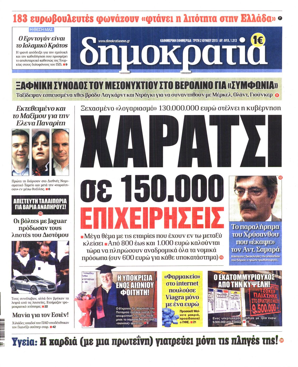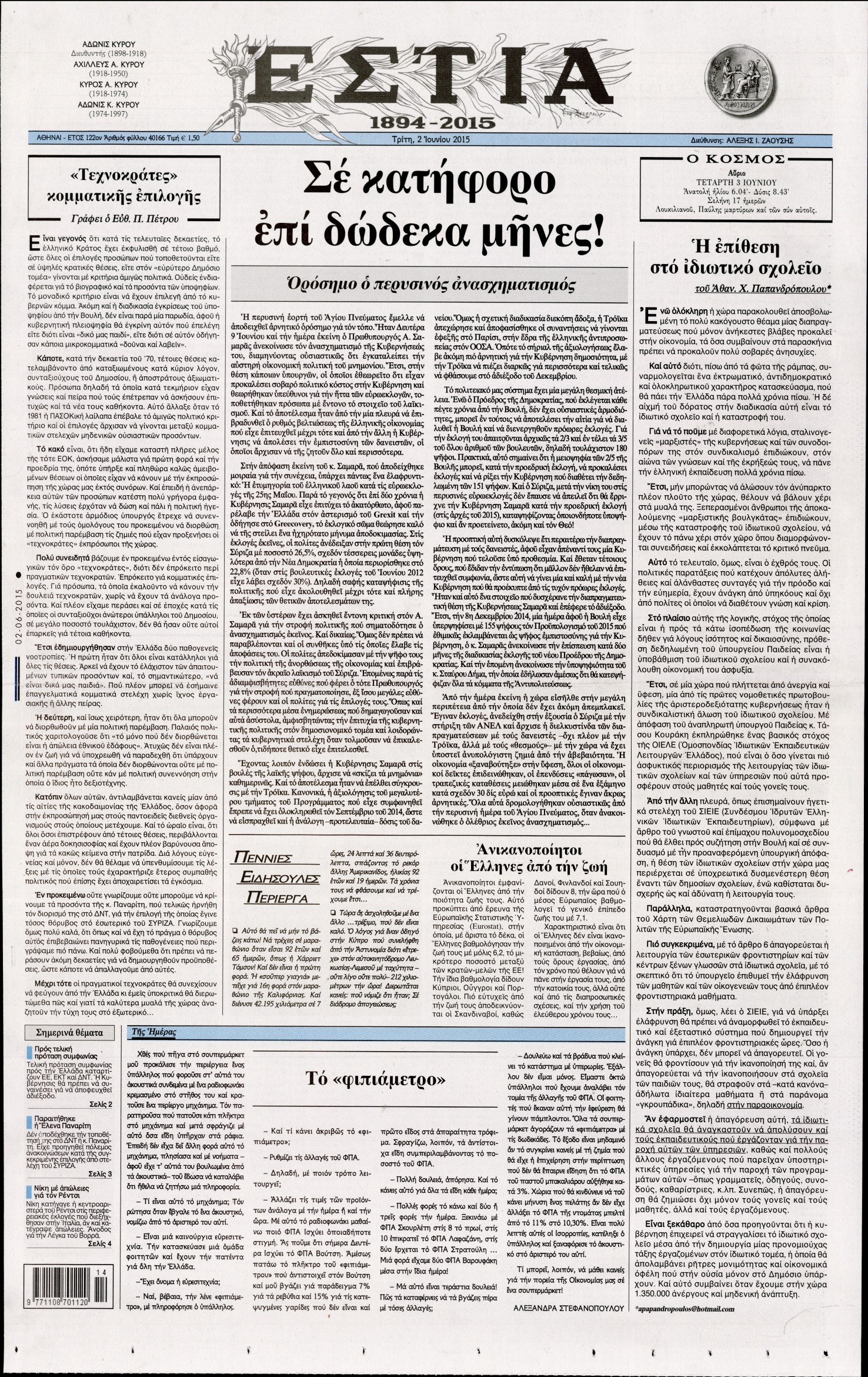 Οι πολιτικές εφημερίδες 2/6/2015 Enikos Newsroom 07:31, Τρίτη 02 Ιουνίου 2015 Media Διαβάστε τα σημερινά πρωτοσέλιδα των πολιτικών εφημερίδων: ΠΟΛΙΤΙΚΕΣ ΕΦΗΜΕΡΙΔΕΣ ΠΡΩΤΟΣΕΛΙΔΑ Μοιράσου το: σχολίασε κι εσύ (0 σχόλια) Ακολουθήστε το enikos.gr στο Google News και μάθετε πρώτοι όλες τις ειδήσεις Δείτε όλες τις τελευταίες ειδήσεις από την Ελλάδα και τον Κόσμο στο enikos.gr Ειδήσεις Ροή Ειδήσεων 1 ώρα πριν Υπόθεση Έπσταϊν: Το Υπουργείο Δικαιοσύνης δημοσιοποίησε μια σειρά από εξαιρετικά επεξεργασμένα αρχεία – «Λείπουν τα πιο σημαντικά έγγραφα», λένε οι Δημοκρατικοί 3 ώρες πριν Σαρωτικοί οι έλεγχοι στους δρόμους ενόψει εορτών – Μπλόκα της τροχαίας σε κεντρικές αρτηρίες της Αττικής 1 ώρα πριν ΟΝΕΧ – MEGATUGS: Ξεκίνησε η ναυπήγηση ρυμουλκών στην Ελλάδα – Προθάλαμος πολεμικών πλοίων – Δείτε φωτογραφίες και βίντεο 1 ώρα πριν Καιρός: Αλλαγή σκηνικού σήμερα με βροχές και πτώση της θερμοκρασίας – Οι προβλέψεις των μετεωρολόγων για τα Χριστούγεννα 10 ώρες πριν Χριστούγεννα στα μπλόκα: Επιμένουν στις κινητοποιήσεις τους οι αγρότες – Ανοίγουν τα διόδια το Σαββατοκύριακο 3 ώρες πριν Αυγά: Πόσα μπορείτε να τρώτε την ημέρα με ασφάλεια για μέγιστη πρόσληψη πρωτεΐνης 3 ώρες πριν Τα ζώδια σήμερα, Σάββατο 20 Δεκεμβρίου: Παρθένοι, το σύμπαν σας δίνει το κλειδί 3 ώρες πριν Οπτική ψευδαίσθηση: Μόνο αν είσαι ο Σέρλοκ Χολμς θα βρεις τον αριθμό «87» σε 7 δευτερόλεπτα 45 λεπτά πριν Αρχαιολόγοι ανακάλυψαν σε χωράφι απεικόνιση 600 ετών ενός Αγίου – Τα στοιχεία που δείχνουν ότι μαρτύρησε 6 λεπτά πριν Αμαλία Κωστοπούλου: Το μήνυμα για το χειρουργείο στο γόνατο – «Αυτός ο τραυματισμός μού στέρησε πολλά…» 13 λεπτά πριν Ο «χάρτης» με τις αυξήσεις και τις φοροελαφρύνσεις του 2026 – Ποιοι και πόσα κερδίζουν 21 λεπτά πριν Η τέλεια συνταγή για cookies με κομμάτια σοκολάτας 29 λεπτά πριν MyHealth App: Τα στοιχεία για τον Προσωπικό Βοηθό Υγείας Πολίτη – Τι ερωτήματα έγιναν μέσα σε 7 ημέρες 37 λεπτά πριν Τρομεροί γονείς: Η Μαρία Καβογιάννη εισβάλλει στο σπίτι της οικογένειας Στεφανίδη ENIKOS NETWORK Το τεστ των 10 δευτερολέπτων που μπορεί να προβλέψει το προσδόκιμο ζωής σας – Τι λέει ειδικός του Cleveland Επιλέξτε καρέκλα για να μάθετε ποια είναι τα κρυφά χαρακτηριστικά σας – Τι αποκάλυψε για εσάς αυτό το τεστ προσωπικότητας; Mega χριστουγεννιάτικη φορολοταρία: «Κλείδωσε» η ημερομηνία για την κλήρωση – Ερωτήσεις και απαντήσεις Αναστολή μέτρων αναγκαστικής εκτέλεσης για κτηνοτρόφους που πλήττονται από την ευλογιά των αιγοπροβάτων Χαρτογραφώντας το «σημείο χωρίς επιστροφή»: Για πρώτη φορά αποκαλύπτεται με λεπτομέρεια το ακανθώδες όριο της ατμόσφαιρας τ... Η Google καταργεί τη λειτουργία «dark web report» – Πώς θα μπορούν οι χρήστες να διαγράφουν τα δεδομένα τους περισσότερα 08:14 , Σάββατο 20 Δεκεμβρίου 2025 Τρομεροί γονείς: Η Μαρία Καβογιάννη εισβάλλει στο σπίτι της οικογένειας Στεφανίδη Όσα θα δούμε στο νέο διπλό επεισόδιο της σειράς «Τρομεροί γονείς», σήμερα Σάββατο 20 Δεκεμβρίο... 05:48 , Σάββατο 20 Δεκεμβρίου 2025 Οι οικονομικές εφημερίδες 20/12/2025 Διαβάστε τα πρωτοσέλιδα από τις οικονομικές εφημερίδες, σήμερα 20/12/2025. 05:43 , Σάββατο 20 Δεκεμβρίου 2025 Οι αθλητικές εφημερίδες 20/12/2025 Διαβάστε τα πρωτοσέλιδα από τις αθλητικές εφημερίδες, σήμερα 20/12/2025. 05:38 , Σάββατο 20 Δεκεμβρίου 2025 Οι πολιτικές εφημερίδες 20/12/2025 Διαβάστε τα πρωτοσέλιδα από τις πολιτικές εφημερίδες, σήμερα 20/12/2025. ΤΕΛΕΥΤΑΙΕΣ ΕΙΔΗΣΕΙΣ 6 λεπτά πριν Αμαλία Κωστοπούλου: Το μήνυμα για το χειρουργείο στο... 13