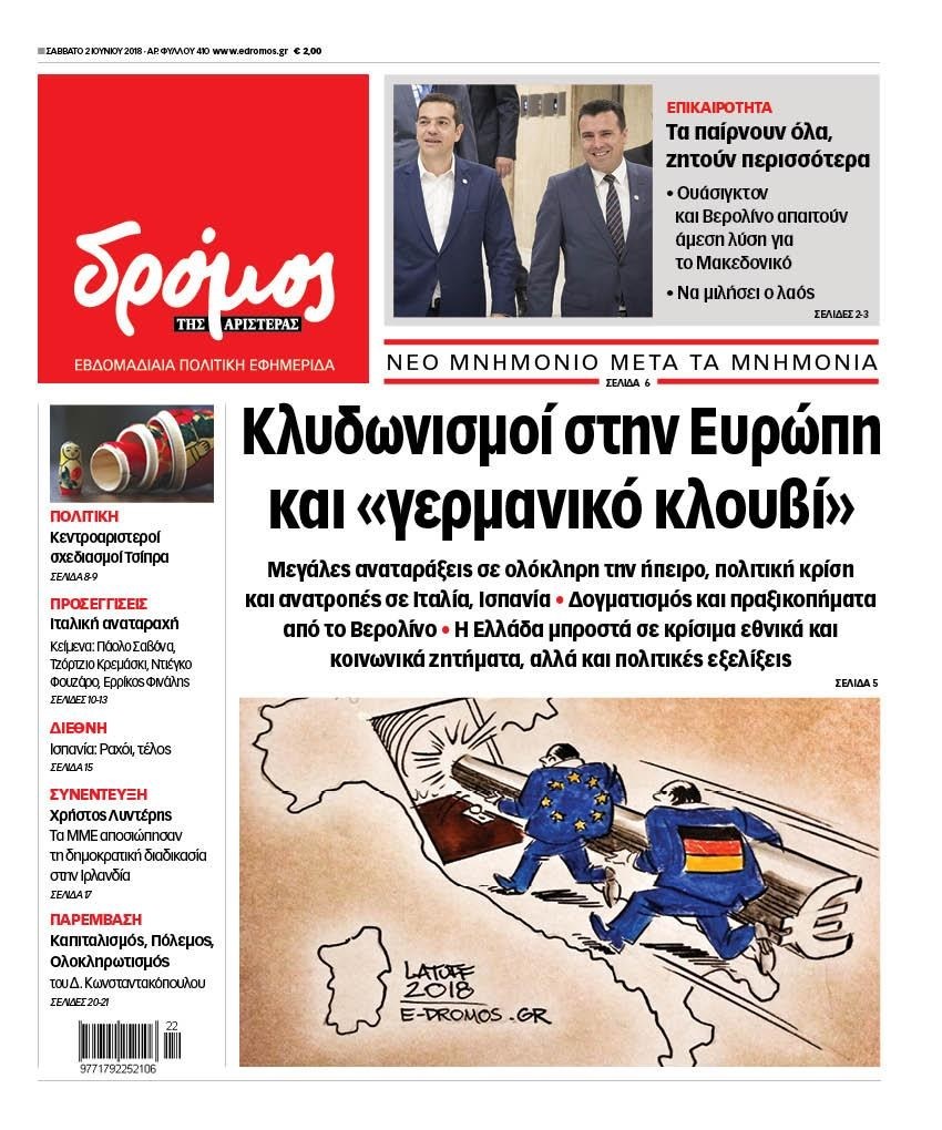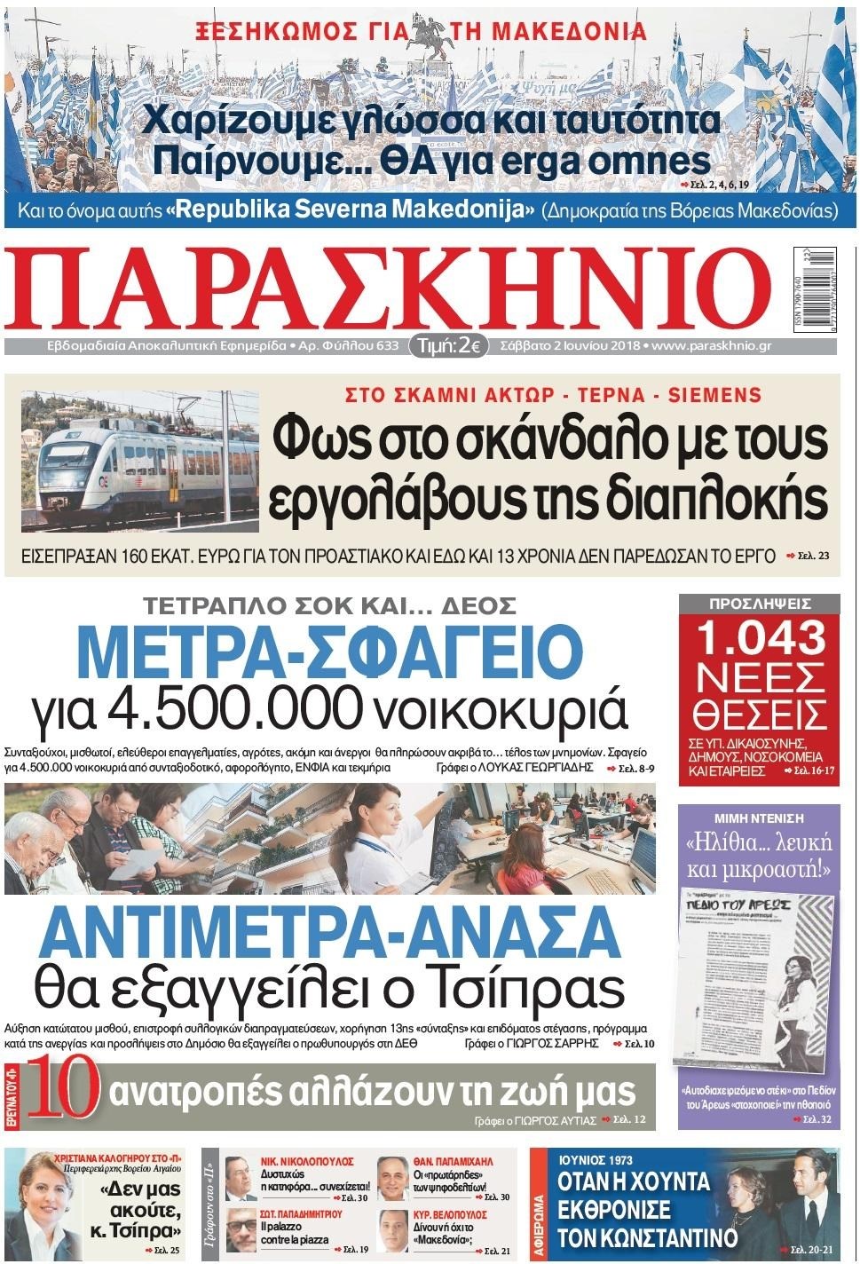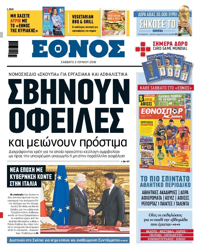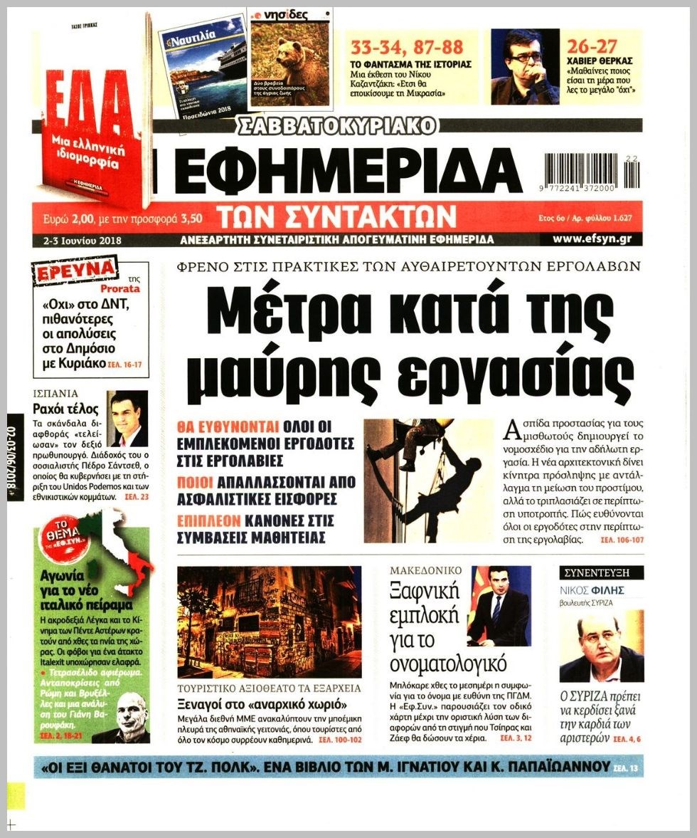 Οι πολιτικές εφημερίδες 2/6/2018 Κώστας Τεό 06:42, Σάββατο 02 Ιουνίου 2018 Media Διαβάστε τα σημερινά πρωτοσέλιδα των πολιτικών εφημερίδων: ΠΟΛΙΤΙΚΕΣ ΕΦΗΜΕΡΙΔΕΣ ΠΡΩΤΟΣΕΛΙΔΑ Μοιράσου το: σχολίασε κι εσύ (0 σχόλια) Ακολουθήστε το enikos.gr στο Google News και μάθετε πρώτοι όλες τις ειδήσεις Δείτε όλες τις τελευταίες ειδήσεις από την Ελλάδα και τον Κόσμο στο enikos.gr Ειδήσεις Ροή Ειδήσεων 32 λεπτά πριν Τσιάρας προς αγρότες: Τα μπλόκα και τα πείσματα δεν ωφελούν – Οι λύσεις περνούν μέσα από τον διάλογο 1 ώρα πριν Αρχεία Έπσταϊν: Οι συγκλονιστικές φωτογραφίες – Ο Μάικλ Τζάκσον, ο Μικ Τζάγκερ και ο Κέβιν Σπέισι ανάμεσα στους διάσημους που απεικονίζονται 3 ώρες πριν Νέες ταυτότητες: Μεγάλη αναμονή για ραντεβού στην Αττική – Τέλος τα ταξίδια εκτός Ελλάδος από τον Αύγουστο για όσους δεν έχουν αλλάξει 2 ώρες πριν Ινδία: Επτά ελέφαντες σκοτώθηκαν κατά τη σύγκρουση επιβατικού τρένου με κοπάδι 3 ώρες πριν Συνελήφθη οδηγός μηχανής που έτρεχε με 161 χλμ στη Συγγρού – Τον έπιασε το ραντάρ της Τροχαίας 4 ώρες πριν Μία νέα «χρυσή» περίοδος αρχίζει για 3 ζώδια από σήμερα – «Μία αναπάντεχη ευκαιρία οδηγεί στην επιτυχία» 5 ώρες πριν Αγχώνεται για το χριστουγεννιάτικο δώρο που πήρε στην πλούσια σύντροφό του – «Φοβάμαι πως θα το βρει φθηνιάρικο, φοράει βραχιόλια Cartier» 2 ώρες πριν Διαιτολόγος αποκαλύπτει 9 πρωινές συνήθειες που «λιώνουν» το κοιλιακό λίπος – «Υποστηρίζουν την υγιεινή απώλεια βάρους» 3 ώρες πριν Οι 7 φράσεις που δεν λένε ποτέ οι συναισθηματικά έξυπνοι άνθρωποι κατά τη διάρκεια ενός καβγά 7 λεπτά πριν Κικίλιας: «Ολοκληρώθηκαν πληρωμές 22,16 εκ. ευρώ για το μεταφορικό ισοδύναμο» 15 λεπτά πριν Πάτρα: Πέθανε 46χρονος έπειτα από λιποθυμικό επεισόδιο στο σπίτι του 23 λεπτά πριν «Μεγάλη Χίμαιρα»: Πότε κάνει πρεμιέρα η σειρά 31 λεπτά πριν Καλλιθέα: Έφοδος του «ελληνικού FBI» σε δύο καταστήματα stripshow – 5 συλλήψεις – Βίντεο 32 λεπτά πριν Τσιάρας προς αγρότες: Τα μπλόκα και τα πείσματα δεν ωφελούν – Οι λύσεις περνούν μέσα από τον διάλογο ENIKOS NETWORK Γήρανση του εγκεφάλου: Νευροεπιστήμονες ανακάλυψαν τη 10λεπτη δραστηριότητα που μπορεί να τη σταματήσει Είστε μόνιμα απρόσεκτοι; 3 σημάδια που δείχνουν ότι μπορεί να είναι σύμπτωμα πάθησης Χειμερινές εκπτώσεις 2026: Πρεμιέρα στις 12 Ιανουαρίου – Πόσο θα διαρκέσουν και τι πρέπει να γνωρίζουν οι καταναλωτές Χρήστος Δήμας: Στα 2,5 εκατ. ευρώ την ημέρα το κόστος από το άνοιγμα των διοδίων από τους αγρότες – Θα αξιώσουν αποζημίωση ... Χαρτογραφώντας το «σημείο χωρίς επιστροφή»: Για πρώτη φορά αποκαλύπτεται με λεπτομέρεια το ακανθώδες όριο της ατμόσφαιρας τ... Η Google καταργεί τη λειτουργία «dark web report» – Πώς θα μπορούν οι χρήστες να διαγράφουν τα δεδομένα τους περισσότερα 12:53 , Σάββατο 20 Δεκεμβρίου 2025 Να μ’ αγαπάς: Το παρελθόν έρχεται στο φως – Καταιγιστικές εξελίξεις στα τελευταία επεισόδια του 2025 Ο Άγγελος αποκαλύπτεται, η Φωτεινή ανησυχεί για τον Λευτέρη και η Ζωή έρχεται αντιμέτωπη με το... 11:41 , Σάββατο 20 Δεκεμβρίου 2025 «Η αγάπη δεν χάνεται ποτέ»: Η μικρού μήκους ταινία κινουμένων σχεδίων που θέτει ερωτήματα για τη ζωή και τον θάνατο Ο θάνατος είναι ένα από τα πιο σκληρά θέματα που καλείται να διαχειριστεί κάποιος στη διάρκεια... 09:30 , Σάββατο 20 Δεκεμβρίου 2025 «Porto Leone: Στη γειτονιά με τα κόκκινα φανάρια» – Ο Χρόνης αποκαλύπτει στην Αλεξάνδρα το μυστικό για το παιδί της Λένας Η μεγάλη δραματική σειρά του Apha «Porto Leone: Στη γειτονιά με τα κόκκινα φανάρια» μας μεταφέ