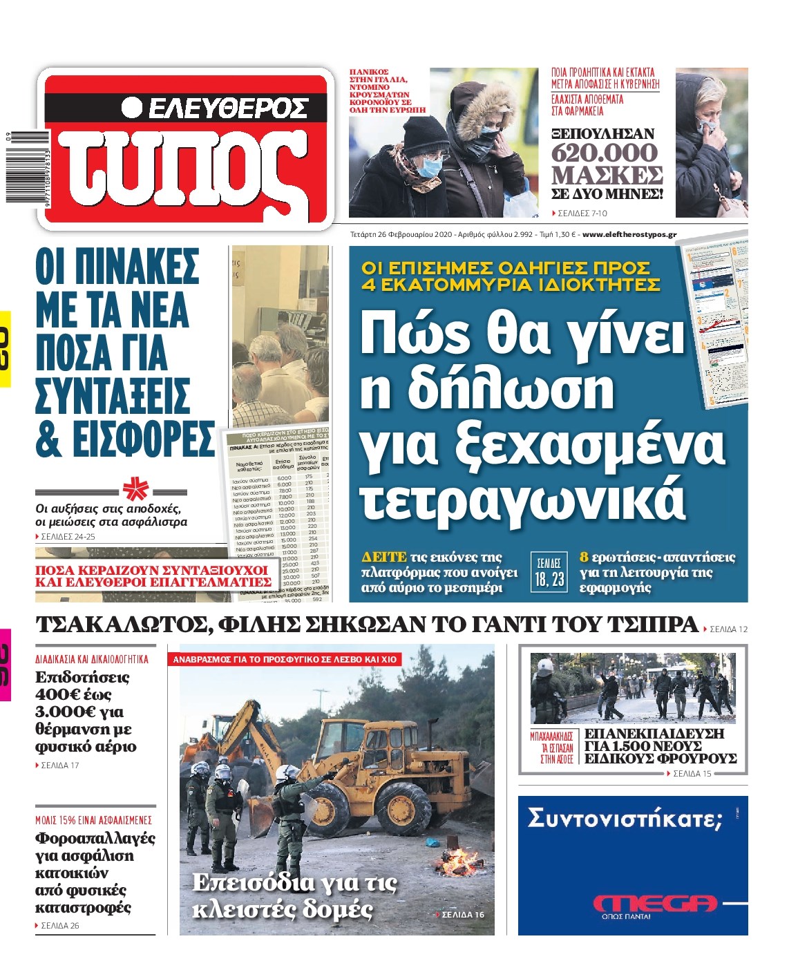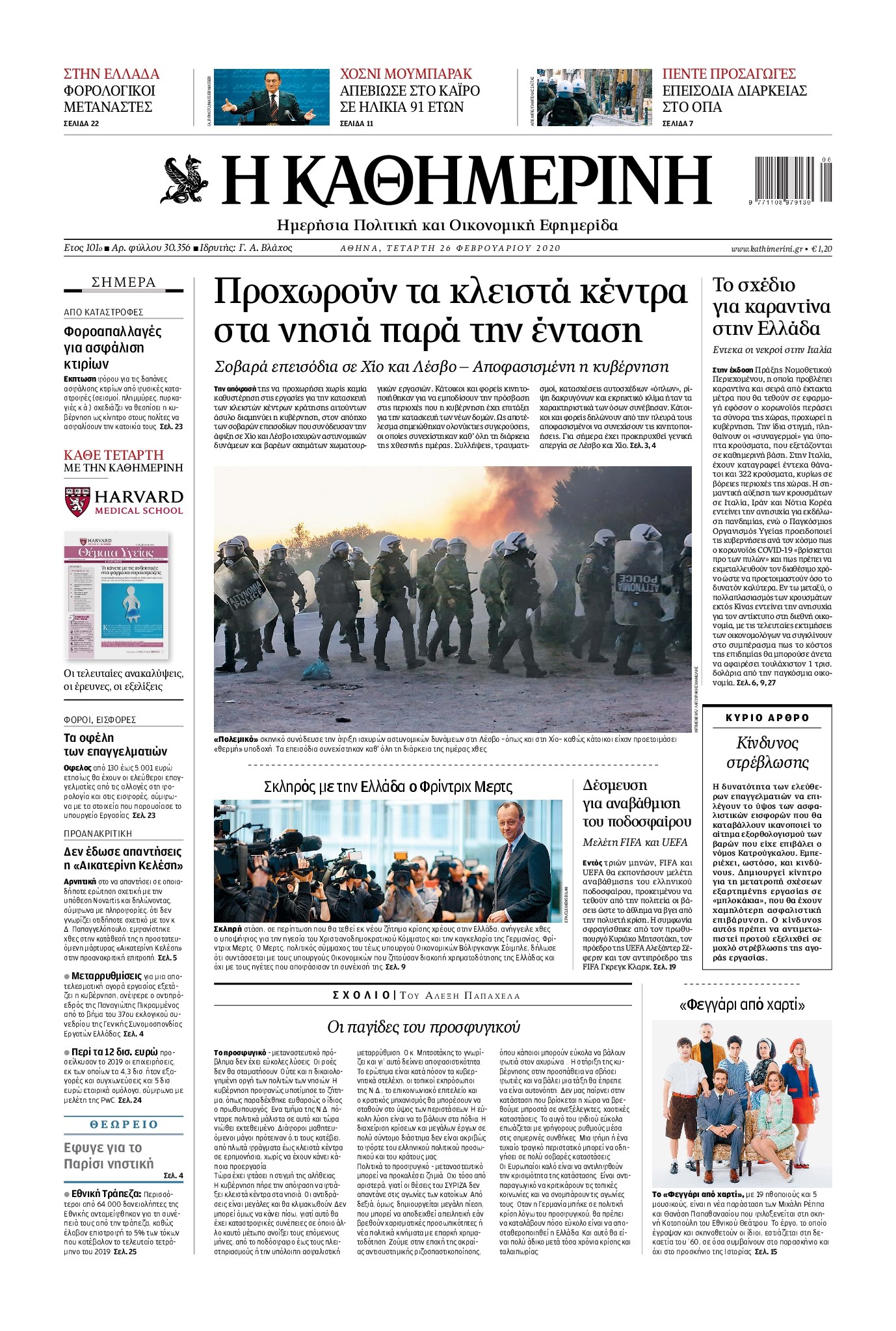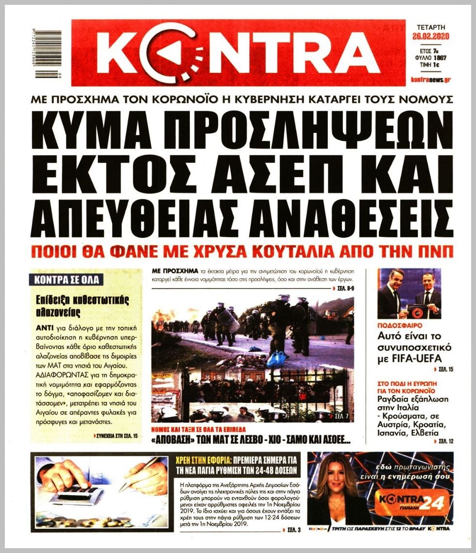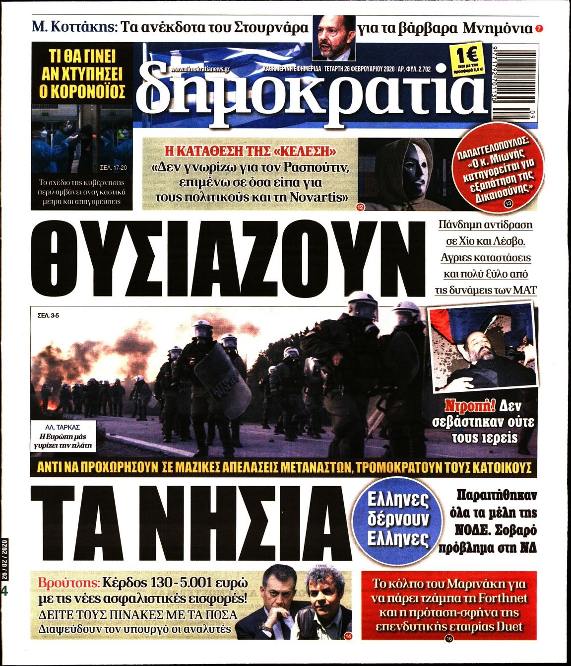 Οι πολιτικές εφημερίδες 26/2/2020 Διονύσης Νίκκας 06:08, Τετάρτη 26 Φεβρουαρίου 2020 Media Διαβάστε τα πρωτοσέλιδα των πολιτικών εφημερίδων… ΠΟΛΙΤΙΚΕΣ ΕΦΗΜΕΡΙΔΕΣ ΠΡΩΤΟΣΕΛΙΔΑ Μοιράσου το: σχολίασε κι εσύ (0 σχόλια) Ακολουθήστε το enikos.gr στο Google News και μάθετε πρώτοι όλες τις ειδήσεις Δείτε όλες τις τελευταίες ειδήσεις από την Ελλάδα και τον Κόσμο στο enikos.gr Ειδήσεις Ροή Ειδήσεων 1 ώρα πριν Γιορτές με μπλόκα για τους αγρότες: Ανοίγουν διόδια και μοιράζουν προϊόντα στους ταξιδιώτες 2 ώρες πριν Τα αρχεία του Έπσταϊν αποκαλύπτουν φωτογραφία του έκπτωτου πρίγκιπα Άντριου – Είναι ξαπλωμένος στην αγκαλιά 5 γυναικών 49 λεπτά πριν Νέες ταυτότητες: Μεγάλη αναμονή για ραντεβού στην Αττική – Τέλος τα ταξίδια εκτός Ελλάδος από τον Αύγουστο για όσους δεν έχουν αλλάξει 2 ώρες πριν Εξαφάνιση 33χρονου γιατρού στην Κρήτη: «Άναψα τα φώτα, τρόμαξε και άρχισε να τρέχει στα χωράφια» – Η τελευταία διαδρομή και η μαρτυρία «κλειδί» 3 ώρες πριν Ο «χάρτης» με τις αυξήσεις και τις φοροελαφρύνσεις του 2026 – Ποιοι και πόσα κερδίζουν 2 ώρες πριν Μία νέα «χρυσή» περίοδος αρχίζει για 3 ζώδια από σήμερα – «Μία αναπάντεχη ευκαιρία οδηγεί στην επιτυχία» 6 ώρες πριν Αυγά: Πόσα μπορείτε να τρώτε την ημέρα με ασφάλεια για μέγιστη πρόσληψη πρωτεΐνης 4 ώρες πριν Αρχαιολόγοι ανακάλυψαν σε χωράφι απεικόνιση 600 ετών ενός Αγίου – Τα στοιχεία που δείχνουν ότι μαρτύρησε 3 ώρες πριν Αγχώνεται για το χριστουγεννιάτικο δώρο που πήρε στην πλούσια σύντροφό του – «Φοβάμαι πως θα το βρει φθηνιάρικο, φοράει βραχιόλια Cartier» 10 λεπτά πριν Βούλα: Συνελήφθη 24χρονος με 69 κιλά ακατέργαστης κάνναβης – Κυκλοφορούσε με κλεμμένο αυτοκίνητο 18 λεπτά πριν «Η αγάπη δεν χάνεται ποτέ»: Η μικρού μήκους ταινία κινουμένων σχεδίων που θέτει ερωτήματα για τη ζωή και τον θάνατο 26 λεπτά πριν Στέφανος Παπαδόπουλος: Η συνέντευξη μετά τη μήνυση στον Γιώργο Μαζωνάκη – «Δεν θέλω να τα βρούμε εξωδικαστικά» 33 λεπτά πριν Τραγωδία στην άσφαλτο στα Χανιά: Νεκρός 37χρονος οδηγός ΙΧ – Τον βρήκαν ώρες μετά το τροχαίο 41 λεπτά πριν Τα Labubu «μετακομίζουν» στο Χόλιγουντ: Η Sony Pictures ετοιμάζει live-action ταινία με τον σκηνοθέτη του «Wonka» ENIKOS NETWORK Είστε μόνιμα απρόσεκτοι; 3 σημάδια που δείχνουν ότι μπορεί να είναι σύμπτωμα πάθησης Πόσα κιλά παίρνουμε πραγματικά τα Χριστούγεννα, σύμφωνα με την επιστήμη – Πώς να το αποτρέψουμε; e-ΕΦΚΑ και ΔΥΠΑ: Έρχονται νέες πληρωμές έως τις 24 Δεκεμβρίου – Ποιοι πάνε ταμείο Επίδομα παιδιού: Τι αλλάζει από το 2026 – Το όφελος από τις φορολογικές ελαφρύνσεις Χαρτογραφώντας το «σημείο χωρίς επιστροφή»: Για πρώτη φορά αποκαλύπτεται με λεπτομέρεια το ακανθώδες όριο της ατμόσφαιρας τ... Η Google καταργεί τη λειτουργία «dark web report» – Πώς θα μπορούν οι χρήστες να διαγράφουν τα δεδομένα τους περισσότερα 11:41 , Σάββατο 20 Δεκεμβρίου 2025 «Η αγάπη δεν χάνεται ποτέ»: Η μικρού μήκους ταινία κινουμένων σχεδίων που θέτει ερωτήματα για τη ζωή και τον θάνατο Ο θάνατος είναι ένα από τα πιο σκληρά θέματα που καλείται να διαχειριστεί κάποιος στη διάρκεια... 09:30 , Σάββατο 20 Δεκεμβρίου 2025 «Porto Leone: Στη γειτονιά με τα κόκκινα φανάρια» – Ο Χρόνης αποκαλύπτει στην Αλεξάνδρα το μυστικό για το παιδί της Λένας Η μεγάλη δραματική σειρά του Apha «Porto Leone: Στη γειτονιά με τα κόκκινα φανάρια» μας μεταφέ... 08:14 , Σάββατο 20 Δεκεμβρίου 2025 Τρομεροί γονείς: Η Μαρία Καβογιάννη εισβάλλει στο σπίτι της οικογένειας Στεφανίδη Όσα θα δούμε στο νέο διπλό επεισόδιο της σειράς «Τρομερο