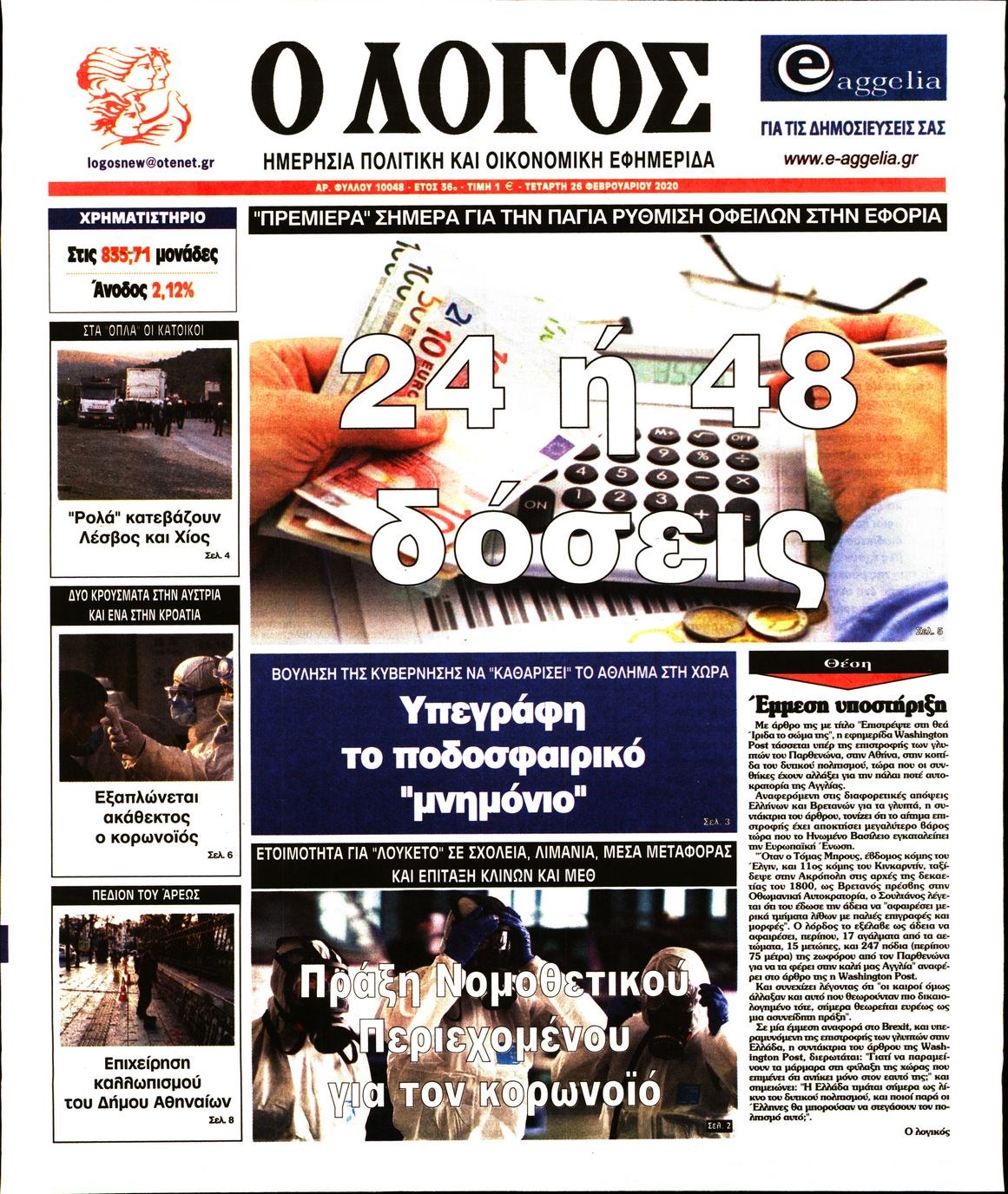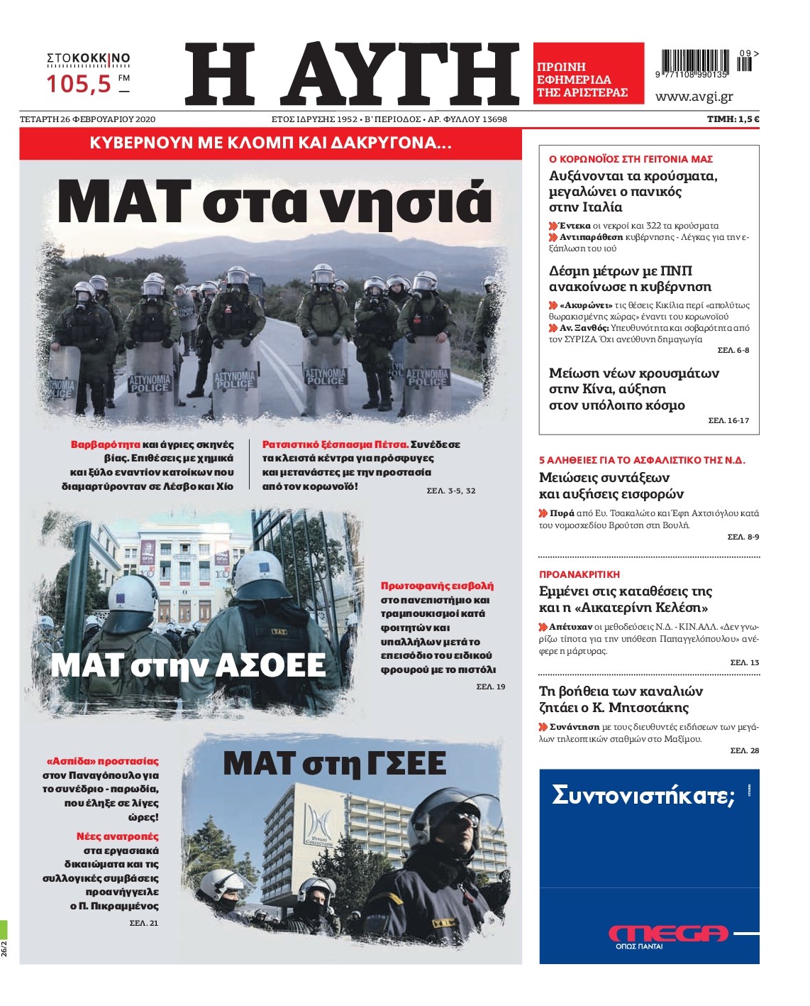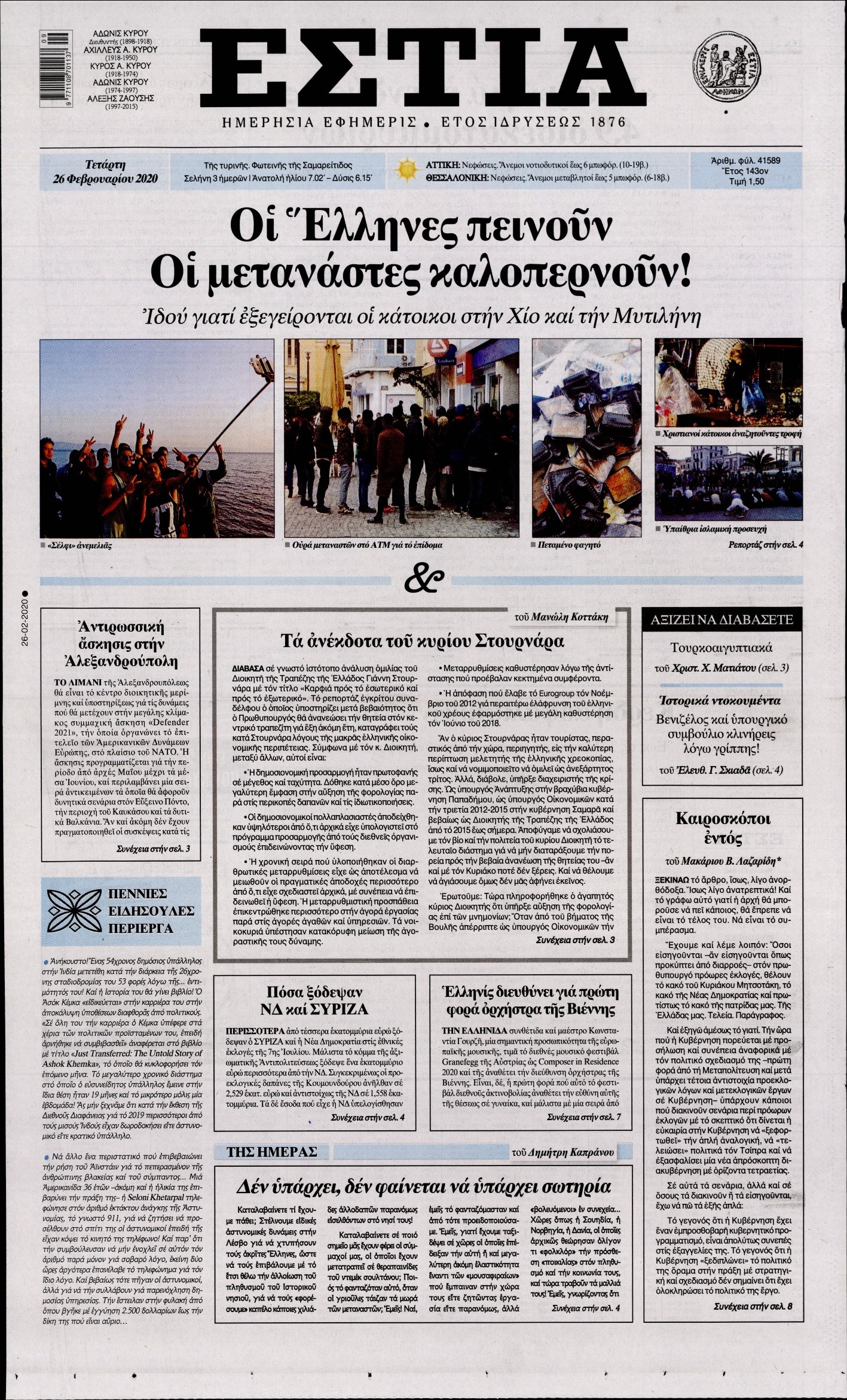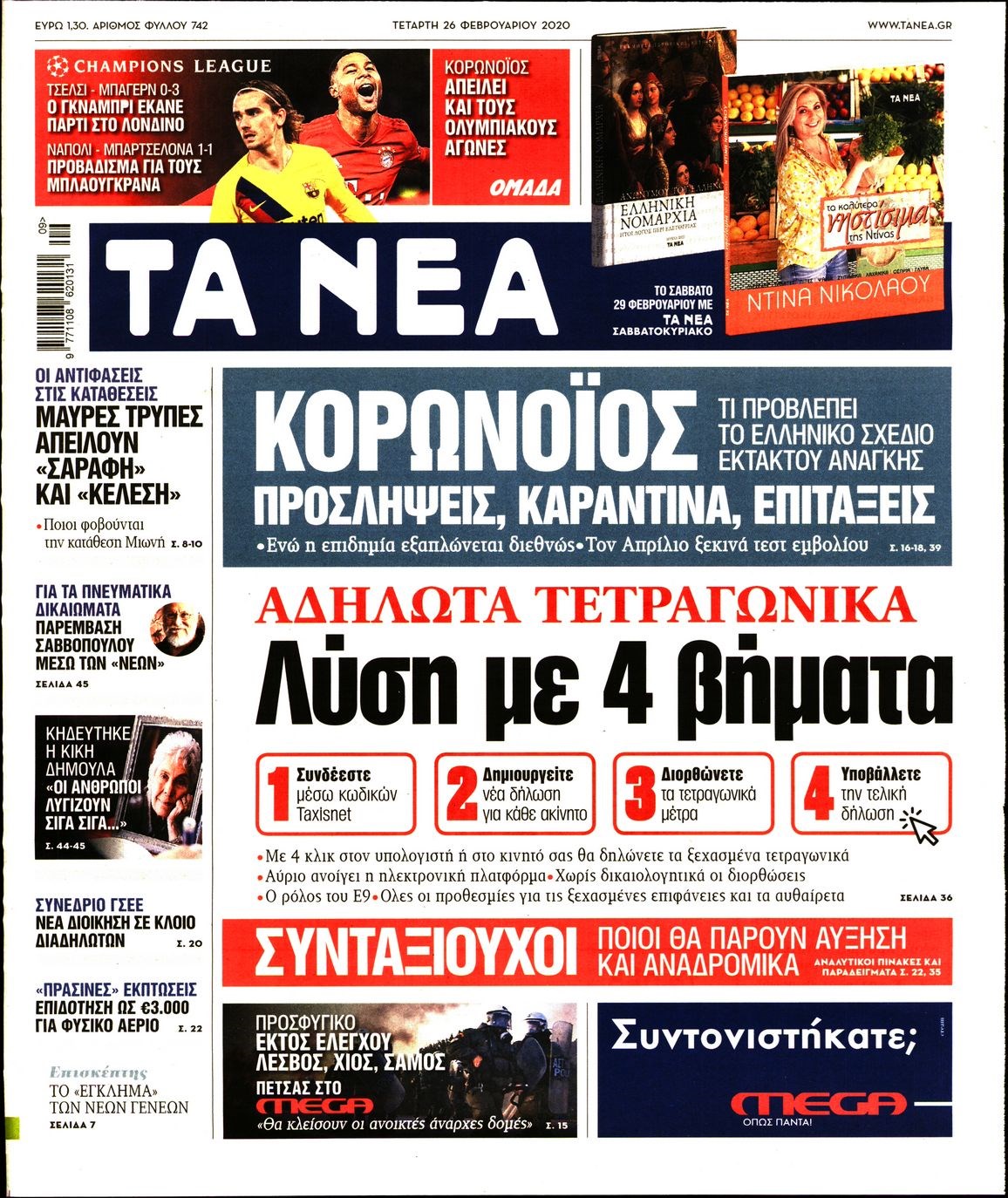 Οι πολιτικές εφημερίδες 26/2/2020 Διονύσης Νίκκας 06:08, Τετάρτη 26 Φεβρουαρίου 2020 Media Διαβάστε τα πρωτοσέλιδα των πολιτικών εφημερίδων… ΠΟΛΙΤΙΚΕΣ ΕΦΗΜΕΡΙΔΕΣ ΠΡΩΤΟΣΕΛΙΔΑ Μοιράσου το: σχολίασε κι εσύ (0 σχόλια) Ακολουθήστε το enikos.gr στο Google News και μάθετε πρώτοι όλες τις ειδήσεις Δείτε όλες τις τελευταίες ειδήσεις από την Ελλάδα και τον Κόσμο στο enikos.gr Ειδήσεις Ροή Ειδήσεων 1 ώρα πριν Γιορτές με μπλόκα για τους αγρότες: Ανοίγουν διόδια και μοιράζουν προϊόντα στους ταξιδιώτες 2 ώρες πριν Τα αρχεία του Έπσταϊν αποκαλύπτουν φωτογραφία του έκπτωτου πρίγκιπα Άντριου – Είναι ξαπλωμένος στην αγκαλιά 5 γυναικών 49 λεπτά πριν Νέες ταυτότητες: Μεγάλη αναμονή για ραντεβού στην Αττική – Τέλος τα ταξίδια εκτός Ελλάδος από τον Αύγουστο για όσους δεν έχουν αλλάξει 2 ώρες πριν Εξαφάνιση 33χρονου γιατρού στην Κρήτη: «Άναψα τα φώτα, τρόμαξε και άρχισε να τρέχει στα χωράφια» – Η τελευταία διαδρομή και η μαρτυρία «κλειδί» 3 ώρες πριν Ο «χάρτης» με τις αυξήσεις και τις φοροελαφρύνσεις του 2026 – Ποιοι και πόσα κερδίζουν 2 ώρες πριν Μία νέα «χρυσή» περίοδος αρχίζει για 3 ζώδια από σήμερα – «Μία αναπάντεχη ευκαιρία οδηγεί στην επιτυχία» 6 ώρες πριν Αυγά: Πόσα μπορείτε να τρώτε την ημέρα με ασφάλεια για μέγιστη πρόσληψη πρωτεΐνης 4 ώρες πριν Αρχαιολόγοι ανακάλυψαν σε χωράφι απεικόνιση 600 ετών ενός Αγίου – Τα στοιχεία που δείχνουν ότι μαρτύρησε 3 ώρες πριν Αγχώνεται για το χριστουγεννιάτικο δώρο που πήρε στην πλούσια σύντροφό του – «Φοβάμαι πως θα το βρει φθηνιάρικο, φοράει βραχιόλια Cartier» 10 λεπτά πριν Βούλα: Συνελήφθη 24χρονος με 69 κιλά ακατέργαστης κάνναβης – Κυκλοφορούσε με κλεμμένο αυτοκίνητο 18 λεπτά πριν «Η αγάπη δεν χάνεται ποτέ»: Η μικρού μήκους ταινία κινουμένων σχεδίων που θέτει ερωτήματα για τη ζωή και τον θάνατο 26 λεπτά πριν Στέφανος Παπαδόπουλος: Η συνέντευξη μετά τη μήνυση στον Γιώργο Μαζωνάκη – «Δεν θέλω να τα βρούμε εξωδικαστικά» 33 λεπτά πριν Τραγωδία στην άσφαλτο στα Χανιά: Νεκρός 37χρονος οδηγός ΙΧ – Τον βρήκαν ώρες μετά το τροχαίο 41 λεπτά πριν Τα Labubu «μετακομίζουν» στο Χόλιγουντ: Η Sony Pictures ετοιμάζει live-action ταινία με τον σκηνοθέτη του «Wonka» ENIKOS NETWORK Είστε μόνιμα απρόσεκτοι; 3 σημάδια που δείχνουν ότι μπορεί να είναι σύμπτωμα πάθησης Πόσα κιλά παίρνουμε πραγματικά τα Χριστούγεννα, σύμφωνα με την επιστήμη – Πώς να το αποτρέψουμε; e-ΕΦΚΑ και ΔΥΠΑ: Έρχονται νέες πληρωμές έως τις 24 Δεκεμβρίου – Ποιοι πάνε ταμείο Επίδομα παιδιού: Τι αλλάζει από το 2026 – Το όφελος από τις φορολογικές ελαφρύνσεις Χαρτογραφώντας το «σημείο χωρίς επιστροφή»: Για πρώτη φορά αποκαλύπτεται με λεπτομέρεια το ακανθώδες όριο της ατμόσφαιρας τ... Η Google καταργεί τη λειτουργία «dark web report» – Πώς θα μπορούν οι χρήστες να διαγράφουν τα δεδομένα τους περισσότερα 11:41 , Σάββατο 20 Δεκεμβρίου 2025 «Η αγάπη δεν χάνεται ποτέ»: Η μικρού μήκους ταινία κινουμένων σχεδίων που θέτει ερωτήματα για τη ζωή και τον θάνατο Ο θάνατος είναι ένα από τα πιο σκληρά θέματα που καλείται να διαχειριστεί κάποιος στη διάρκεια... 09:30 , Σάββατο 20 Δεκεμβρίου 2025 «Porto Leone: Στη γειτονιά με τα κόκκινα φανάρια» – Ο Χρόνης αποκαλύπτει στην Αλεξάνδρα το μυστικό για το παιδί της Λένας Η μεγάλη δραματική σειρά του Apha «Porto Leone: Στη γειτονιά με τα κόκκινα φανάρια» μας μεταφέ... 08:14 , Σάββατο 20 Δεκεμβρίου 2025 Τρομεροί γονείς: Η Μαρία Καβογιάννη εισβάλλει στο σπίτι της οικογένειας Στεφανίδη Όσα θα δούμε στο νέο διπλό επεισόδιο της σειράς «Τρομερο