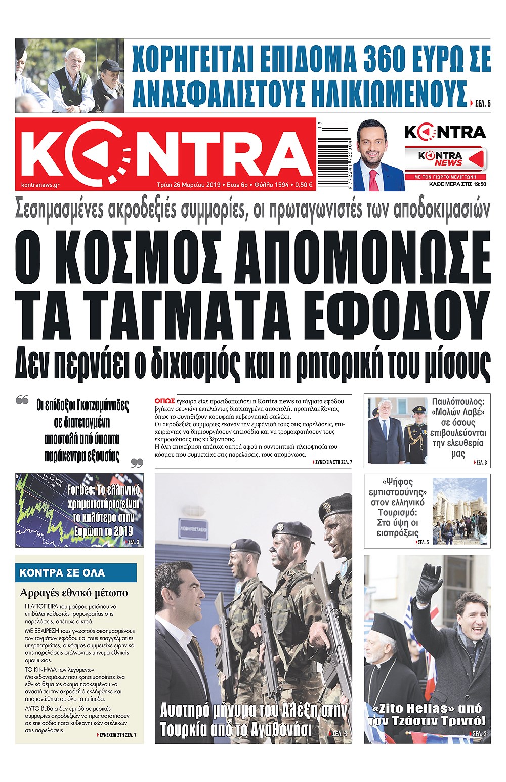 Οι πολιτικές εφημερίδες 26/3/2019 Κώστας Τεό 06:38, Τρίτη 26 Μαρτίου 2019 Media Διαβάστε τα πρωτοσέλιδα των πολιτικών εφημερίδων: ΠΟΛΙΤΙΚΕΣ ΕΦΗΜΕΡΙΔΕΣ ΠΡΩΤΟΣΕΛΙΔΑ Μοιράσου το: σχολίασε κι εσύ (0 σχόλια) Ακολουθήστε το enikos.gr στο Google News και μάθετε πρώτοι όλες τις ειδήσεις Δείτε όλες τις τελευταίες ειδήσεις από την Ελλάδα και τον Κόσμο στο enikos.gr Ειδήσεις Ροή Ειδήσεων 6 ώρες πριν Χριστούγεννα στα μπλόκα: Επιμένουν στις κινητοποιήσεις τους οι αγρότες – Ανοίγουν τα διόδια το Σαββατοκύριακο 7 ώρες πριν Ουκρανία: Η άνευ προηγουμένου επίθεση σε ρωσικό τάνκερ στη Μεσόγειο και το μήνυμα προς στον Πούτιν – Το «μακρύ χέρι» του Κιέβου 6 ώρες πριν Πούτιν: Τα μηνύματα σε Ευρώπη και ΝΑΤΟ από το μαραθώνιο «σόου» του – Η απαίτηση για «σεβασμό» και η ειρήνη «με τους όρους» της Μόσχας 7 ώρες πριν Τραμπ: Δεν αποκλείει την πιθανότητα ενός πολέμου στη Βενεζουέλα – «Ο Μαδούρο ξέρει καλύτερα από τον καθένα τι ακριβώς θέλω» 7 ώρες πριν Συνεχίζει να προκαλεί ο Μίτσκοσκι: «Για μένα το όνομα Μακεδονία είναι ιερό» 6 ώρες πριν Ανακαλύφθηκαν αρχαία χρυσά νομίσματα 2.200 ετών που απεικονίζουν τον θεό Απόλλωνα – Η άγνωστη σύνδεση με τον Φίλιππο Β΄ της Μακεδονίας 7 ώρες πριν Ύπνος: Μια κρυφή κατάσταση του εγκεφάλου πριν από τον ύπνο μπορεί να είναι το “κλειδί” για υψηλή ευφυΐα και δημιουργικότητα 8 ώρες πριν Αριθμολογία: Οι άνθρωποι που έχουν γεννηθεί αυτές τις 4 ημερομηνίες, συχνά παρεξηγούνται – «Η καλοσύνη τους κρύβει τεράστια δύναμη» 9 ώρες πριν Ξεχάστε το καθάρισμα το Σαββατοκύριακο: Ο «κανόνας των 20 λεπτών» που θα σας λύσει τα χέρια 23 λεπτά πριν Μάρκο Ρούμπιο: Ανθρωπιστική κατάπαυση του πυρός στο Σουδάν ζητά ο Αμερικανός υπουργός Εξωτερικών 38 λεπτά πριν Αγγελική Νικολούλη: Τα συλλυπητήρια για την απώλεια της Ειρήνης Μαρινάκη 52 λεπτά πριν Βολιβία: Μαζική διαδηλώσεις εναντίον της κατάργησης των επιδοτήσεων των τιμών των καυσίμων 1 ώρα πριν Φως στο Τούνελ: Έφτασε η ώρα της αλήθειας για την δολοφονία της χήρας του πρώην υπουργού στο Κολωνάκι 1 ώρα πριν Ντόναλντ Τραμπ: Προστέθηκε το όνομά του στην πρόσοψη του Κέντρου Κένεντι – Οργισμένη αντίδραση των συγγενών του JFK ENIKOS NETWORK Το ΕΚΑΒ τιμήθηκε από την Ακαδημία Αθηνών για τα 40 χρόνια προσφοράς του Έχετε πραγματικά μεγάλη καρδιά; 10 χαρακτηριστικά όσων έχουν καλοσύνη Αναστολή μέτρων αναγκαστικής εκτέλεσης για κτηνοτρόφους που πλήττονται από την ευλογιά των αιγοπροβάτων Πλήρης επάρκεια προϊόντων στις λαϊκές της Αττικής, παρά τις αγροτικές κινητοποιήσεις – Τι απαντούν οι πωλητές Χαρτογραφώντας το «σημείο χωρίς επιστροφή»: Για πρώτη φορά αποκαλύπτεται με λεπτομέρεια το ακανθώδες όριο της ατμόσφαιρας τ... Η Google καταργεί τη λειτουργία «dark web report» – Πώς θα μπορούν οι χρήστες να διαγράφουν τα δεδομένα τους περισσότερα 04:20 , Σάββατο 20 Δεκεμβρίου 2025 Αγγελική Νικολούλη: Τα συλλυπητήρια για την απώλεια της Ειρήνης Μαρινάκη Τα συλληπητήρια στον πρόεδρο του Mega, τον Βαγγέλη Μαρινάκη, για την απώλεια της μητέρας του Ε... 02:50 , Σάββατο 20 Δεκεμβρίου 2025 GNTM: Η Ξένια Τσίρκοβα αναδείχθηκε μεγάλη νικήτρια και πήρε τις 50.000 ευρώ – Ποιος βρέθηκε σε απόσταση αναπνοής; Με φαντασμαγορικό τρόπο ολοκληρώθηκε το βράδυ της Παρασκευής ο μεγάλος τελικός του GNTM, μέσα ... 22:42 , Παρασκευή 19 Δεκεμβρίου 2025 Γιώργος Γιαννόπουλος για “Το σόι σου”: “Είναι ευτυχία και ευλογία αυτή η σειρά” «Είναι ευτυχία και ευλογία η συγκυρία αυτής της σειράς», θα πει ο Γιώργος Γιαννόπουλος -ο 