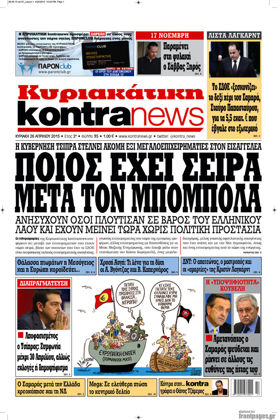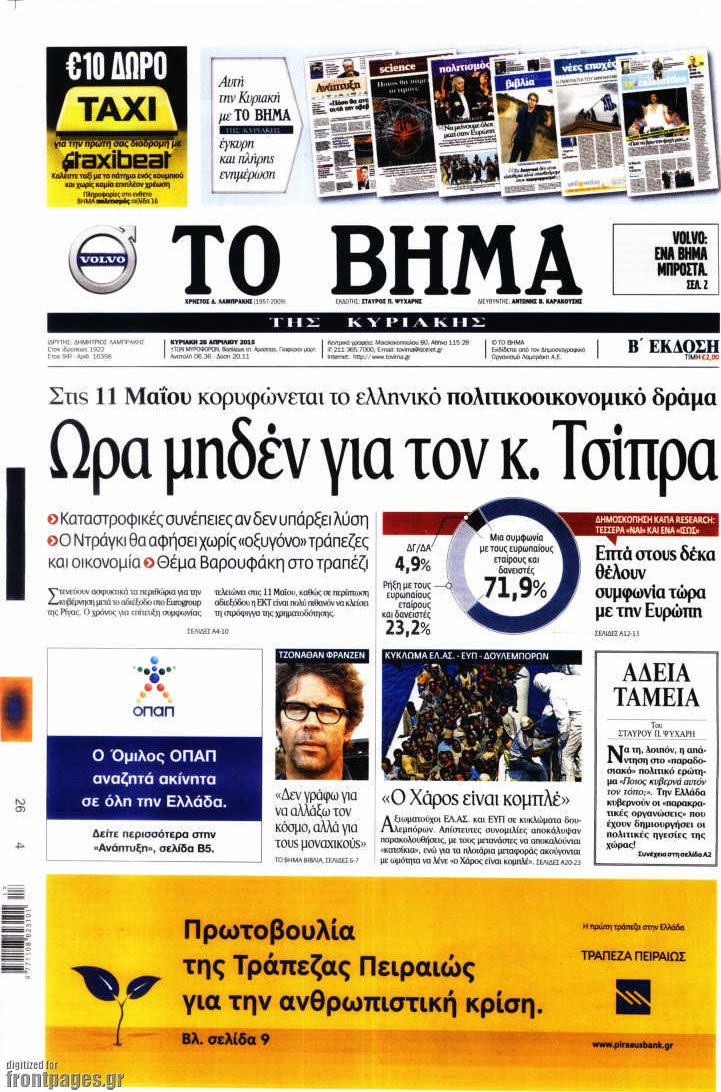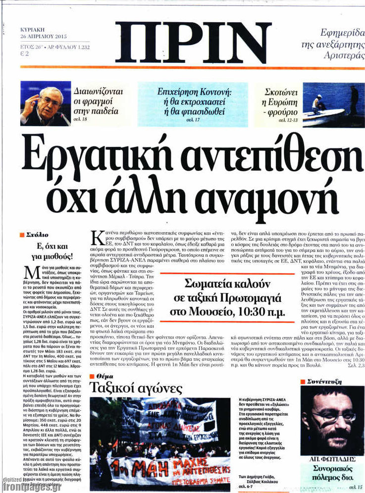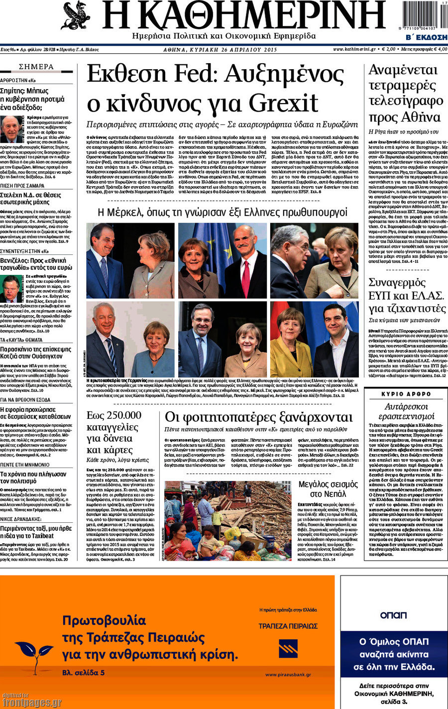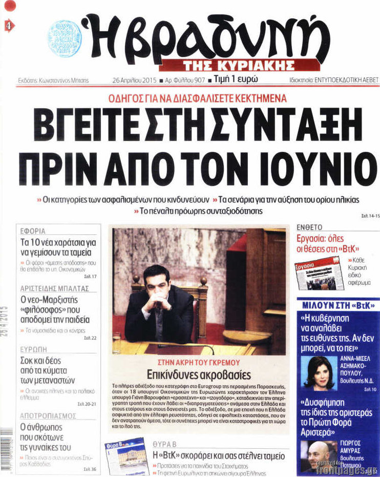 Οι πολιτικές εφημερίδες 26/4/2015 Enikos Newsroom 07:49, Κυριακή 26 Απριλίου 2015 Media Διαβάστε τα σημερινά πρωτοσέλιδα των πολιτικών εφημερίδων… ΟΙ ΠΟΛΙΤΙΚΕΣ ΕΦΗΜΕΡΙΔΕΣ ΠΟΛΙΤΙΚΕΣ ΕΦΗΜΕΡΙΔΕΣ Μοιράσου το: σχολίασε κι εσύ (0 σχόλια) Ακολουθήστε το enikos.gr στο Google News και μάθετε πρώτοι όλες τις ειδήσεις Δείτε όλες τις τελευταίες ειδήσεις από την Ελλάδα και τον Κόσμο στο enikos.gr Ειδήσεις Ροή Ειδήσεων 8 ώρες πριν Μητσοτάκης: Αναγκαία η μεταρρύθμιση του πρωτογενούς τομέα – Τα 6 νέα μέτρα για το στεγαστικό και οι αναφορές σε «Ιθάκη» και «πολιτικούς του καναπέ» 7 ώρες πριν Δάνεια σε ελβετικό φράγκο: Τα βασικά σημεία της ρύθμισης – ανάσας για 40.000 δανειολήπτες – Αναλυτικός οδηγός με ερωτήσεις και απαντήσεις 7 ώρες πριν Κυψέλη: Εξιτήριο πήρε η 14χρονη μαθήτρια που μαχαιρώθηκε από την 16χρονη σε σχολείο – «Θέλω να βοηθήσω το παιδί, έχει μπλέξει με κακές παρέες» 7 ώρες πριν Τραμπ: Γιατί κατέθεσε τώρα την αγωγή κατά του BBC – Πώς η κίνησή του εξυπηρετεί το νέο δόγμα του για «αντίσταση» στην Ευρώπη, υπέρ των συντηρητικών 8 ώρες πριν ΟΠΕΚΕΠΕ – Παράνομες επιδοτήσεις: Ελεύθεροι με περιοριστικούς όρους και οι 7 κατηγορούμενοι που απολογήθηκαν σήμερα 7 ώρες πριν Ανακαλύφθηκε βυθισμένη πέτρινη κατασκευή ανοιχτά της Κριμαίας – Αποτελεί μέρος αρχαίας ελληνικής αποικίας 8 ώρες πριν Ύπνος: Αυτό μπορεί να είναι το χειρότερο λάθος για το βιολογικό ρολόι σας, σύμφωνα με ειδικό 9 ώρες πριν Αριθμολογία: Οι άνθρωποι που έχουν γεννηθεί αυτές τις 3 ημερομηνίες, προσελκύουν μεγάλη τύχη πριν από το τέλος του 2025 11 ώρες πριν Οι 7 συμπεριφορές που μαρτυρούν ότι ένας άνδρας επενδύει μακροπρόθεσμα σε μια σχέση 3 λεπτά πριν Οι πολιτικές εφημερίδες 17/12/2025 11 λεπτά πριν Τα ζώδια σήμερα, Τετάρτη 17 Δεκεμβρίου: Κριοί, η αυτοπεποίθησή σας ενισχύεται 19 λεπτά πριν Εφημερεύοντα φαρμακεία σε Αθήνα και Θεσσαλονίκη (17/12) 24 λεπτά πριν Κόστα Ρίκα: Το Κογκρέσο απέρριψε το αίτημα για άρση της ασυλίας του προέδρου Τσάβες 32 λεπτά πριν Κολομβία: Νεκροί τέσσερις αστυνομικοί σε βομβιστικές επιθέσεις ανταρτών ENIKOS NETWORK Αίτημα ΙΣΑ για την εξαίρεση των προσωπικών γιατρών από τις κατ’ οίκον επισκέψεις Η σκανδιναβική μέθοδος στον ύπνο που μπορεί να σώσει έναν γάμο Πιερρακάκης: Ο προϋπολογισμός συμβάλλει ουσιαστικά στην ενίσχυση της αγοραστικής δύναμης της πλειονότητας των εργαζομένων e-ΕΦΚΑ: Παρατείνεται η προθεσμία για την υποβολή ΑΠΔ – Ποιους αφορά Σύγχρονος Νοστράδαμος: Προειδοποιεί για «μεγάλο γεγονός» τους επόμενους μήνες που θα συγκλονίσει τη Βρετανία και τον κόσμο Τεστ παρατηρητικότητας: Μπορείτε να βρείτε τις 3 διαφορές στις εικόνες με έναν πιγκουίνο σε 14 δευτερόλεπτα περισσότερα 05:38 , Τετάρτη 17 Δεκεμβρίου 2025 Οι πολιτικές εφημερίδες 17/12/2025 Διαβάστε τα πρωτοσέλιδα από τις πολιτικές εφημερίδες, σήμερα 17/12/2025. 20:06 , Τρίτη 16 Δεκεμβρίου 2025 Ο ΣΚΑΙ καταγγέλλει τον ΕΚΚΟΜΕΔ Επιστολή με την οποία καταγράφει την έντονη διαμαρτυρία του προς τον διευθύνοντα σύμβουλο του... 17:40 , Τρίτη 16 Δεκεμβρίου 2025 Eurovision: Στις 4 Ιανουαρίου αποκαλύπτονται τα 28 τραγούδια του ελληνικού τελικού Η αγωνία τελειώνει, η γιορτή της Eurovision αρχίζει στην ΕΡΤ από τις πρώτες ημέρες της νέας χρ... 17:09 , Τρίτη 16 Δεκεμβρίου 2025 Alter Ego Media: Βαθύτατη θλίψη και ειλικρινή συλλυπητήρια για την απώλεια της Ειρήνης Μαρινάκη Τη βαθύτατη θλίψη και τα ειλικρινή συλλυπητήριά της εκφράζει η Alter Ego Media για τον θάνατο ... ΤΕΛΕΥΤΑΙΕΣ ΕΙΔΗΣΕΙΣ 3 λεπτά πριν Οι πολιτικές εφημερίδες 17/12/2025 11