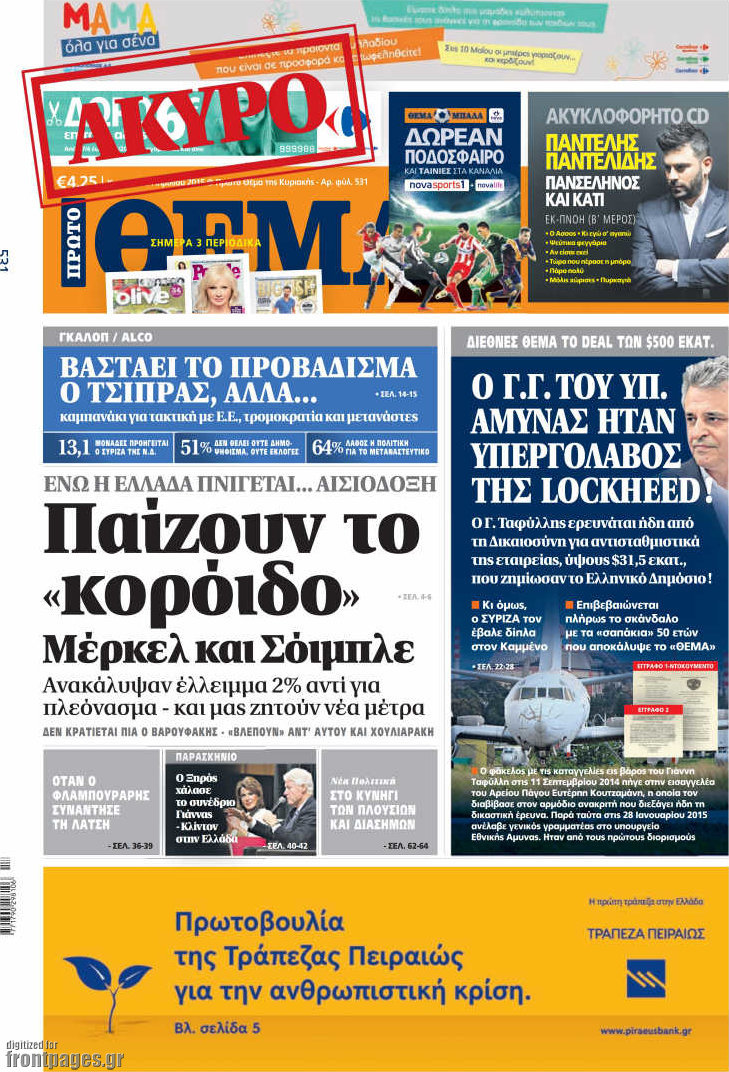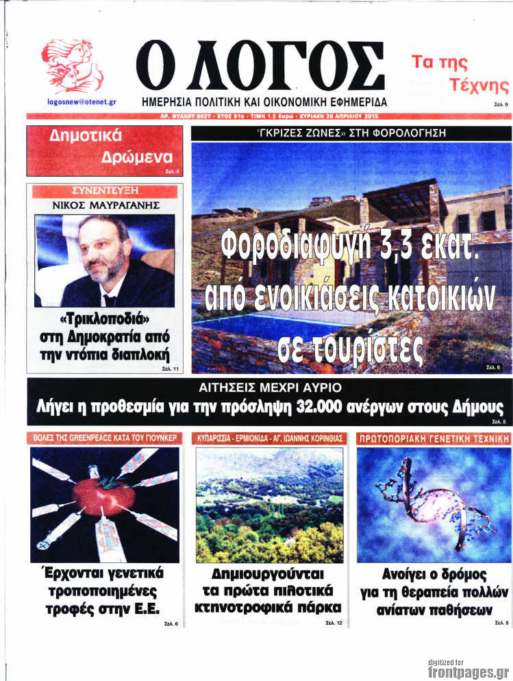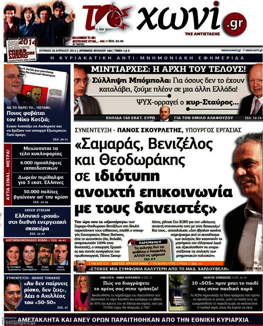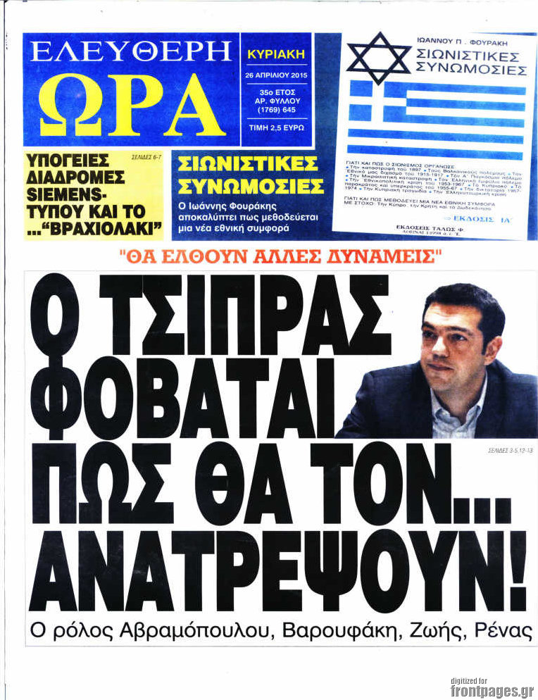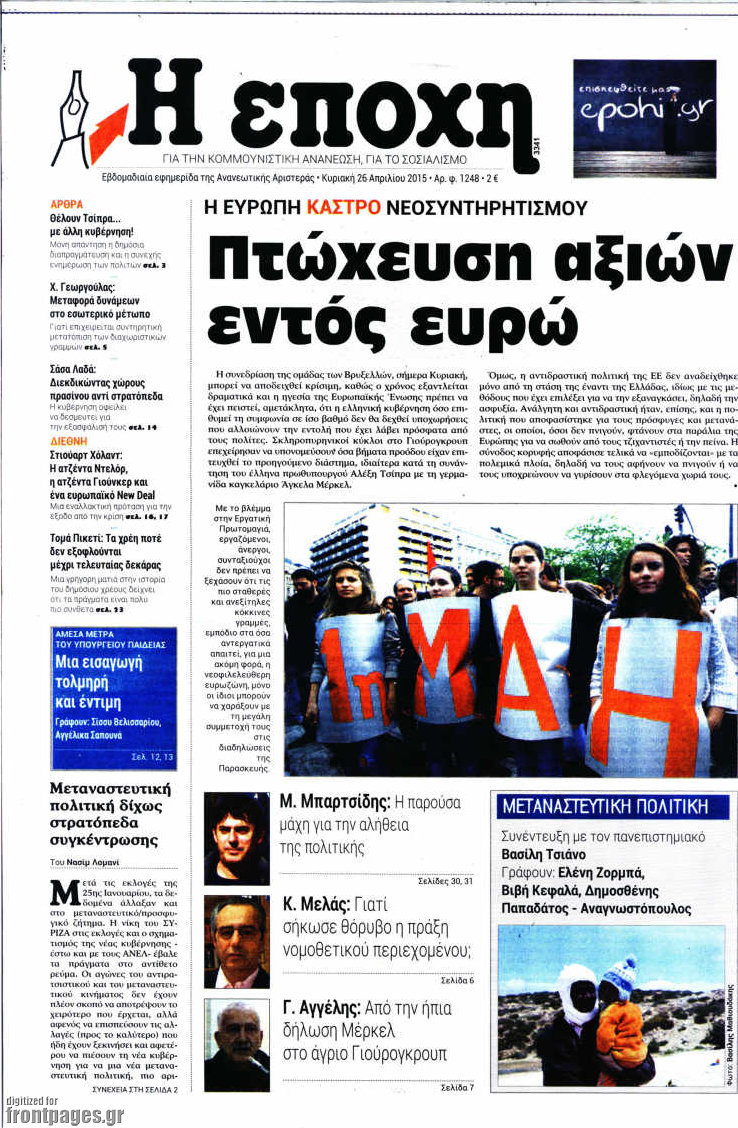 Οι πολιτικές εφημερίδες 26/4/2015 Enikos Newsroom 07:49, Κυριακή 26 Απριλίου 2015 Media Διαβάστε τα σημερινά πρωτοσέλιδα των πολιτικών εφημερίδων… ΟΙ ΠΟΛΙΤΙΚΕΣ ΕΦΗΜΕΡΙΔΕΣ ΠΟΛΙΤΙΚΕΣ ΕΦΗΜΕΡΙΔΕΣ Μοιράσου το: σχολίασε κι εσύ (0 σχόλια) Ακολουθήστε το enikos.gr στο Google News και μάθετε πρώτοι όλες τις ειδήσεις Δείτε όλες τις τελευταίες ειδήσεις από την Ελλάδα και τον Κόσμο στο enikos.gr Ειδήσεις Ροή Ειδήσεων 8 ώρες πριν Μητσοτάκης: Αναγκαία η μεταρρύθμιση του πρωτογενούς τομέα – Τα 6 νέα μέτρα για το στεγαστικό και οι αναφορές σε «Ιθάκη» και «πολιτικούς του καναπέ» 7 ώρες πριν Δάνεια σε ελβετικό φράγκο: Τα βασικά σημεία της ρύθμισης – ανάσας για 40.000 δανειολήπτες – Αναλυτικός οδηγός με ερωτήσεις και απαντήσεις 7 ώρες πριν Κυψέλη: Εξιτήριο πήρε η 14χρονη μαθήτρια που μαχαιρώθηκε από την 16χρονη σε σχολείο – «Θέλω να βοηθήσω το παιδί, έχει μπλέξει με κακές παρέες» 7 ώρες πριν Τραμπ: Γιατί κατέθεσε τώρα την αγωγή κατά του BBC – Πώς η κίνησή του εξυπηρετεί το νέο δόγμα του για «αντίσταση» στην Ευρώπη, υπέρ των συντηρητικών 8 ώρες πριν ΟΠΕΚΕΠΕ – Παράνομες επιδοτήσεις: Ελεύθεροι με περιοριστικούς όρους και οι 7 κατηγορούμενοι που απολογήθηκαν σήμερα 7 ώρες πριν Ανακαλύφθηκε βυθισμένη πέτρινη κατασκευή ανοιχτά της Κριμαίας – Αποτελεί μέρος αρχαίας ελληνικής αποικίας 8 ώρες πριν Ύπνος: Αυτό μπορεί να είναι το χειρότερο λάθος για το βιολογικό ρολόι σας, σύμφωνα με ειδικό 9 ώρες πριν Αριθμολογία: Οι άνθρωποι που έχουν γεννηθεί αυτές τις 3 ημερομηνίες, προσελκύουν μεγάλη τύχη πριν από το τέλος του 2025 11 ώρες πριν Οι 7 συμπεριφορές που μαρτυρούν ότι ένας άνδρας επενδύει μακροπρόθεσμα σε μια σχέση 3 λεπτά πριν Οι πολιτικές εφημερίδες 17/12/2025 11 λεπτά πριν Τα ζώδια σήμερα, Τετάρτη 17 Δεκεμβρίου: Κριοί, η αυτοπεποίθησή σας ενισχύεται 19 λεπτά πριν Εφημερεύοντα φαρμακεία σε Αθήνα και Θεσσαλονίκη (17/12) 24 λεπτά πριν Κόστα Ρίκα: Το Κογκρέσο απέρριψε το αίτημα για άρση της ασυλίας του προέδρου Τσάβες 32 λεπτά πριν Κολομβία: Νεκροί τέσσερις αστυνομικοί σε βομβιστικές επιθέσεις ανταρτών ENIKOS NETWORK Αίτημα ΙΣΑ για την εξαίρεση των προσωπικών γιατρών από τις κατ’ οίκον επισκέψεις Η σκανδιναβική μέθοδος στον ύπνο που μπορεί να σώσει έναν γάμο Πιερρακάκης: Ο προϋπολογισμός συμβάλλει ουσιαστικά στην ενίσχυση της αγοραστικής δύναμης της πλειονότητας των εργαζομένων e-ΕΦΚΑ: Παρατείνεται η προθεσμία για την υποβολή ΑΠΔ – Ποιους αφορά Σύγχρονος Νοστράδαμος: Προειδοποιεί για «μεγάλο γεγονός» τους επόμενους μήνες που θα συγκλονίσει τη Βρετανία και τον κόσμο Τεστ παρατηρητικότητας: Μπορείτε να βρείτε τις 3 διαφορές στις εικόνες με έναν πιγκουίνο σε 14 δευτερόλεπτα περισσότερα 05:38 , Τετάρτη 17 Δεκεμβρίου 2025 Οι πολιτικές εφημερίδες 17/12/2025 Διαβάστε τα πρωτοσέλιδα από τις πολιτικές εφημερίδες, σήμερα 17/12/2025. 20:06 , Τρίτη 16 Δεκεμβρίου 2025 Ο ΣΚΑΙ καταγγέλλει τον ΕΚΚΟΜΕΔ Επιστολή με την οποία καταγράφει την έντονη διαμαρτυρία του προς τον διευθύνοντα σύμβουλο του... 17:40 , Τρίτη 16 Δεκεμβρίου 2025 Eurovision: Στις 4 Ιανουαρίου αποκαλύπτονται τα 28 τραγούδια του ελληνικού τελικού Η αγωνία τελειώνει, η γιορτή της Eurovision αρχίζει στην ΕΡΤ από τις πρώτες ημέρες της νέας χρ... 17:09 , Τρίτη 16 Δεκεμβρίου 2025 Alter Ego Media: Βαθύτατη θλίψη και ειλικρινή συλλυπητήρια για την απώλεια της Ειρήνης Μαρινάκη Τη βαθύτατη θλίψη και τα ειλικρινή συλλυπητήριά της εκφράζει η Alter Ego Media για τον θάνατο ... ΤΕΛΕΥΤΑΙΕΣ ΕΙΔΗΣΕΙΣ 3 λεπτά πριν Οι πολιτικές εφημερίδες 17/12/2025 11