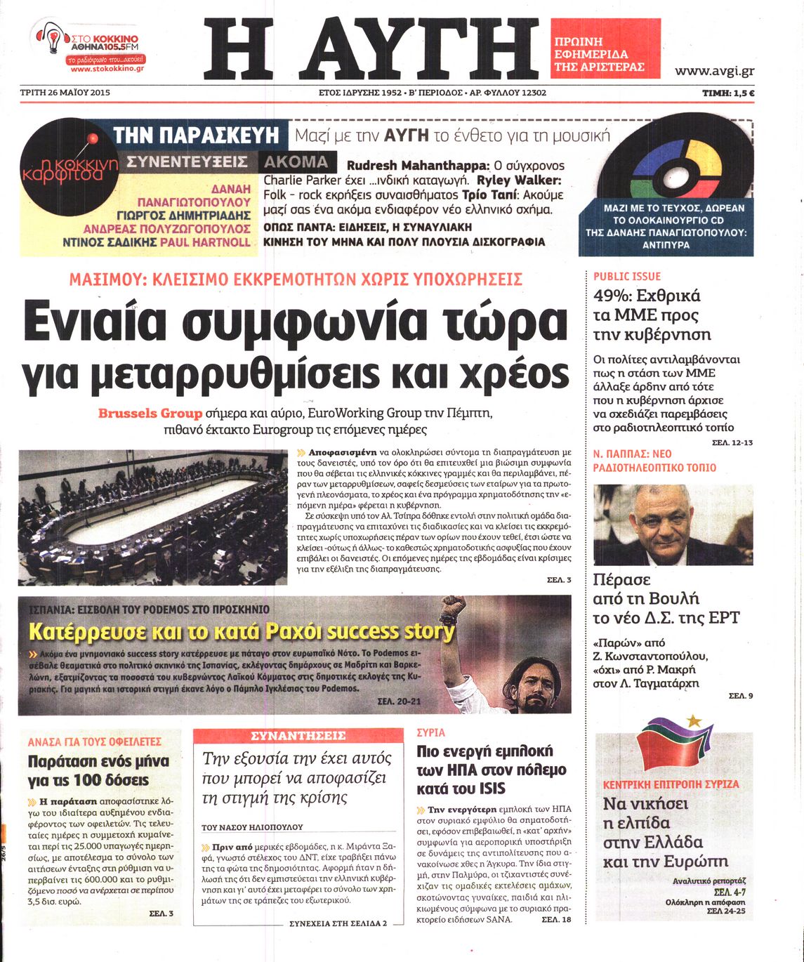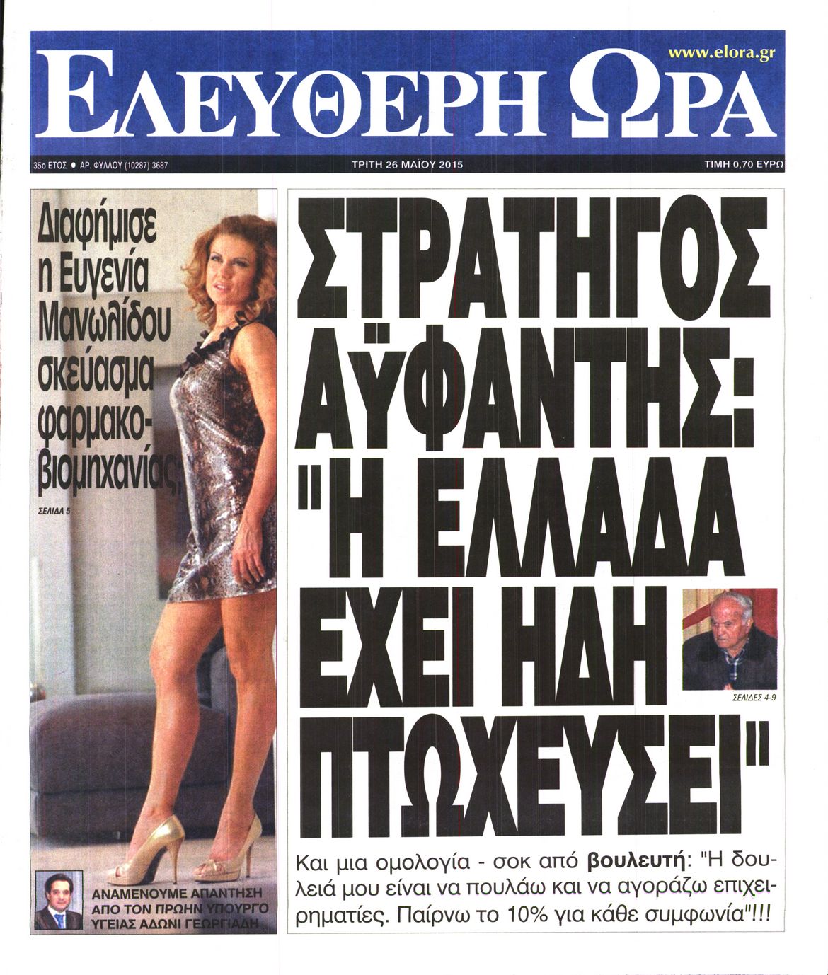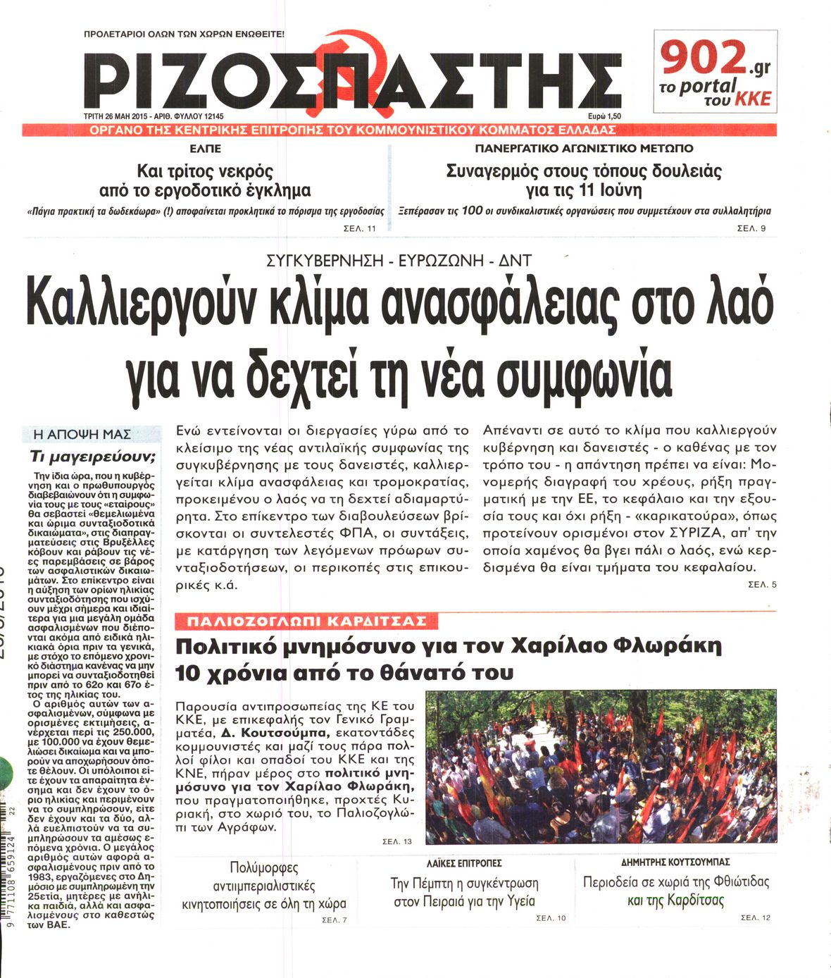 Οι πολιτικές εφημερίδες 26/5/2015 Enikos Newsroom 06:54, Τρίτη 26 Μαΐου 2015 Media Διαβάστε τα σημερινά πρωτοσέλιδα των πολιτικών εφημερίδων: ΠΟΛΙΤΙΚΕΣ ΕΦΗΜΕΡΙΔΕΣ ΠΡΩΤΟΣΕΛΙΔΑ Μοιράσου το: σχολίασε κι εσύ (0 σχόλια) Ακολουθήστε το enikos.gr στο Google News και μάθετε πρώτοι όλες τις ειδήσεις Δείτε όλες τις τελευταίες ειδήσεις από την Ελλάδα και τον Κόσμο στο enikos.gr Ειδήσεις Ροή Ειδήσεων 2 ώρες πριν Μπλόκα: Οι αγρότες σηκώνουν τις μπάρες σε διόδια για τους εκδρομείς των Χριστουγέννων και μοιράζουν προϊόντα – Βίντεο 2 ώρες πριν Τσιάρας προς αγρότες: Τα μπλόκα και τα πείσματα δεν ωφελούν – Οι λύσεις περνούν μέσα από τον διάλογο 3 ώρες πριν Αρχεία Έπσταϊν: Οι συγκλονιστικές φωτογραφίες – Ο Μάικλ Τζάκσον, ο Μικ Τζάγκερ και ο Κέβιν Σπέισι ανάμεσα στους διάσημους που απεικονίζονται 54 λεπτά πριν Μαθητές διακινούσαν κοκαΐνη και χασίς σε σχολείο της Αττικής – 12 συλλήψεις 59 λεπτά πριν Βέλγιο: Άγνωστοι έριξαν κόκκινη μπογιά στο προξενείο της Πολωνίας στις Βρυξέλλες 5 ώρες πριν Μία νέα «χρυσή» περίοδος αρχίζει για 3 ζώδια από σήμερα – «Μία αναπάντεχη ευκαιρία οδηγεί στην επιτυχία» 3 ώρες πριν Διαιτολόγος αποκαλύπτει 9 πρωινές συνήθειες που «λιώνουν» το κοιλιακό λίπος – «Υποστηρίζουν την υγιεινή απώλεια βάρους» 4 ώρες πριν Οι 7 φράσεις που δεν λένε ποτέ οι συναισθηματικά έξυπνοι άνθρωποι κατά τη διάρκεια ενός καβγά 6 ώρες πριν Enerwave: Το νέο «ρεύμα» στη λιανική ενέργειας που αλλάζει την εμπειρία του καταναλωτή 2 λεπτά πριν Μαρινάκης στον Realfm 97,8: Η κυβέρνηση σέβεται κάθε λογική διεκδίκηση των αγροτών, αλλά και το αίτημα των πολιτών να μην ταλαιπωρούνται 9 λεπτά πριν O Πάντερ MVP της 17ης αγωνιστικής στην Euroleague 17 λεπτά πριν Πέθανε η τραγουδίστρια Κλαούντια Ντελμέρ 25 λεπτά πριν Μία ανεκμετάλλευτη πηγή θα μπορούσε να προσφέρει ανεξάντλητη ενέργεια – Οι επιστήμονες ίσως γνωρίζουν πώς να την ξεκλειδώσουν 33 λεπτά πριν Θεσσαλονίκη: Ανήλικος που είχε εξαφανιστεί βρέθηκε στο σπίτι Τούρκων μετά από αστυνομική επιχείρηση ENIKOS NETWORK Η αποχή από την αναπαραγωγή παρατείνει τη ζωή στα ζώα, σύμφωνα με μελέτη – Τι ισχύει για τους ανθρώπους; Σημαντικές επαφές στις ΗΠΑ είχε ο υπουργός Υγείας Άδωνις Γεωργιάδης Ευλογιά αιγοπροβάτων: Παρατεταμένη επιζωοτία, αυστηρά μέτρα – Τι ισχύει για τον εμβολιασμό και την ανασύσταση του ζωικού κε... Τσιάρας προς αγρότες: Έχει ικανοποιηθεί το 74% των αιτημάτων – Τα μπλόκα και τα πείσματα δεν ωφελούν Χαρτογραφώντας το «σημείο χωρίς επιστροφή»: Για πρώτη φορά αποκαλύπτεται με λεπτομέρεια το ακανθώδες όριο της ατμόσφαιρας τ... Η Google καταργεί τη λειτουργία «dark web report» – Πώς θα μπορούν οι χρήστες να διαγράφουν τα δεδομένα τους περισσότερα 14:04 , Σάββατο 20 Δεκεμβρίου 2025 Η Realnews αυτής της Κυριακής (21/12/2025) Με τίτλο: «Ασπίδα προστασίας για την Ελλάδα» κυκλοφορεί, αυτήν την Κυριακή, η Realnews. Σημαντ... 12:53 , Σάββατο 20 Δεκεμβρίου 2025 Να μ’ αγαπάς: Το παρελθόν έρχεται στο φως – Καταιγιστικές εξελίξεις στα τελευταία επεισόδια του 2025 Ο Άγγελος αποκαλύπτεται, η Φωτεινή ανησυχεί για τον Λευτέρη και η Ζωή έρχεται αντιμέτωπη με το... 11:41 , Σάββατο 20 Δεκεμβρίου 2025 «Η αγάπη δεν χάνεται ποτέ»: Η μικρού μήκους ταινία κινουμένων σχεδίων που θέτει ερωτήματα για τη ζωή και τον θάνατο Ο θάνατος είναι ένα από τα πιο σκληρά θέματα που καλείται να διαχειριστεί κάποιος στη διάρκεια... 09:30 , Σάββατο 20 Δεκεμβρίου 2025 «Porto Leone: Στη γειτονιά με τα κόκκινα φανάρια» – Ο Χρόνης αποκαλύπτει στην Αλεξάνδρα το μυστικό γι
