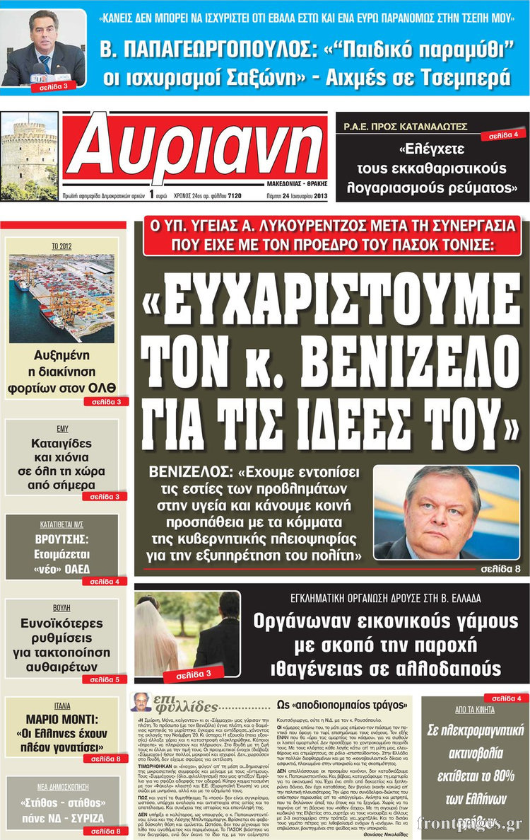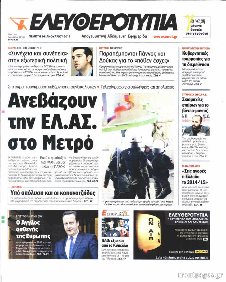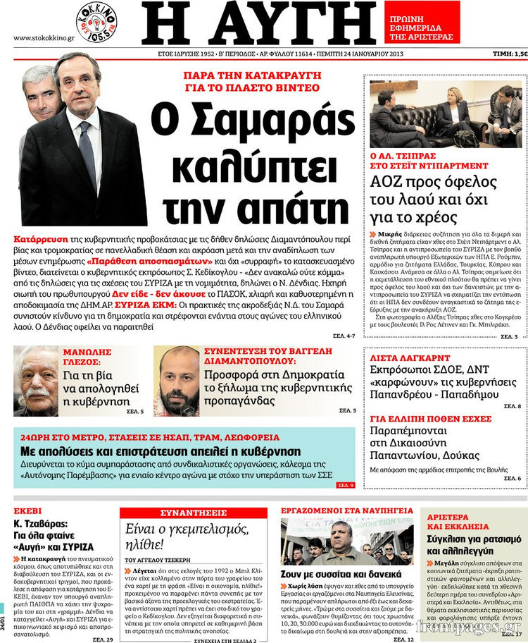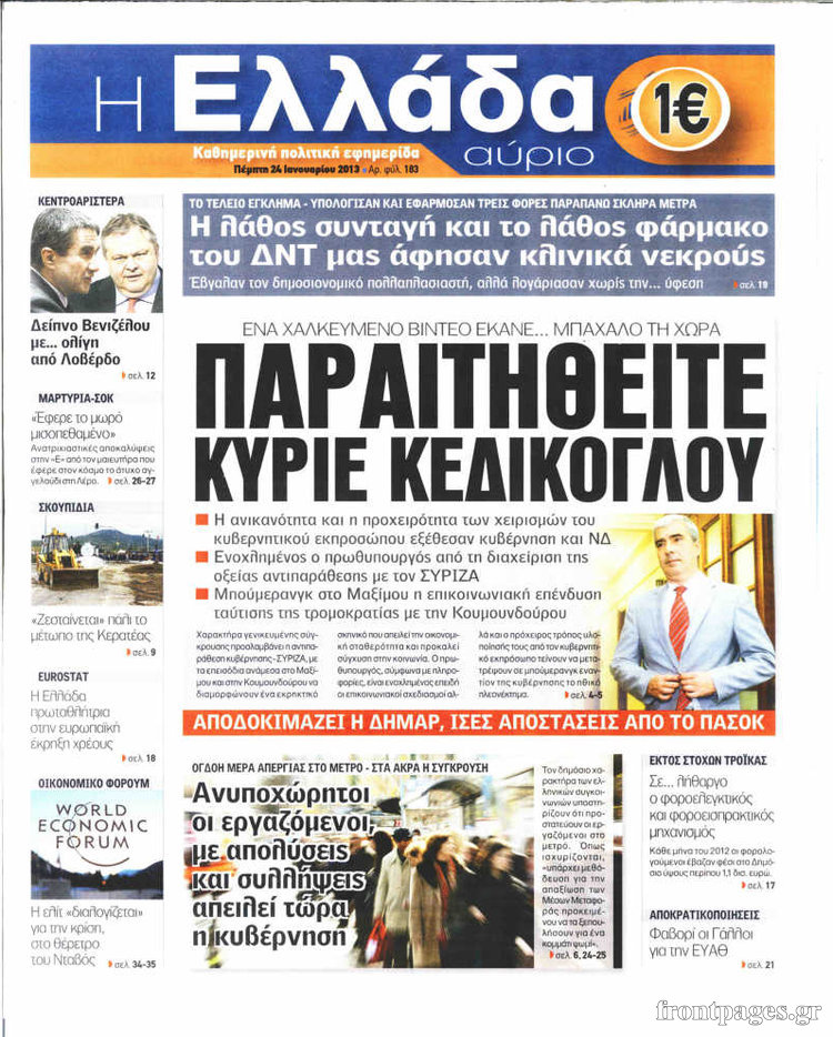 Οι πολιτικές εφημερίδες Enikos Newsroom 08:48, Πέμπτη 24 Ιανουαρίου 2013 Media Οι πολιτικές εφημερίδες ΕΦΗΜΕΡΙΔΕΣ ΠΟΛΙΤΙΚΕΣ ΕΦΗΜΕΡΙΔΕΣ ΠΡΩΤΟΣΕΛΙΔΑ Μοιράσου το: σχολίασε κι εσύ (0 σχόλια) Ακολουθήστε το enikos.gr στο Google News και μάθετε πρώτοι όλες τις ειδήσεις Δείτε όλες τις τελευταίες ειδήσεις από την Ελλάδα και τον Κόσμο στο enikos.gr Ειδήσεις Ροή Ειδήσεων 7 ώρες πριν Εκτός ευρωομάδας ΣΥΡΙΖΑ ο Νίκος Παππάς μετά την επίθεση στον δημοσιογράφο Νίκο Γιαννόπουλο – Η μήνυση και οι νέες δηλώσεις 7 ώρες πριν «Αγριεύουν» οι αγρότες: «Δεν συντρέχει λόγος συνάντησης με τον πρωθυπουργό» – Ώρα αποφάσεων στη σύσκεψη της Πέμπτης 7 ώρες πριν Κυψέλη: Χωρίς την οικογένειά της δίπλα της απολογήθηκε η 16χρονη – «Της είχε επιτεθεί κάποιος για να την βιάσει, φοβήθηκε και κυκλοφορούσε με μαχαίρι» 6 ώρες πριν Politico: Το πρόβλημα της Ευρώπης δεν είναι το Βέλγιο αλλά ο Ντόναλντ Τραμπ 8 ώρες πριν Αλεξανδρούπολη: Πολυοργανική ανεπάρκεια λόγω υποσιτισμού η αιτία θανάτου του 3χρονου αγοριού 7 ώρες πριν Μυστήριο με τεράστιες κυκλικές πέτρες 200 κιλών – Ανακαλύφθηκαν τυχαία κατά τη διάρκεια οδικών έργων και κανείς δεν ξέρει από πού προέρχονται 8 ώρες πριν Ύπνος: Ειδικός εξηγεί τον πραγματικό λόγο που ξυπνάτε στις 4 τα ξημερώματα – Ο ρόλος των ορμονών και του κιρκάδιου ρυθμού 9 ώρες πριν Αριθμολογία: Οι άνθρωποι που έχουν γεννηθεί αυτές τις 4 ημερομηνίες, είναι τρυφεροί και αγαπούν ανιδιοτελώς 20 ώρες πριν 20 χρόνια τα Χριστούγεννα ξεκινούν στα Public με μεγάλη ποικιλία σε δώρα! 1 λεπτό πριν Οι αθλητικές εφημερίδες 18/12/2025 6 λεπτά πριν Οι πολιτικές εφημερίδες 18/12/2025 15 λεπτά πριν Τα ζώδια σήμερα, Πέμπτη 18 Δεκεμβρίου: Λέοντες, η καρδιά σας θέλει να εκφραστεί 22 λεπτά πριν Το Ποντίκι σήμερα Πέμπτη 18/12/2025 27 λεπτά πριν Εφημερεύοντα φαρμακεία σε Αθήνα και Θεσσαλονίκη (18/12) ENIKOS NETWORK Αϋπνία: Το κόλπο που θα σας βοηθήσει να κοιμηθείτε απόψε – Είναι απλό και έχει αποτέλεσμα 2,6 εκατομμύρια πολίτες έχουν ήδη εμβολιαστεί κατά της γρίπης ΕΛΣΤΑΤ: Τι δείχνουν τα νέα στοιχεία για τις ηλεκτρονικές παραγγελίες των επιχειρήσεων ΚΕΠΕ: Οι 3 διακριτές συμβολές των ΜμΕ και της μεταποίησης στην ελληνική οικονομία Χαρτογραφώντας το «σημείο χωρίς επιστροφή»: Για πρώτη φορά αποκαλύπτεται με λεπτομέρεια το ακανθώδες όριο της ατμόσφαιρας τ... Η Google καταργεί τη λειτουργία «dark web report» – Πώς θα μπορούν οι χρήστες να διαγράφουν τα δεδομένα τους περισσότερα 05:43 , Πέμπτη 18 Δεκεμβρίου 2025 Οι αθλητικές εφημερίδες 18/12/2025 Διαβάστε τα πρωτοσέλιδα από τις αθλητικές εφημερίδες, σήμερα 18/12/2025. 05:38 , Πέμπτη 18 Δεκεμβρίου 2025 Οι πολιτικές εφημερίδες 18/12/2025 Διαβάστε τα πρωτοσέλιδα από τις πολιτικές εφημερίδες, σήμερα 18/12/2025. 05:22 , Πέμπτη 18 Δεκεμβρίου 2025 Το Ποντίκι σήμερα Πέμπτη 18/12/2025 Διαβάστε το πρωτοσέλιδο της εφημερίδας «Το Ποντίκι» σήμερα 18/12/2025. 02:30 , Πέμπτη 18 Δεκεμβρίου 2025 Αλ Τσαντίρι Νιουζ: Η κόρη της Πάολα στο κοινό – Η ατάκα Λαζόπουλου που την έκανε να «κοκκινήσει» Γιορτινή διάθεση και ευχάριστες στιγμές γέμισε η αποψινή, τελευταία για το 2025, εκπομπή του «... ΤΕΛΕΥΤΑΙΕΣ ΕΙΔΗΣΕΙΣ 6 λεπτά πριν Οι πολιτικές εφημερίδες 18/12/2025 15 λεπτά πριν Τα ζώδια σήμερα, Πέμπτη 18 Δεκεμβρίου: Λέοντες, η καρδιά... 22 λεπτά πριν Το Ποντίκι σήμερα Πέμπτη 18/12/2025 27 λεπτά πριν Εφημερεύοντα φαρμακεία σε Αθήνα και Θεσσαλονίκη (18/12) 29 λεπτά πριν Αλεξάνδρα Ούστα: «Αυτό που με τρέλανε στον σύζυγό μου... 36 λεπτά πριν Μιχάλης Αεράκης: «Της είπα “θέλω να κάνουμε... 44 λεπτά πριν Αυστραλία: Κυβερνητ