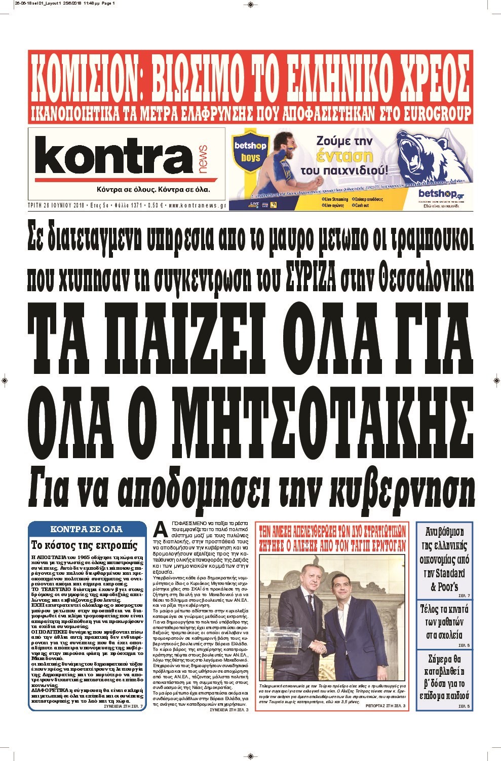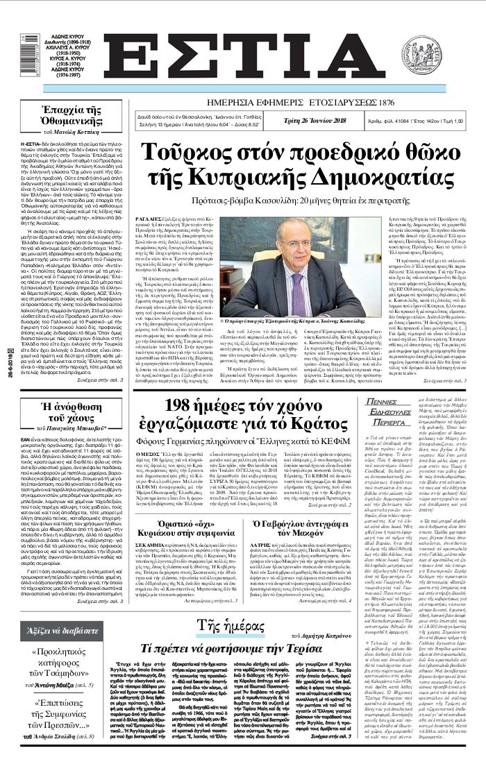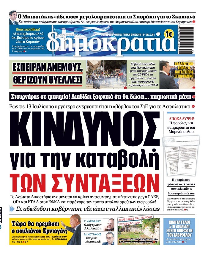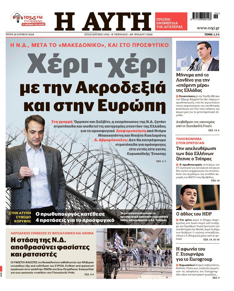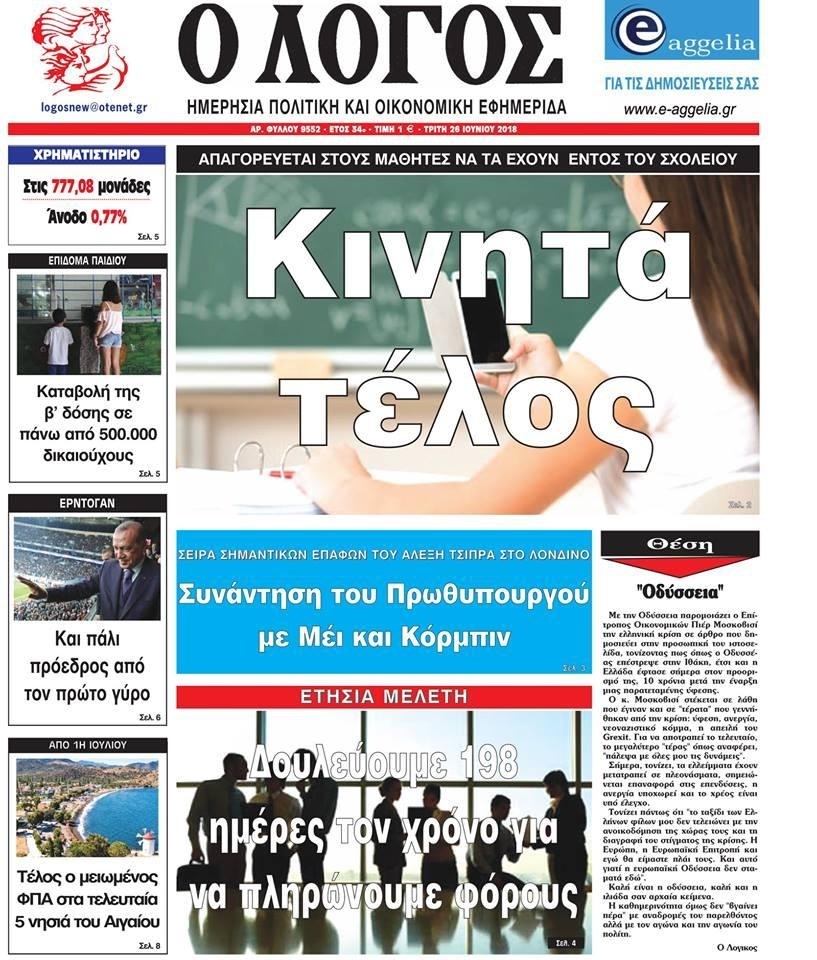 Οι πολιτικές εφημερίδες 26/6/18 Enikos Newsroom 06:37, Τρίτη 26 Ιουνίου 2018 Media Διαβάστε τα πρωτοσέλιδα: ΠΟΛΙΤΙΚΕΣ ΕΦΗΜΕΡΙΔΕΣ Μοιράσου το: σχολίασε κι εσύ (0 σχόλια) Ακολουθήστε το enikos.gr στο Google News και μάθετε πρώτοι όλες τις ειδήσεις Δείτε όλες τις τελευταίες ειδήσεις από την Ελλάδα και τον Κόσμο στο enikos.gr Ειδήσεις Ροή Ειδήσεων 4 ώρες πριν Πώς δρούσε το κύκλωμα που διακινούσε ναρκωτικά σε σχολεία – Υπέβαλαν σε βασανιστήρια όσους δεν τηρούσαν τους «κανόνες πειθαρχίας» 4 ώρες πριν Αγρότες: Γιορτές στα μπλόκα με ανοιχτά διόδια – Δικογραφία στα Ιωάννινα για το σήκωμα των μπαρών 4 ώρες πριν Ζελένσκι: Οι Αμερικανοί πρότειναν συνάντηση Ουκρανίας, ΗΠΑ, Ρωσίας στο Μαϊάμι 2 ώρες πριν Τραμπ: Πώς περνάει τις γιορτές των Χριστουγέννων – Τα δώρα που κάνει στα εγγόνια του 3 ώρες πριν Μικαέλα Μπέντχαους: Ο πρώτος άνθρωπος σε αναπηρικό αμαξίδιο που ταξίδεψε στο διάστημα – ΒΙΝΤΕΟ 4 ώρες πριν Η τύχη χαμογελά σε 3 ζώδια έως τις 28 Δεκεμβρίου – «Προσέξτε τις επιλογές σας και η επιμονή σας θα ανταμειφθεί» 5 ώρες πριν Μία ανεκμετάλλευτη πηγή θα μπορούσε να προσφέρει ανεξάντλητη ενέργεια – Οι επιστήμονες ίσως γνωρίζουν πώς να την ξεκλειδώσουν 1 ώρα πριν Μήπως οι γιορτές σας δεν είναι τόσο τέλειες; 7 χριστουγεννιάτικες συνήθειες που μαρτυρούν ότι μια οικογένεια είναι δυσλειτουργική 12 ώρες πριν Enerwave: Το νέο «ρεύμα» στη λιανική ενέργειας που αλλάζει την εμπειρία του καταναλωτή 1 λεπτό πριν Ο ΑΝΤ1 γεμίζει τις γιορτές με μουσική – Ποιους καλλιτέχνες θα απολαύσουμε 19 λεπτά πριν Πέθανε η σπουδαία αρχαιολόγος Λίλα Μαραγκού – 29 λεπτά πριν Πώς να απαλλαγείτε από τη μυρωδιά του τηγανητού φαγητού: Το μυστικό βρίσκεται στην κουζίνα σας 35 λεπτά πριν Βλαχοδήμος: «Νιώθω καλά που είμαι σημαντικός για τη Σεβίλλη» – Τι είπε για τη Ρεάλ Μαδρίτης και τον Μπαπέ 44 λεπτά πριν Πρίγκιπας Ουίλιαμ: Μαγείρεψε παρέα με τον πρίγκιπα Τζορτζ για τους αστέγους – ΦΩΤΟ και ΒΙΝΤΕΟ ENIKOS NETWORK Οι γυναίκες αποκαλύπτουν το πιο ελκυστικό πράγμα που μπορεί να κάνει ένας άνδρας Ομορφιά και αντιγήρανση: Ειδικοί μιλούν για συσκευές περιποίησης του δέρματος Θεοδωρικάκος: Εθνική στρατηγική για τους ημιαγωγούς – Πρώτο βήμα η χρηματοδότηση του πρώτου Κέντρου Ικανοτήτων, με 3,63 εκα... Επίδομα θέρμανσης: Μπαίνει η πρώτη δόση την Τρίτη – Οι επόμενες πληρωμές Χαρτογραφώντας το «σημείο χωρίς επιστροφή»: Για πρώτη φορά αποκαλύπτεται με λεπτομέρεια το ακανθώδες όριο της ατμόσφαιρας τ... Η Google καταργεί τη λειτουργία «dark web report» – Πώς θα μπορούν οι χρήστες να διαγράφουν τα δεδομένα τους περισσότερα 20:28 , Σάββατο 20 Δεκεμβρίου 2025 Ο ΑΝΤ1 γεμίζει τις γιορτές με μουσική – Ποιους καλλιτέχνες θα απολαύσουμε Φέτος στον ΑΝΤ1 γιορτάζουμε τις νύχτες μας παρέα με αγαπημένους καλλιτέχνες και μεγάλες μουσι... 18:19 , Σάββατο 20 Δεκεμβρίου 2025 HOTΕΛ ΕΛVIRA: Η Ελβίρα μαθαίνει πως ο Χάρι μένει κρυφά στο ξενοδοχείο του Παντελή Συνεχίζονται οι εκλογές για πρόεδρο, στο νέο επεισόδιο της κωμικής σειράς του MEGA, HOTΕΛ ΕΛVI... 14:04 , Σάββατο 20 Δεκεμβρίου 2025 Η Realnews αυτής της Κυριακής (21/12/2025) Με τίτλο: «Ασπίδα προστασίας για την Ελλάδα» κυκλοφορεί, αυτήν την Κυριακή, η Realnews. Σημαντ... 12:53 , Σάββατο 20 Δεκεμβρίου 2025 Να μ’ αγαπάς: Το παρελθόν έρχεται στο φως – Καταιγιστικές εξελίξεις στα τελευταία επεισόδια του 2025 Ο Άγγελος αποκαλύπτεται, η Φωτεινή ανησυχεί για τον Λευτέρη και η Ζωή έρχεται αντιμέτωπη με το... ΤΕΛΕΥΤΑΙΕΣ ΕΙΔΗΣΕΙΣ 19 λεπτά πριν Πέθανε η σπουδαία αρχαιολόγος Λίλα Μα