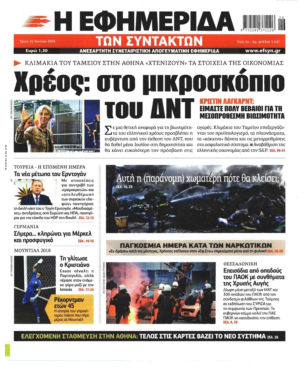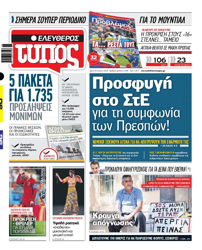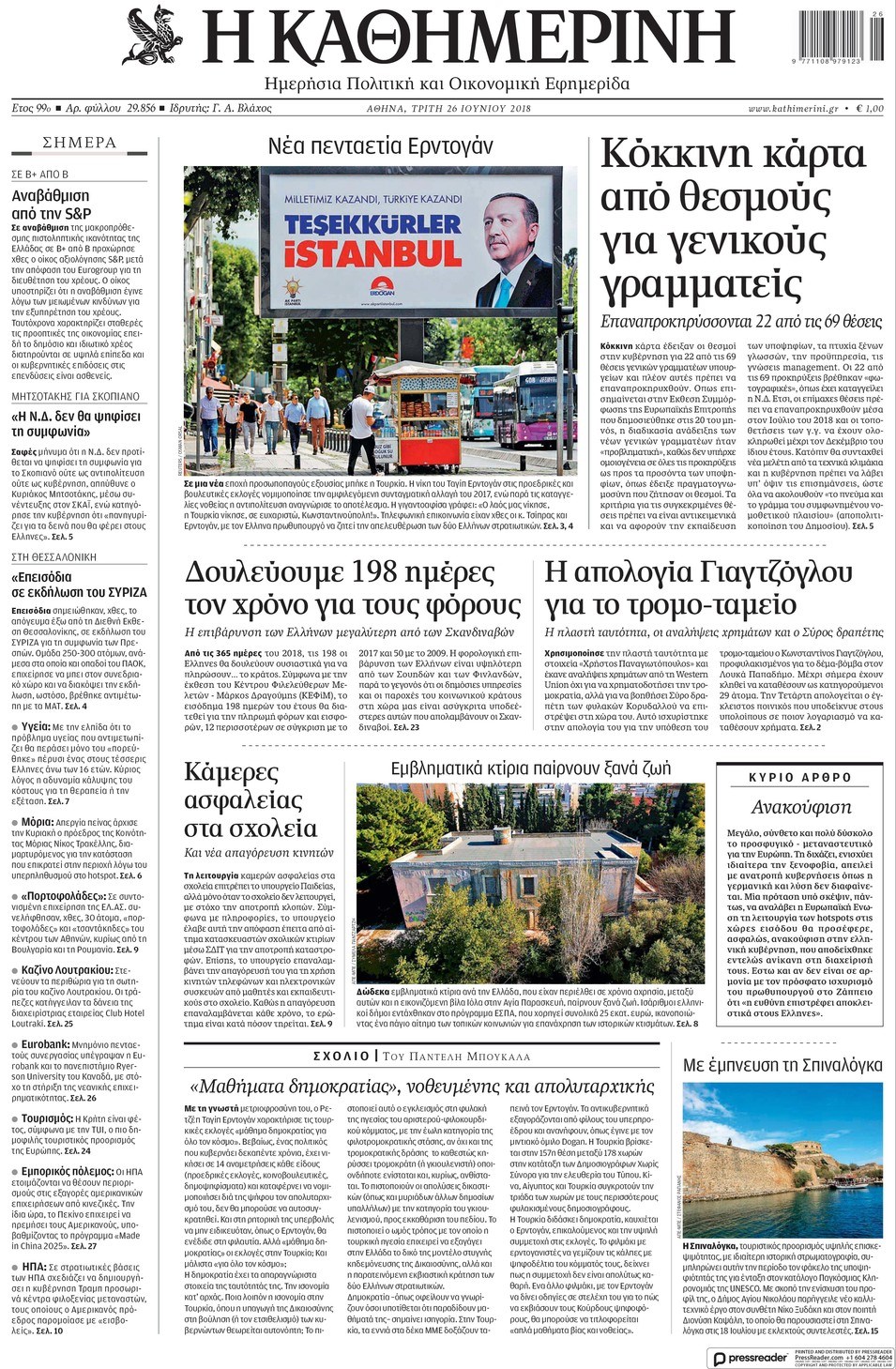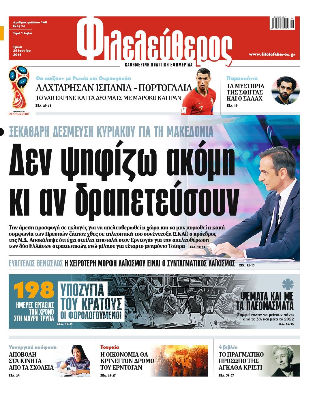 Οι πολιτικές εφημερίδες 26/6/18 Enikos Newsroom 06:37, Τρίτη 26 Ιουνίου 2018 Media Διαβάστε τα πρωτοσέλιδα: ΠΟΛΙΤΙΚΕΣ ΕΦΗΜΕΡΙΔΕΣ Μοιράσου το: σχολίασε κι εσύ (0 σχόλια) Ακολουθήστε το enikos.gr στο Google News και μάθετε πρώτοι όλες τις ειδήσεις Δείτε όλες τις τελευταίες ειδήσεις από την Ελλάδα και τον Κόσμο στο enikos.gr Ειδήσεις Ροή Ειδήσεων 4 ώρες πριν Πώς δρούσε το κύκλωμα που διακινούσε ναρκωτικά σε σχολεία – Υπέβαλαν σε βασανιστήρια όσους δεν τηρούσαν τους «κανόνες πειθαρχίας» 4 ώρες πριν Αγρότες: Γιορτές στα μπλόκα με ανοιχτά διόδια – Δικογραφία στα Ιωάννινα για το σήκωμα των μπαρών 4 ώρες πριν Ζελένσκι: Οι Αμερικανοί πρότειναν συνάντηση Ουκρανίας, ΗΠΑ, Ρωσίας στο Μαϊάμι 2 ώρες πριν Τραμπ: Πώς περνάει τις γιορτές των Χριστουγέννων – Τα δώρα που κάνει στα εγγόνια του 3 ώρες πριν Μικαέλα Μπέντχαους: Ο πρώτος άνθρωπος σε αναπηρικό αμαξίδιο που ταξίδεψε στο διάστημα – ΒΙΝΤΕΟ 4 ώρες πριν Η τύχη χαμογελά σε 3 ζώδια έως τις 28 Δεκεμβρίου – «Προσέξτε τις επιλογές σας και η επιμονή σας θα ανταμειφθεί» 5 ώρες πριν Μία ανεκμετάλλευτη πηγή θα μπορούσε να προσφέρει ανεξάντλητη ενέργεια – Οι επιστήμονες ίσως γνωρίζουν πώς να την ξεκλειδώσουν 1 ώρα πριν Μήπως οι γιορτές σας δεν είναι τόσο τέλειες; 7 χριστουγεννιάτικες συνήθειες που μαρτυρούν ότι μια οικογένεια είναι δυσλειτουργική 12 ώρες πριν Enerwave: Το νέο «ρεύμα» στη λιανική ενέργειας που αλλάζει την εμπειρία του καταναλωτή 1 λεπτό πριν Ο ΑΝΤ1 γεμίζει τις γιορτές με μουσική – Ποιους καλλιτέχνες θα απολαύσουμε 19 λεπτά πριν Πέθανε η σπουδαία αρχαιολόγος Λίλα Μαραγκού – 29 λεπτά πριν Πώς να απαλλαγείτε από τη μυρωδιά του τηγανητού φαγητού: Το μυστικό βρίσκεται στην κουζίνα σας 35 λεπτά πριν Βλαχοδήμος: «Νιώθω καλά που είμαι σημαντικός για τη Σεβίλλη» – Τι είπε για τη Ρεάλ Μαδρίτης και τον Μπαπέ 44 λεπτά πριν Πρίγκιπας Ουίλιαμ: Μαγείρεψε παρέα με τον πρίγκιπα Τζορτζ για τους αστέγους – ΦΩΤΟ και ΒΙΝΤΕΟ ENIKOS NETWORK Οι γυναίκες αποκαλύπτουν το πιο ελκυστικό πράγμα που μπορεί να κάνει ένας άνδρας Ομορφιά και αντιγήρανση: Ειδικοί μιλούν για συσκευές περιποίησης του δέρματος Θεοδωρικάκος: Εθνική στρατηγική για τους ημιαγωγούς – Πρώτο βήμα η χρηματοδότηση του πρώτου Κέντρου Ικανοτήτων, με 3,63 εκα... Επίδομα θέρμανσης: Μπαίνει η πρώτη δόση την Τρίτη – Οι επόμενες πληρωμές Χαρτογραφώντας το «σημείο χωρίς επιστροφή»: Για πρώτη φορά αποκαλύπτεται με λεπτομέρεια το ακανθώδες όριο της ατμόσφαιρας τ... Η Google καταργεί τη λειτουργία «dark web report» – Πώς θα μπορούν οι χρήστες να διαγράφουν τα δεδομένα τους περισσότερα 20:28 , Σάββατο 20 Δεκεμβρίου 2025 Ο ΑΝΤ1 γεμίζει τις γιορτές με μουσική – Ποιους καλλιτέχνες θα απολαύσουμε Φέτος στον ΑΝΤ1 γιορτάζουμε τις νύχτες μας παρέα με αγαπημένους καλλιτέχνες και μεγάλες μουσι... 18:19 , Σάββατο 20 Δεκεμβρίου 2025 HOTΕΛ ΕΛVIRA: Η Ελβίρα μαθαίνει πως ο Χάρι μένει κρυφά στο ξενοδοχείο του Παντελή Συνεχίζονται οι εκλογές για πρόεδρο, στο νέο επεισόδιο της κωμικής σειράς του MEGA, HOTΕΛ ΕΛVI... 14:04 , Σάββατο 20 Δεκεμβρίου 2025 Η Realnews αυτής της Κυριακής (21/12/2025) Με τίτλο: «Ασπίδα προστασίας για την Ελλάδα» κυκλοφορεί, αυτήν την Κυριακή, η Realnews. Σημαντ... 12:53 , Σάββατο 20 Δεκεμβρίου 2025 Να μ’ αγαπάς: Το παρελθόν έρχεται στο φως – Καταιγιστικές εξελίξεις στα τελευταία επεισόδια του 2025 Ο Άγγελος αποκαλύπτεται, η Φωτεινή ανησυχεί για τον Λευτέρη και η Ζωή έρχεται αντιμέτωπη με το... ΤΕΛΕΥΤΑΙΕΣ ΕΙΔΗΣΕΙΣ 19 λεπτά πριν Πέθανε η σπουδαία αρχαιολόγος Λίλα Μα