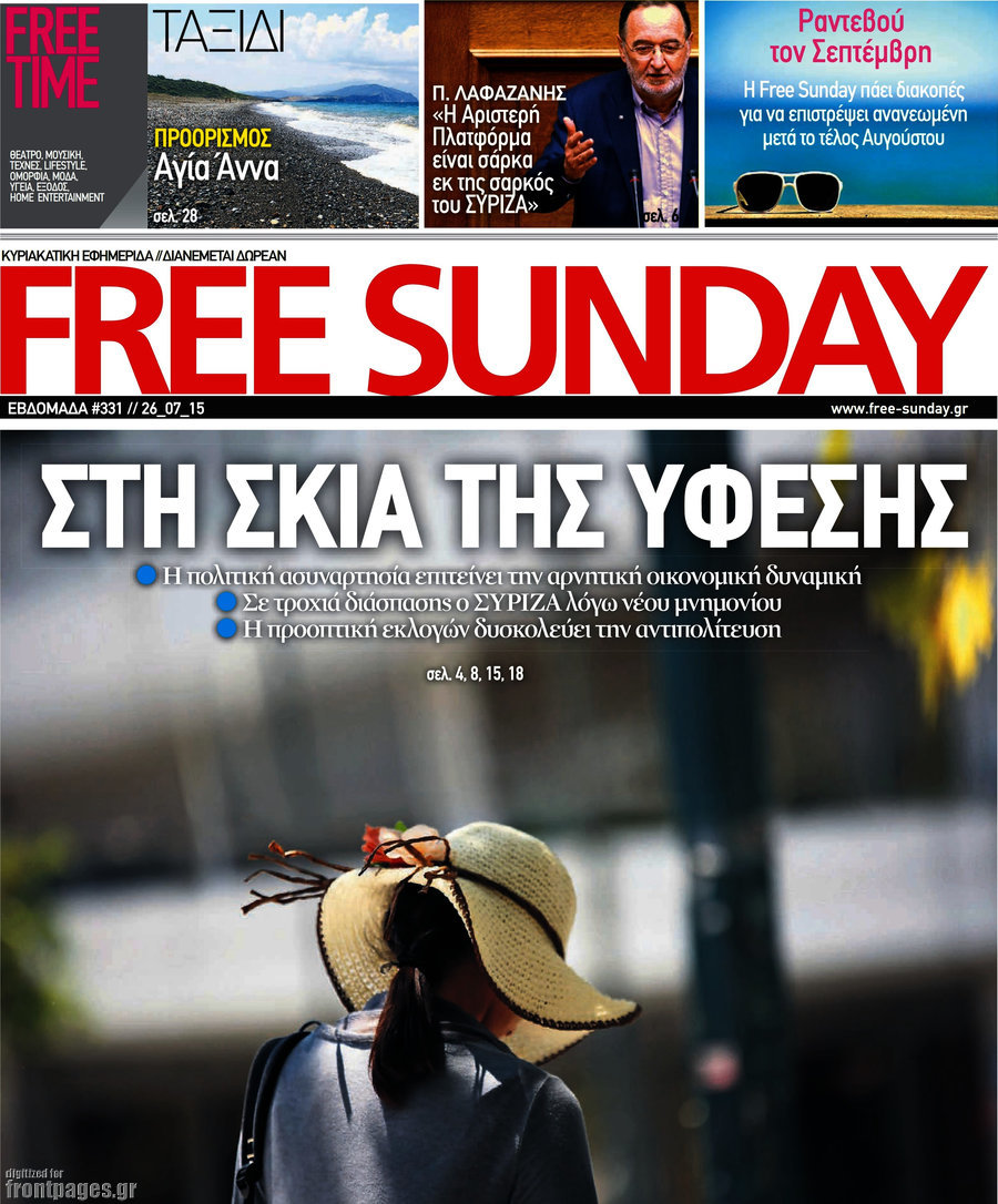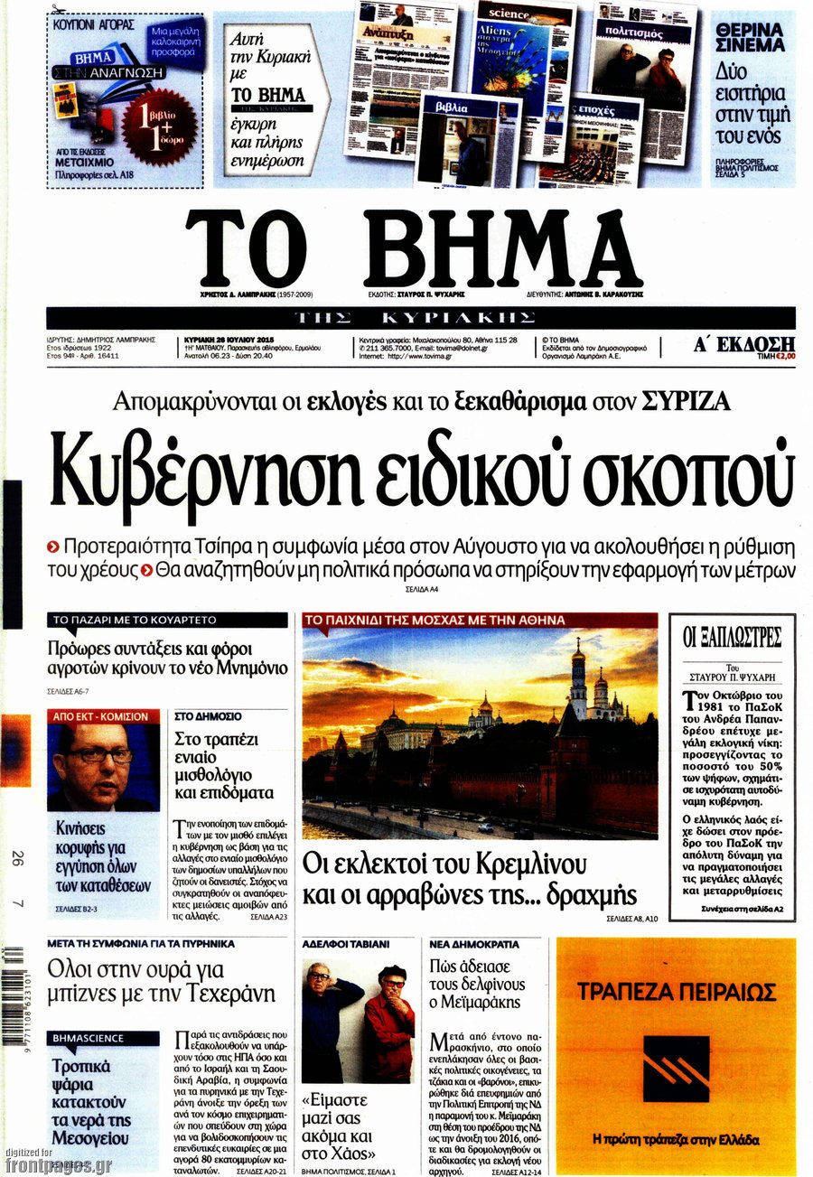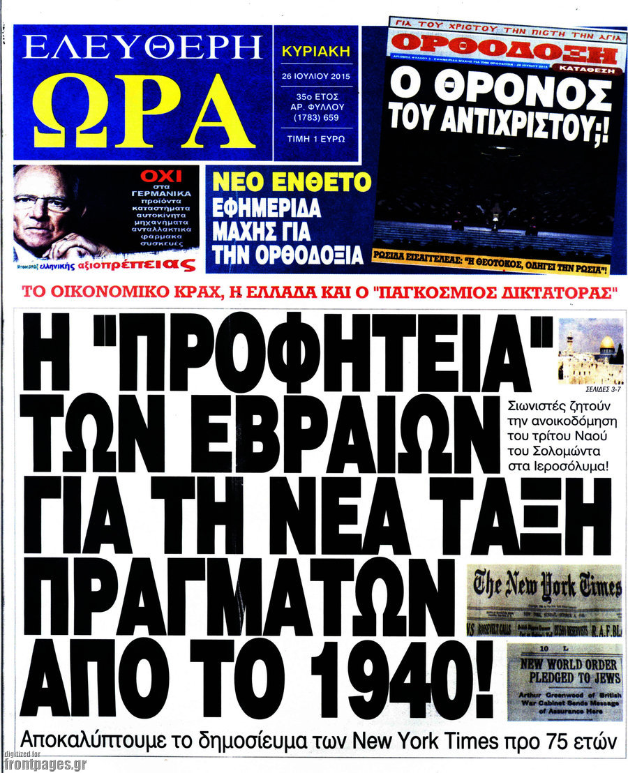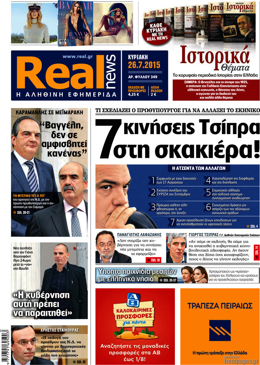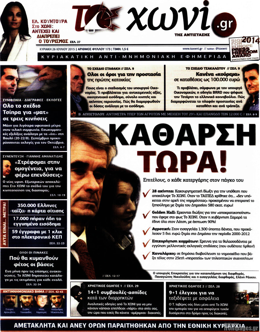 Οι πολιτικές εφημερίδες 26/7/2015 Enikos Newsroom 08:26, Κυριακή 26 Ιουλίου 2015 Media Διαβάστε τα σημερινά πρωτοσέλιδα των πολιτικών εφημερίδων. ΕΦΗΜΕΡΙΔΕΣ ΠΟΛΙΤΙΚΕΣ ΕΦΗΜΕΡΙΔΕΣ ΠΡΩΤΟΣΕΛΙΔΑ Μοιράσου το: σχολίασε κι εσύ (0 σχόλια) Ακολουθήστε το enikos.gr στο Google News και μάθετε πρώτοι όλες τις ειδήσεις Δείτε όλες τις τελευταίες ειδήσεις από την Ελλάδα και τον Κόσμο στο enikos.gr Ειδήσεις Ροή Ειδήσεων 4 ώρες πριν Χριστούγεννα στα μπλόκα: Επιμένουν στις κινητοποιήσεις τους οι αγρότες – Ανοίγουν τα διόδια το Σαββατοκύριακο 5 ώρες πριν Ουκρανία: Η άνευ προηγουμένου επίθεση σε ρωσικό τάνκερ στη Μεσόγειο και το μήνυμα προς στον Πούτιν – Το «μακρύ χέρι» του Κιέβου 4 ώρες πριν Πούτιν: Τα μηνύματα σε Ευρώπη και ΝΑΤΟ από το μαραθώνιο «σόου» του – Η απαίτηση για «σεβασμό» και η ειρήνη «με τους όρους» της Μόσχας 5 ώρες πριν Τραμπ: Δεν αποκλείει την πιθανότητα ενός πολέμου στη Βενεζουέλα – «Ο Μαδούρο ξέρει καλύτερα από τον καθένα τι ακριβώς θέλω» 5 ώρες πριν Συνεχίζει να προκαλεί ο Μίτσκοσκι: «Για μένα το όνομα Μακεδονία είναι ιερό» 4 ώρες πριν Ανακαλύφθηκαν αρχαία χρυσά νομίσματα 2.200 ετών που απεικονίζουν τον θεό Απόλλωνα – Η άγνωστη σύνδεση με τον Φίλιππο Β΄ της Μακεδονίας 5 ώρες πριν Ύπνος: Μια κρυφή κατάσταση του εγκεφάλου πριν από τον ύπνο μπορεί να είναι το “κλειδί” για υψηλή ευφυΐα και δημιουργικότητα 6 ώρες πριν Αριθμολογία: Οι άνθρωποι που έχουν γεννηθεί αυτές τις 4 ημερομηνίες, συχνά παρεξηγούνται – «Η καλοσύνη τους κρύβει τεράστια δύναμη» 7 ώρες πριν Ξεχάστε το καθάρισμα το Σαββατοκύριακο: Ο «κανόνας των 20 λεπτών» που θα σας λύσει τα χέρια 17 λεπτά πριν Θεσσαλονίκη: Εξαφανίστηκε 13χρονος από χώρο φιλοξενίας ασυνόδευτων ανηλίκων στο Ωραιόκαστρο 28 λεπτά πριν Ντόναλντ Τραμπ: «Πολύ βαριά αντίποινα» στη Συρία – «Πλήττουμε πολύ δυνατά οχυρά του Ισλαμικού Κράτους» 43 λεπτά πριν Εξάρχεια: Ένταση με μολότοφ, χημικά και κρότου λάμψης 58 λεπτά πριν ΗΠΑ: Τραγωδία στην Αλαμπάμα – Σκότωσε την δημοσιογράφο σύζυγό του και αυτοκτόνησε μπροστά στον 3χρονο γιο τους 1 ώρα πριν Πρόταση γάμου στο ΣΕΦ κατά την διάρκεια του αγώνα Ολυμπιακός-Βιλερμπάν – Δείτε βίντεο ENIKOS NETWORK Το ΕΚΑΒ τιμήθηκε από την Ακαδημία Αθηνών για τα 40 χρόνια προσφοράς του Έχετε πραγματικά μεγάλη καρδιά; 10 χαρακτηριστικά όσων έχουν καλοσύνη Αναστολή μέτρων αναγκαστικής εκτέλεσης για κτηνοτρόφους που πλήττονται από την ευλογιά των αιγοπροβάτων Πλήρης επάρκεια προϊόντων στις λαϊκές της Αττικής, παρά τις αγροτικές κινητοποιήσεις – Τι απαντούν οι πωλητές Χαρτογραφώντας το «σημείο χωρίς επιστροφή»: Για πρώτη φορά αποκαλύπτεται με λεπτομέρεια το ακανθώδες όριο της ατμόσφαιρας τ... Η Google καταργεί τη λειτουργία «dark web report» – Πώς θα μπορούν οι χρήστες να διαγράφουν τα δεδομένα τους περισσότερα 22:42 , Παρασκευή 19 Δεκεμβρίου 2025 Γιώργος Γιαννόπουλος για “Το σόι σου”: “Είναι ευτυχία και ευλογία αυτή η σειρά” «Είναι ευτυχία και ευλογία η συγκυρία αυτής της σειράς», θα πει ο Γιώργος Γιαννόπουλος -ο αγαπ... 20:37 , Παρασκευή 19 Δεκεμβρίου 2025 Don’t Forget The Lyrics: Η Έλλη Κοκκίνου υποδέχεται 4 παίκτες που θα κάνουν τα πάντα για να μη χάσουν ούτε… μισή λέξη από τους στίχους Το «Don’t Forget The Lyrics» επιστρέφει απόψε, Παρασκευή 19 Δεκεμβρίου, στις 21:00 με νέο επει... 19:31 , Παρασκευή 19 Δεκεμβρίου 2025 GNTM: Απόψε ο μεγάλος τελικός για τους 4 φιναλίστ Έπειτα από μήνες γεμάτους μόδα, δημιουργία και έντονες αναμετρήσεις, το GNTM 2025 κορυφώνεται,... 18:11 , Παρασκευή 19 Δεκεμ