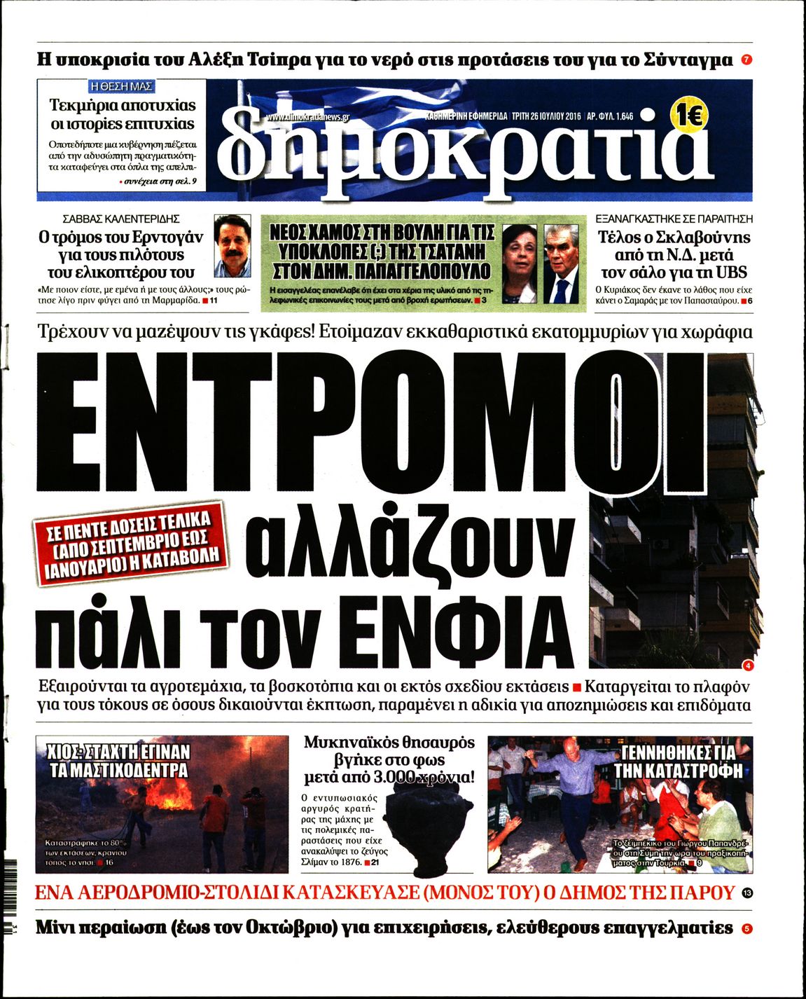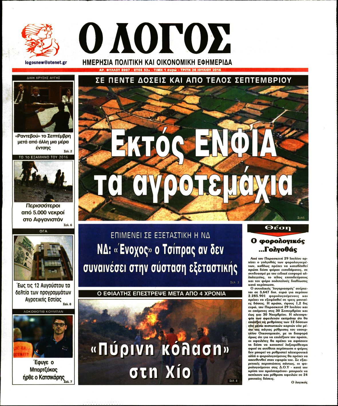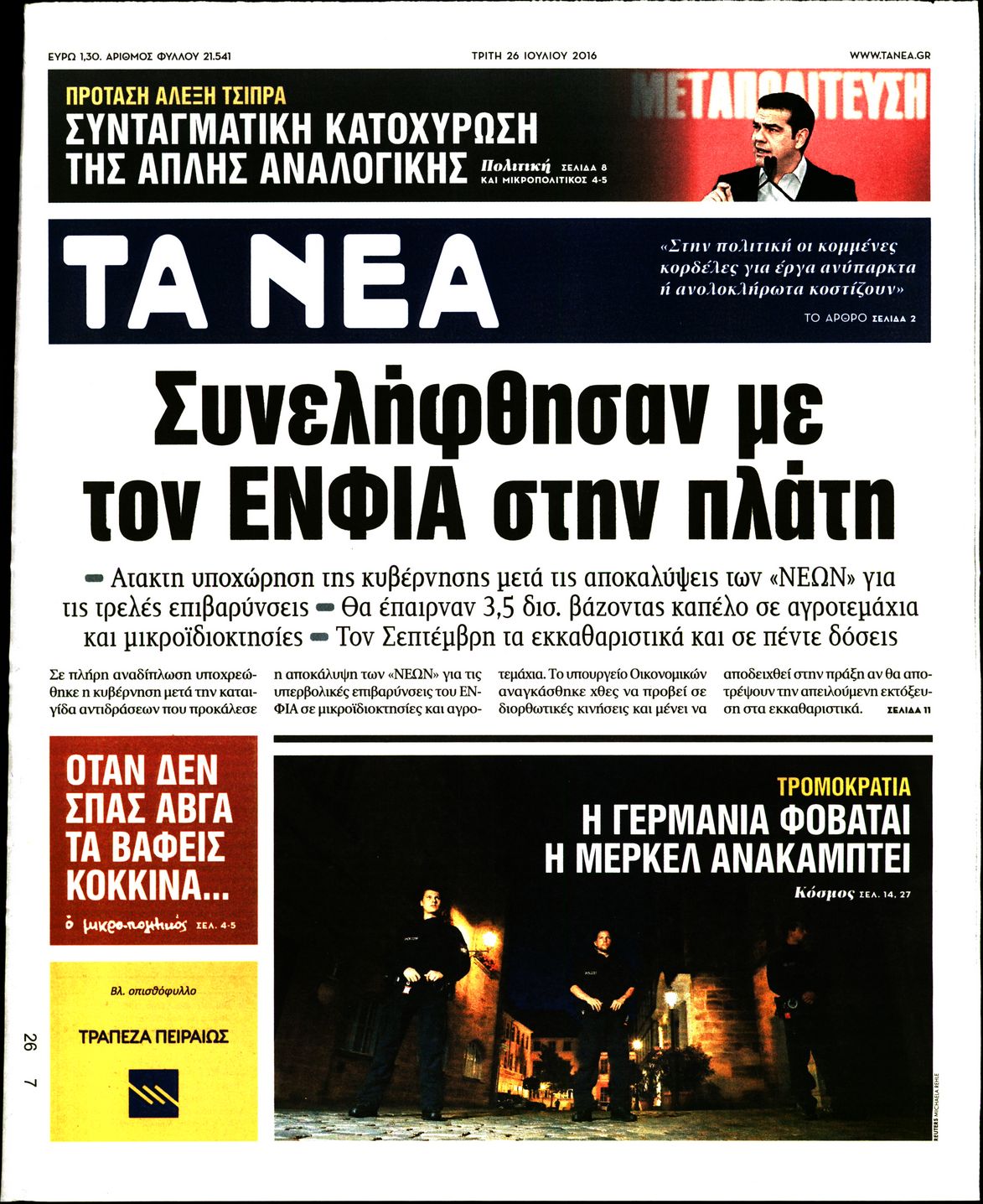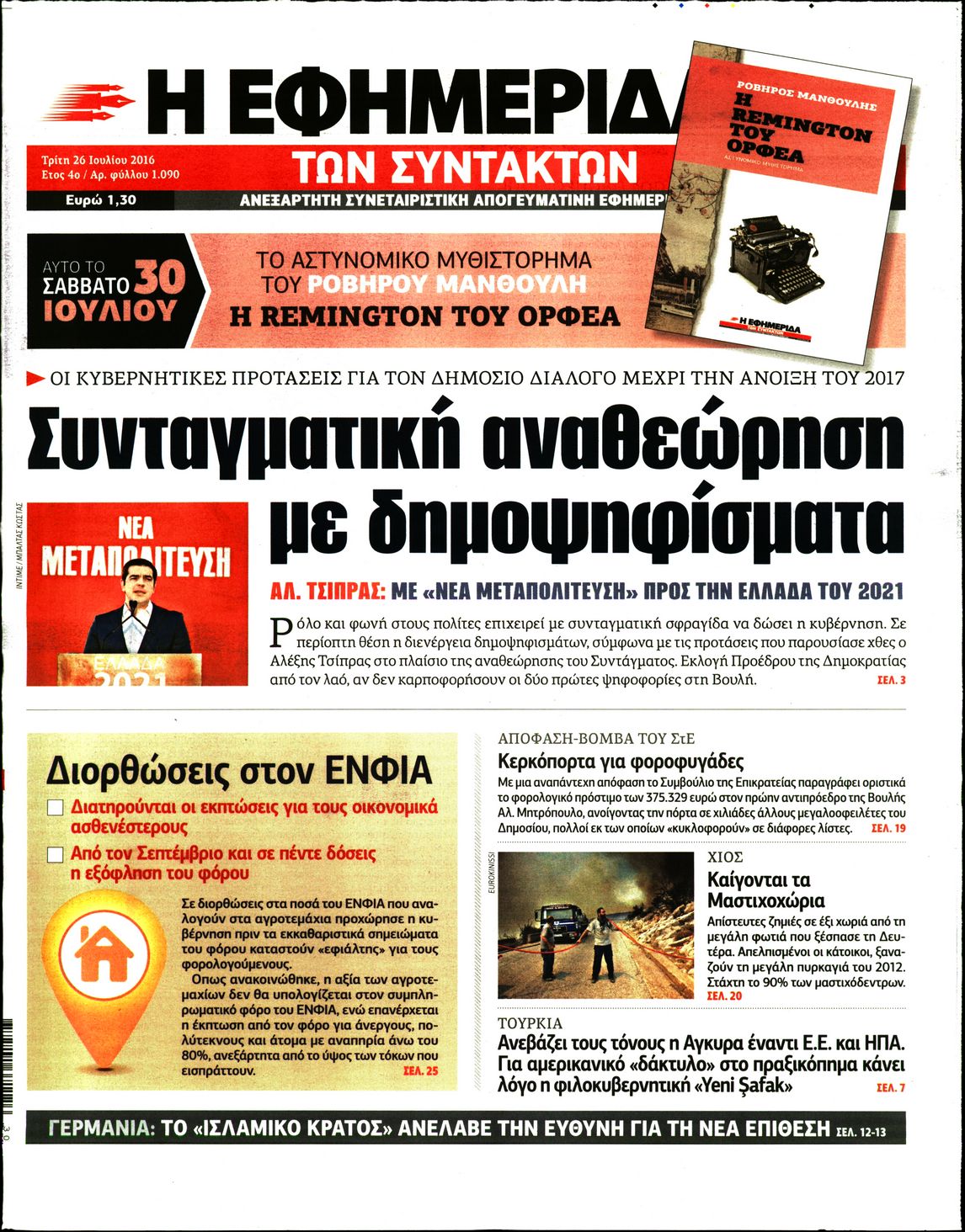 Οι πολιτικές εφημερίδες 26/7/2016 Enikos Newsroom 05:19, Τρίτη 26 Ιουλίου 2016 Media Διαβάστε τα σημερινά πρωτοσέλιδα των πολιτικών εφημερίδων: ΠΟΛΙΤΙΚΕΣ ΕΦΗΜΕΡΙΔΕΣ ΠΡΩΤΟΣΕΛΙΔΑ Μοιράσου το: σχολίασε κι εσύ (0 σχόλια) Ακολουθήστε το enikos.gr στο Google News και μάθετε πρώτοι όλες τις ειδήσεις Δείτε όλες τις τελευταίες ειδήσεις από την Ελλάδα και τον Κόσμο στο enikos.gr Ειδήσεις Ροή Ειδήσεων 6 ώρες πριν Εκτός ευρωομάδας ΣΥΡΙΖΑ ο Νίκος Παππάς μετά την επίθεση στον δημοσιογράφο Νίκο Γιαννόπουλο – Η μήνυση και οι νέες δηλώσεις 6 ώρες πριν «Αγριεύουν» οι αγρότες: «Δεν συντρέχει λόγος συνάντησης με τον πρωθυπουργό» – Ώρα αποφάσεων στη σύσκεψη της Πέμπτης 6 ώρες πριν Κυψέλη: Χωρίς την οικογένειά της δίπλα της απολογήθηκε η 16χρονη – «Της είχε επιτεθεί κάποιος για να την βιάσει, φοβήθηκε και κυκλοφορούσε με μαχαίρι» 6 ώρες πριν Politico: Το πρόβλημα της Ευρώπης δεν είναι το Βέλγιο αλλά ο Ντόναλντ Τραμπ 8 ώρες πριν Αλεξανδρούπολη: Πολυοργανική ανεπάρκεια λόγω υποσιτισμού η αιτία θανάτου του 3χρονου αγοριού 6 ώρες πριν Μυστήριο με τεράστιες κυκλικές πέτρες 200 κιλών – Ανακαλύφθηκαν τυχαία κατά τη διάρκεια οδικών έργων και κανείς δεν ξέρει από πού προέρχονται 7 ώρες πριν Ύπνος: Ειδικός εξηγεί τον πραγματικό λόγο που ξυπνάτε στις 4 τα ξημερώματα – Ο ρόλος των ορμονών και του κιρκάδιου ρυθμού 8 ώρες πριν Αριθμολογία: Οι άνθρωποι που έχουν γεννηθεί αυτές τις 4 ημερομηνίες, είναι τρυφεροί και αγαπούν ανιδιοτελώς 20 ώρες πριν 20 χρόνια τα Χριστούγεννα ξεκινούν στα Public με μεγάλη ποικιλία σε δώρα! 6 λεπτά πριν Αυστραλία: Κυβερνητική δέσμευση για αυστηρότερα μέτρα κατά της υποκίνησης μίσους 21 λεπτά πριν Ντόναλντ Τραμπ: Παρουσίασε τα επιτεύγματα της διακυβέρνησής του – Σκληρή κριτική στον Τζο Μπάιντεν 36 λεπτά πριν Κτηνοτρόφοι: Με δάκρυα στα μάτια ζουν τον εφιάλτη των άδειων στάβλων – «Καταστράφηκαν οι ζωές μας» 51 λεπτά πριν Νέο αμερικανικό πλήγμα σε σκάφος που φέρεται να μετέφερε ναρκωτικά στον Ειρηνικό – Τέσσερις νεκροί 1 ώρα πριν Αλ Τσαντίρι Νιουζ: «Λύγισε» ο Δημήτρης Λάλος για τον Δημήτρη Ήμελλο – «Τον μνημονεύω, να ‘ναι καλά εκεί που είναι» ENIKOS NETWORK Αϋπνία: Το κόλπο που θα σας βοηθήσει να κοιμηθείτε απόψε – Είναι απλό και έχει αποτέλεσμα 2,6 εκατομμύρια πολίτες έχουν ήδη εμβολιαστεί κατά της γρίπης ΕΛΣΤΑΤ: Τι δείχνουν τα νέα στοιχεία για τις ηλεκτρονικές παραγγελίες των επιχειρήσεων ΚΕΠΕ: Οι 3 διακριτές συμβολές των ΜμΕ και της μεταποίησης στην ελληνική οικονομία Χαρτογραφώντας το «σημείο χωρίς επιστροφή»: Για πρώτη φορά αποκαλύπτεται με λεπτομέρεια το ακανθώδες όριο της ατμόσφαιρας τ... Η Google καταργεί τη λειτουργία «dark web report» – Πώς θα μπορούν οι χρήστες να διαγράφουν τα δεδομένα τους περισσότερα 02:30 , Πέμπτη 18 Δεκεμβρίου 2025 Αλ Τσαντίρι Νιουζ: Η κόρη της Πάολα στο κοινό – Η ατάκα Λαζόπουλου που την έκανε να «κοκκινήσει» Γιορτινή διάθεση και ευχάριστες στιγμές γέμισε η αποψινή, τελευταία για το 2025, εκπομπή του «... 22:24 , Τετάρτη 17 Δεκεμβρίου 2025 Το Σπίτι Δίπλα Στο Ποτάμι: Σε κίνδυνο η υγεία του Απόστολου – Τι θα δούμε απόψε “Το Σπίτι Δίπλα στο Ποτάμι” ξετυλίγει το νήμα της ζωής των πέντε αδελφών με καταισ... 21:14 , Τετάρτη 17 Δεκεμβρίου 2025 Παιχνίδια Εκδίκησης: Θα καταφέρει ο Χρήστος να κλονίσει την εμπιστοσύνη της Μάγιας απέναντι στον Άγη; Τα «Παιχνίδια Εκδίκησης» έρχονται απόψε στις 22:30, στον Αντ1, με το τελευταίο επεισόδιο της χ... 20:57 , Τετάρτη 17 Δεκεμβρίου 2025 Άγιος Έρωτας: Η Χλόη καταθέτει εναντ